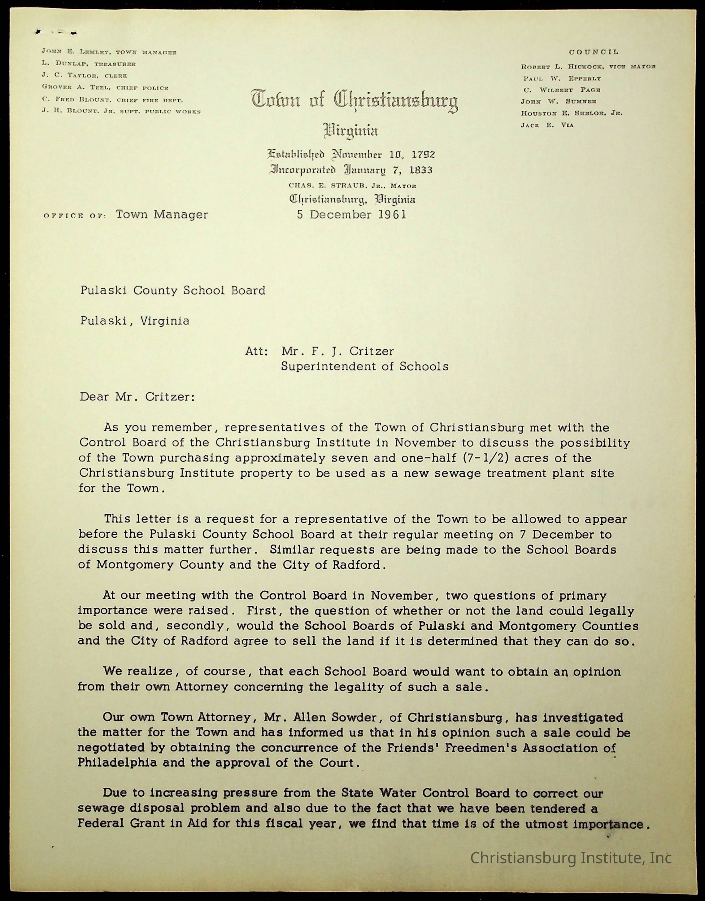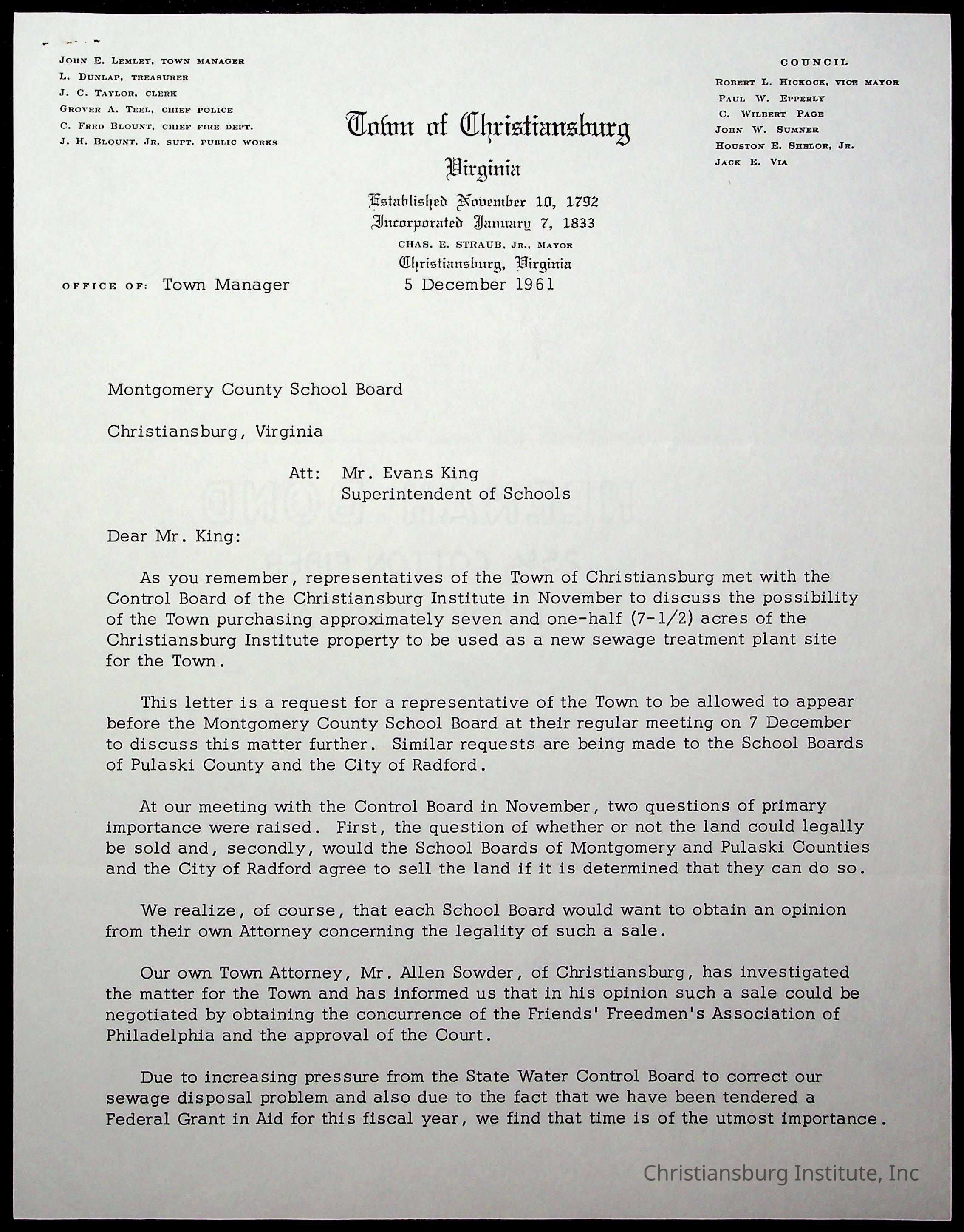 Christiansburg Institute, King, E. L., Montgomery County School BoardRelated Places