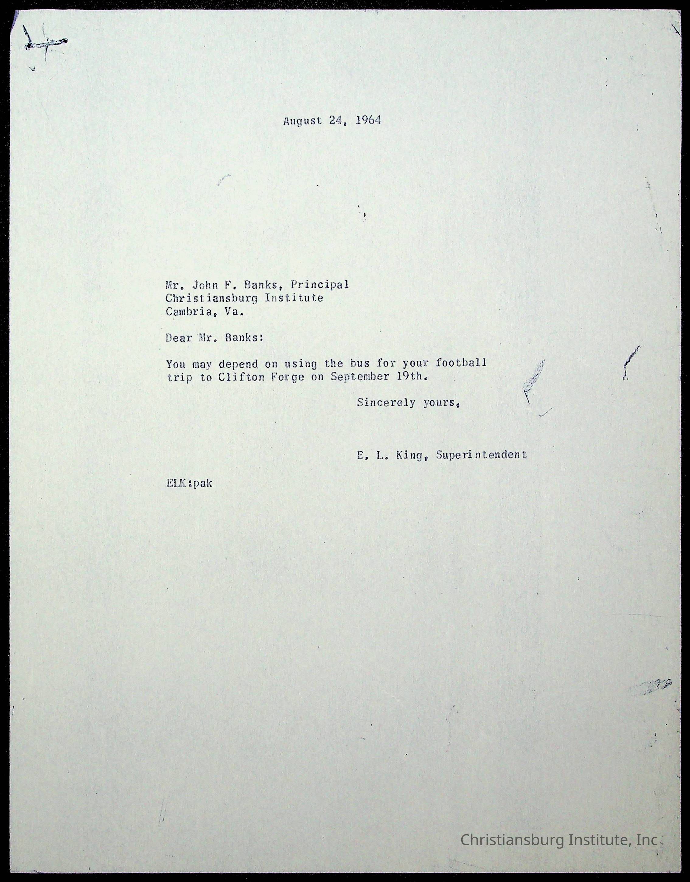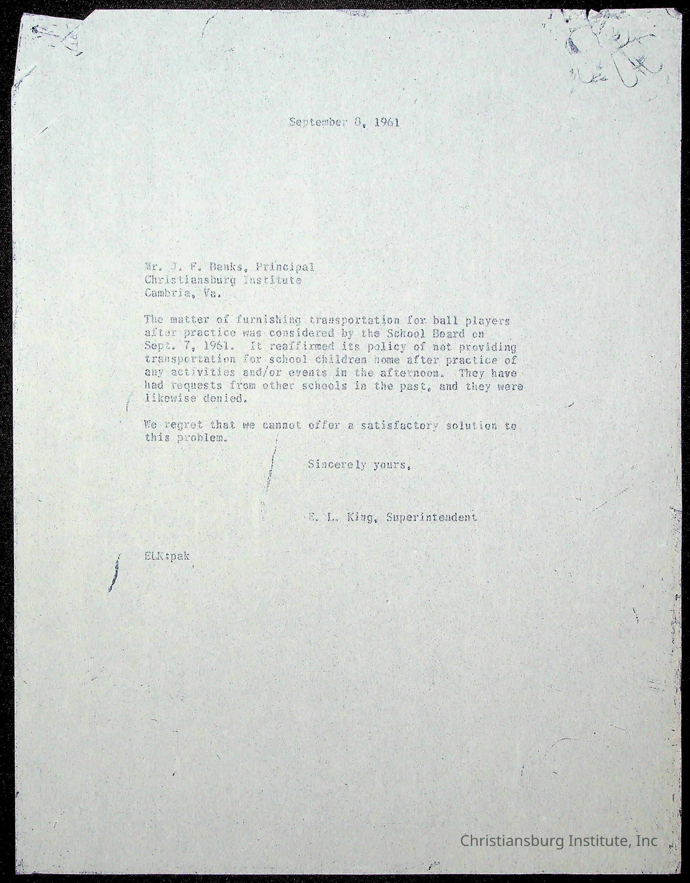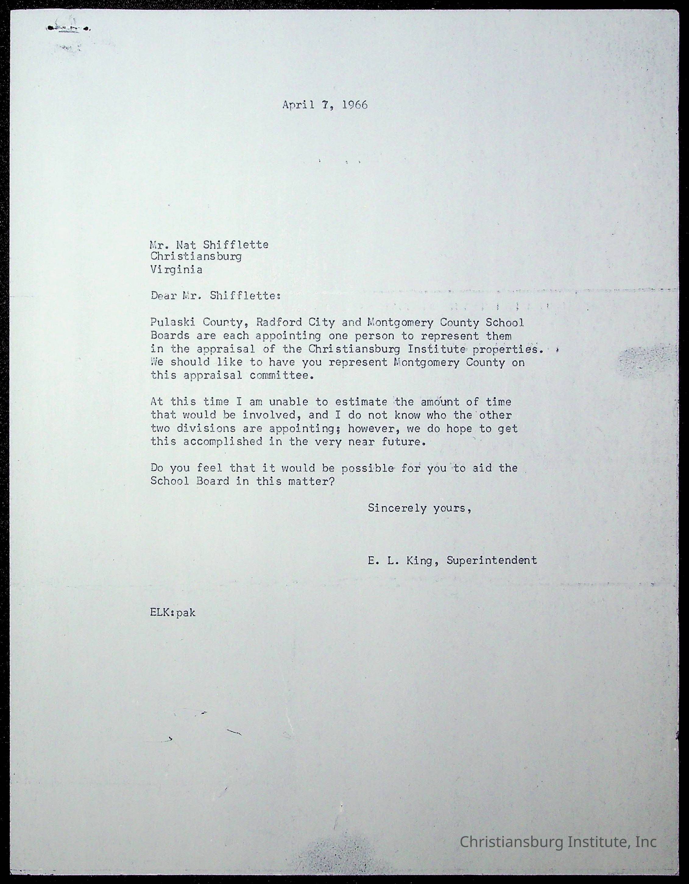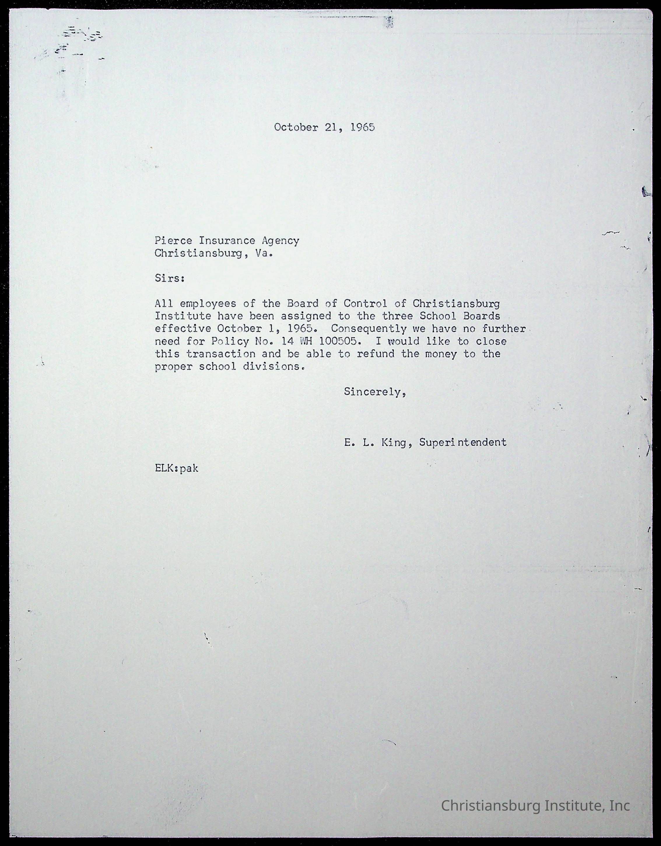 King, Evans L. Superintendent, circa 1960sScope and Content