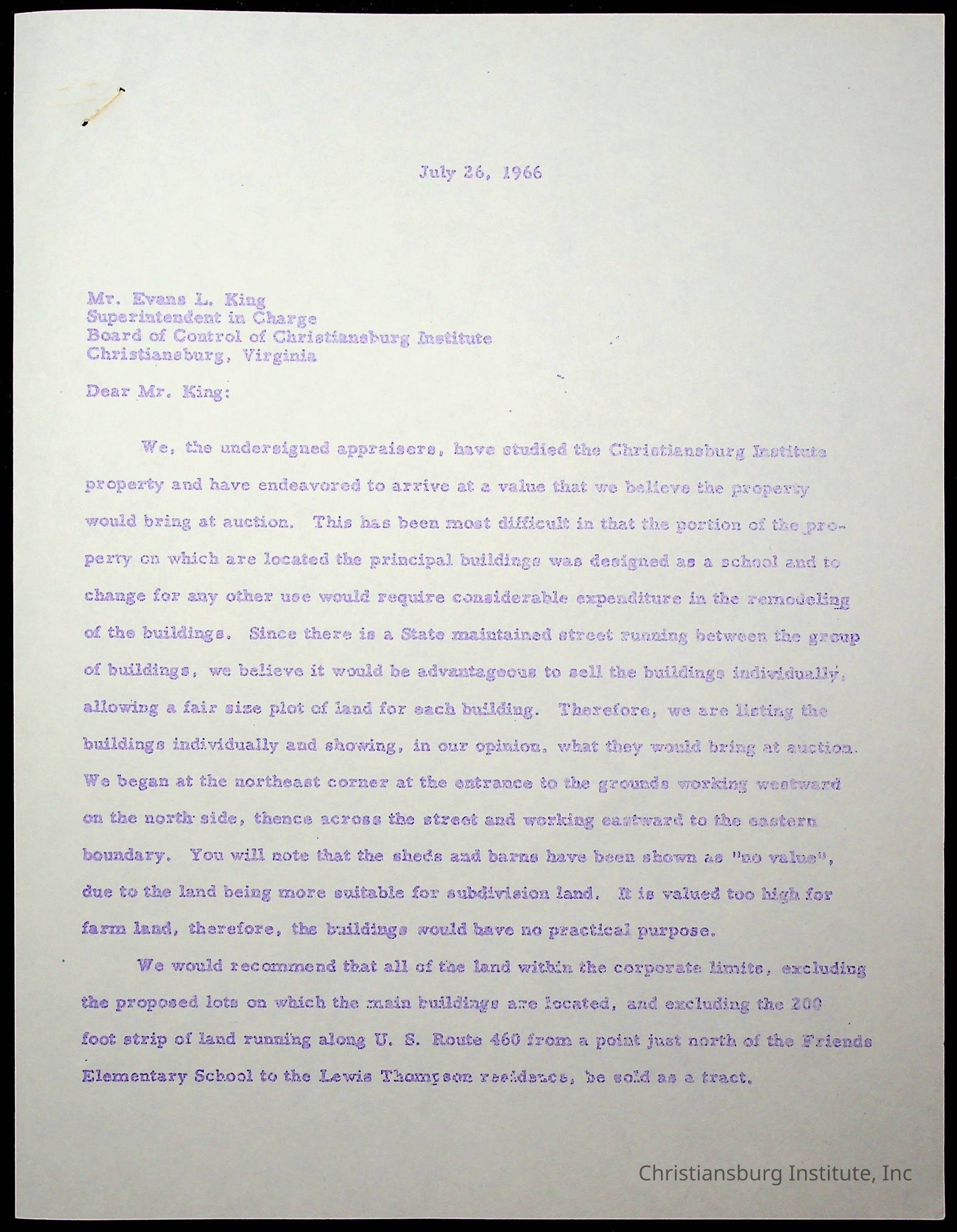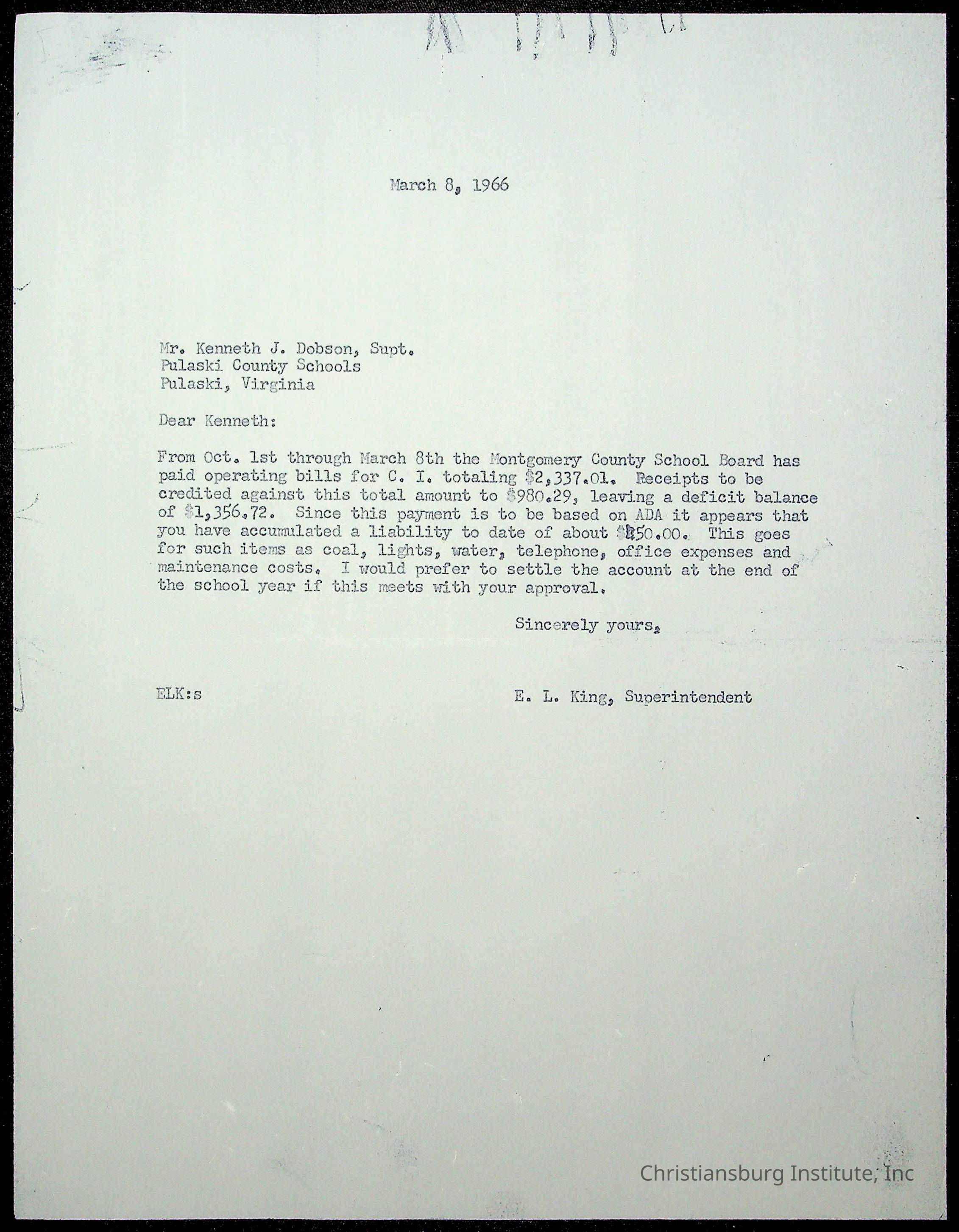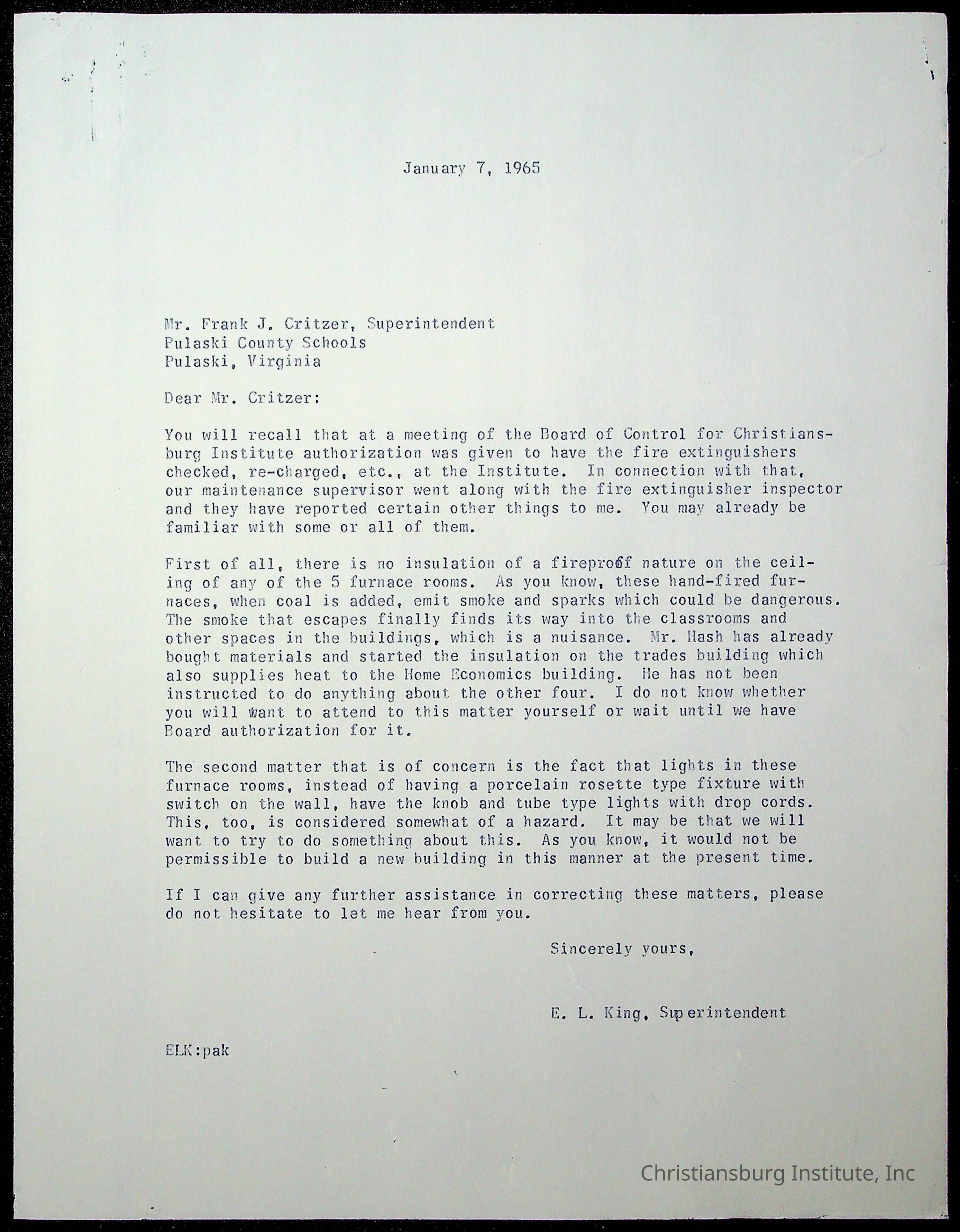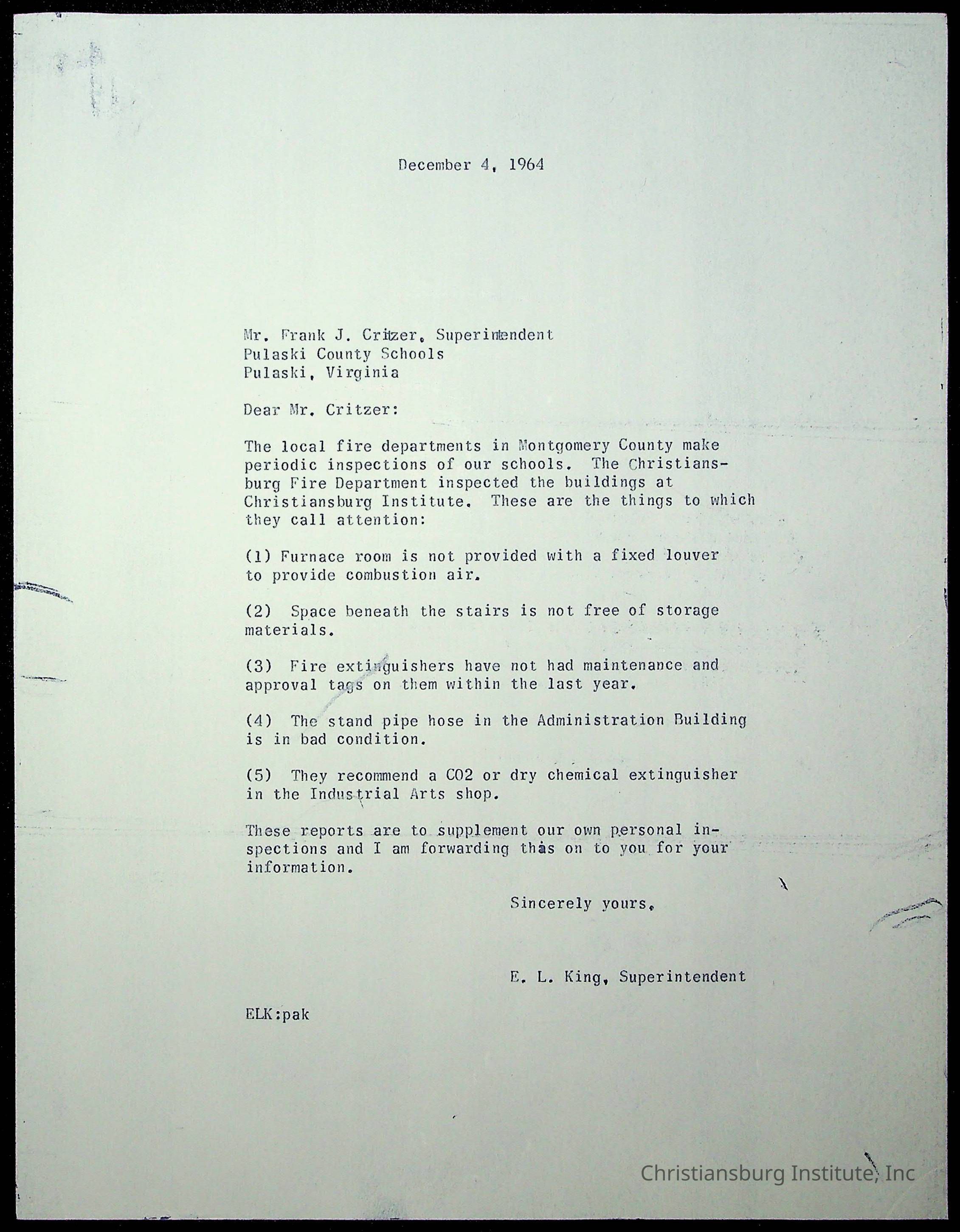 King, Evans L. Superintendent, circa 1960sScope and Content