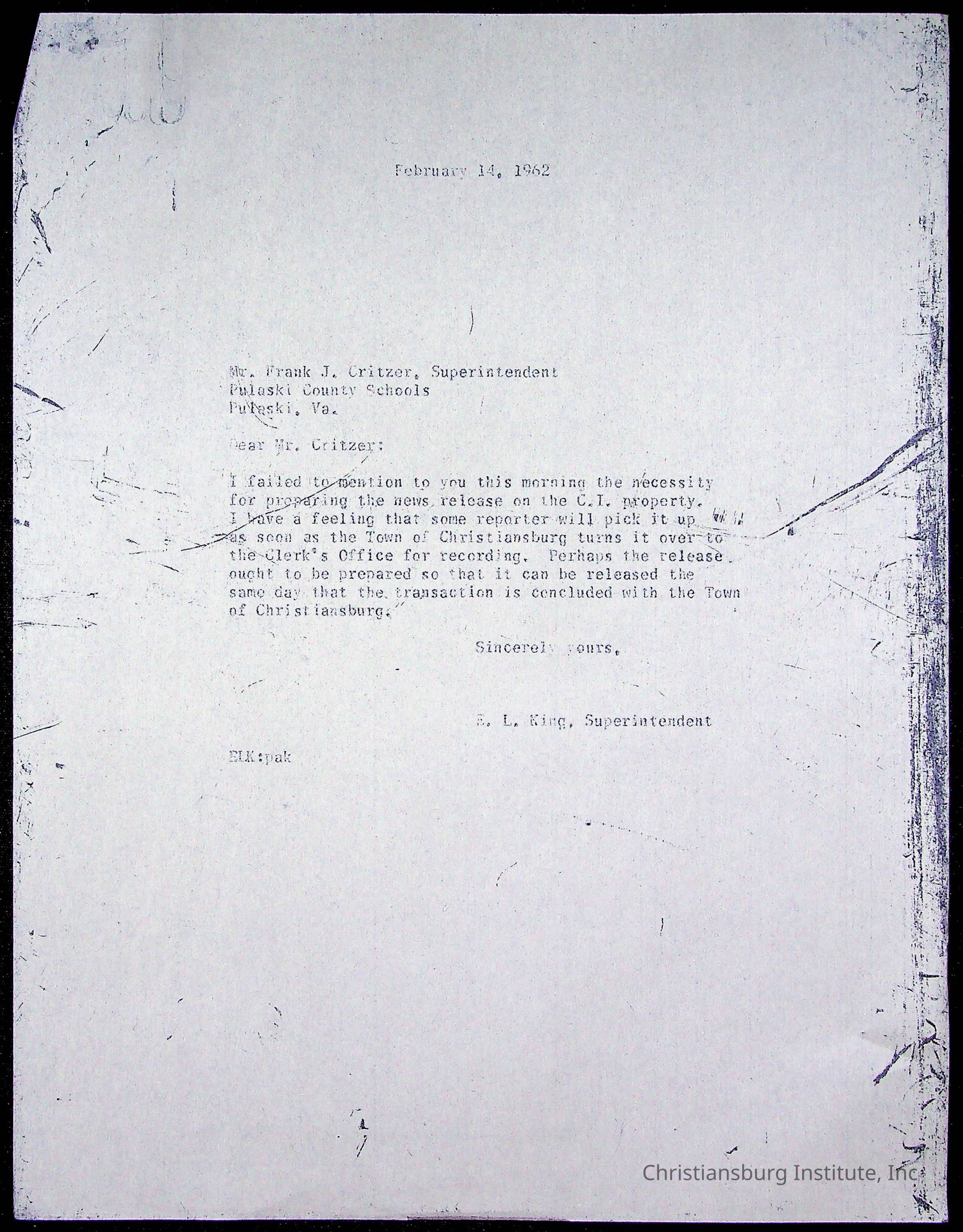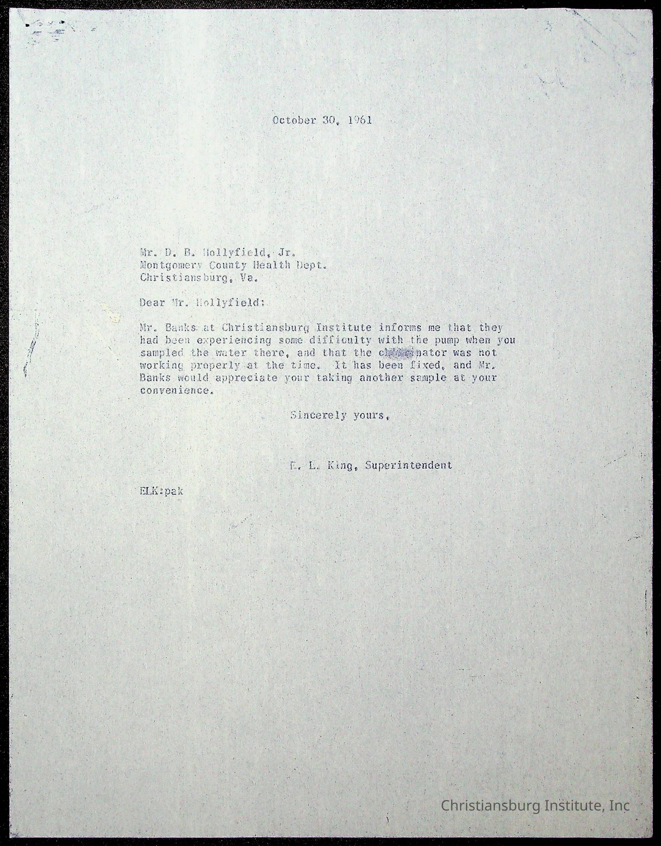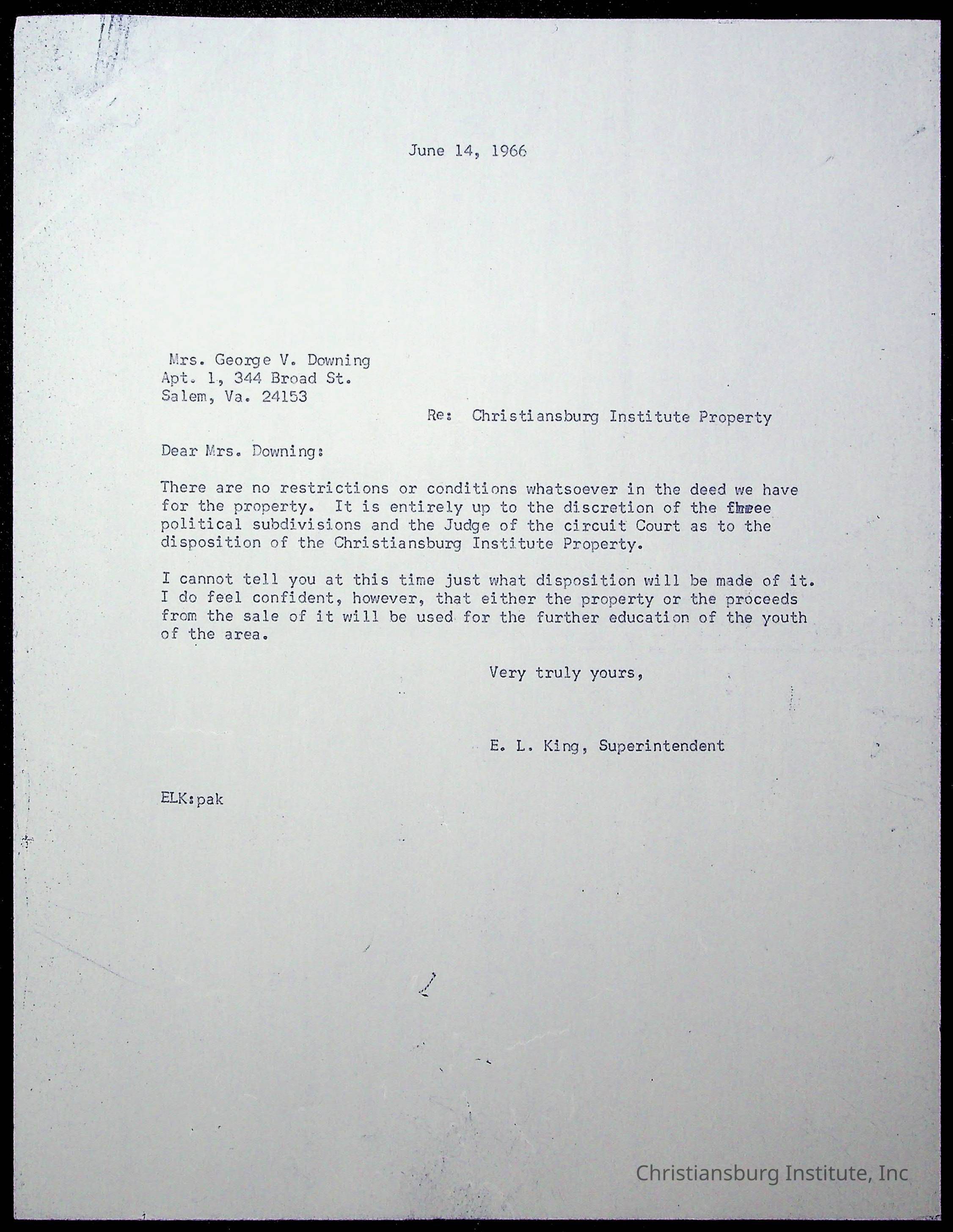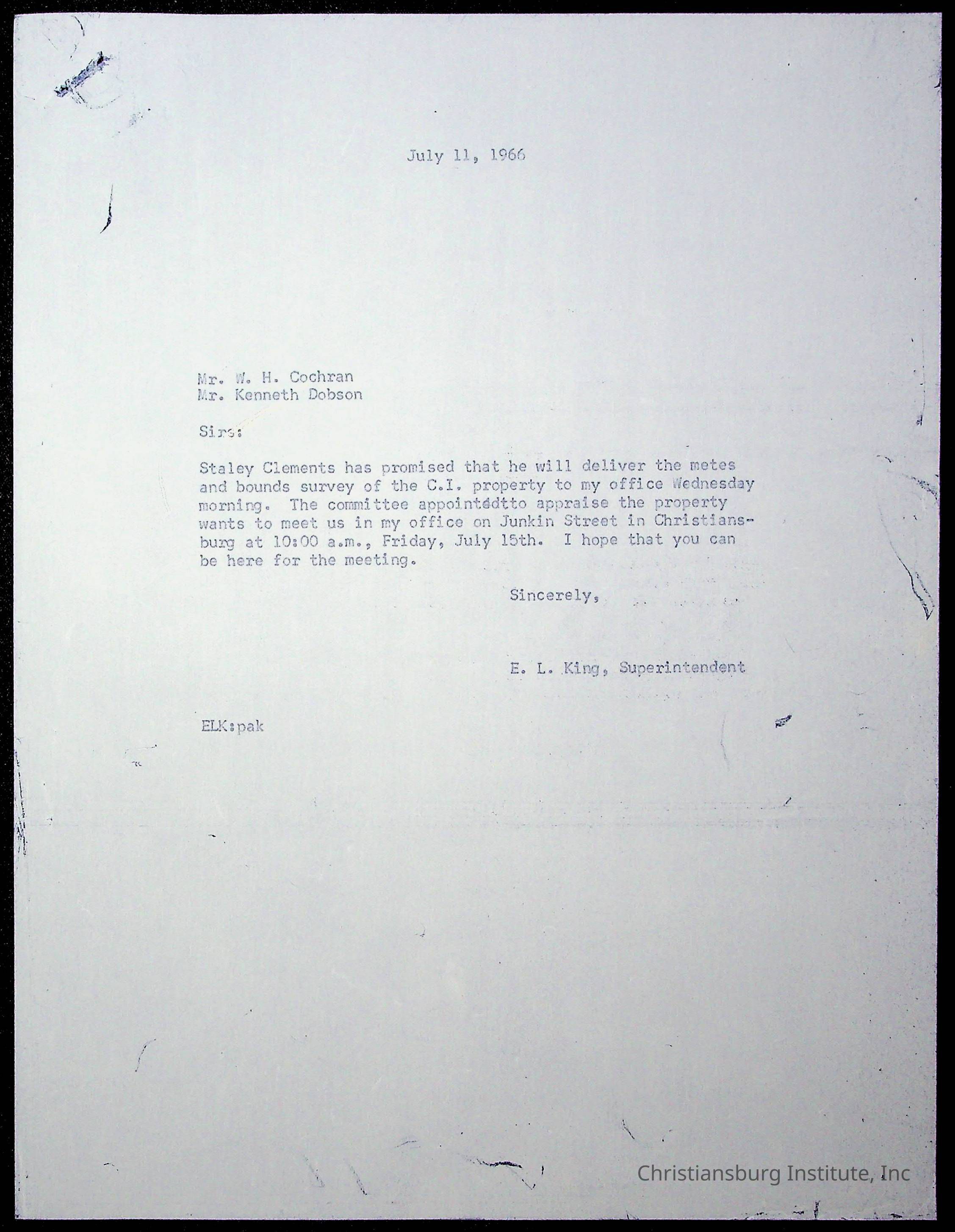 King, Evans L. Superintendent, circa 1960sScope and Content