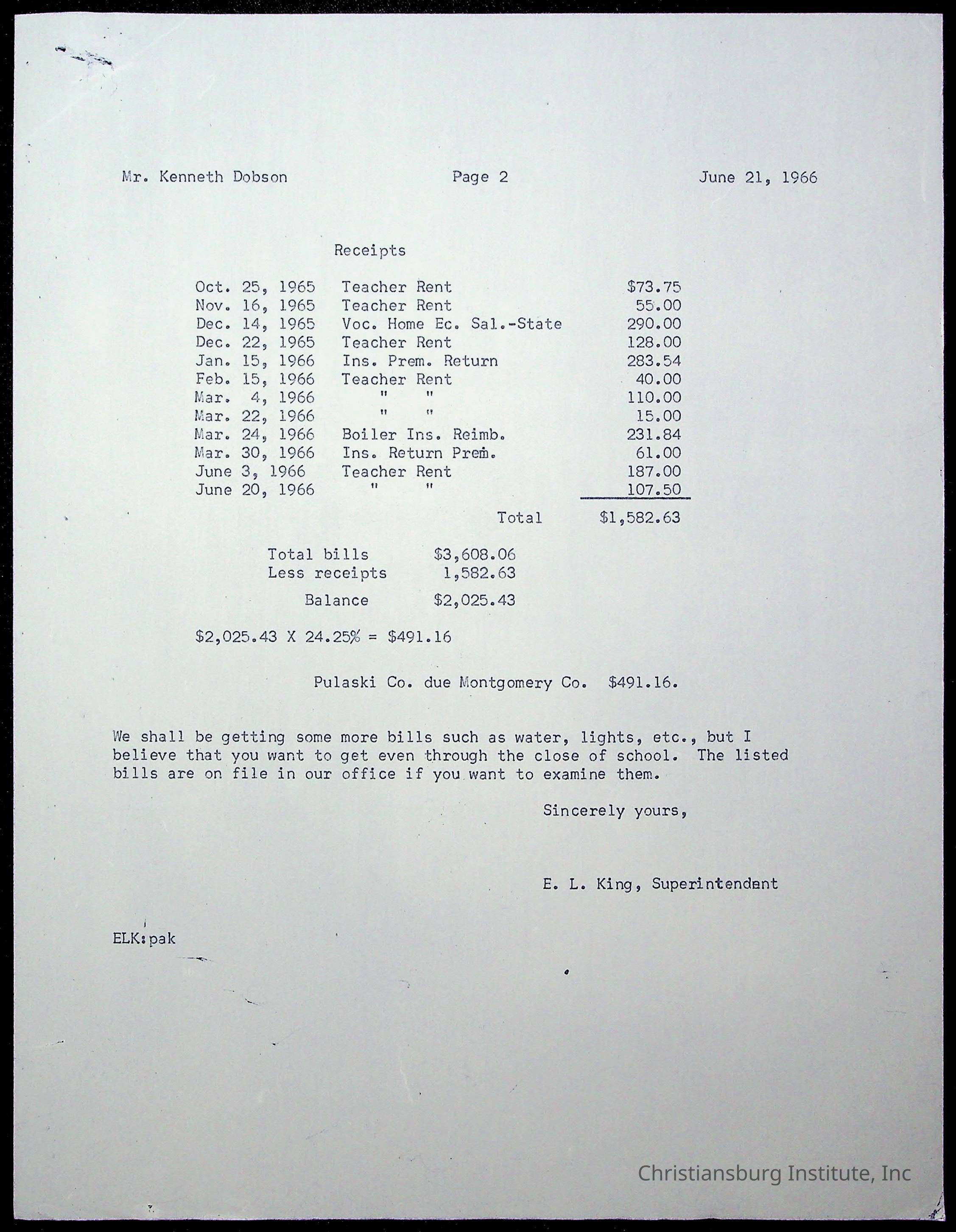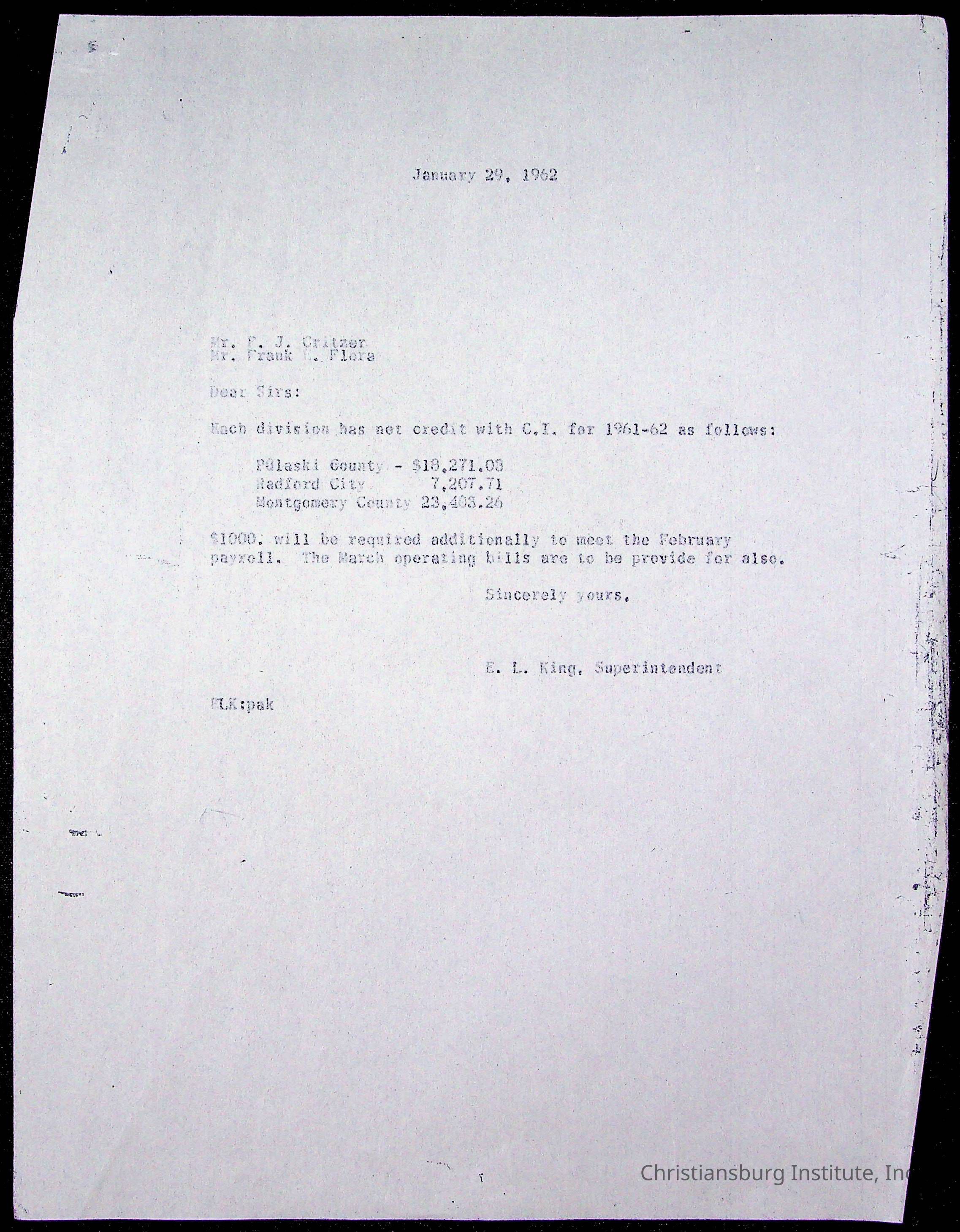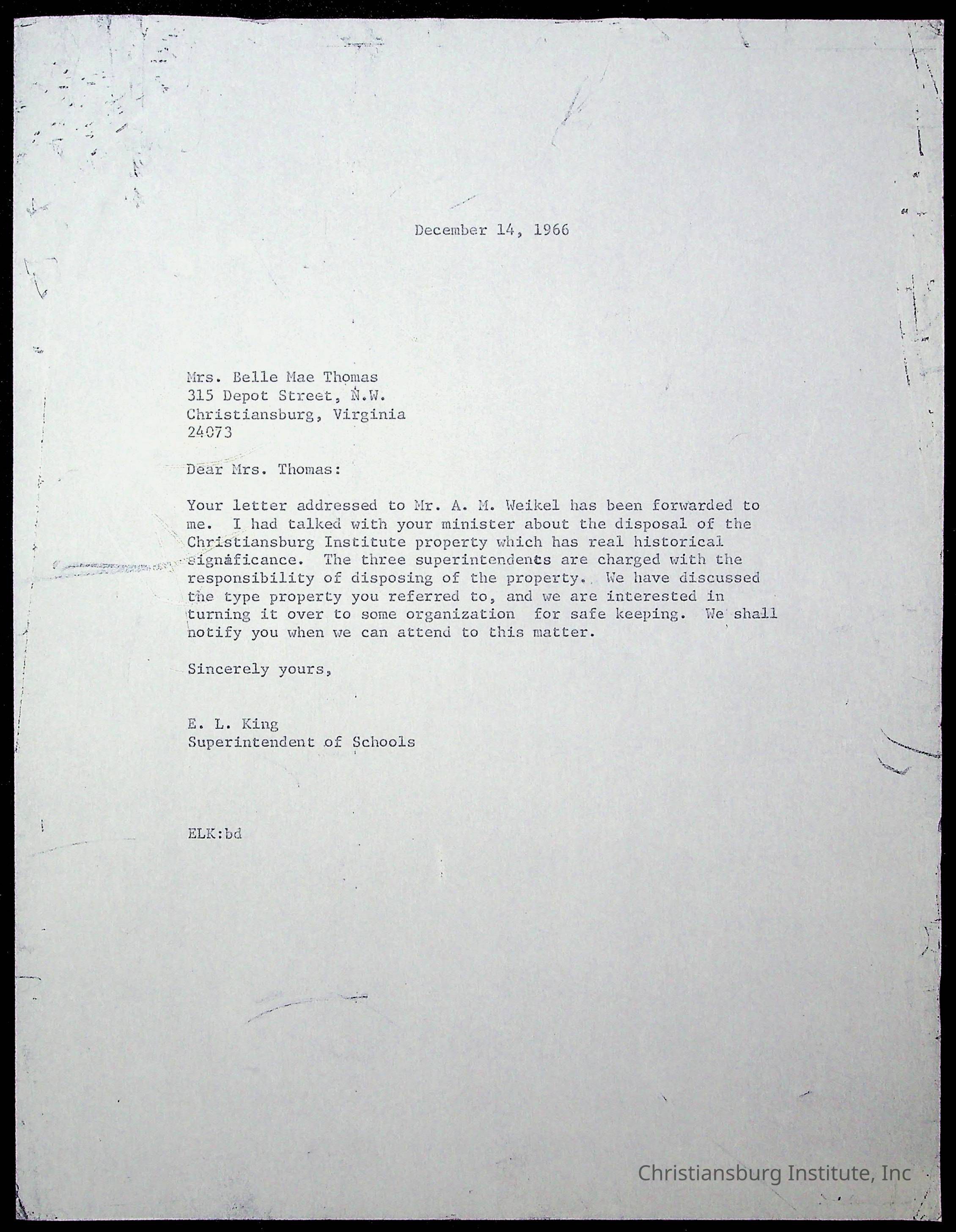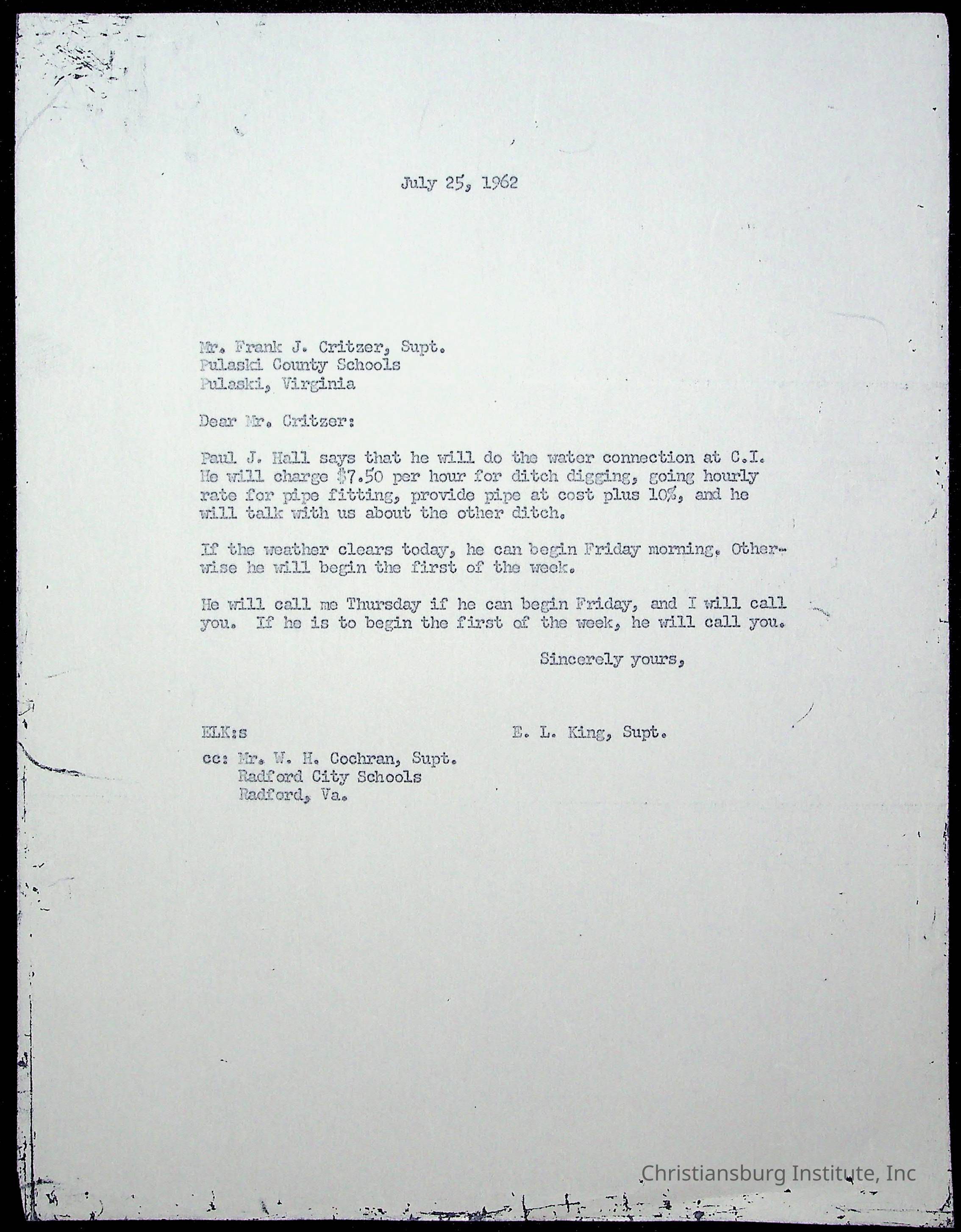 King, Evans L. Superintendent, circa 1960sScope and Content