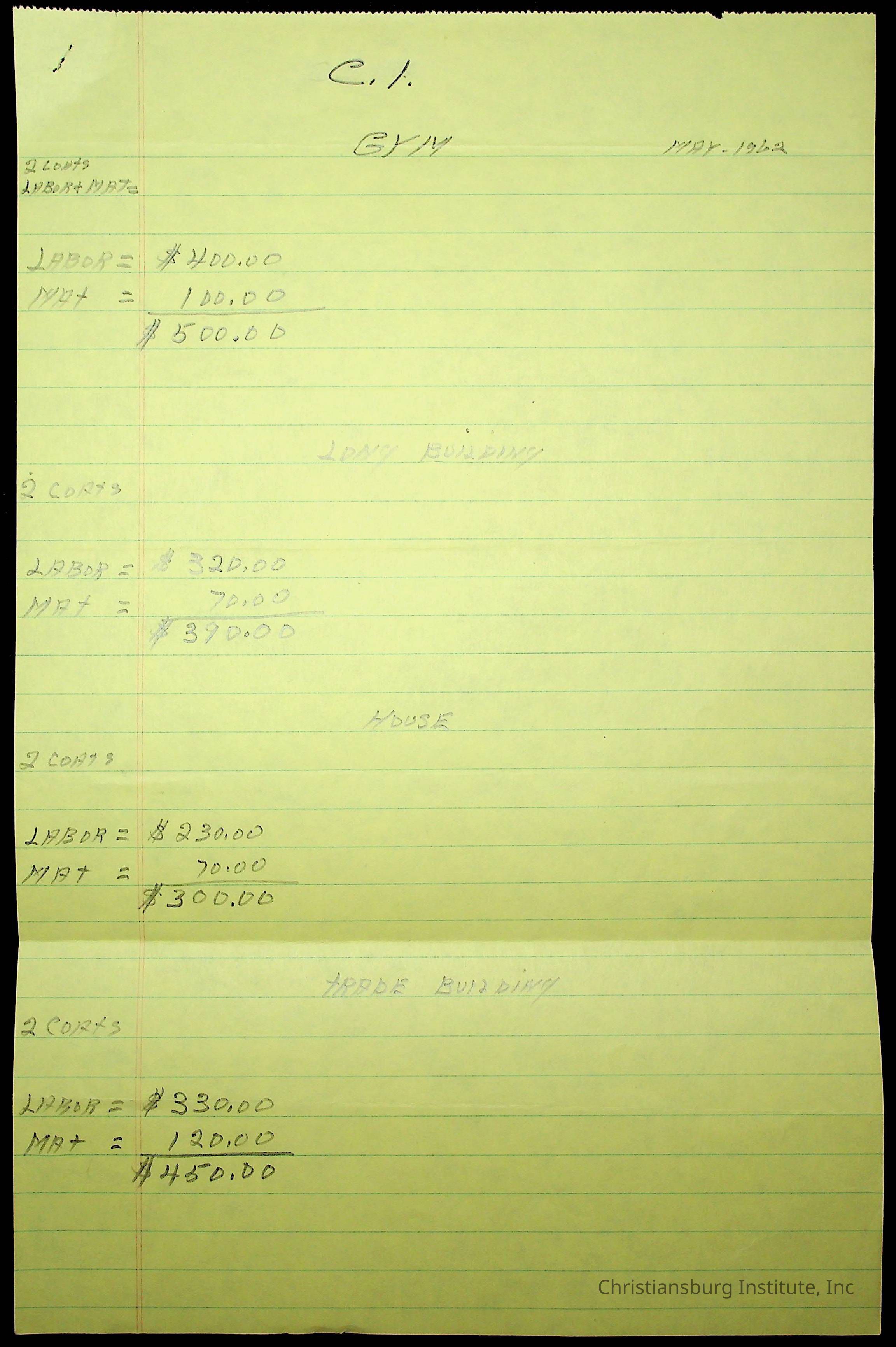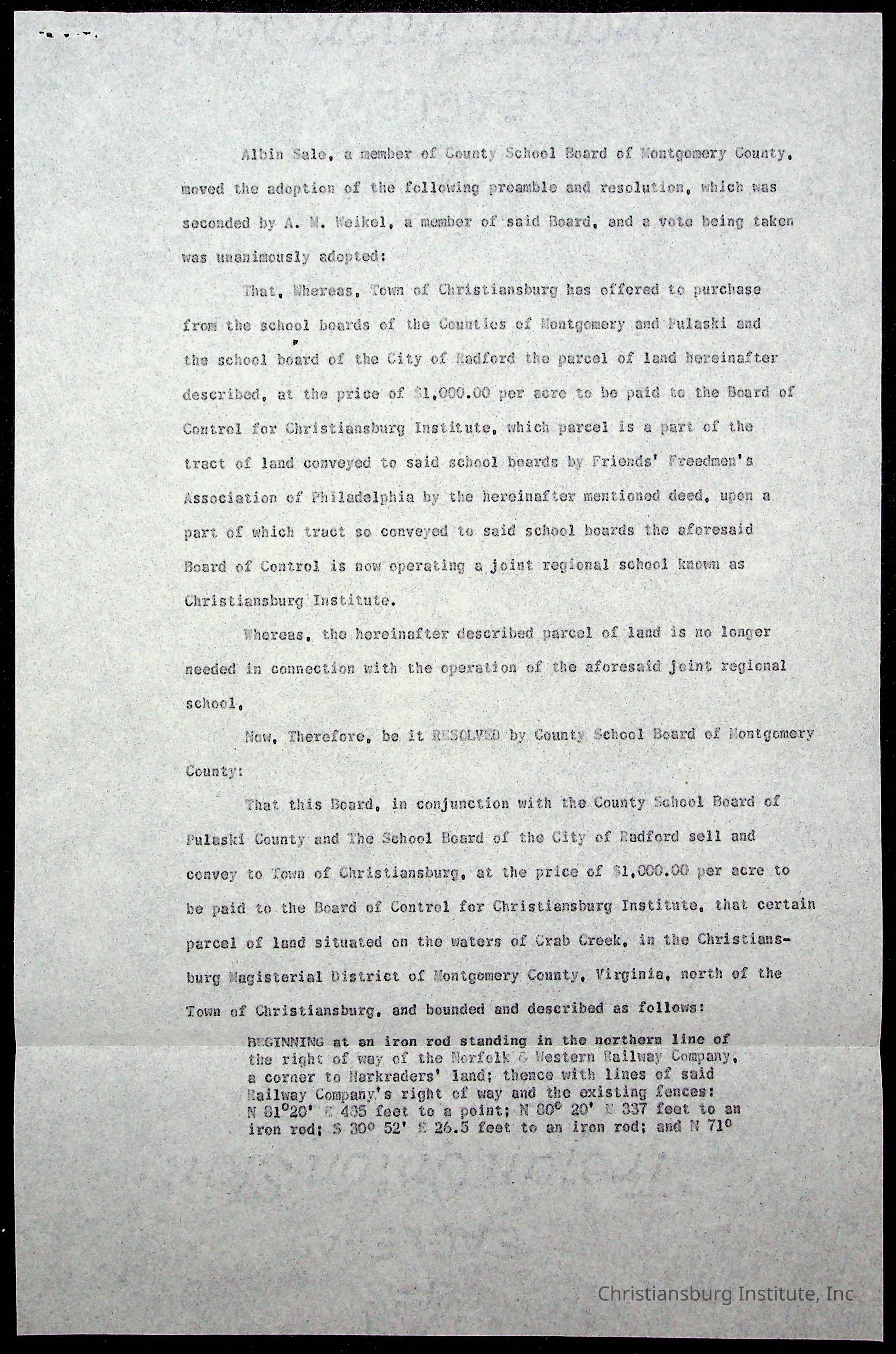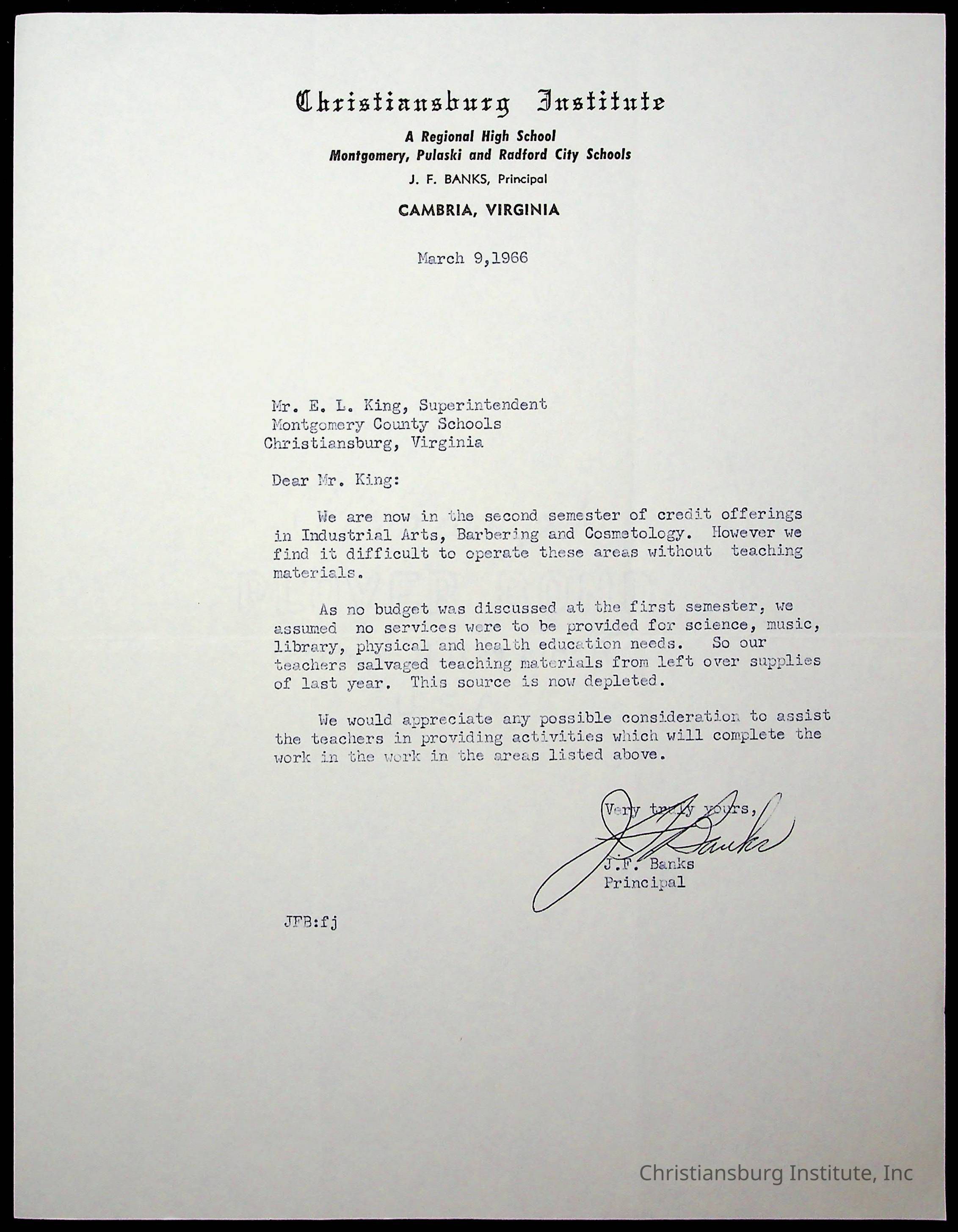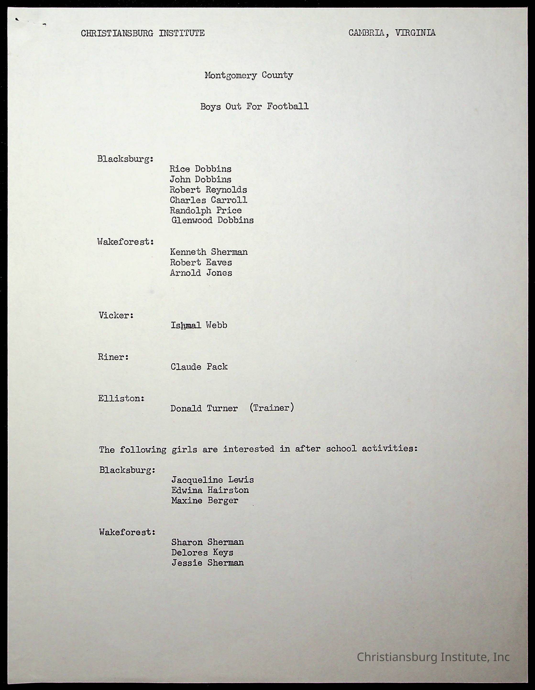 Copyright has been assigned to Christiansburg Institute Museum & Archives by Montgomery County Public Schools. For permission to publish materials created by the donor, contact CIMA@christiansburginstitute.com. Materials not created by Christiansburg Industrial Institute may still be under copyright.