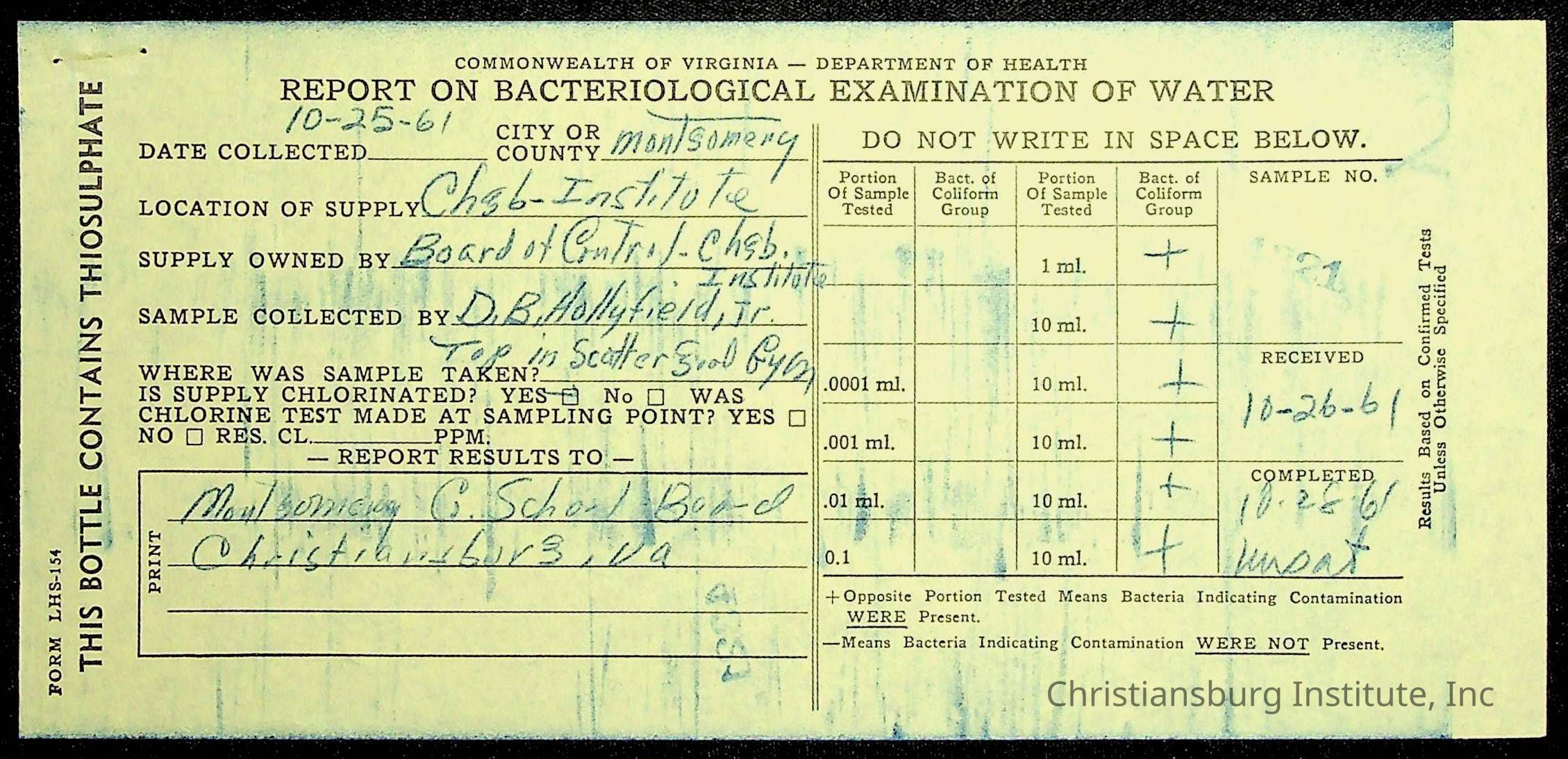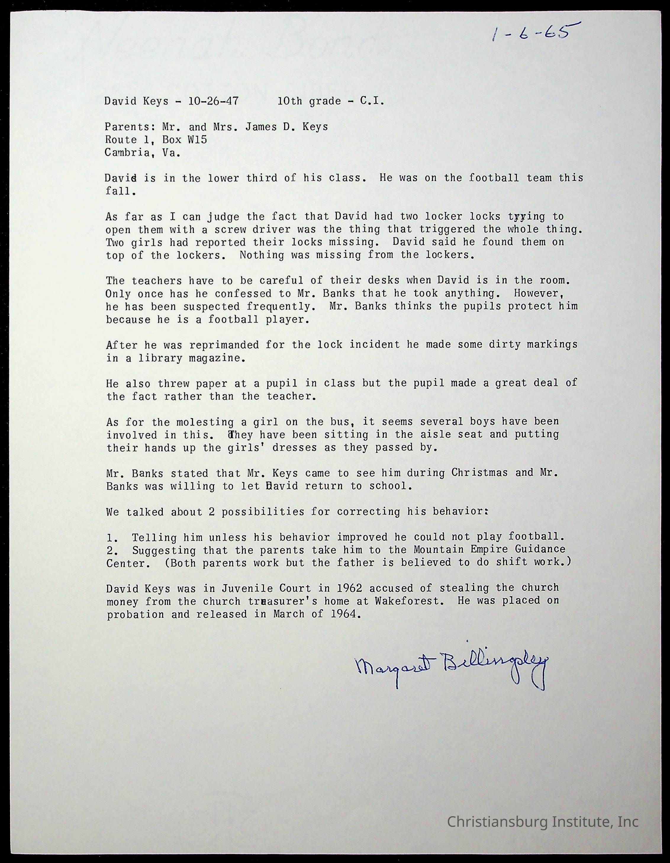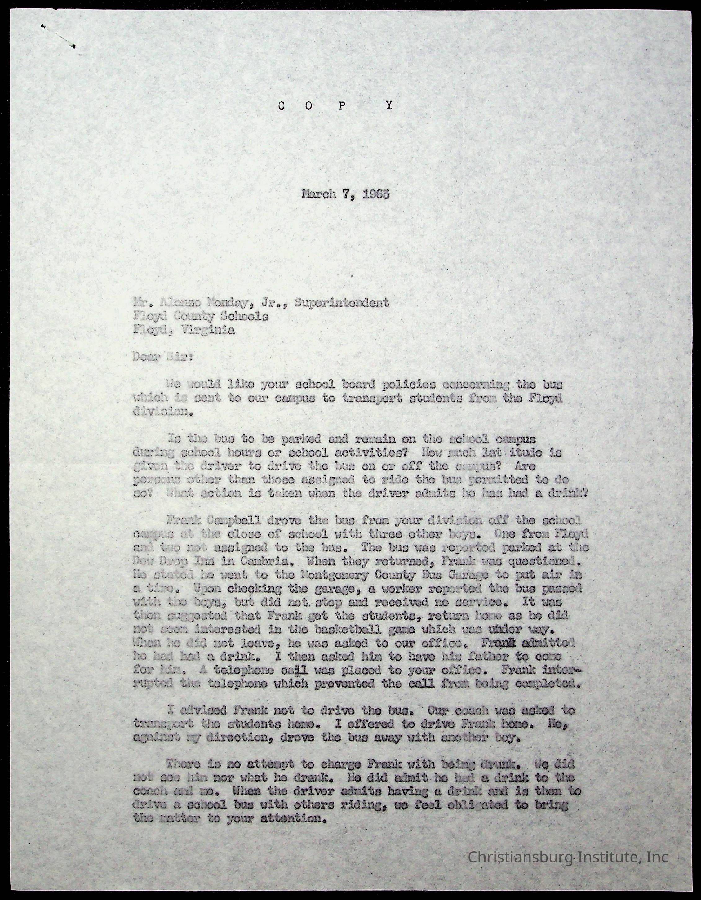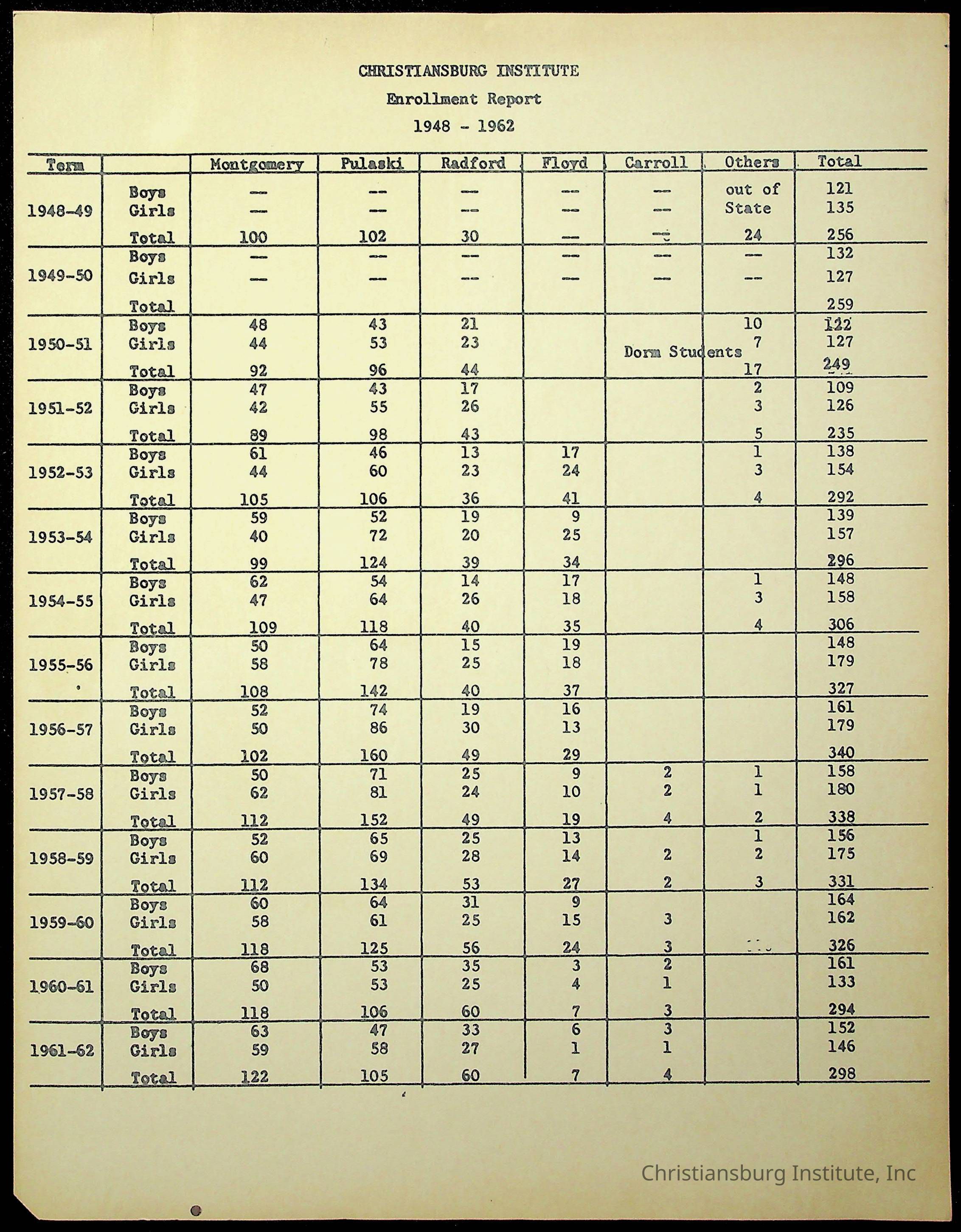 Copyright has been assigned to Christiansburg Institute Museum & Archives by Montgomery County Public Schools. For permission to publish materials created by the donor, contact CIMA@christiansburginstitute.com. Materials not created by Christiansburg Industrial Institute may still be under copyright.