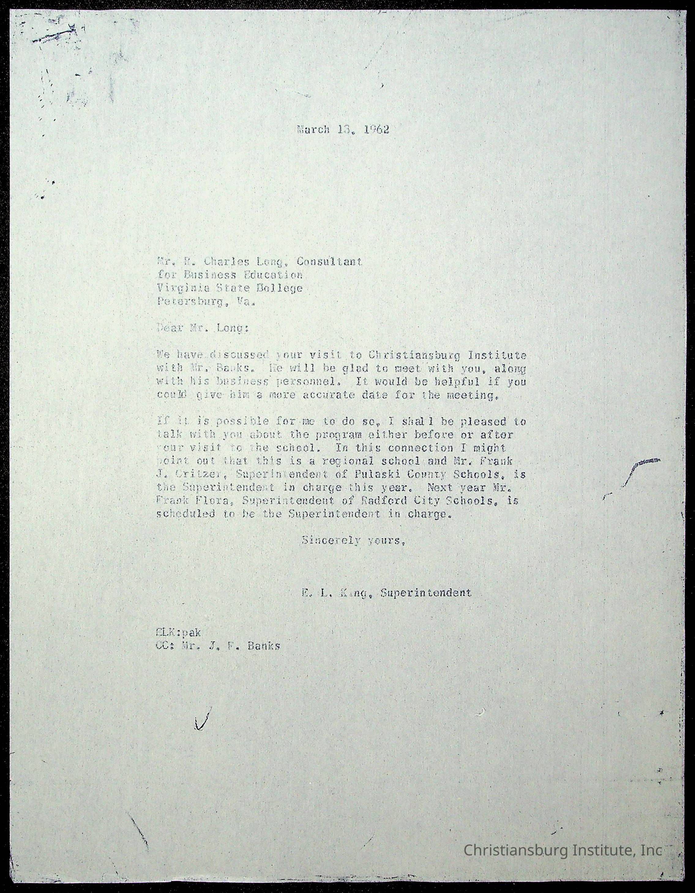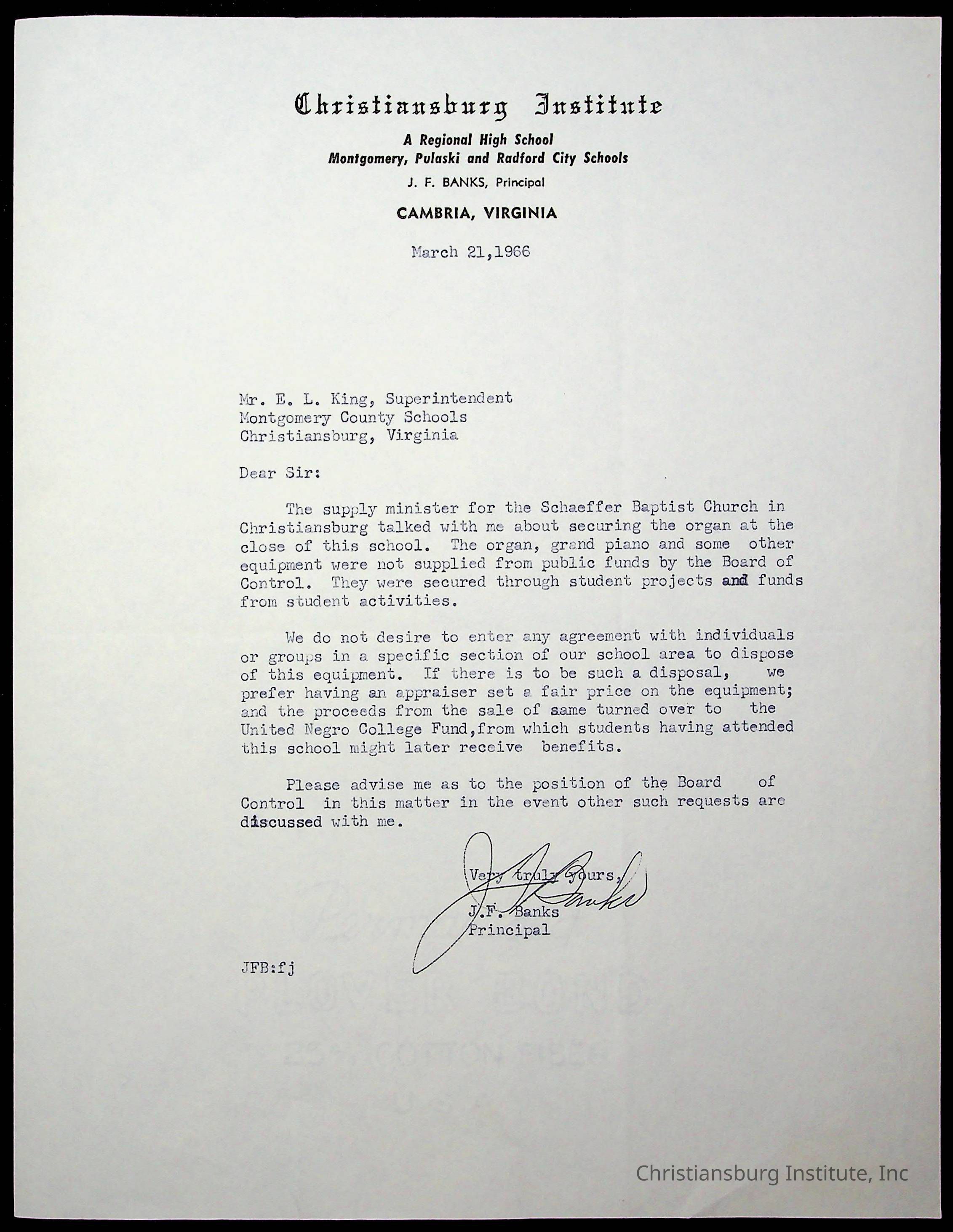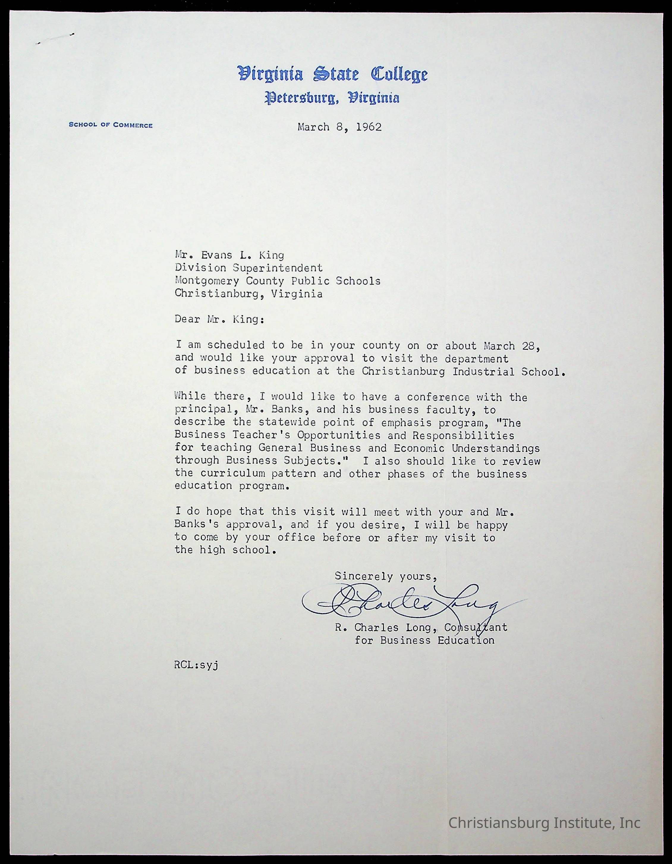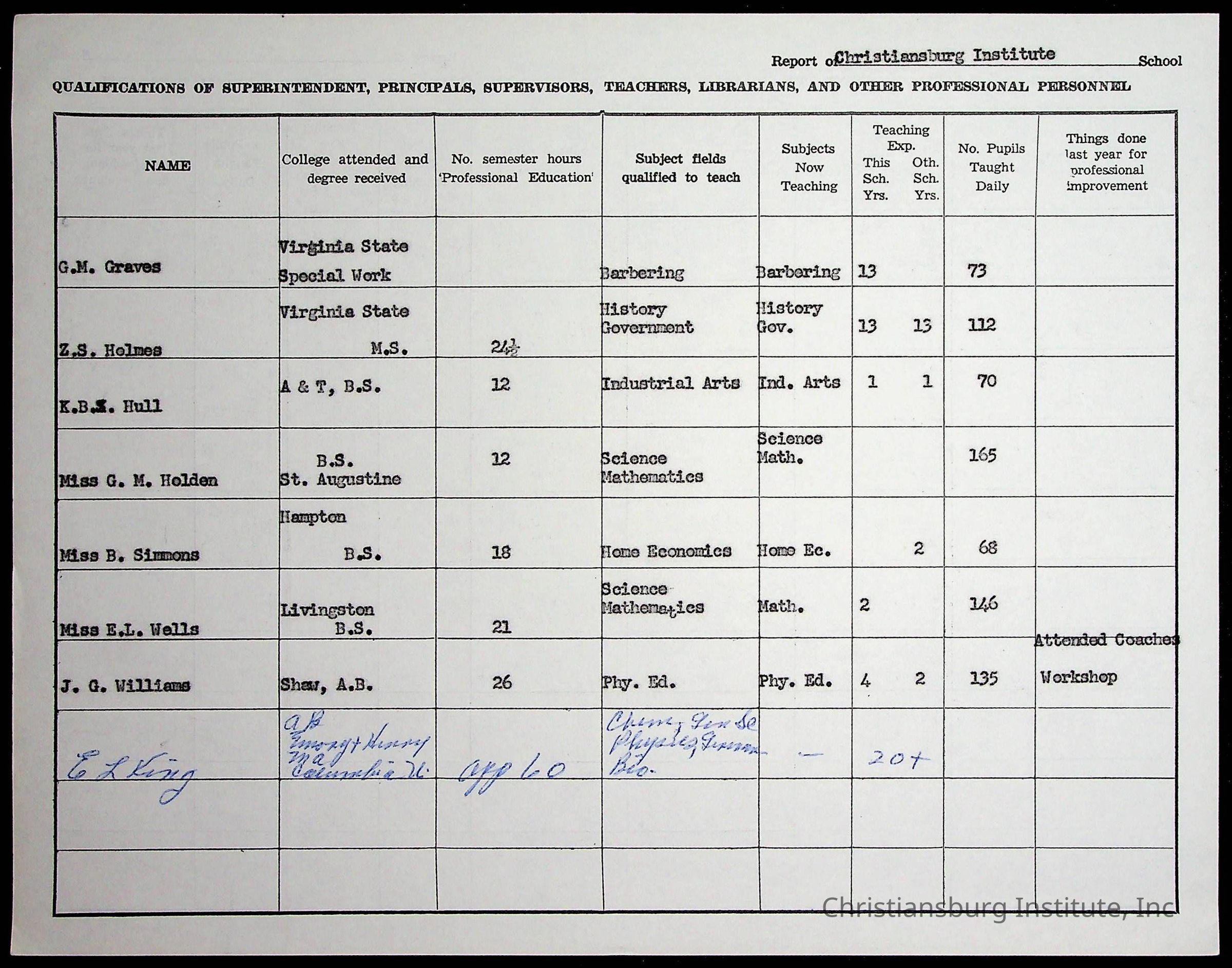 An archive of materials relating to the superintendent of the Board of Control of Christiansburg Institute, Evans l. King, circa 1960s.Collection