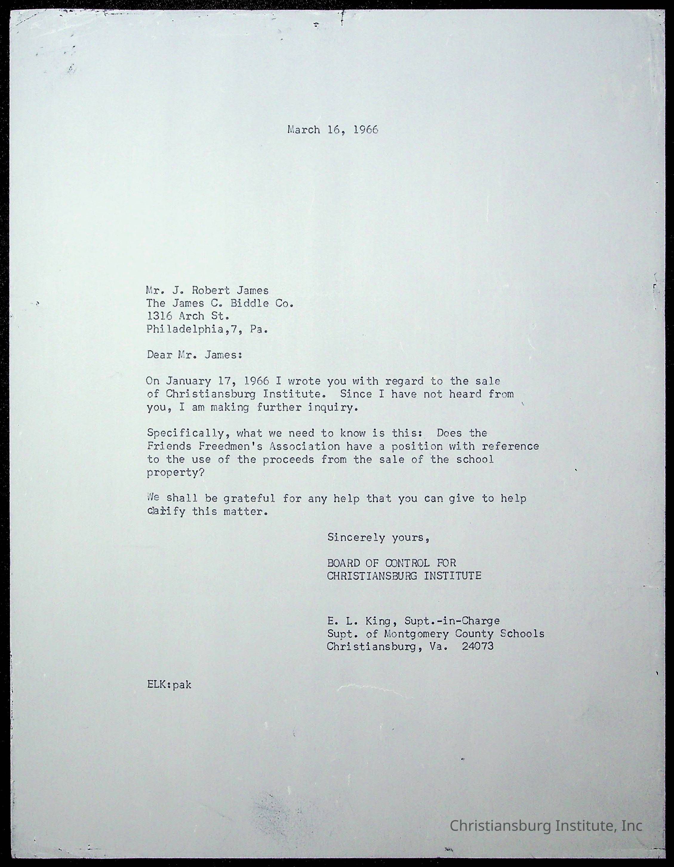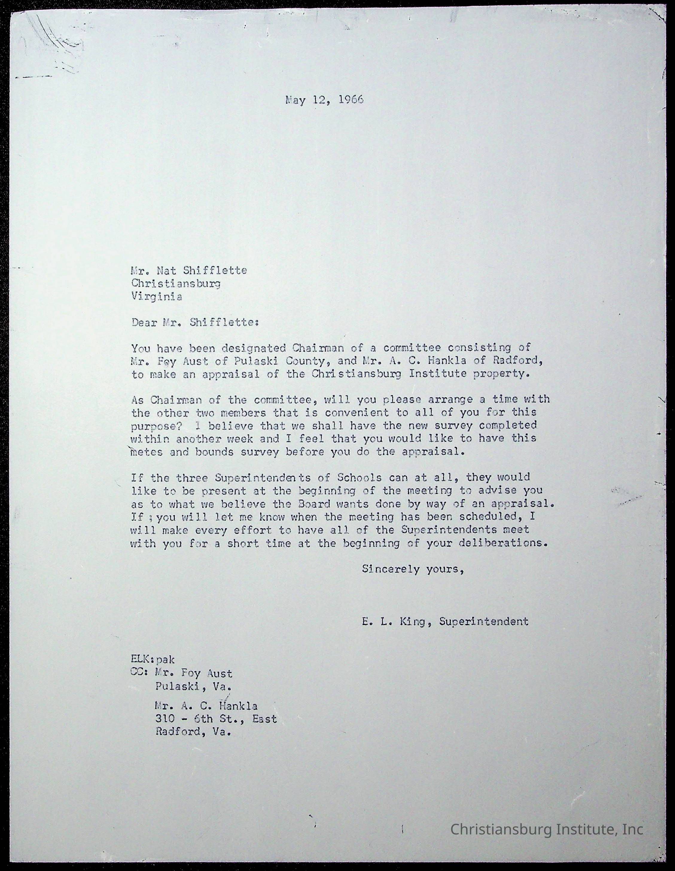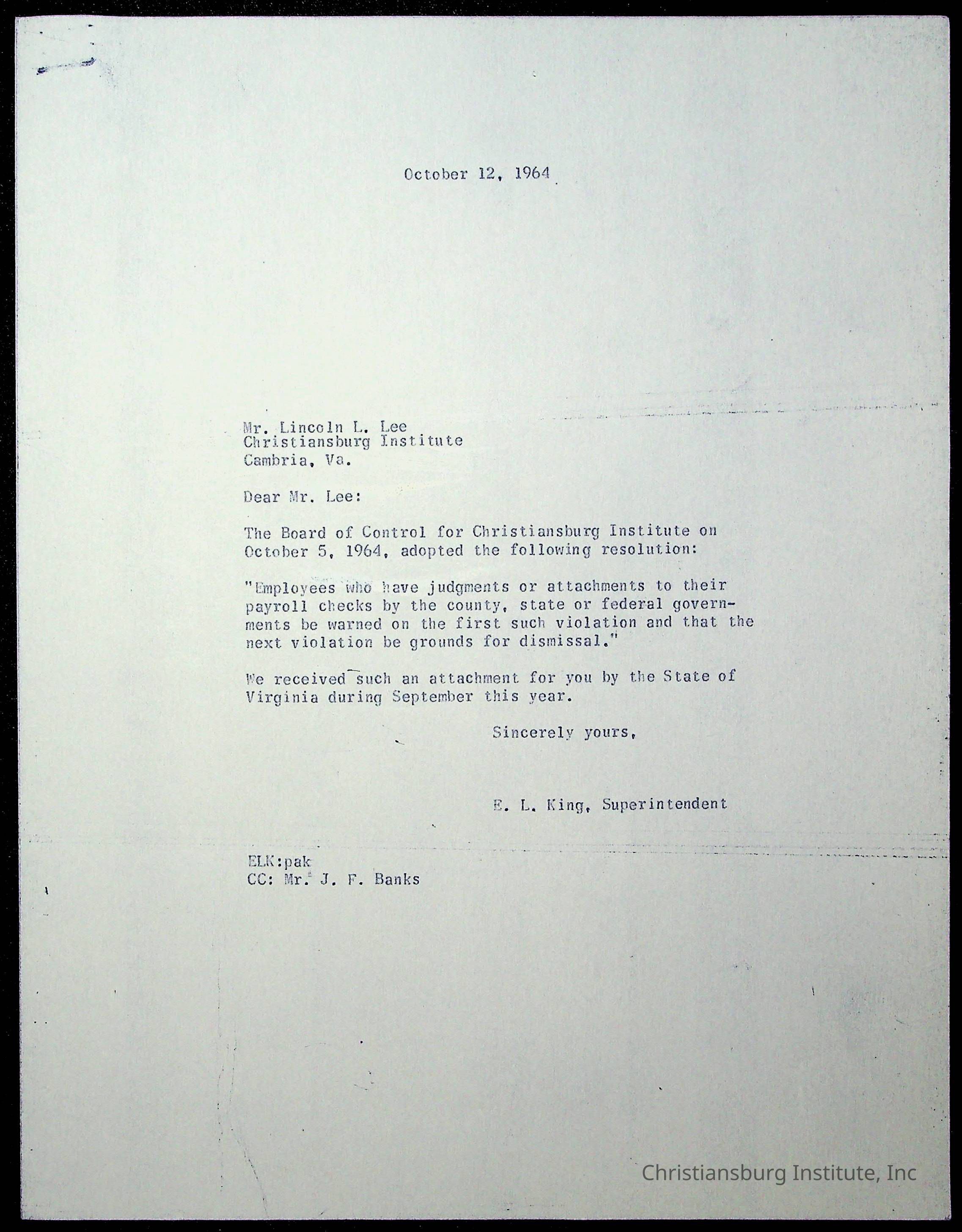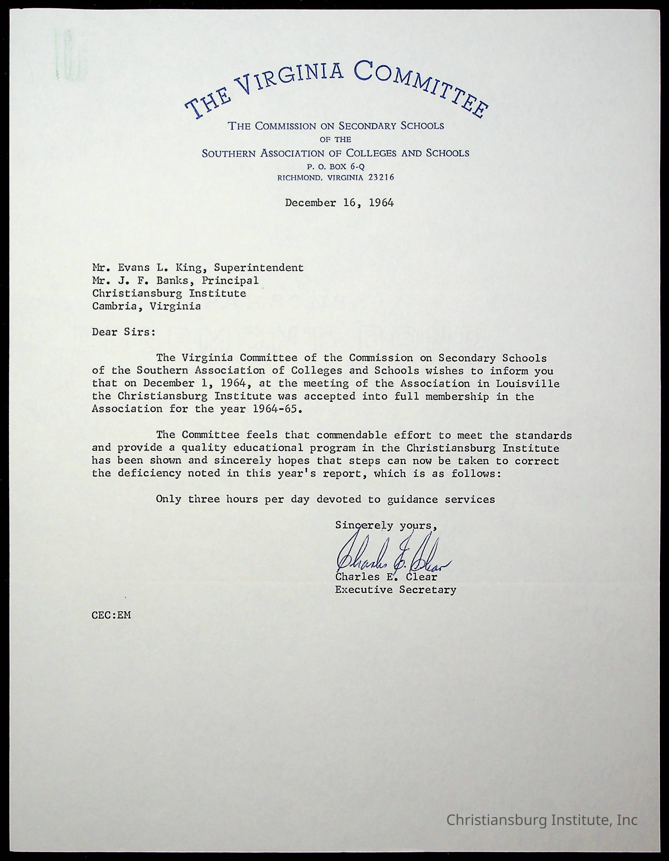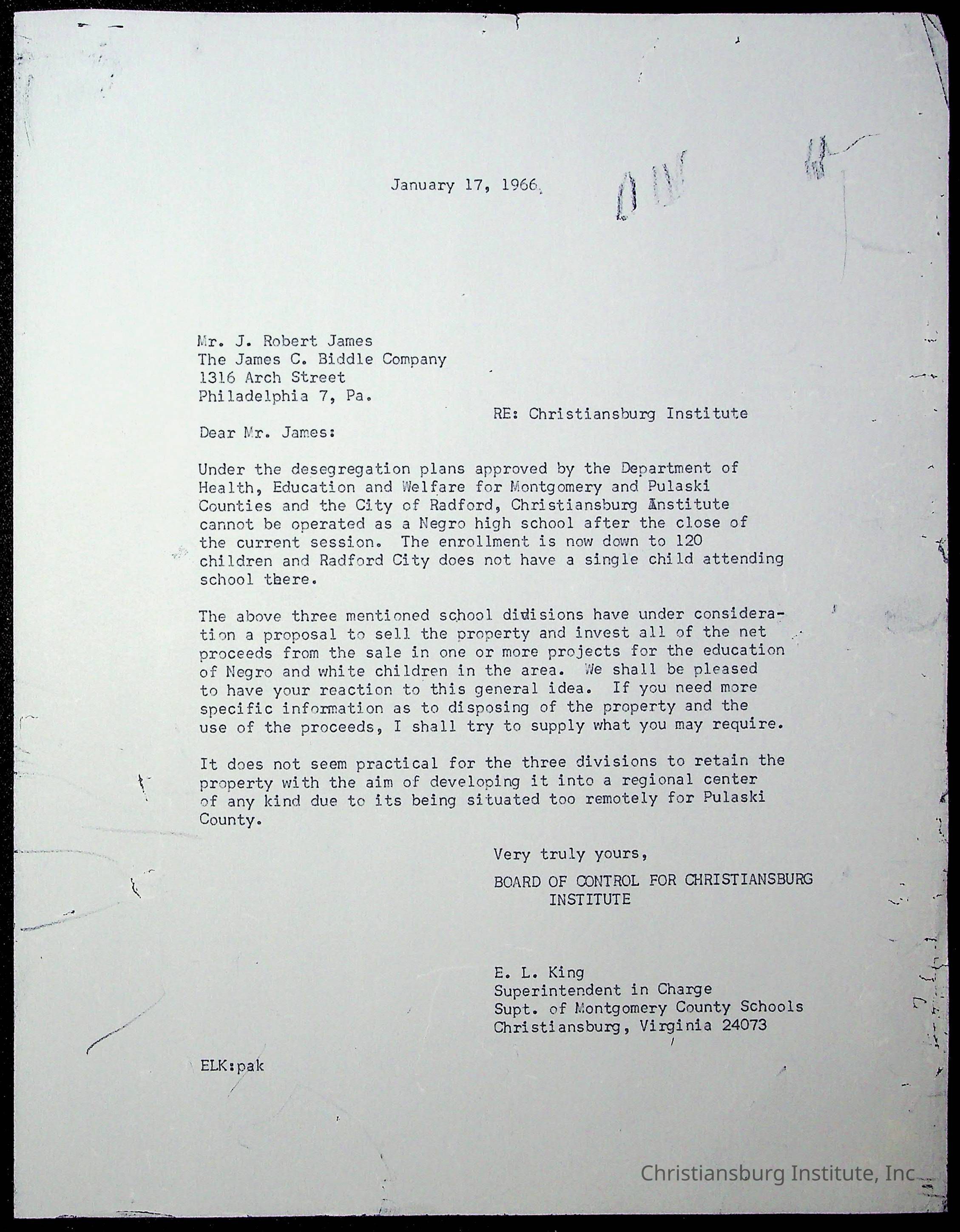 An archive of materials relating to the superintendent of the Board of Control of Christiansburg Institute, Evans l. King, circa 1960s.Collection