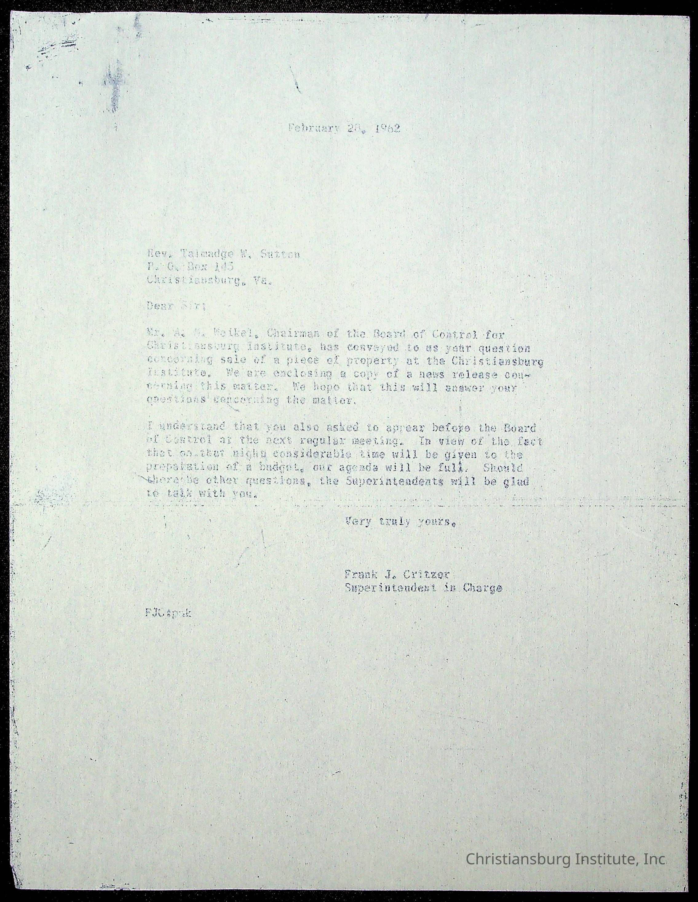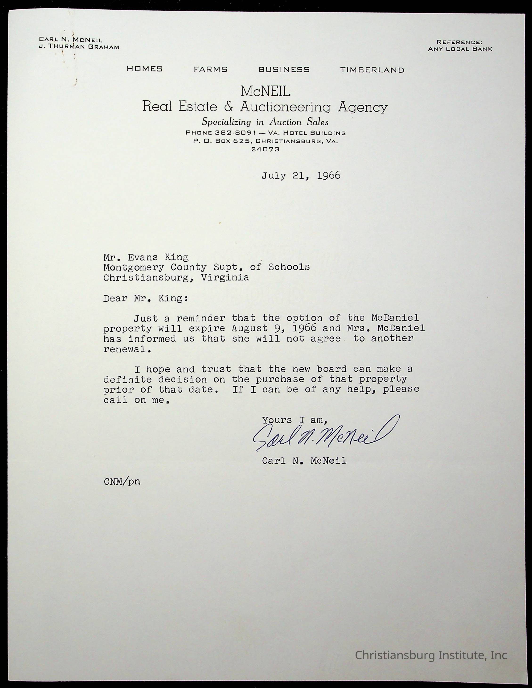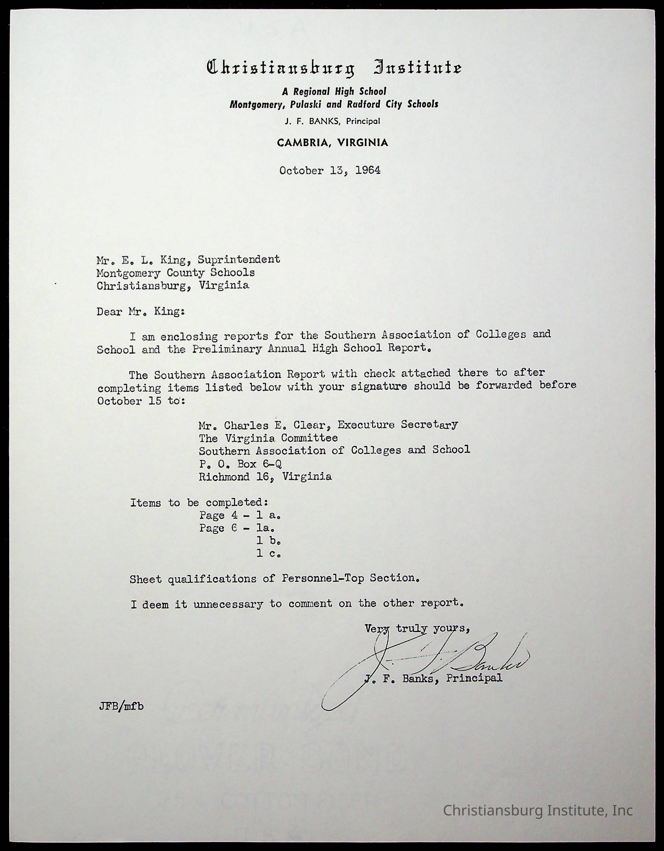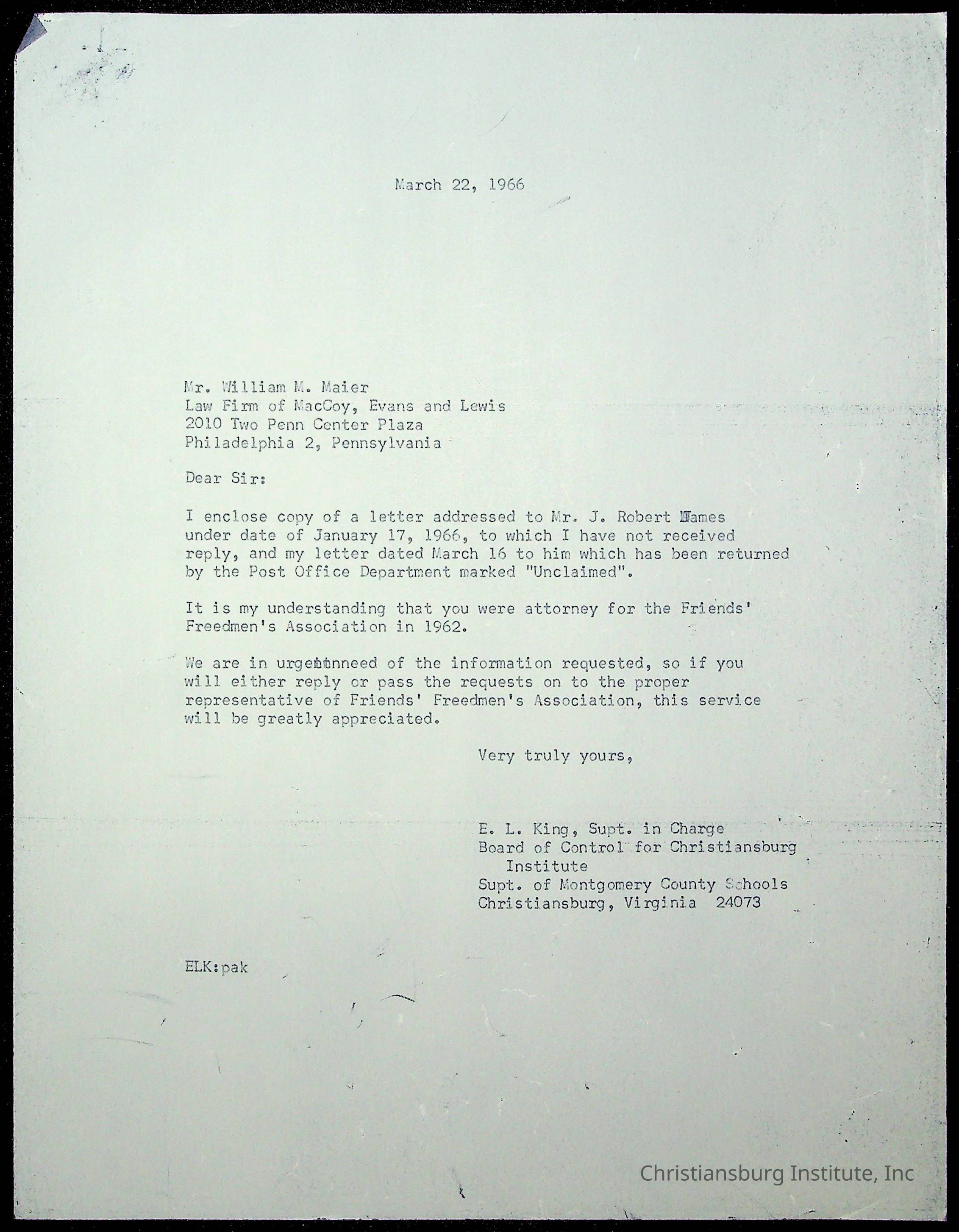 An archive of materials relating to the superintendent of the Board of Control of Christiansburg Institute, Evans l. King, circa 1960s.Collection