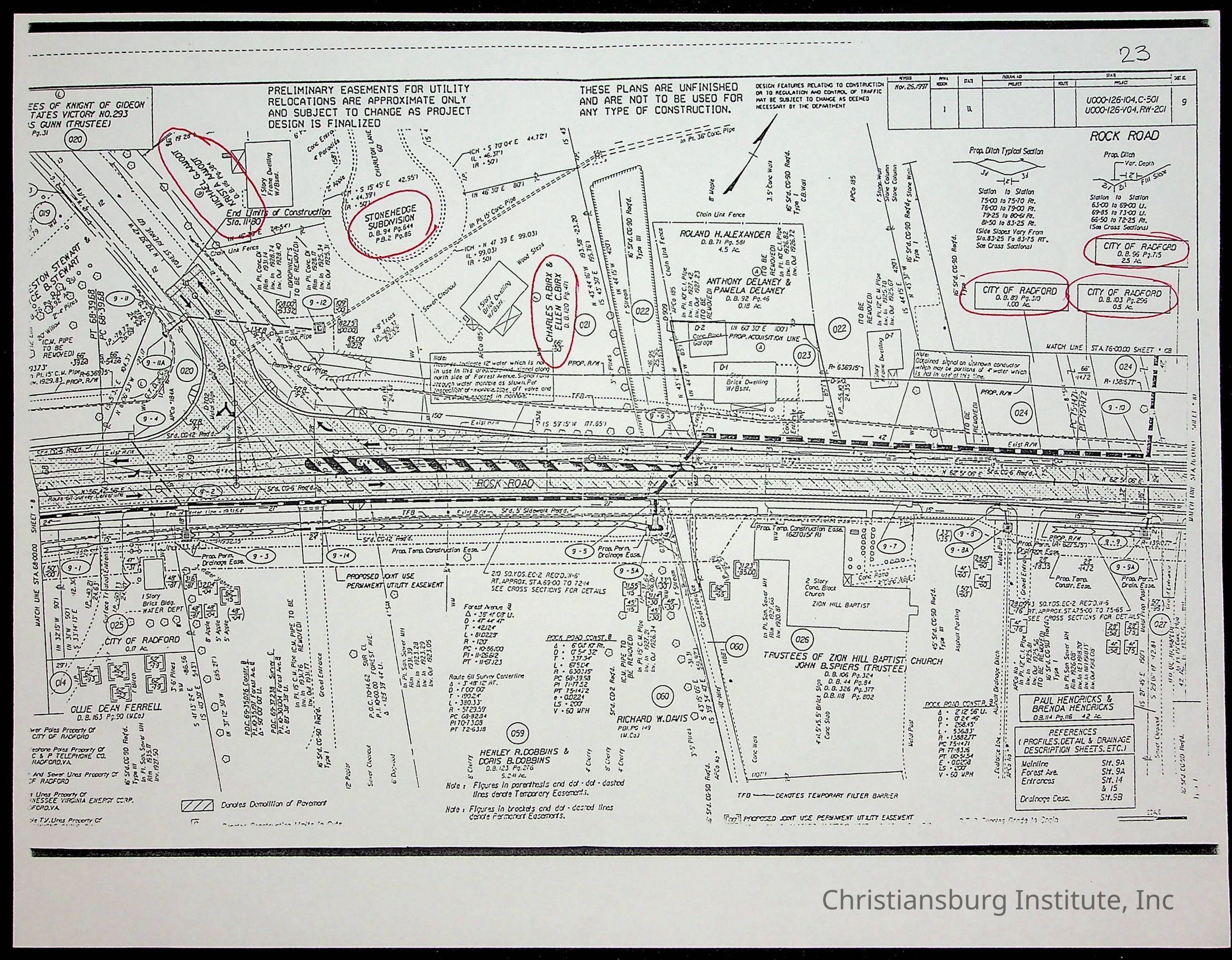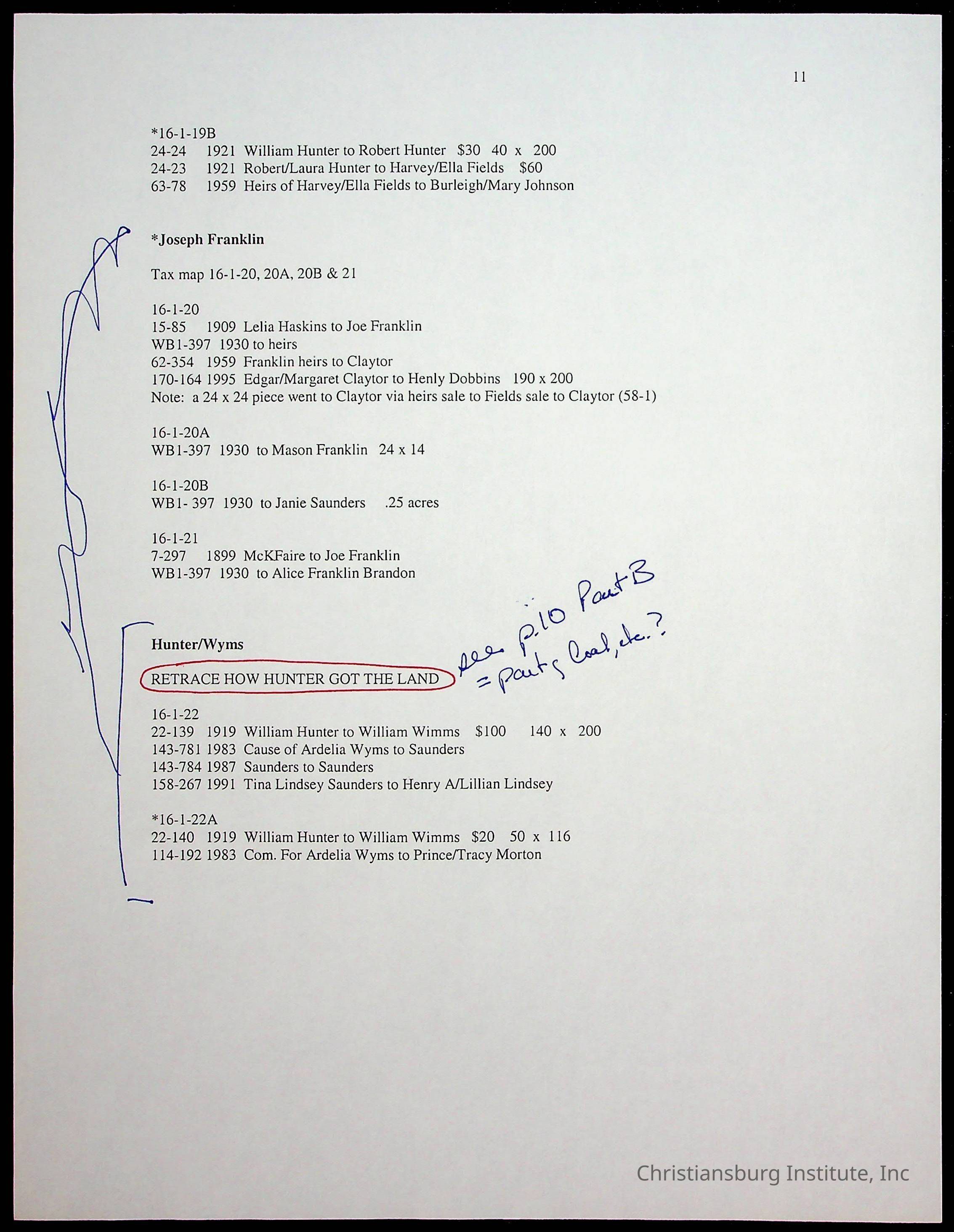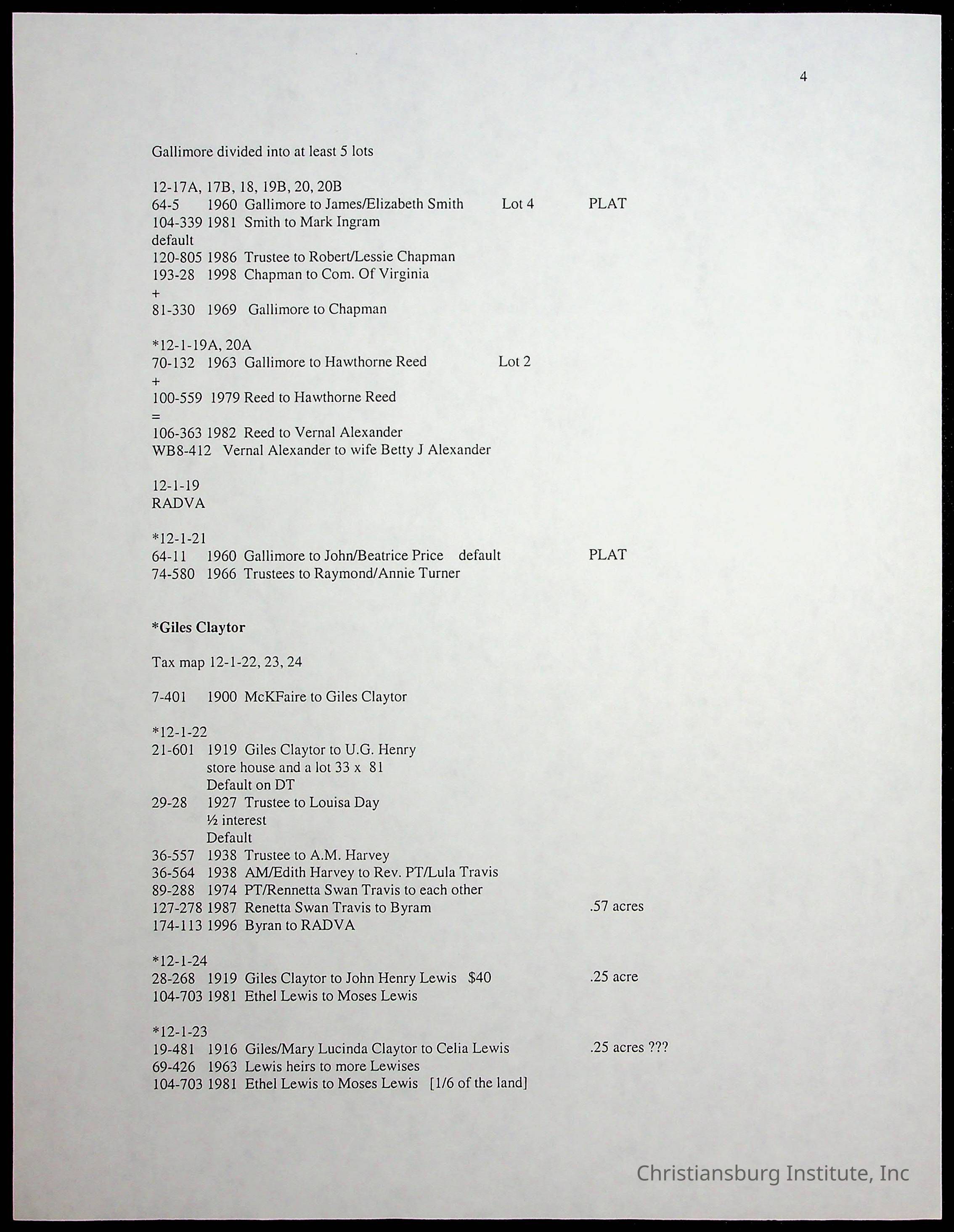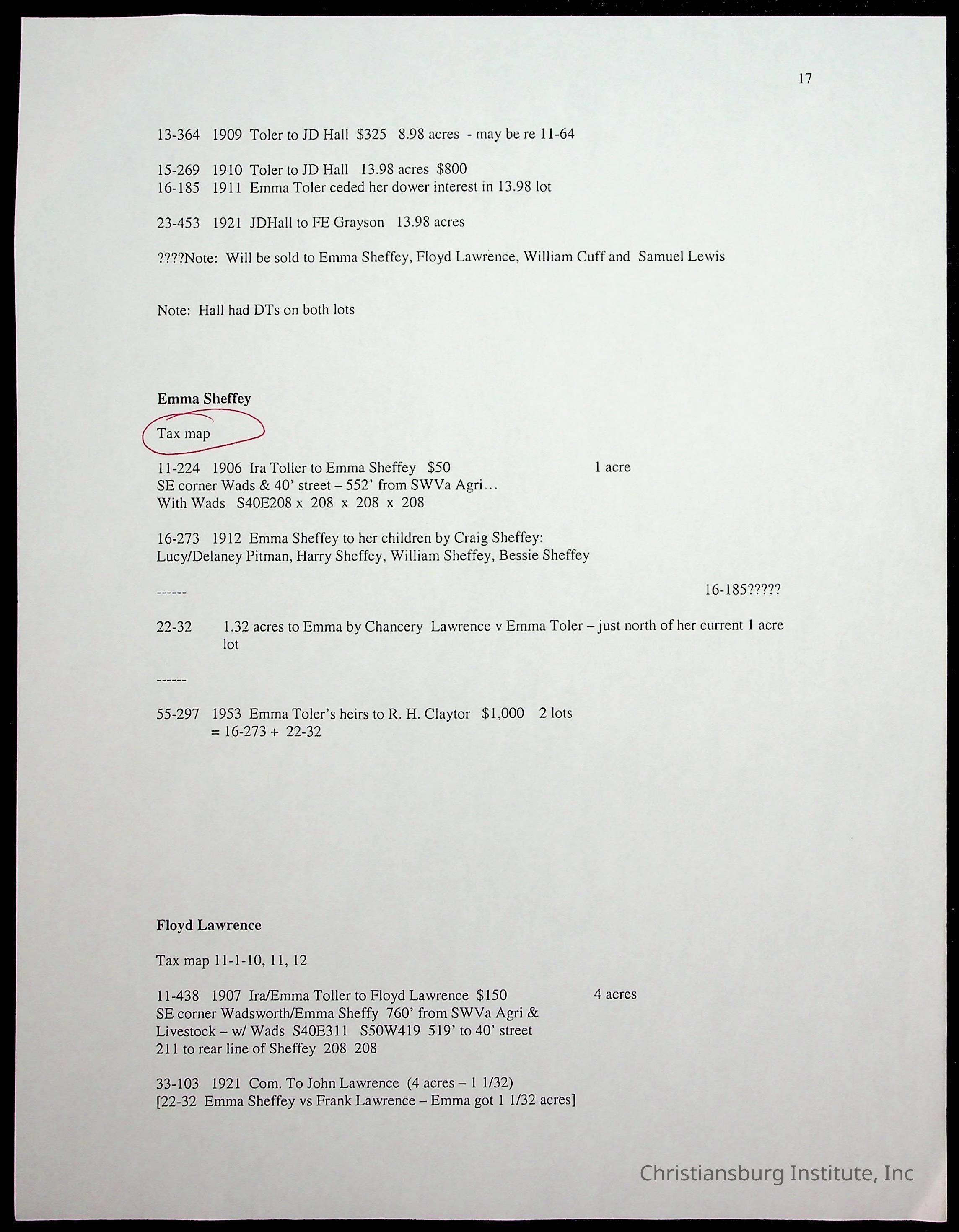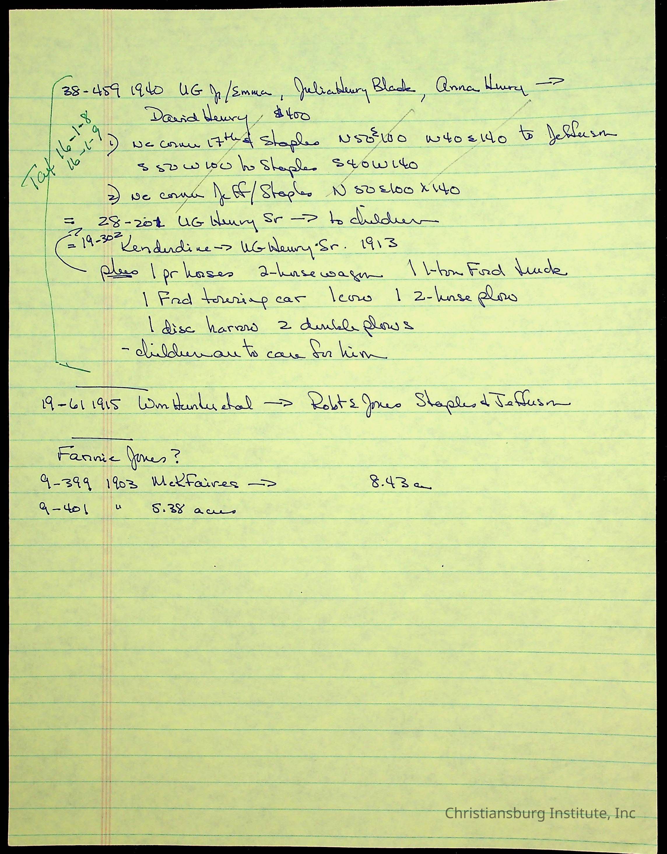 A folder of research materials collected by Radford University professor, Dr. Linda Killen. This folder is titled 'Land/Genealogy Research' and includes various research conducted in Radford, Virginia. This folder includes genealogy records, Dr Killen's notes, and plat maps.
