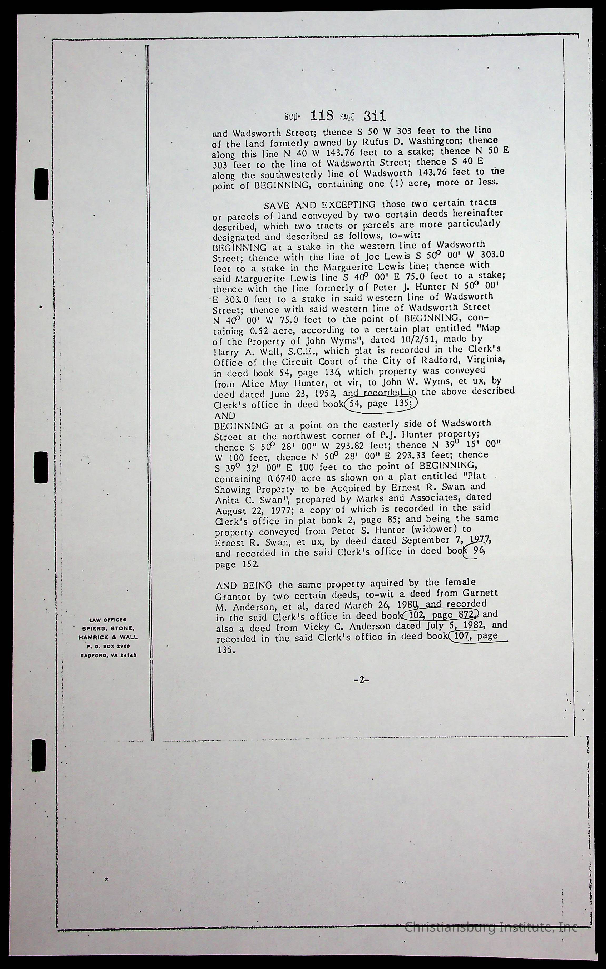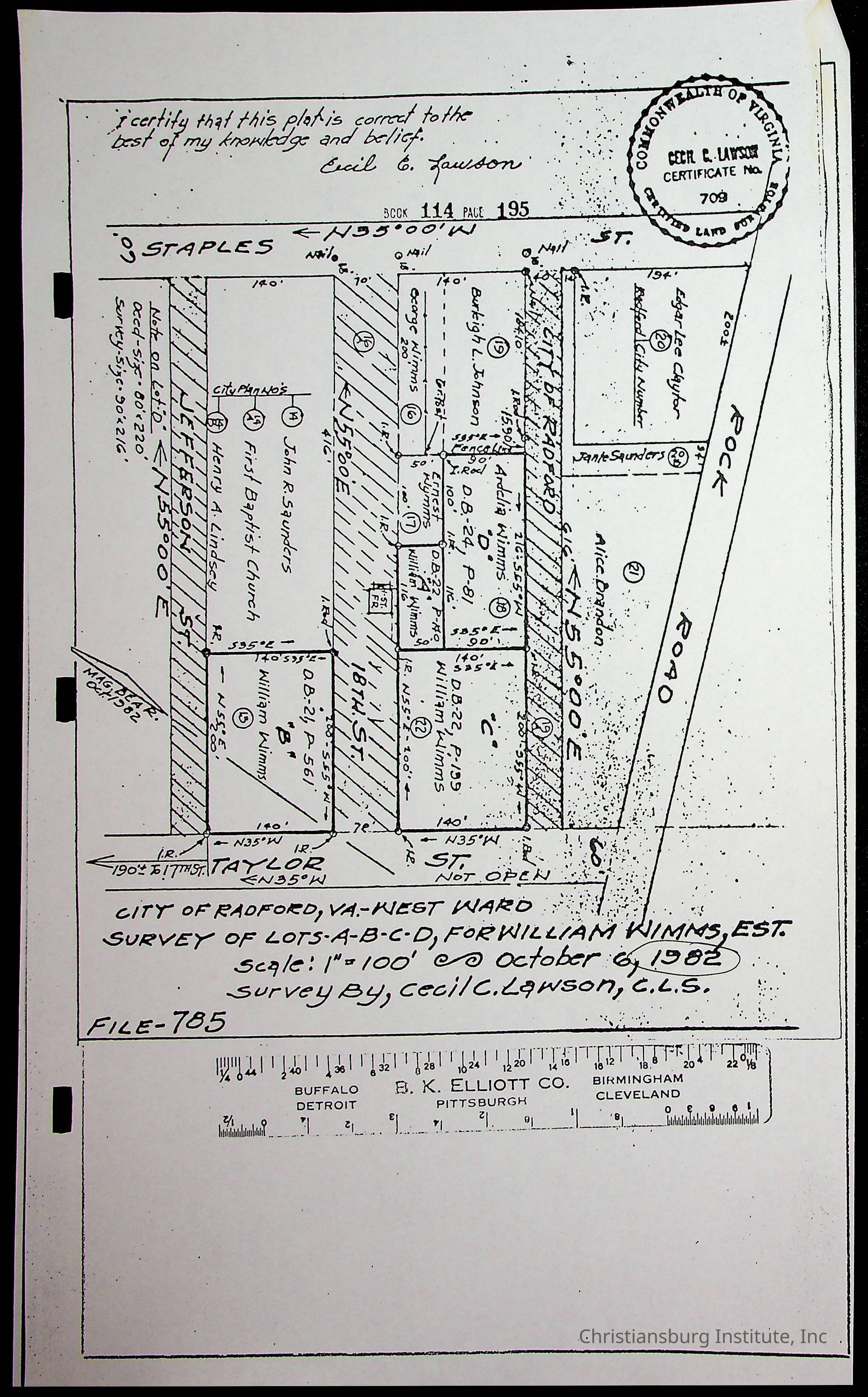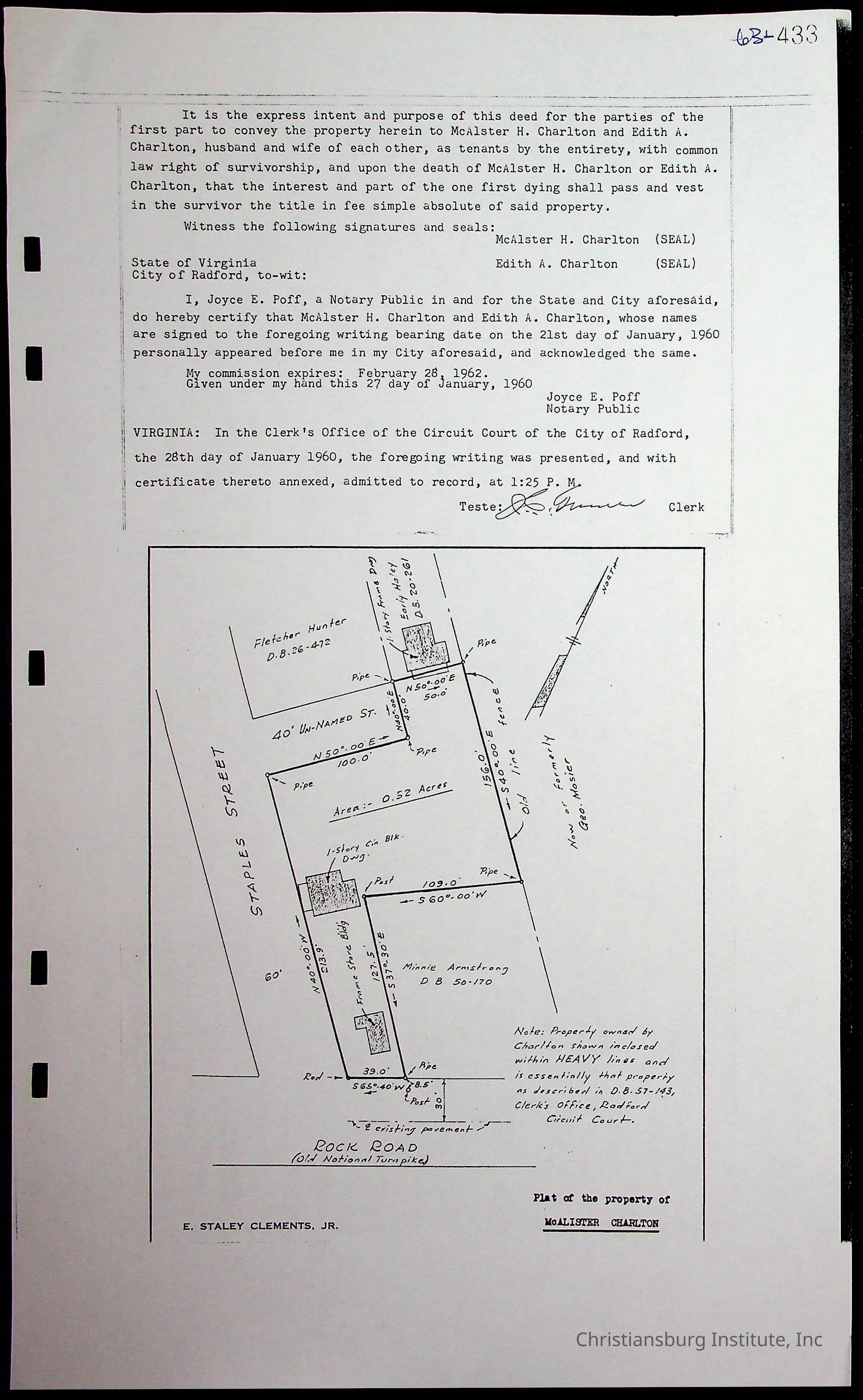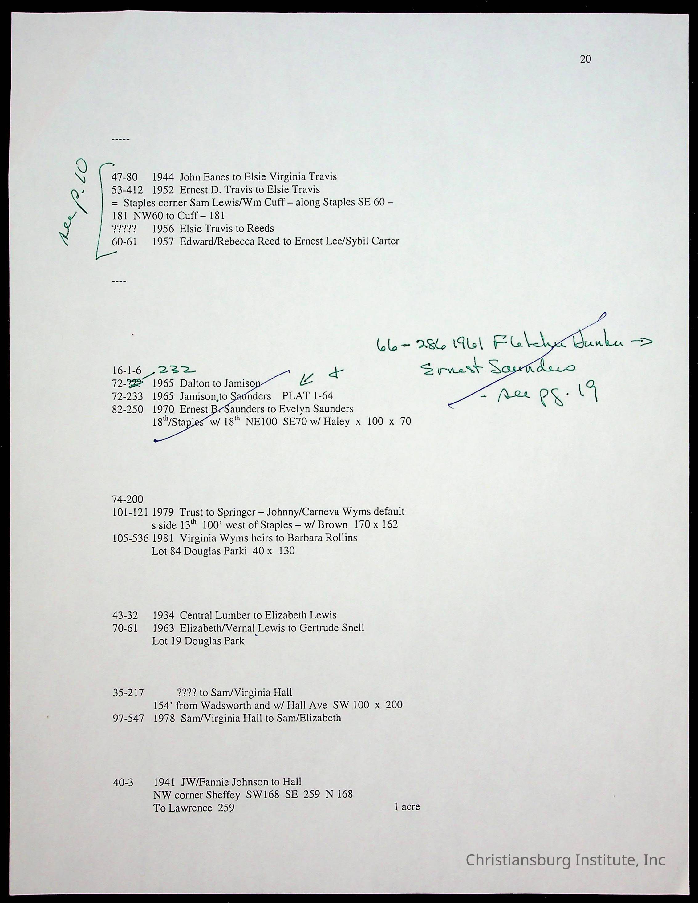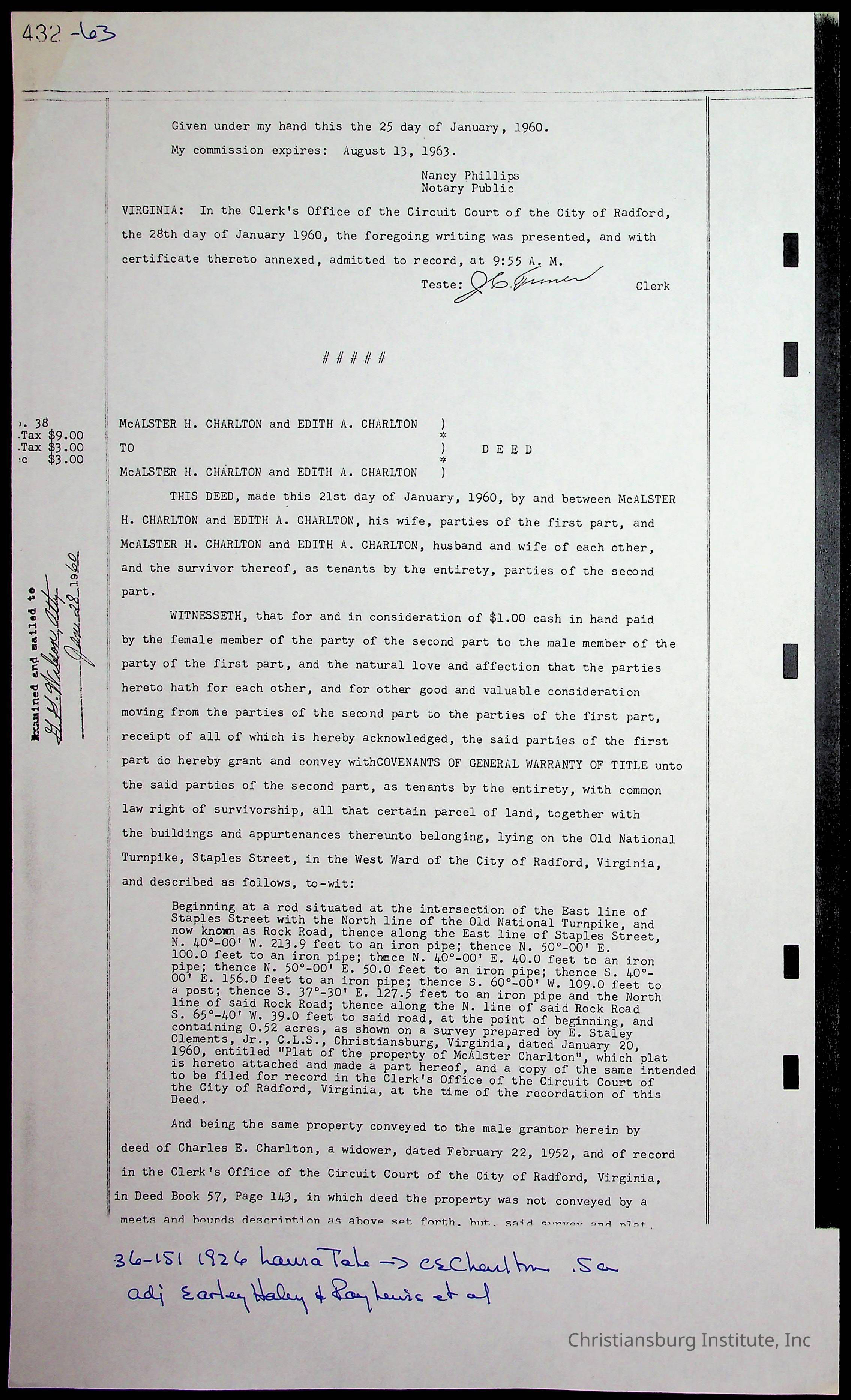 A folder of research materials collected by Radford University professor, Dr. Linda Killen. This folder is titled 'Land/Genealogy Research' and includes various research conducted in Radford, Virginia. This folder includes genealogy records, Dr Killen's notes, and plat maps.