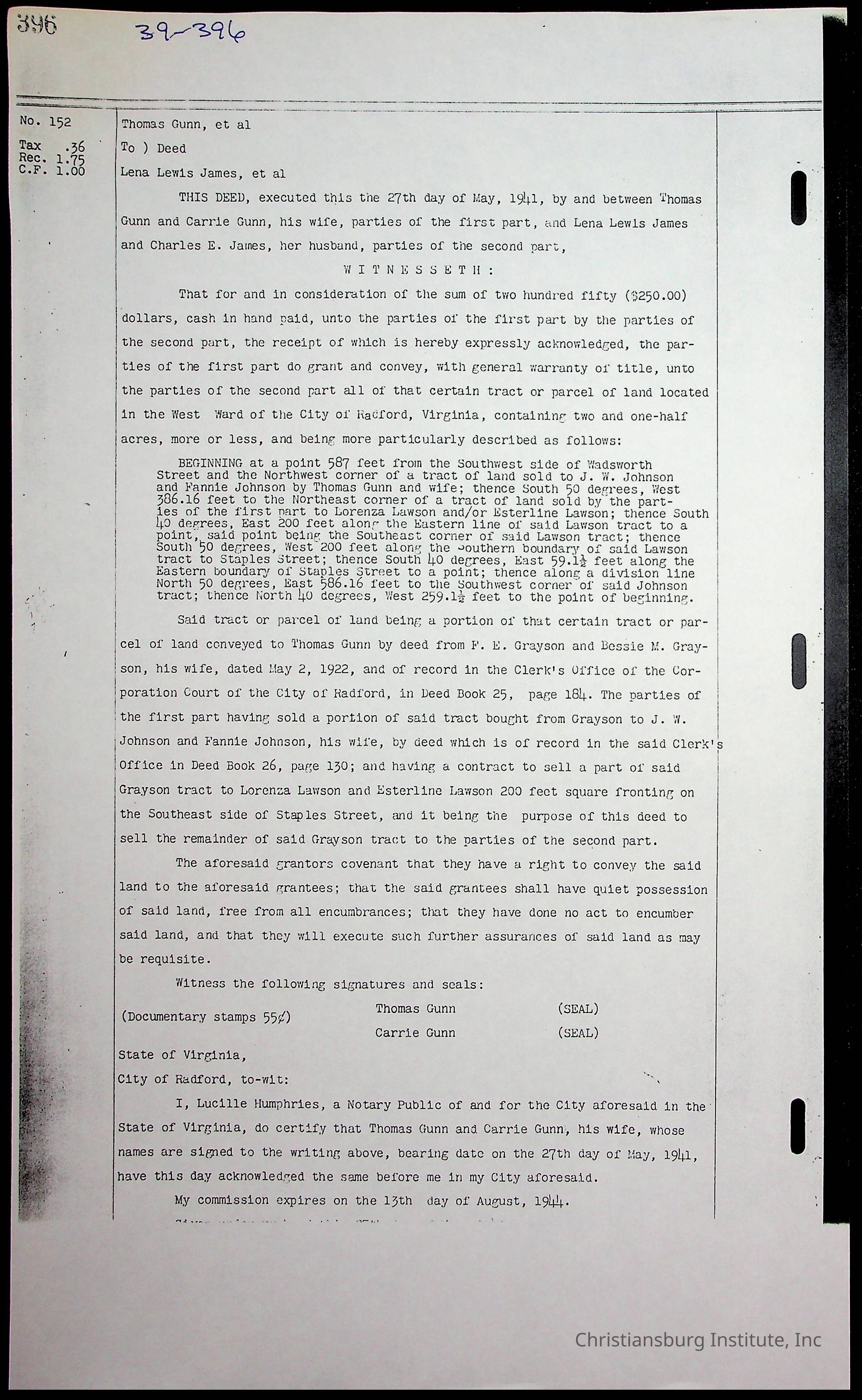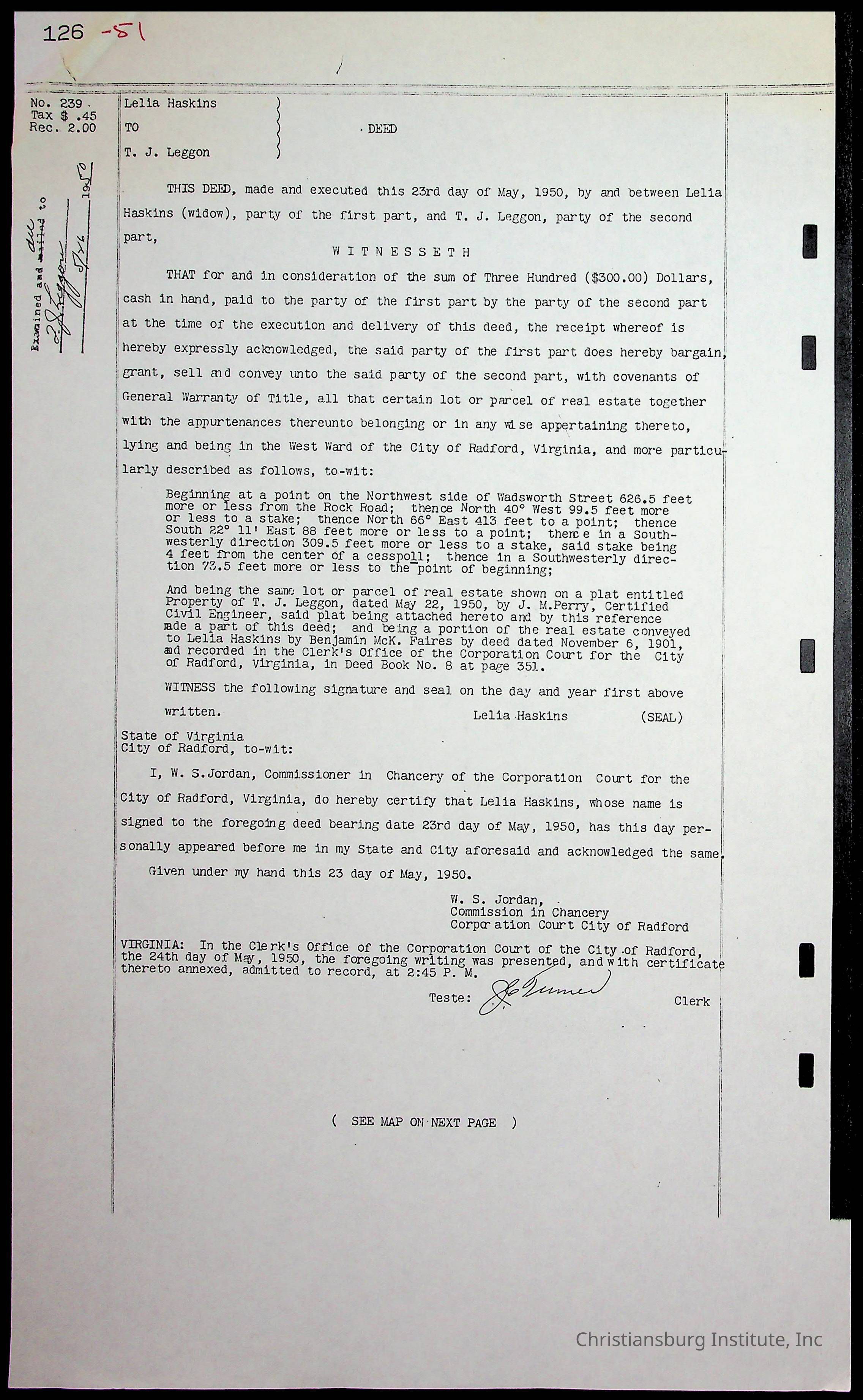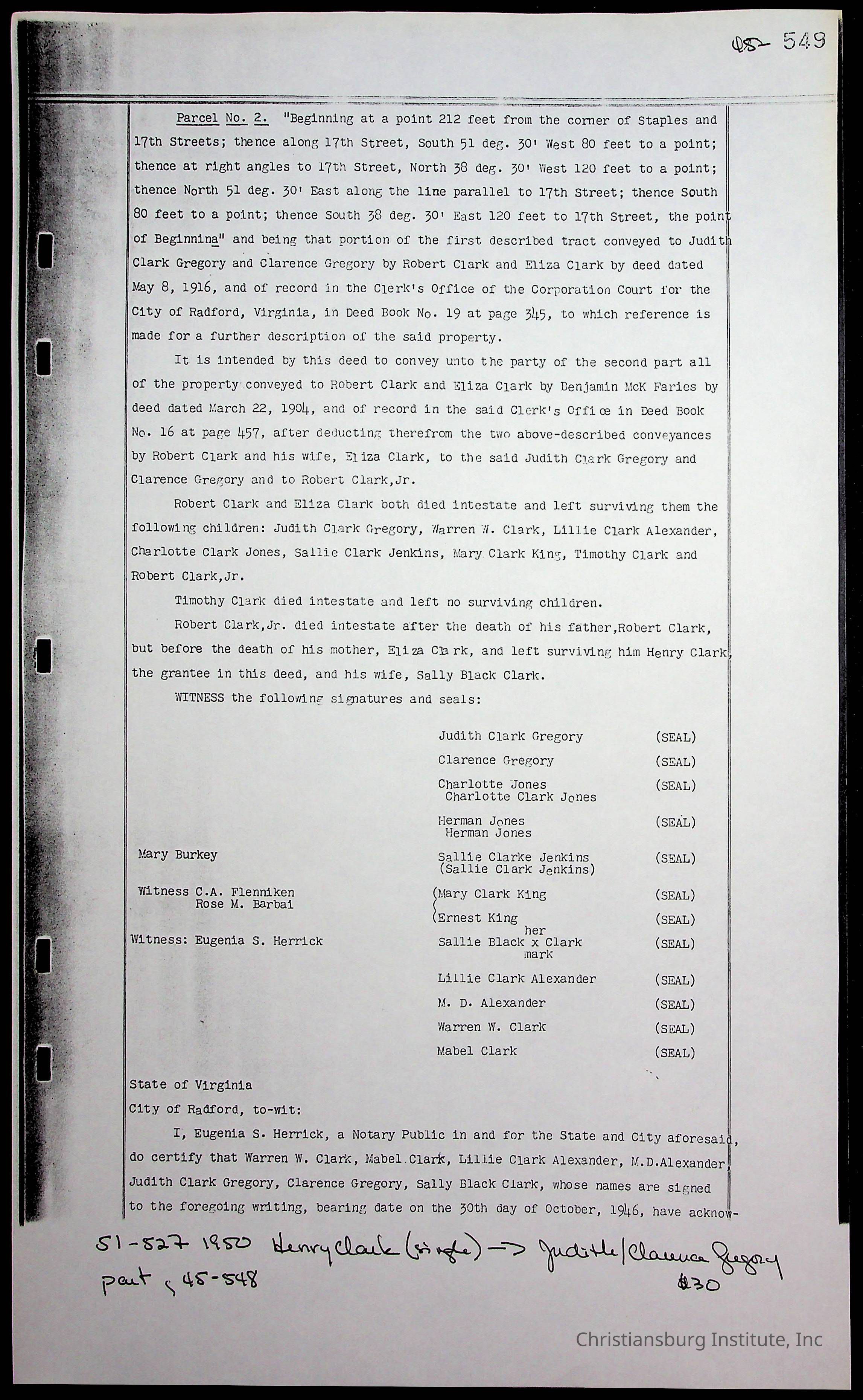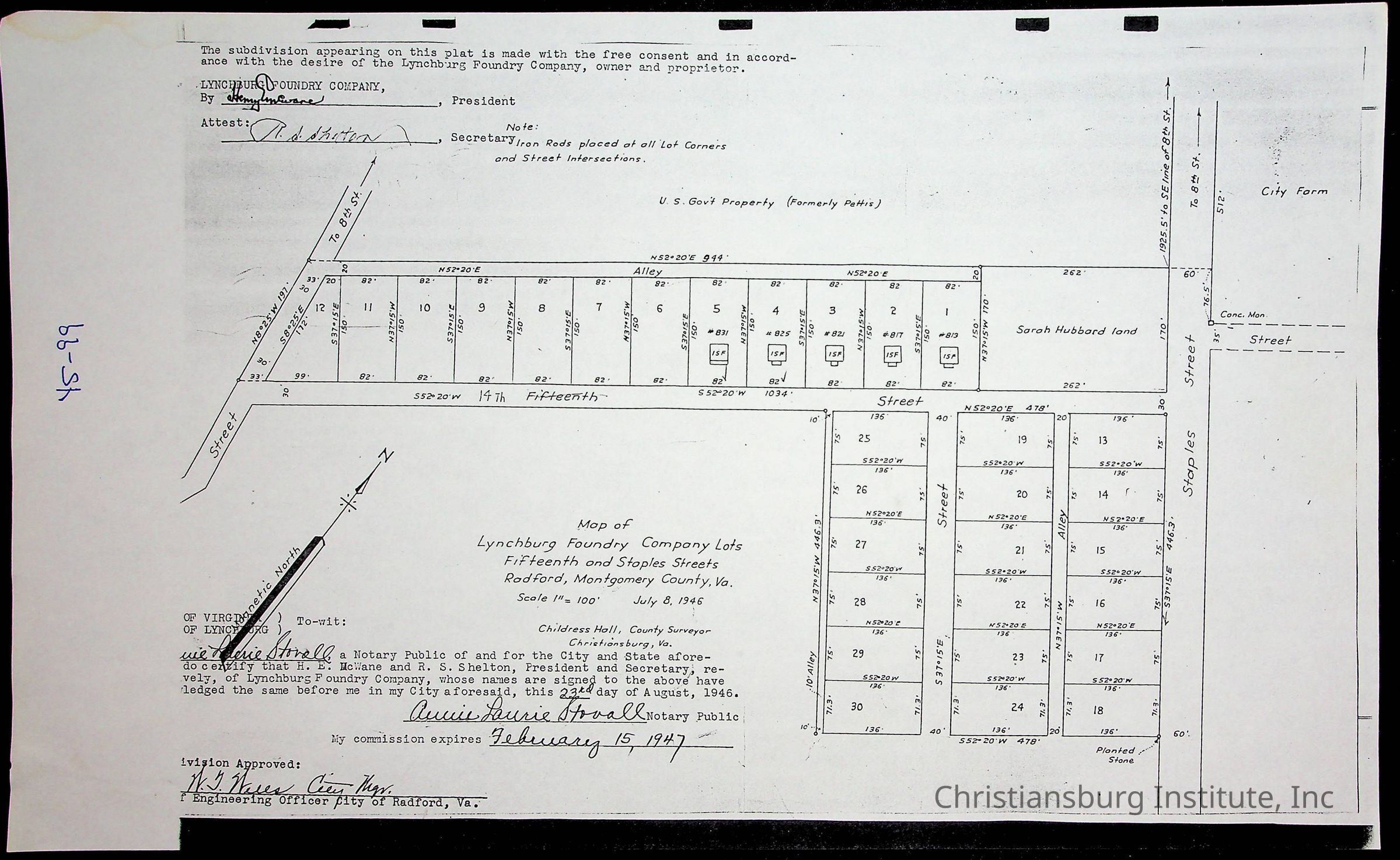 A folder of research materials collected by Radford University professor, Dr. Linda Killen. This folder is titled 'Land/Genealogy Research' and includes various research conducted in Radford, Virginia. This folder includes genealogy records, Dr Killen's notes, and plat maps.