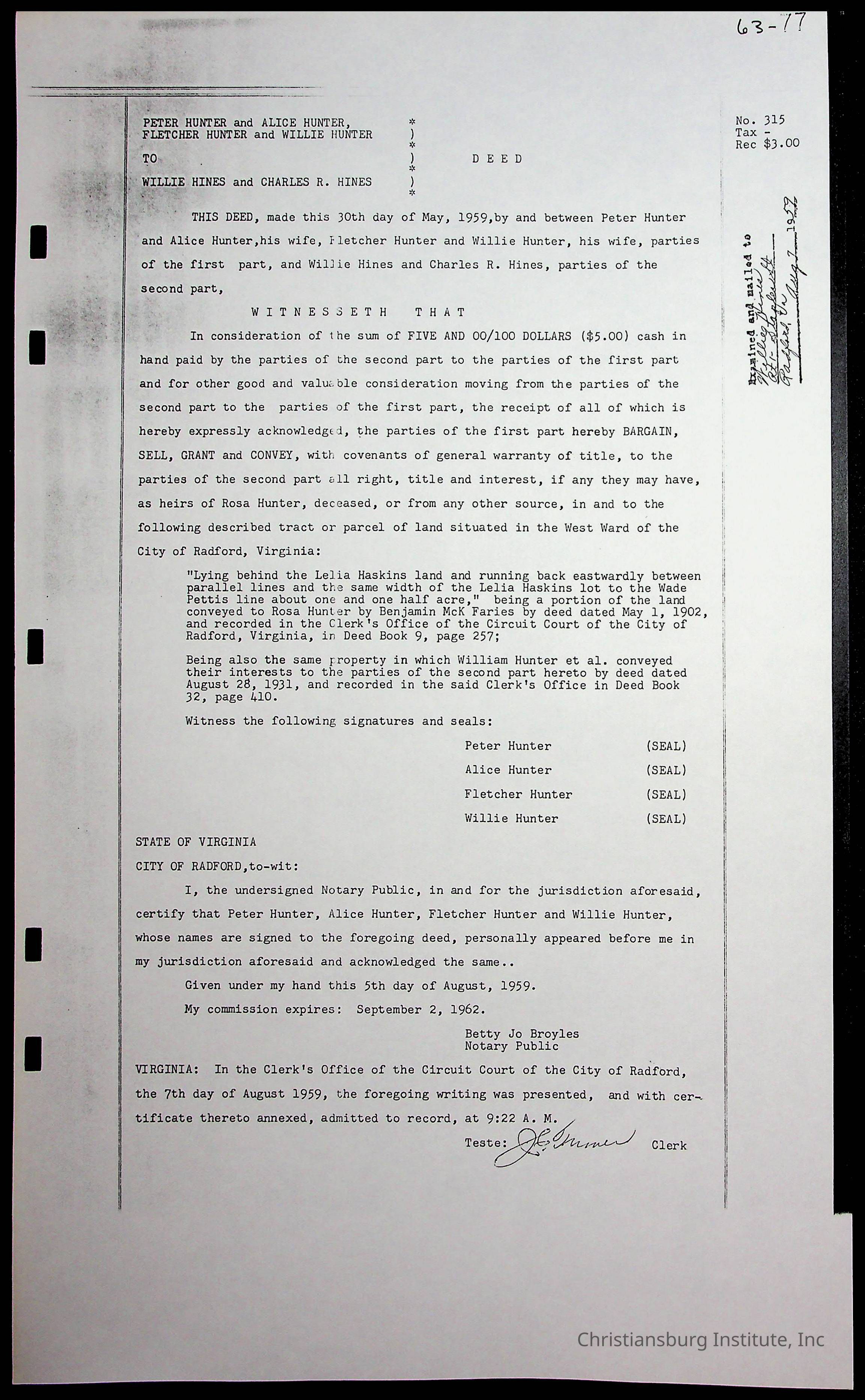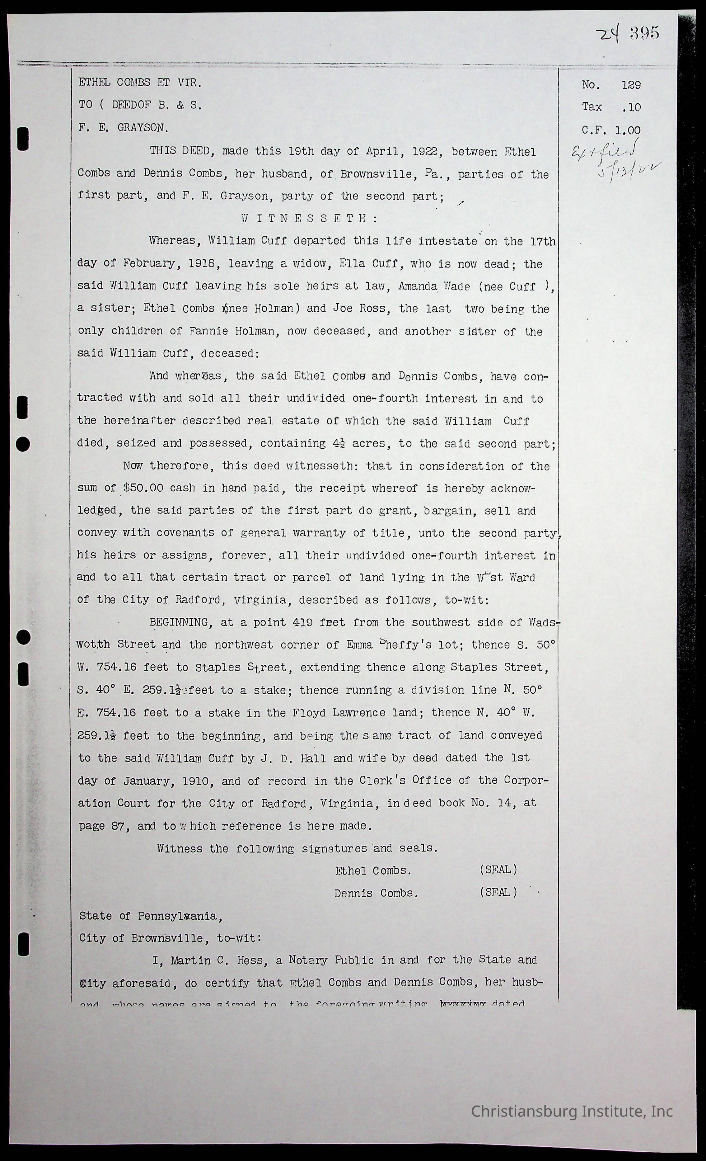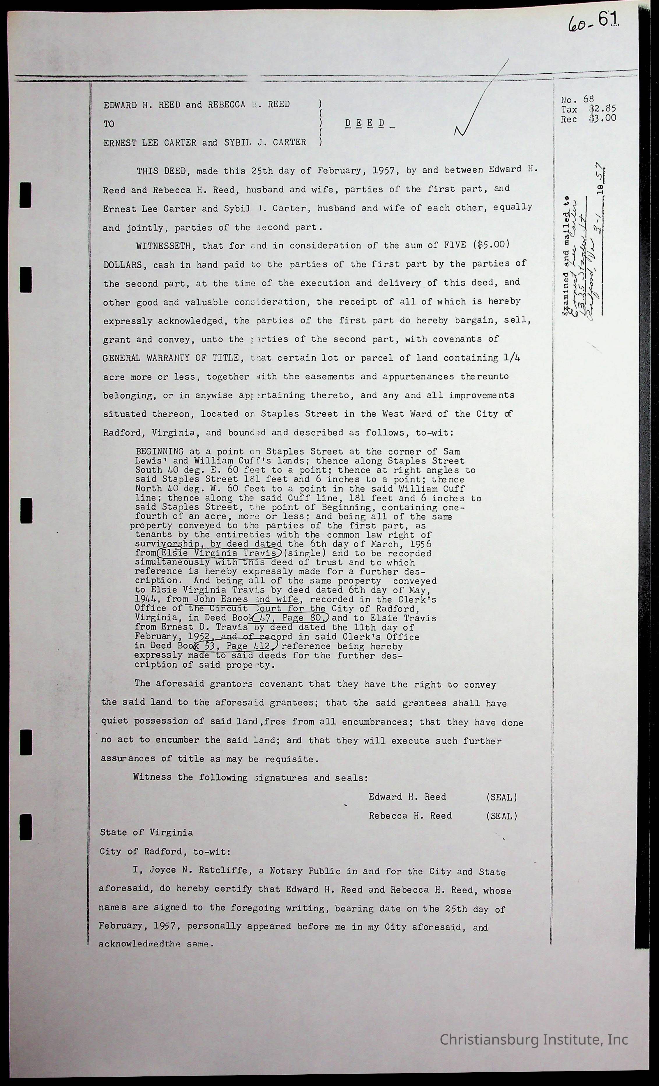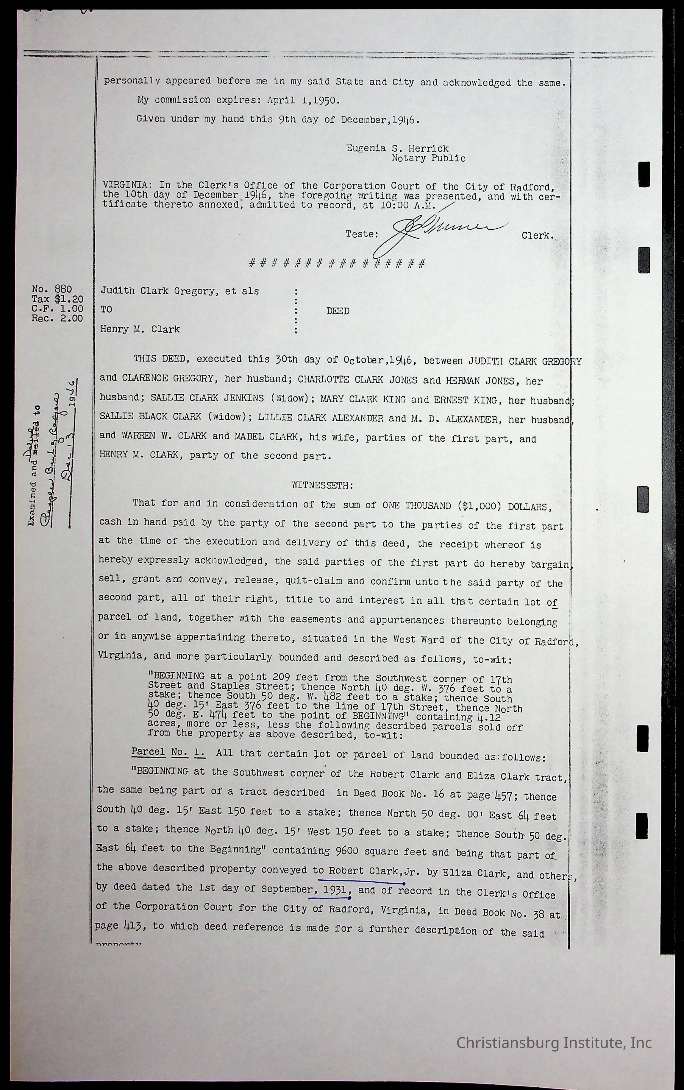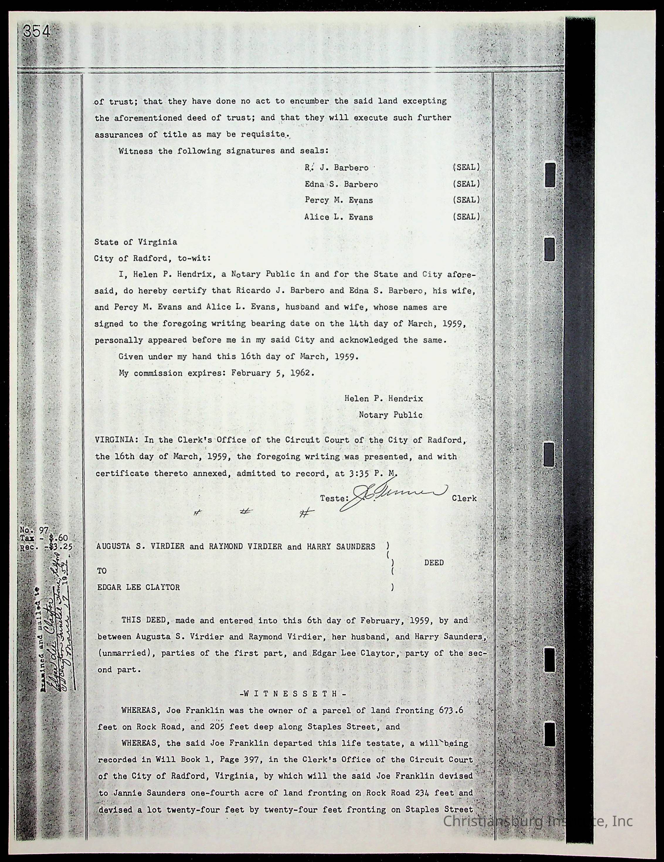 A folder of research materials collected by Radford University professor, Dr. Linda Killen. This folder is titled 'Land/Genealogy Research' and includes various research conducted in Radford, Virginia. This folder includes genealogy records, Dr Killen's notes, and plat maps.