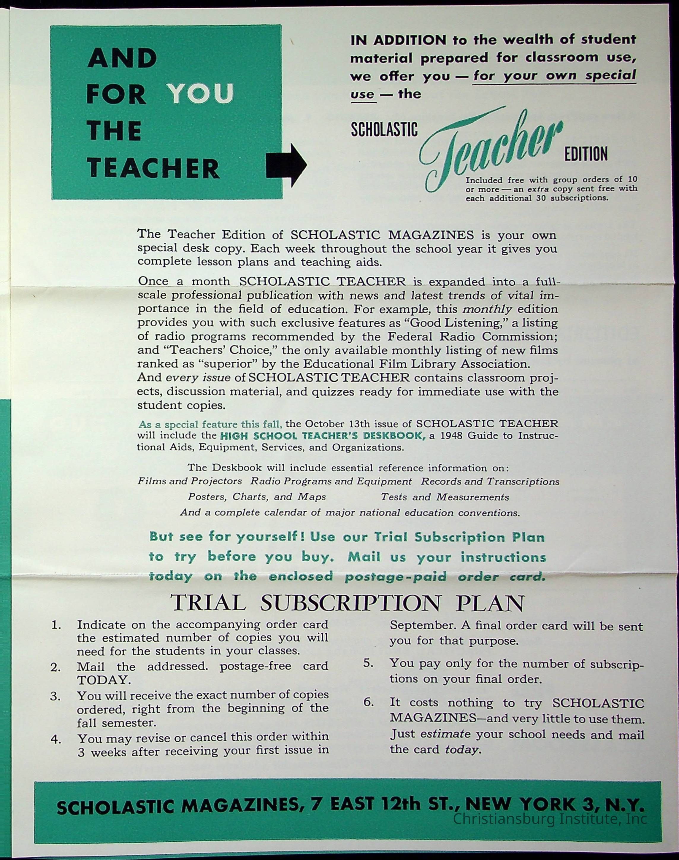 Letter From Scholastic Magazines to Viola Charlton, undatedDescription