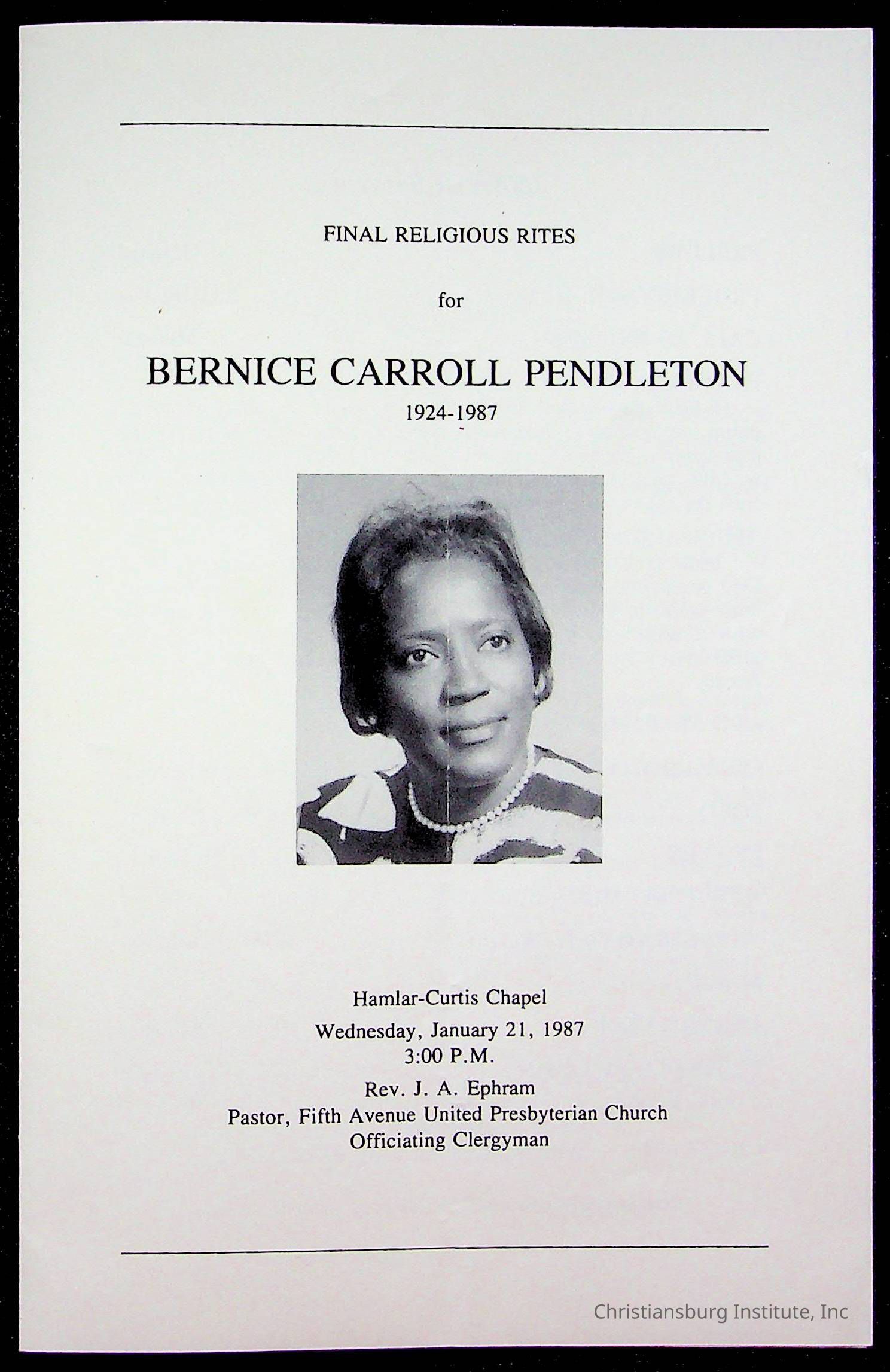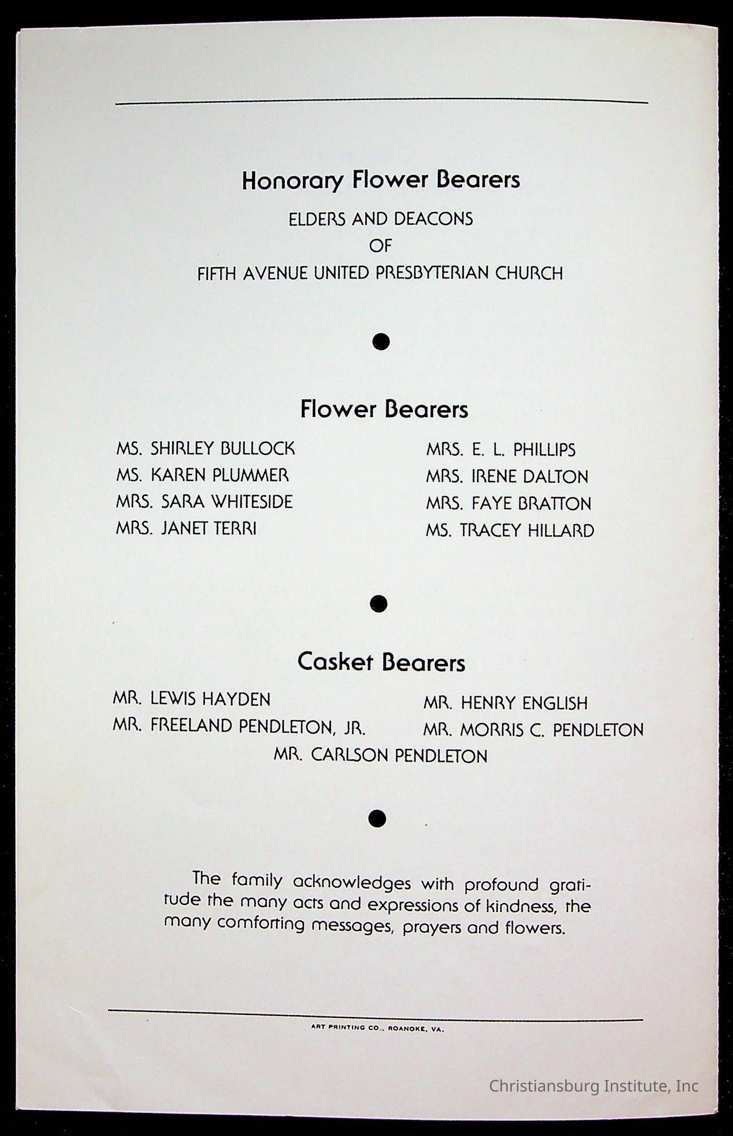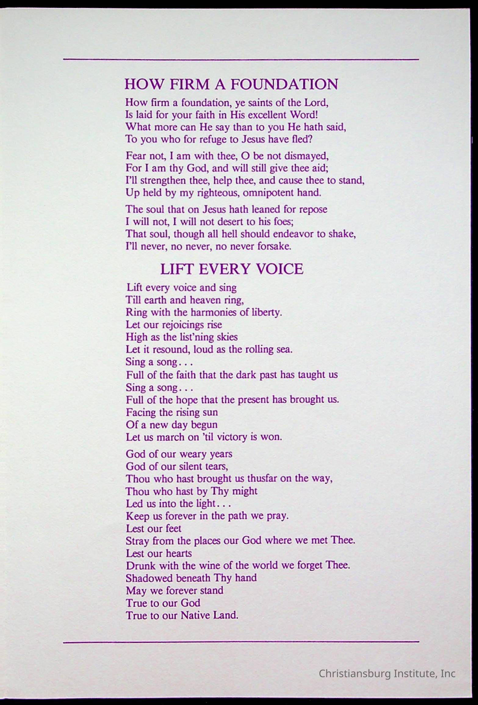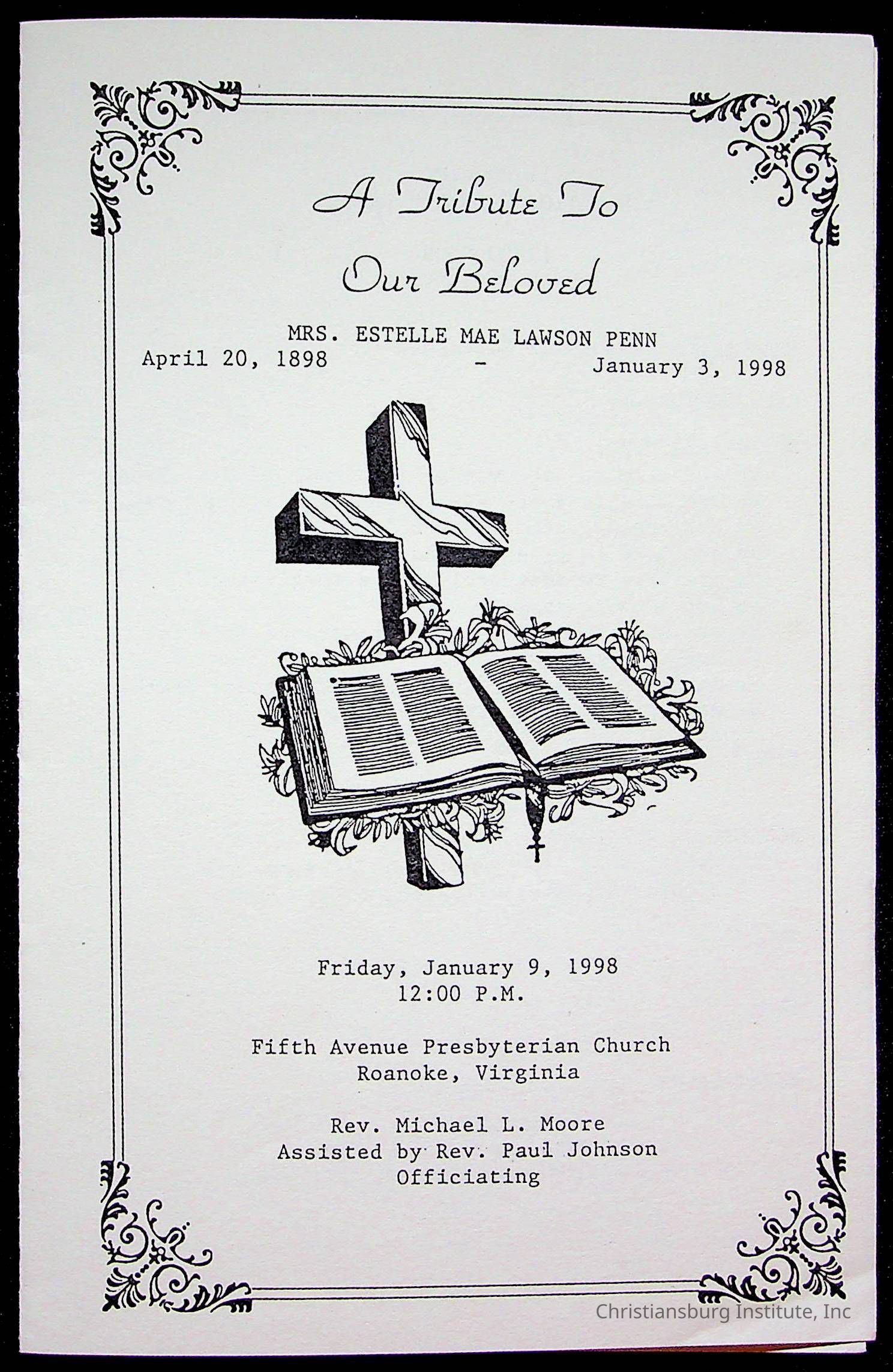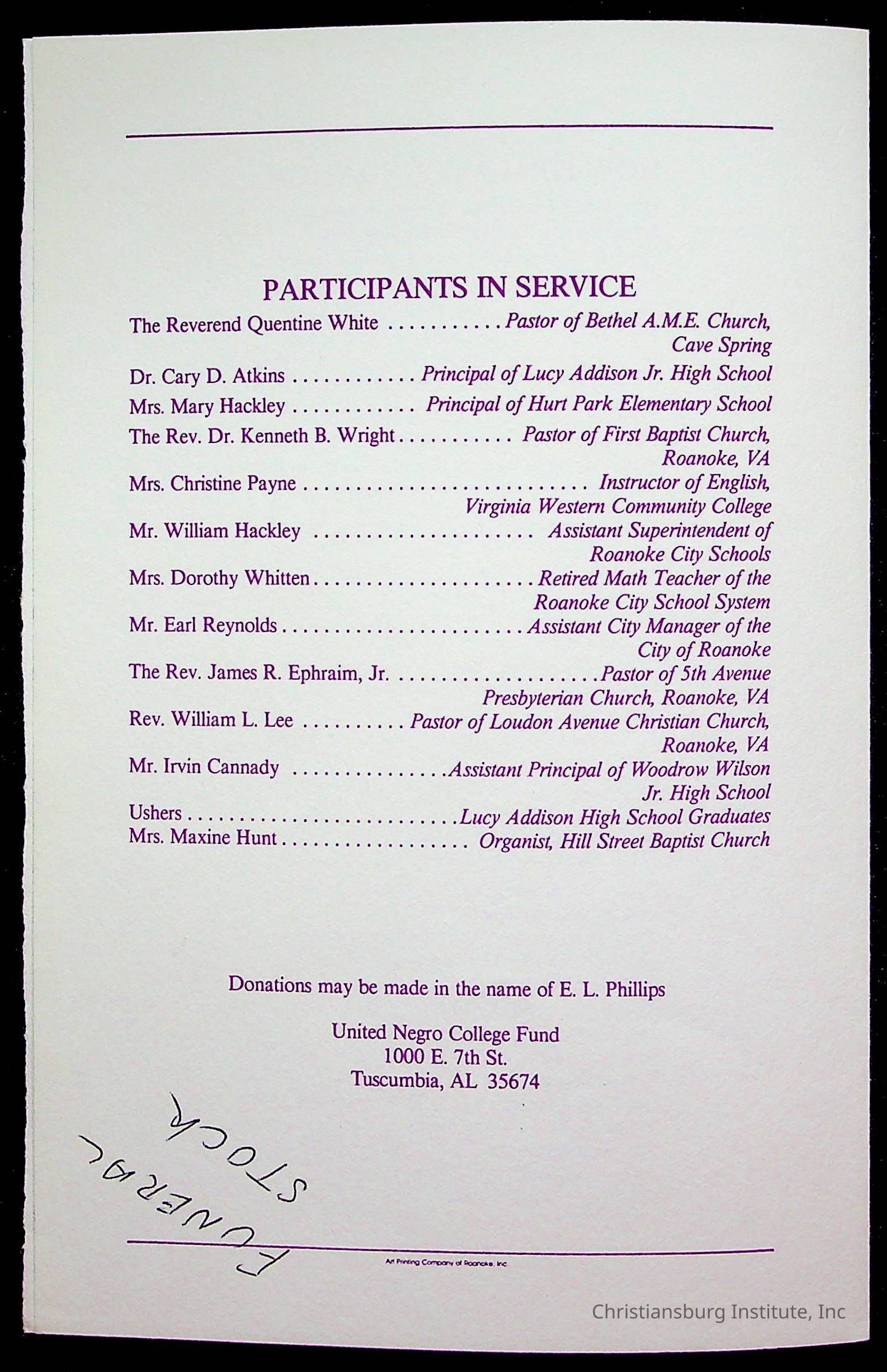 Copyright has been assigned to Christiansburg Institute Museum & Archives by Fifth Avenue Presbyterian Church. For permission to publish materials created by the donor, contact CIMA@christiansburginstitute.com. Materials not created by Fifth Avenue Presbyterian Church may still be under copyright.