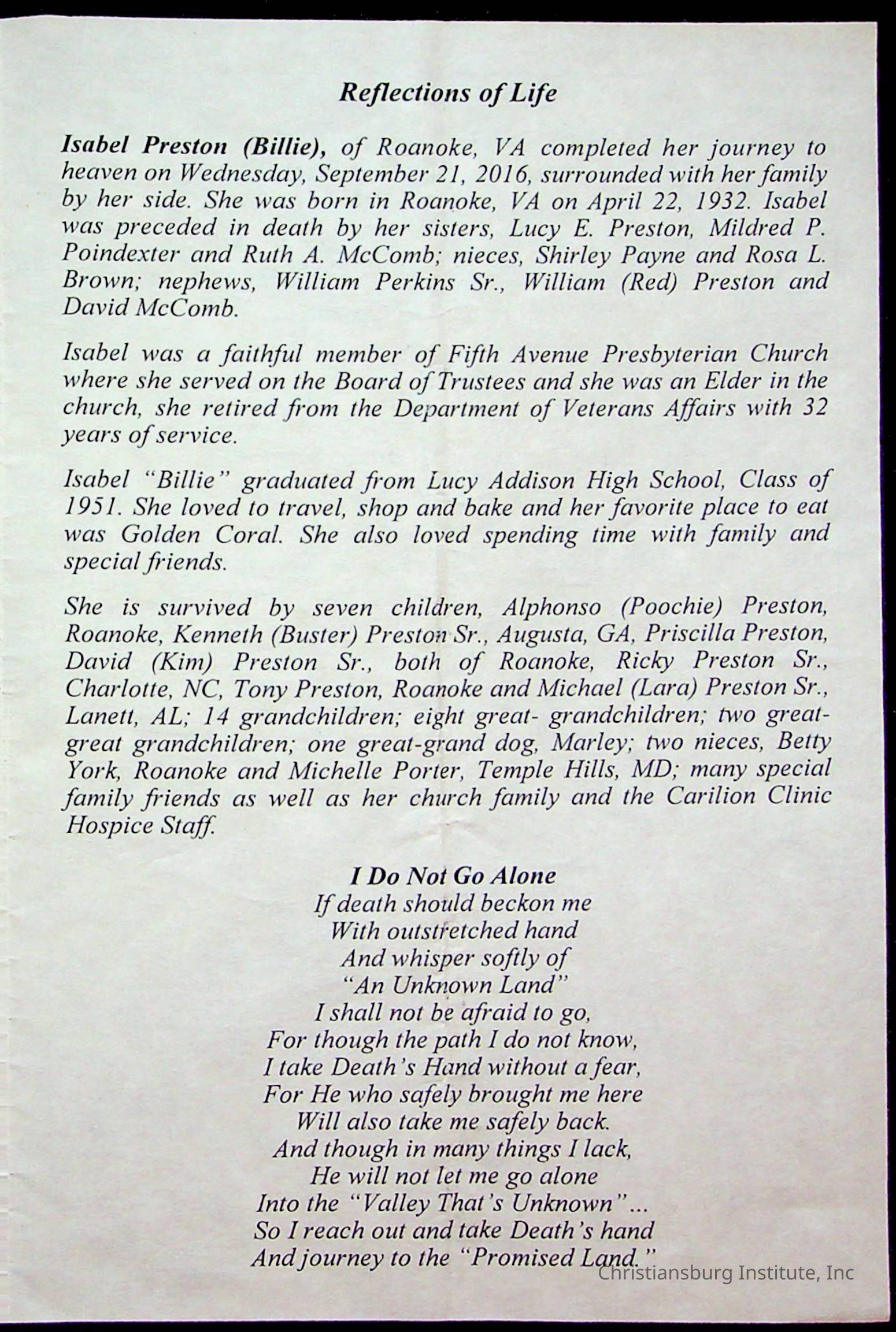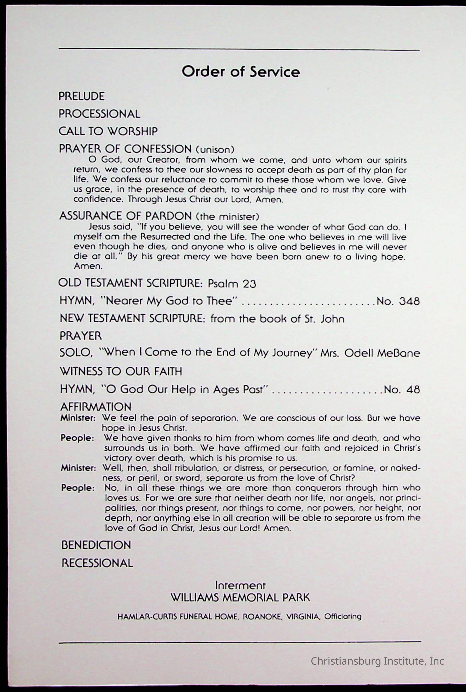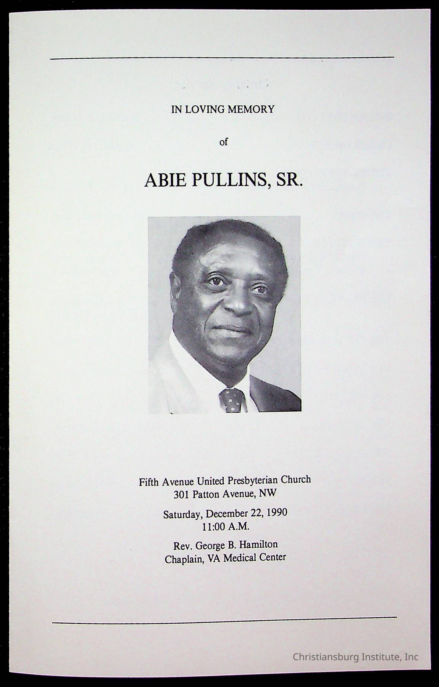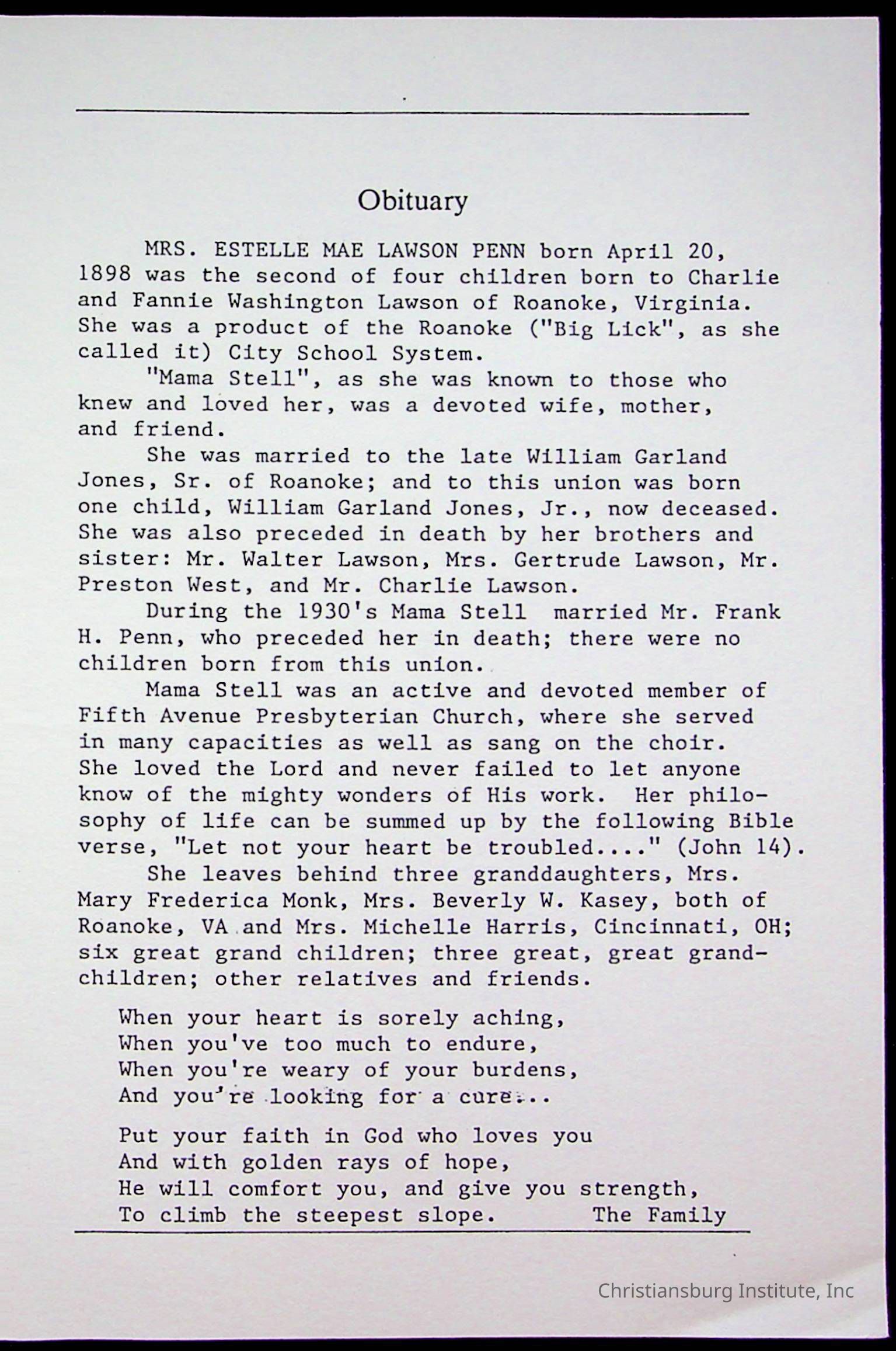 Copyright has been assigned to Christiansburg Institute Museum & Archives by Fifth Avenue Presbyterian Church. For permission to publish materials created by the donor, contact CIMA@christiansburginstitute.com. Materials not created by Fifth Avenue Presbyterian Church may still be under copyright.