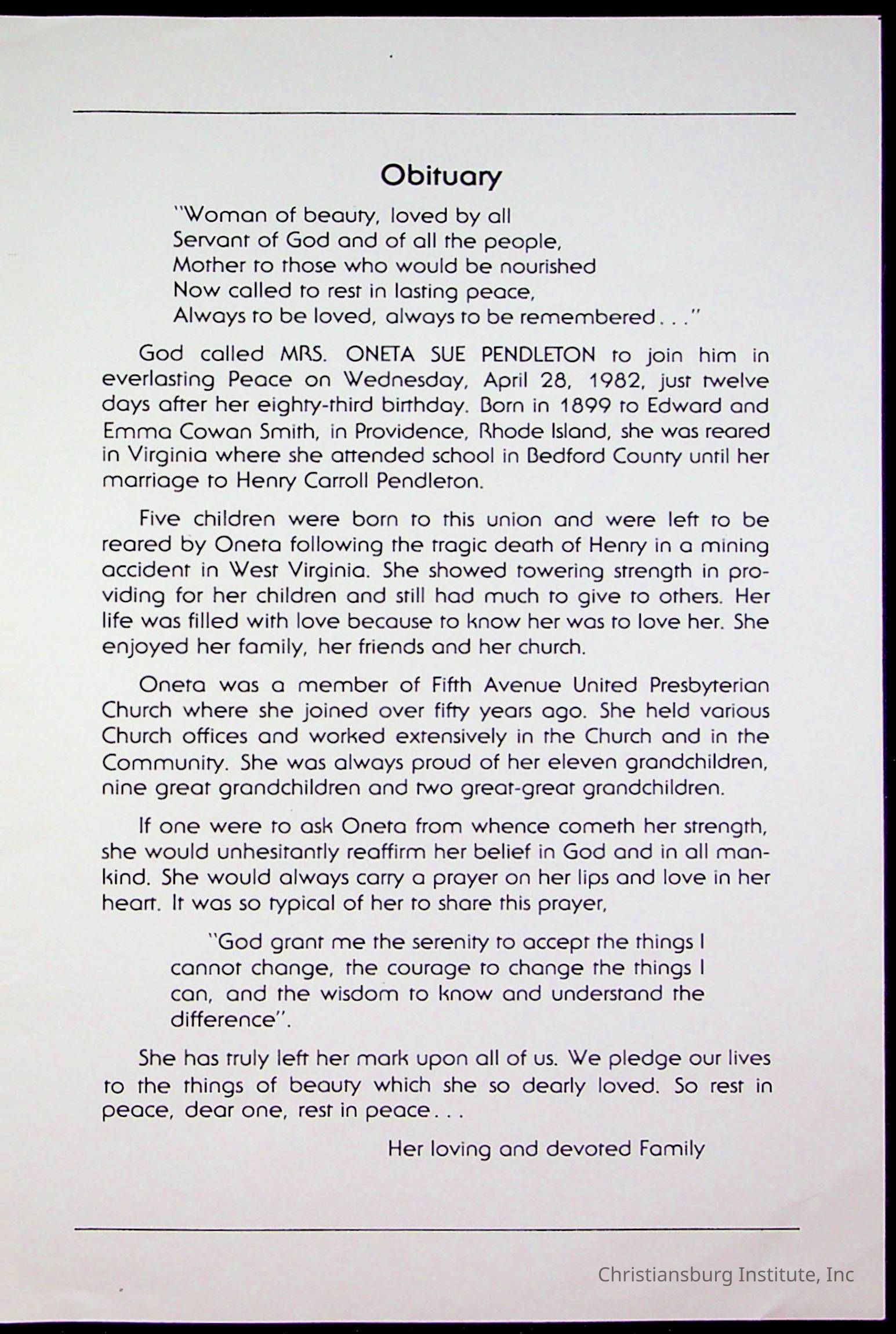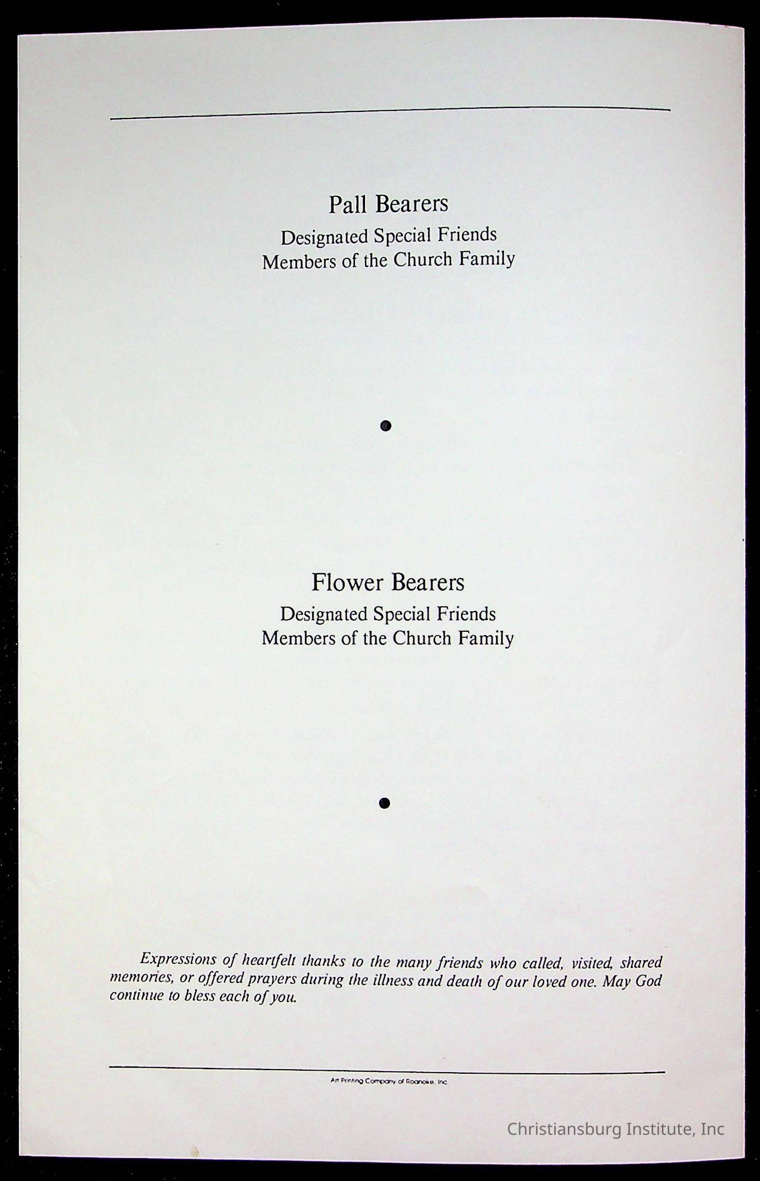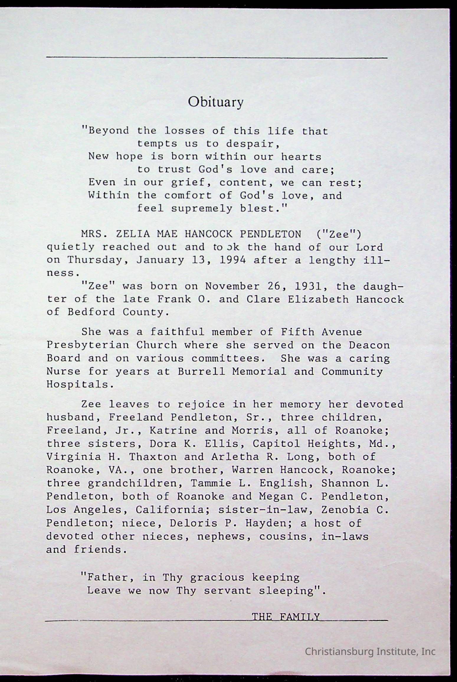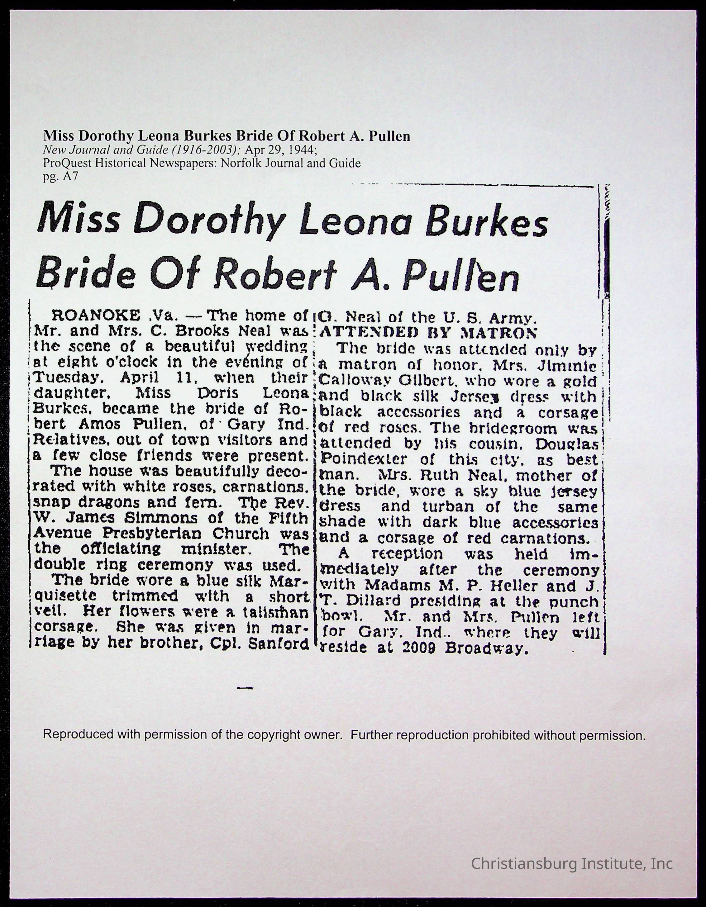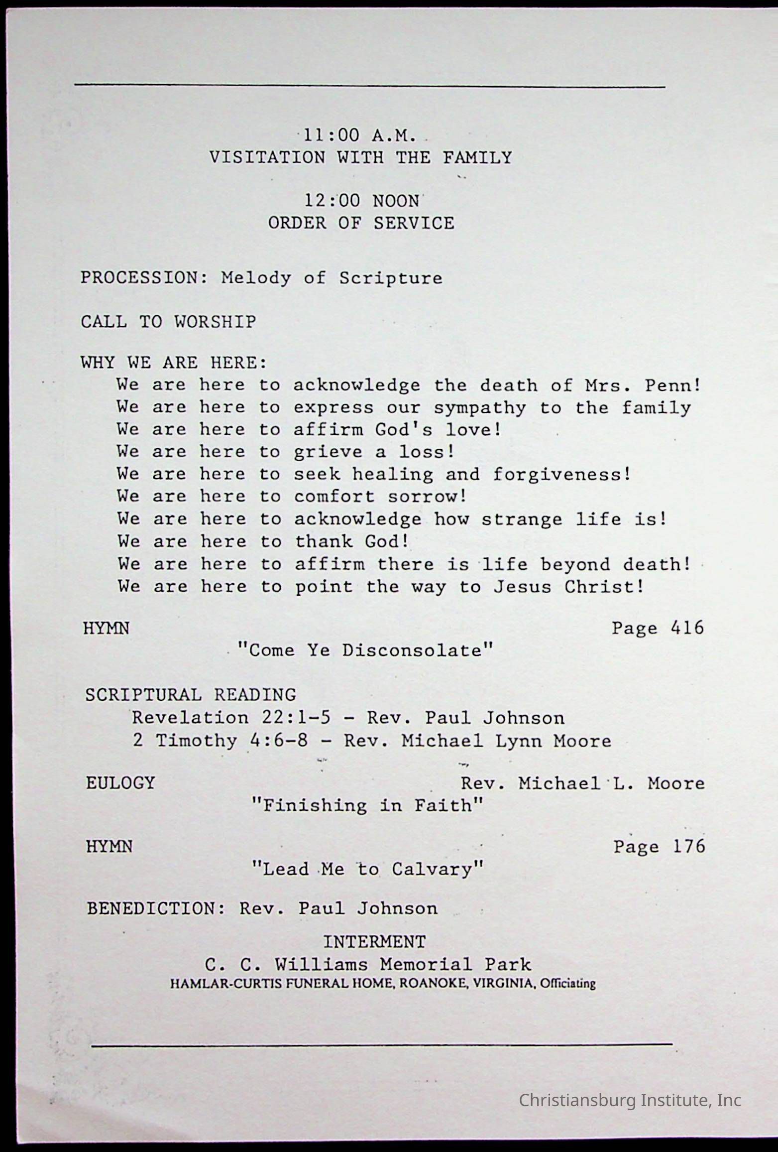 Copyright has been assigned to Christiansburg Institute Museum & Archives by Fifth Avenue Presbyterian Church. For permission to publish materials created by the donor, contact CIMA@christiansburginstitute.com. Materials not created by Fifth Avenue Presbyterian Church may still be under copyright.