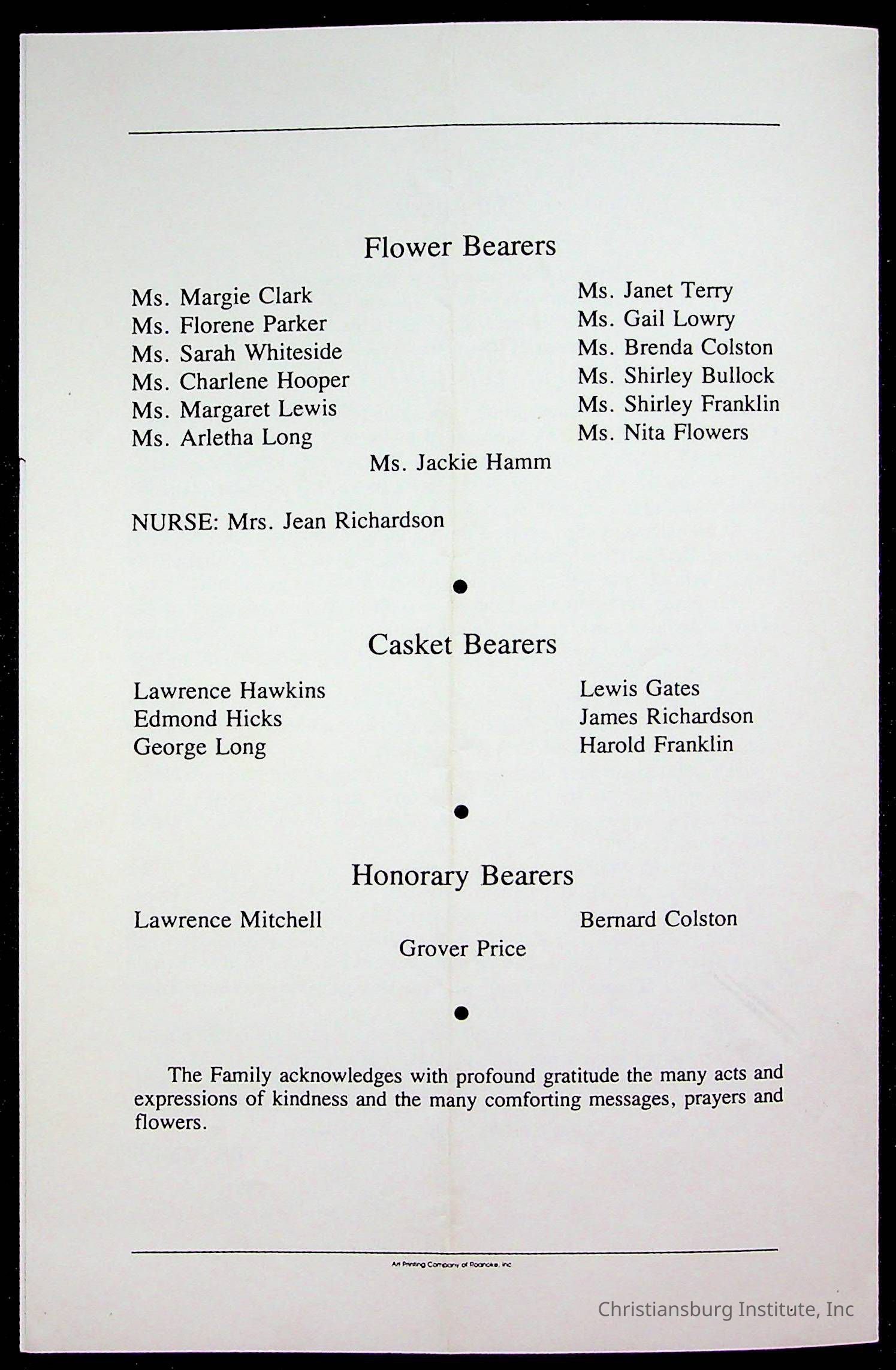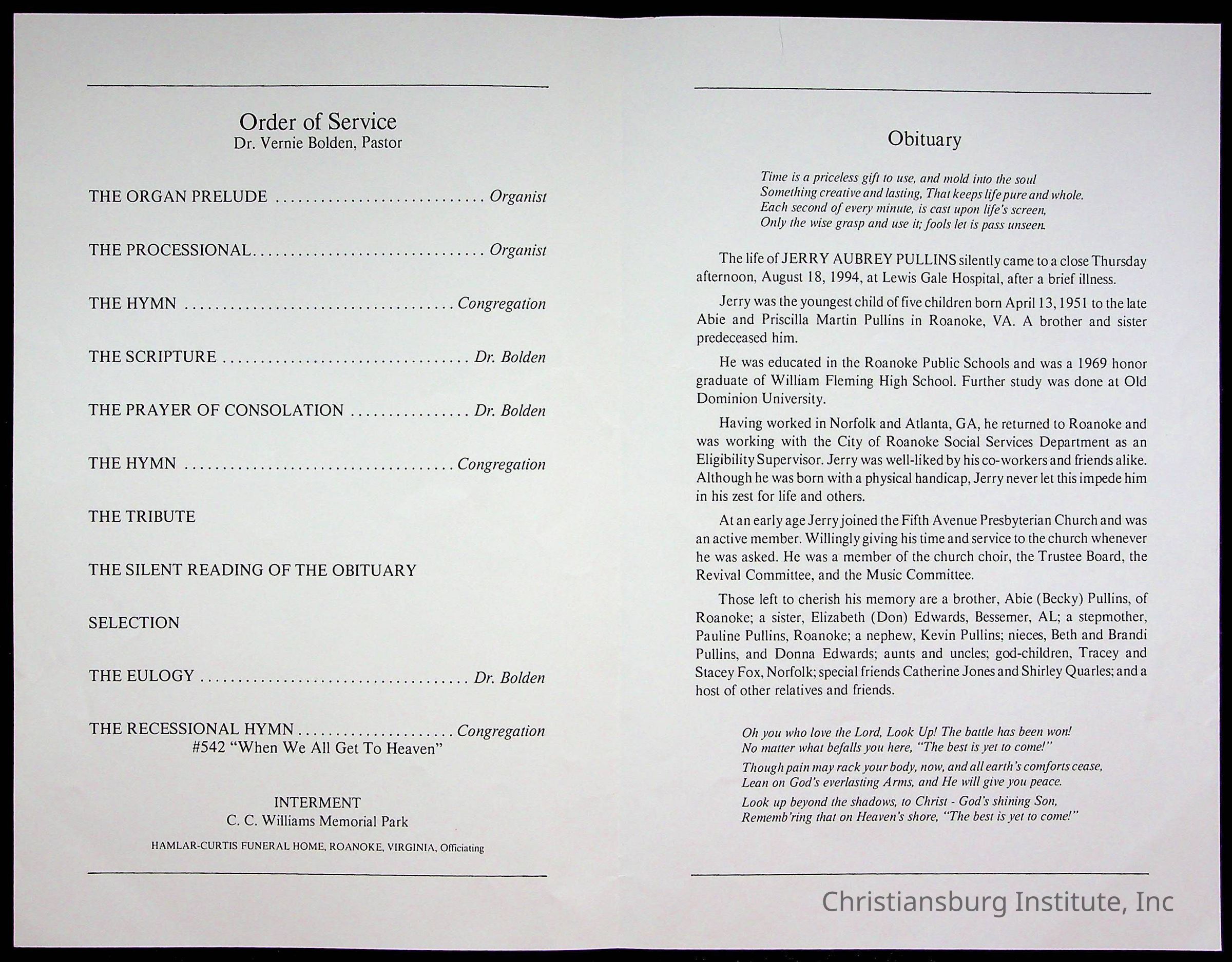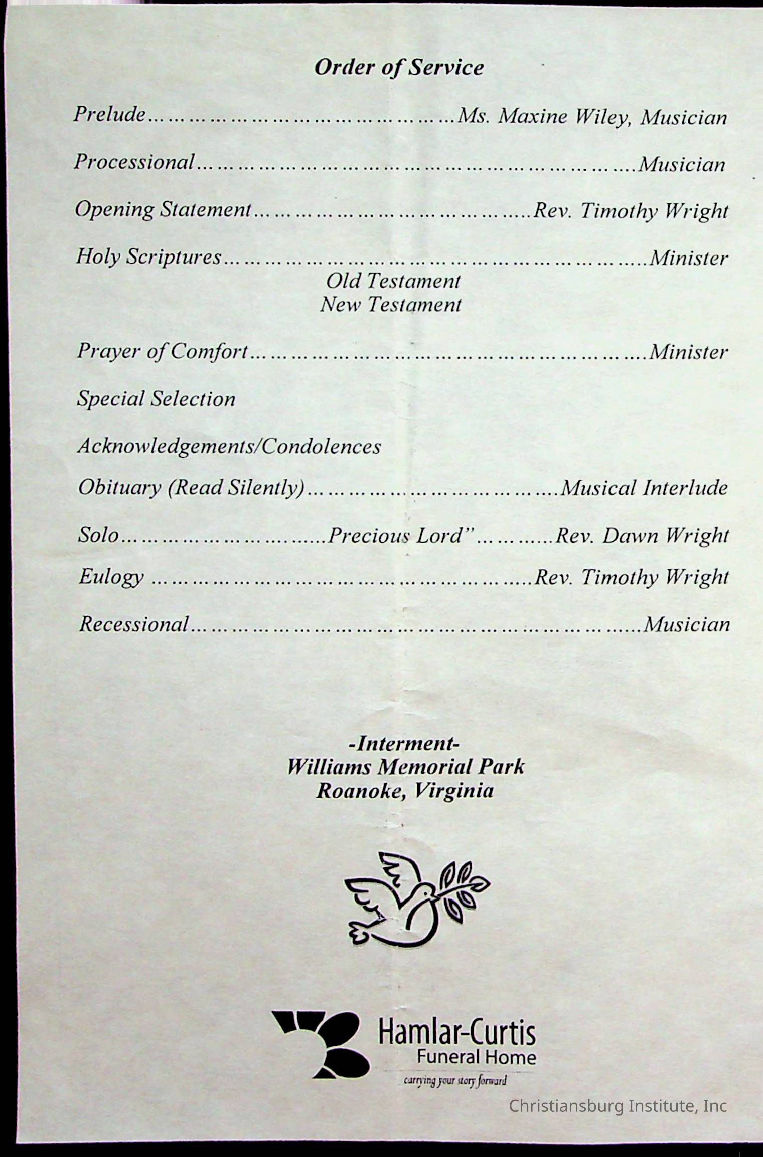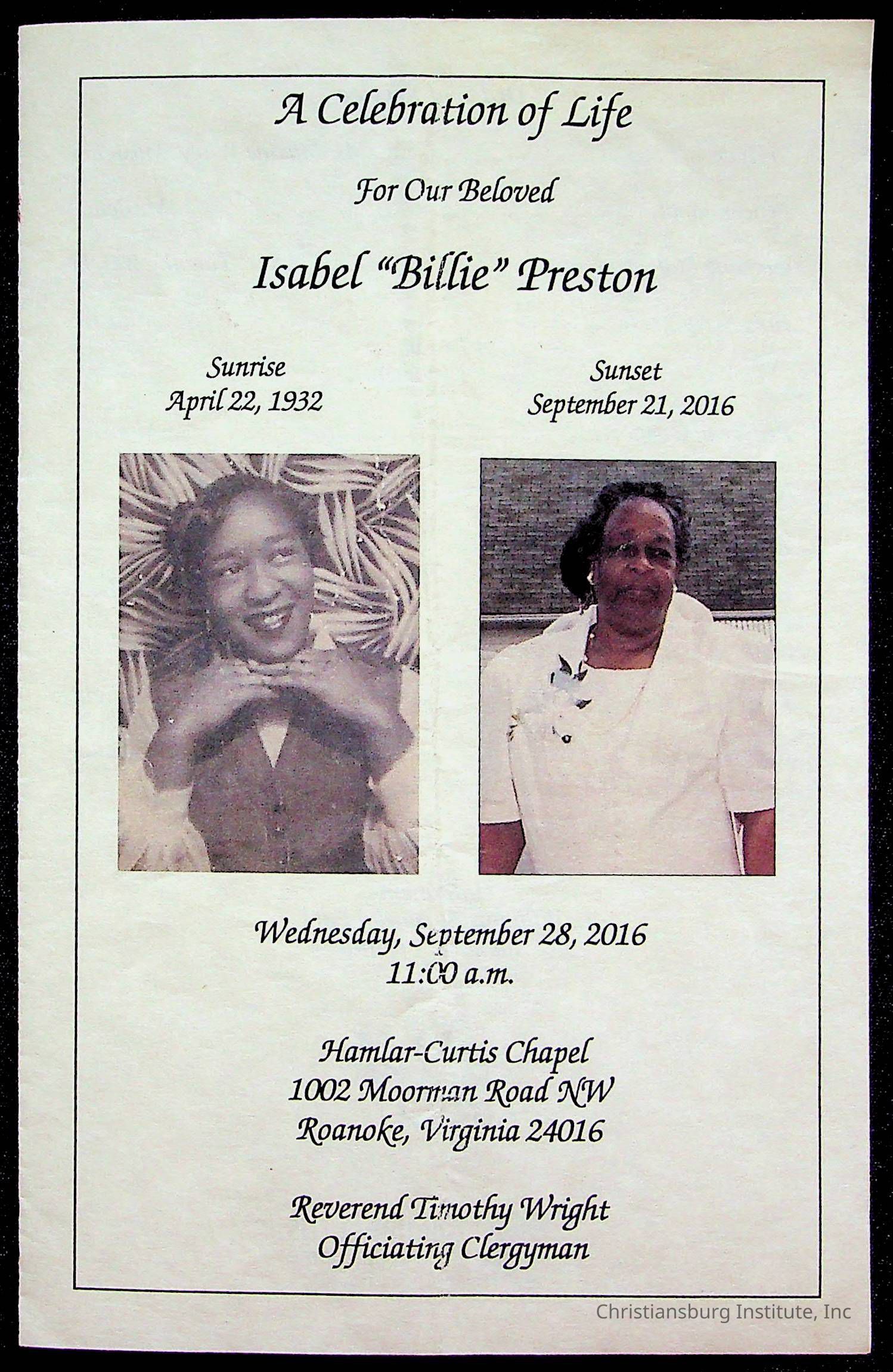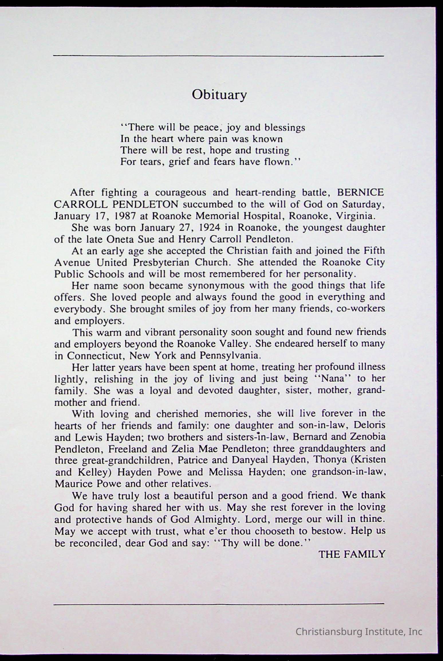 Copyright has been assigned to Christiansburg Institute Museum & Archives by Fifth Avenue Presbyterian Church. For permission to publish materials created by the donor, contact CIMA@christiansburginstitute.com. Materials not created by Fifth Avenue Presbyterian Church may still be under copyright.