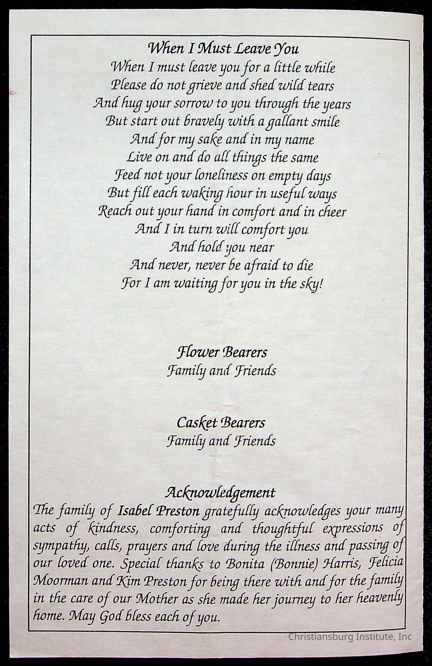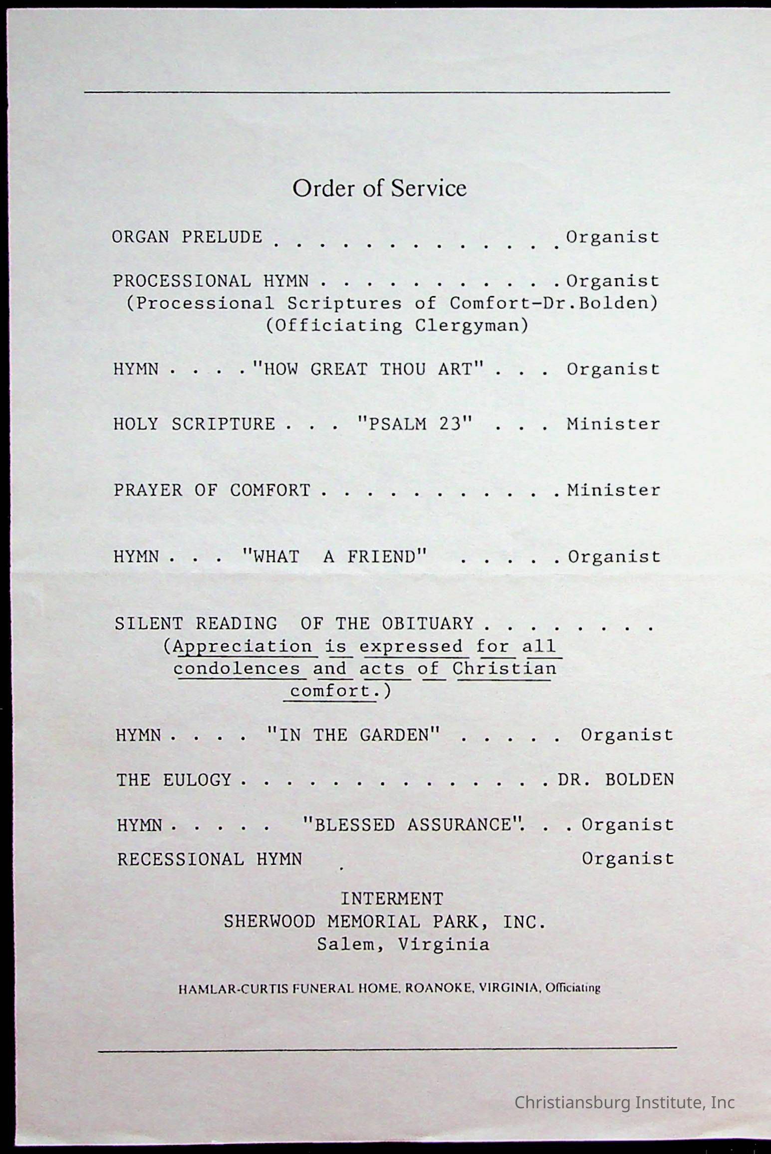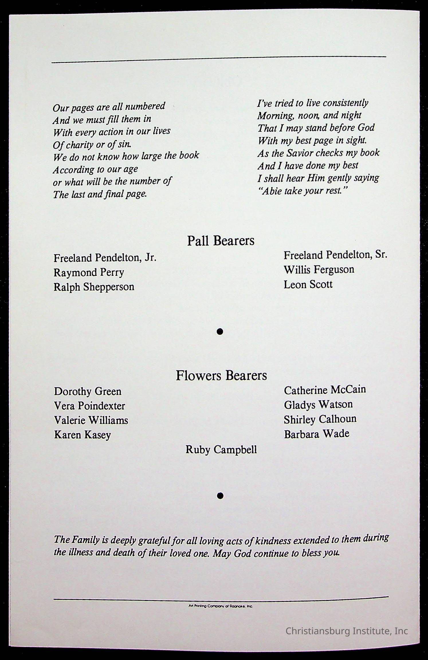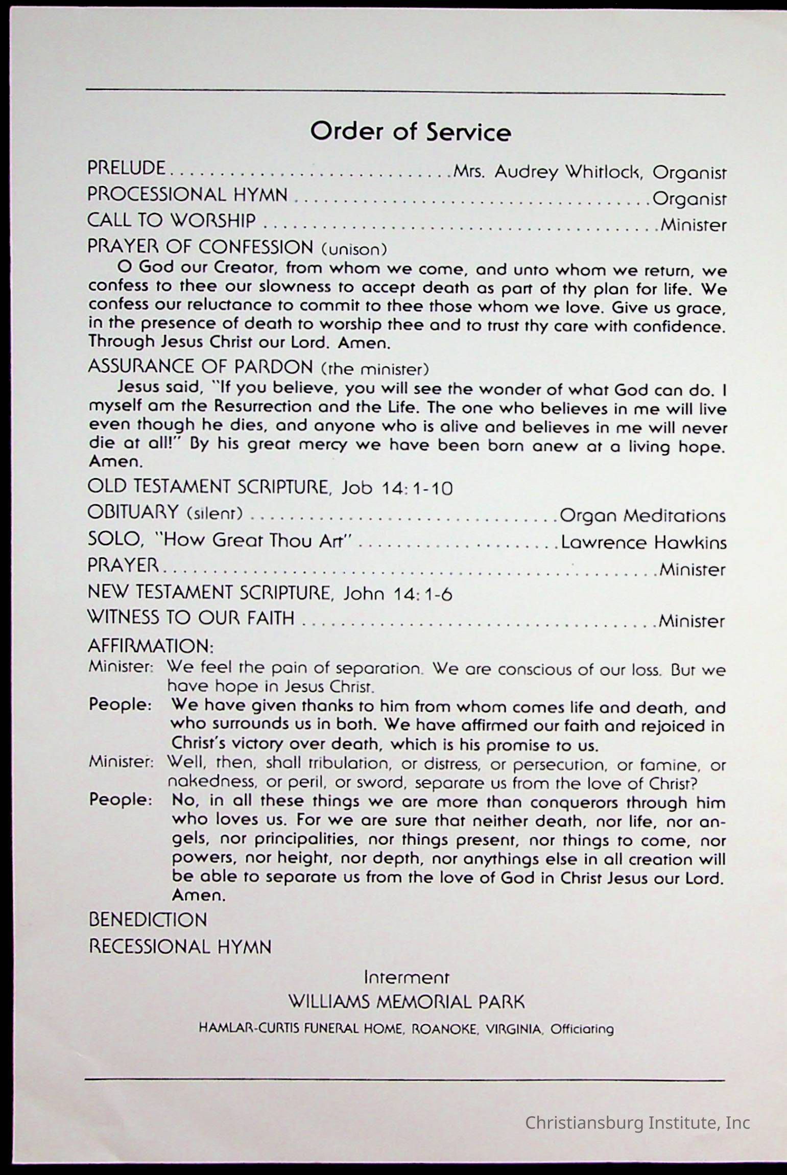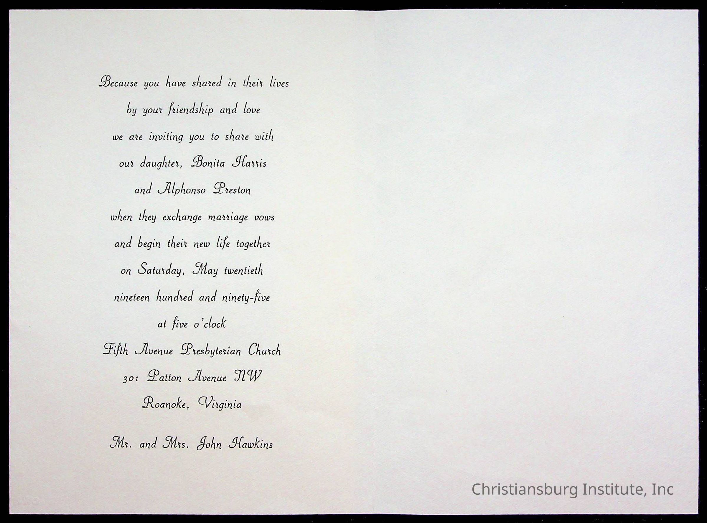Copyright has been assigned to Christiansburg Institute Museum & Archives by Fifth Avenue Presbyterian Church. For permission to publish materials created by the donor, contact CIMA@christiansburginstitute.com. Materials not created by Fifth Avenue Presbyterian Church may still be under copyright.