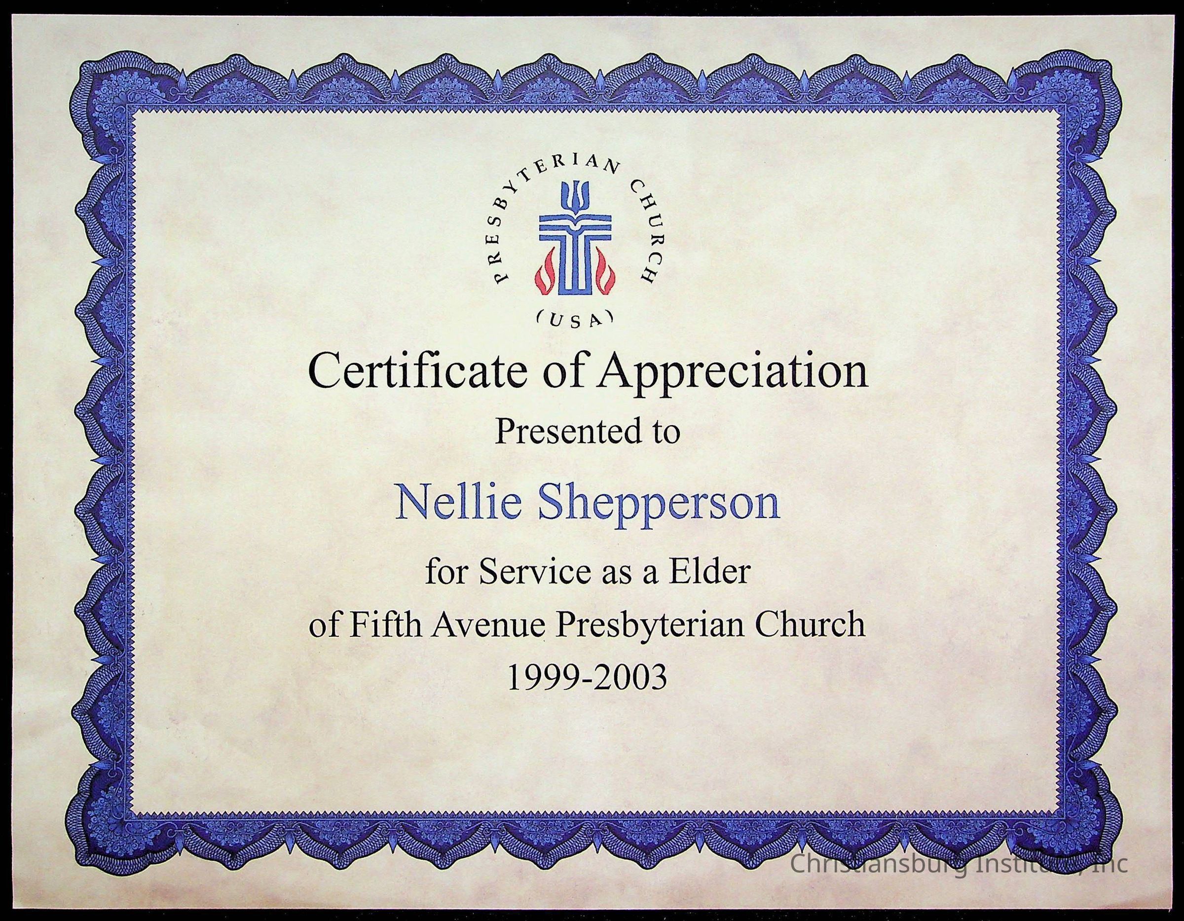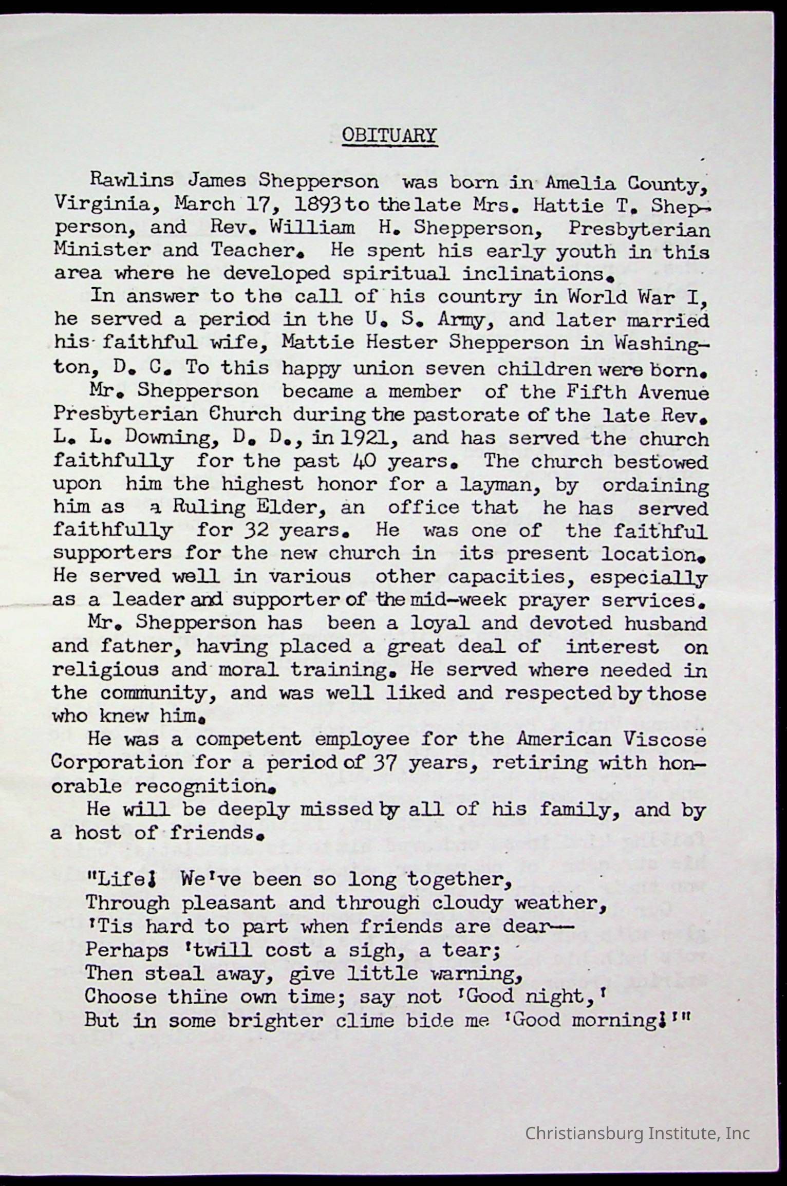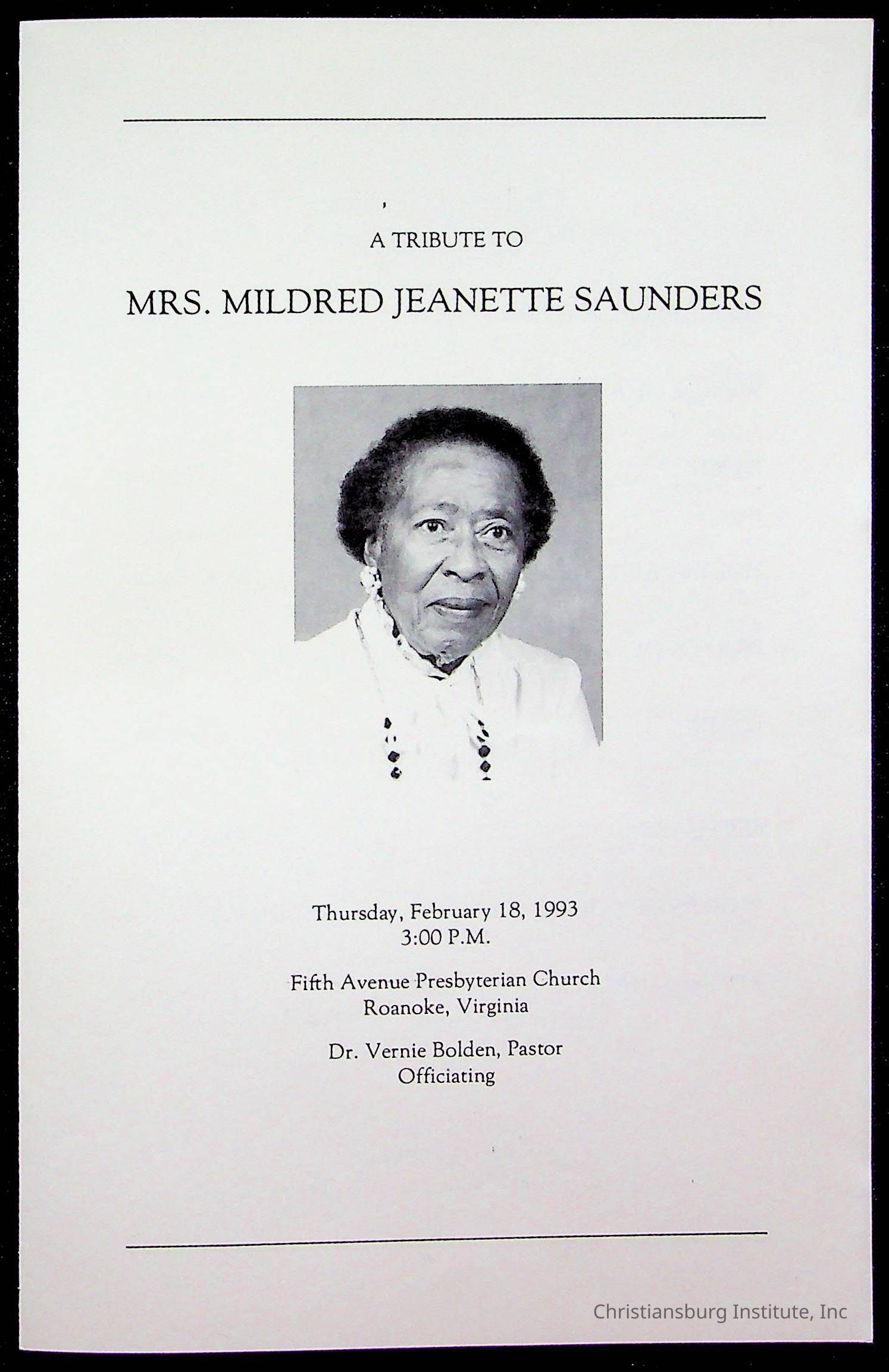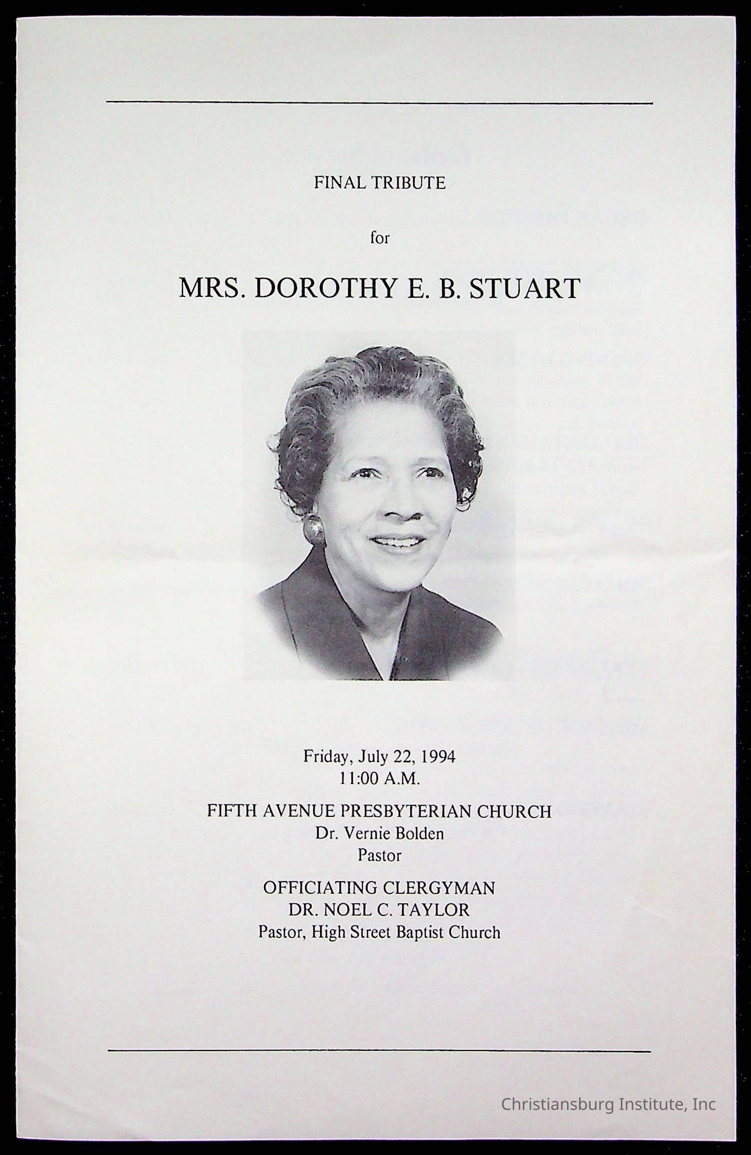 Copyright has been assigned to Christiansburg Institute Museum & Archives by Fifth Avenue Presbyterian Church. For permission to publish materials created by the donor, contact CIMA@christiansburginstitute.com. Materials not created by Fifth Avenue Presbyterian Church may still be under copyright.
