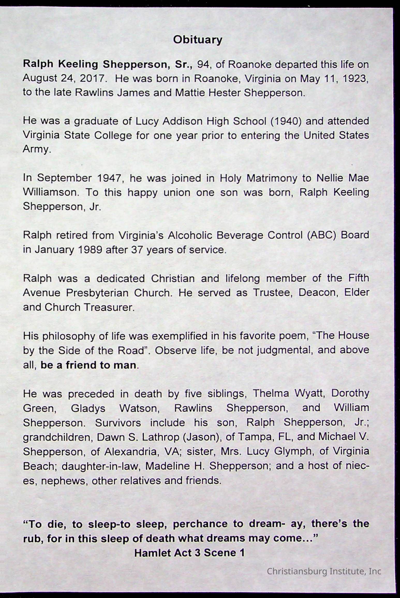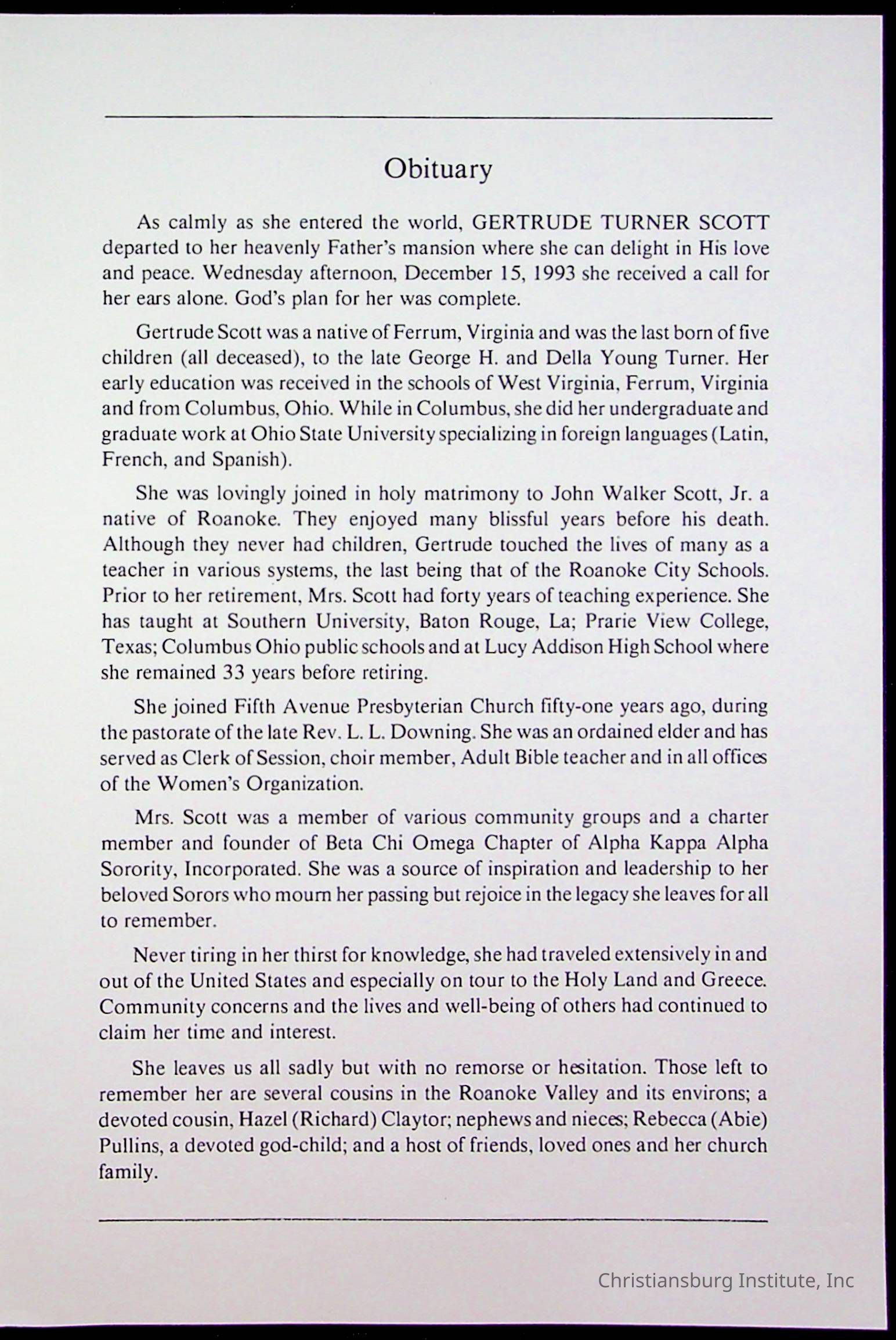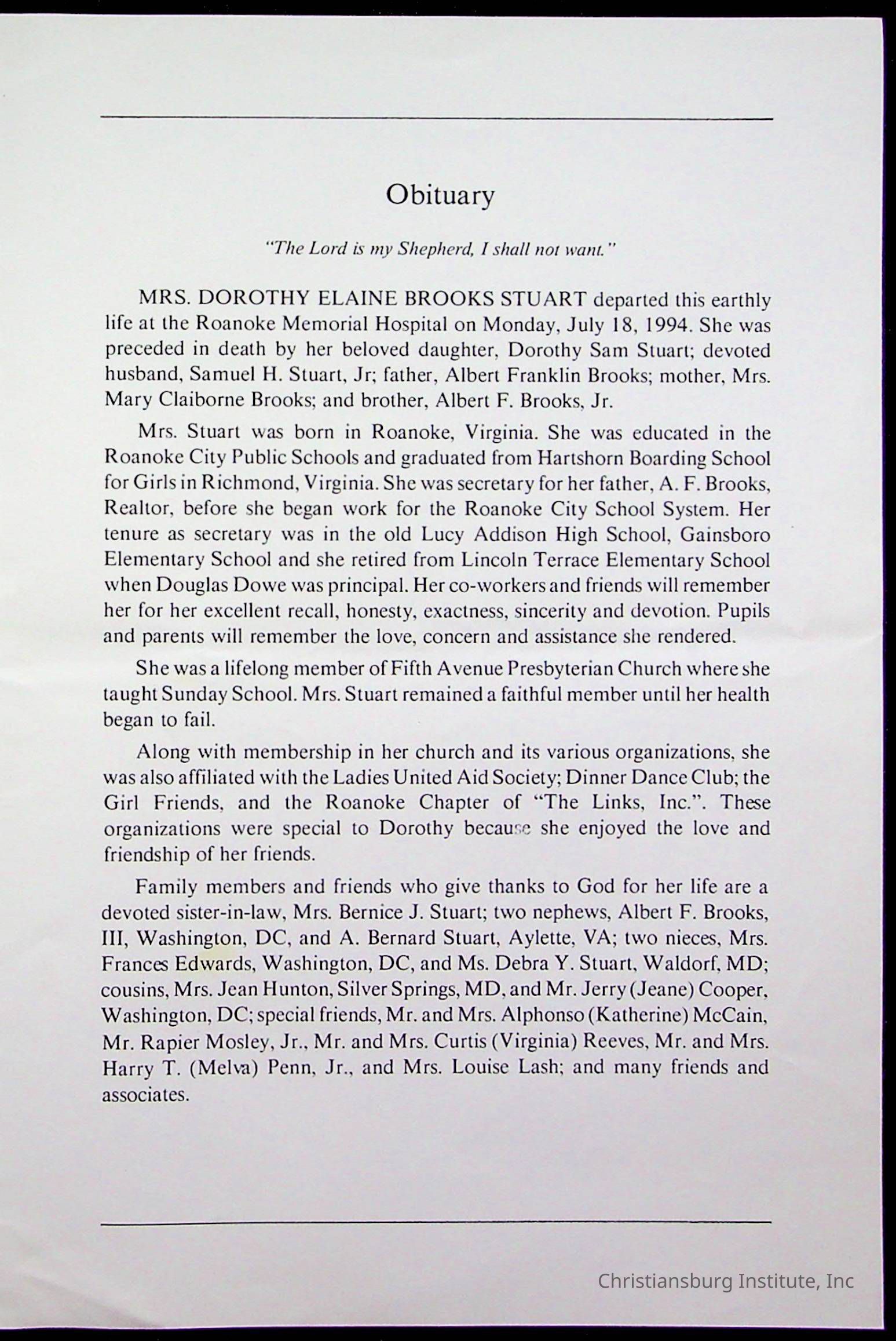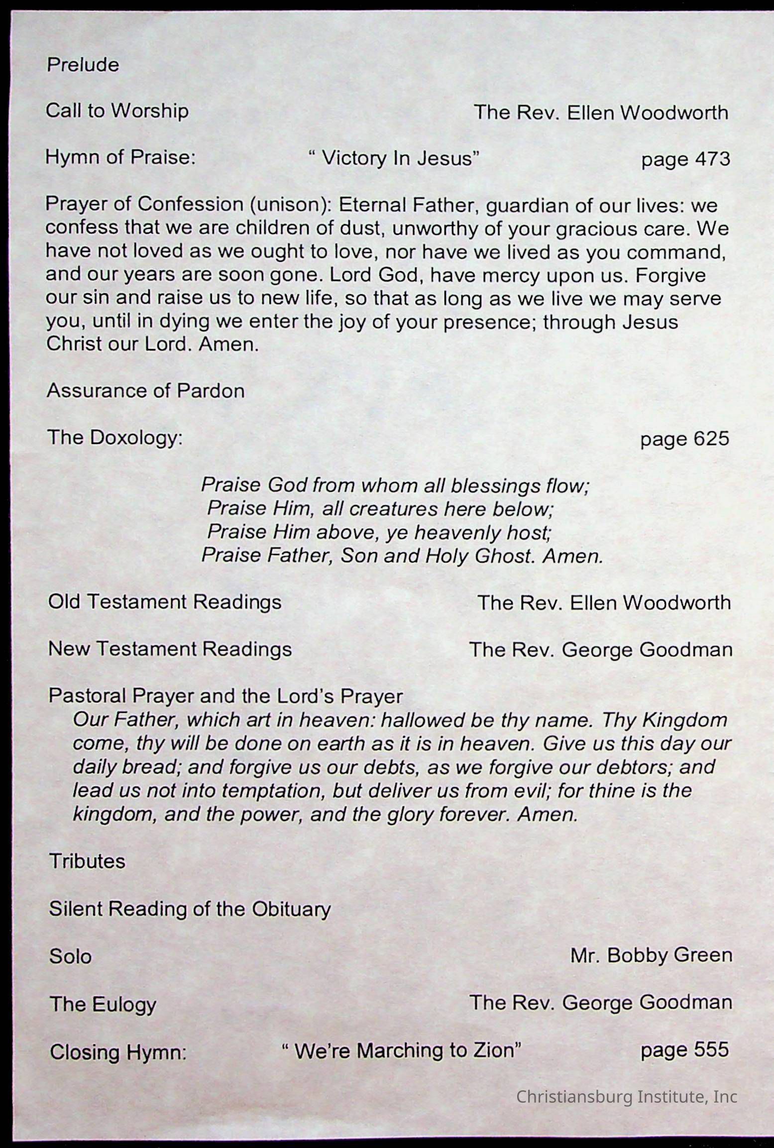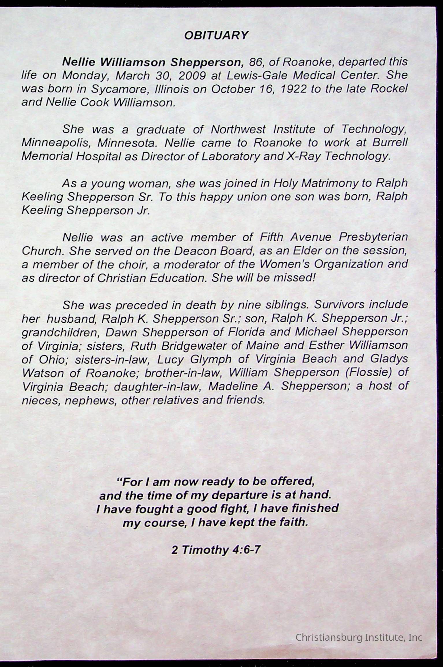 Copyright has been assigned to Christiansburg Institute Museum & Archives by Fifth Avenue Presbyterian Church. For permission to publish materials created by the donor, contact CIMA@christiansburginstitute.com. Materials not created by Fifth Avenue Presbyterian Church may still be under copyright.