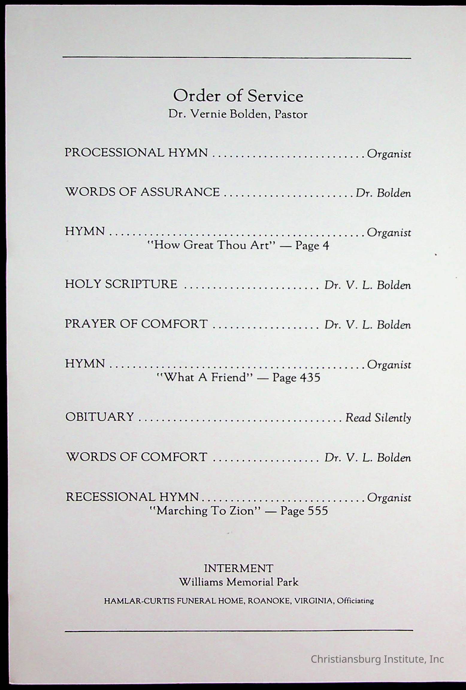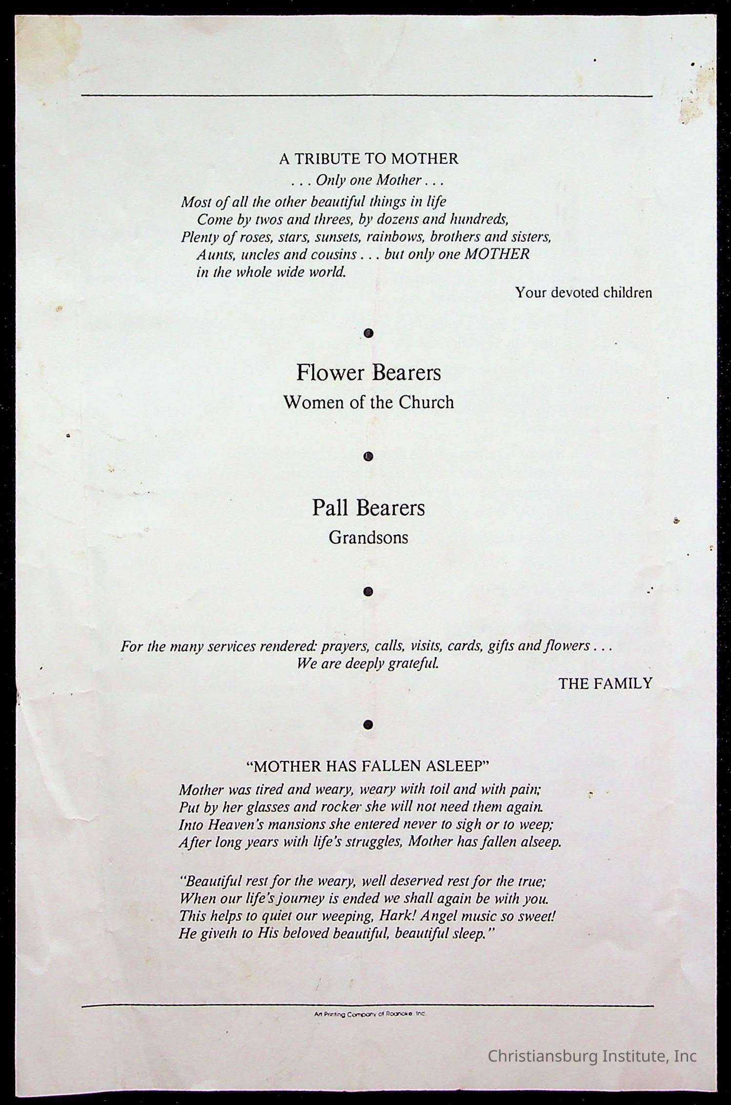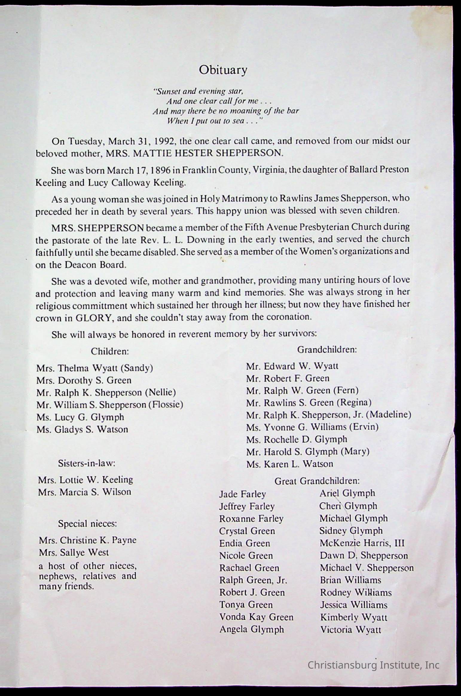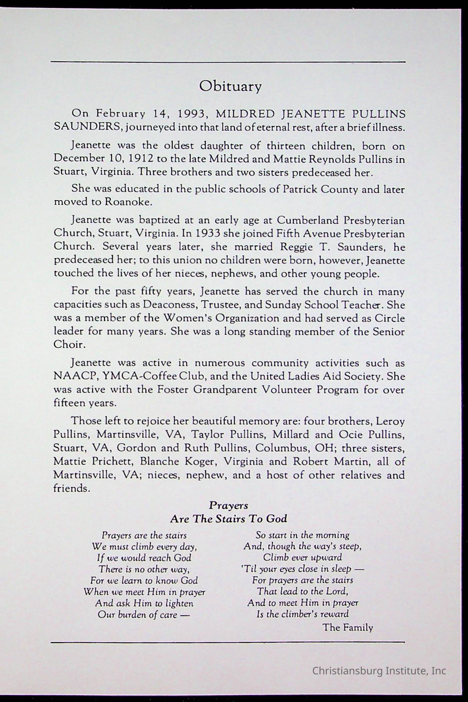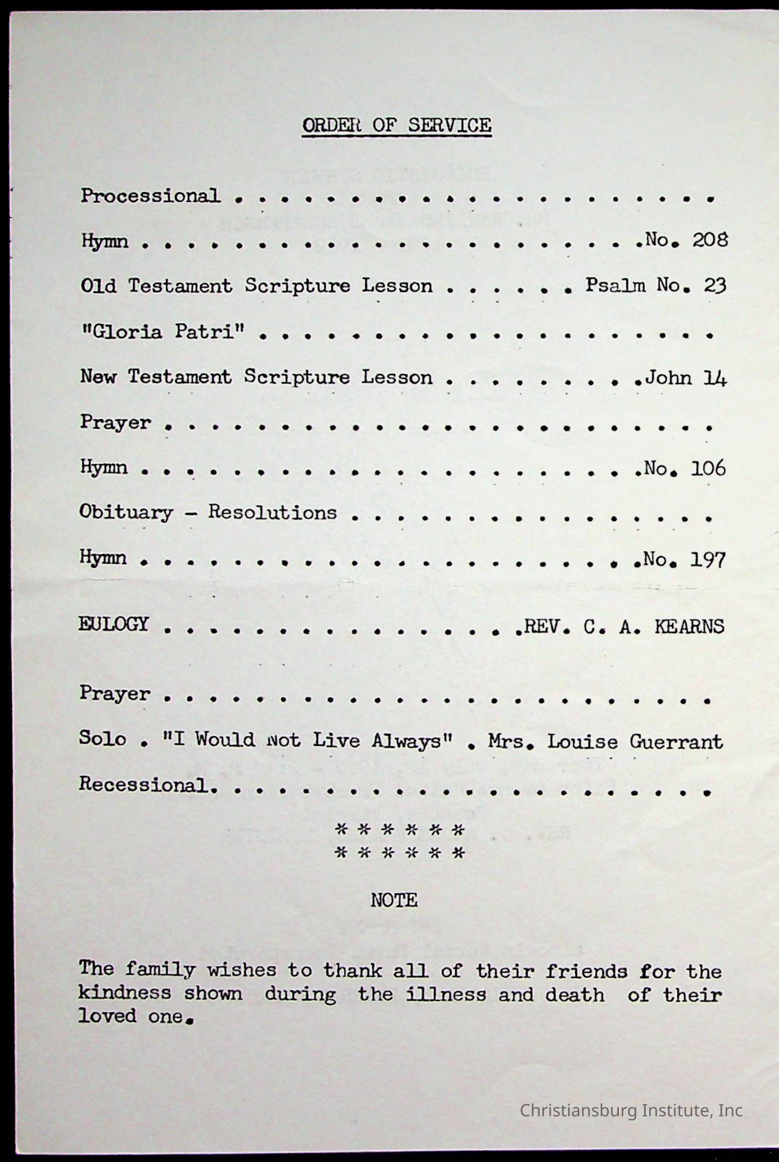 Copyright has been assigned to Christiansburg Institute Museum & Archives by Fifth Avenue Presbyterian Church. For permission to publish materials created by the donor, contact CIMA@christiansburginstitute.com. Materials not created by Fifth Avenue Presbyterian Church may still be under copyright.