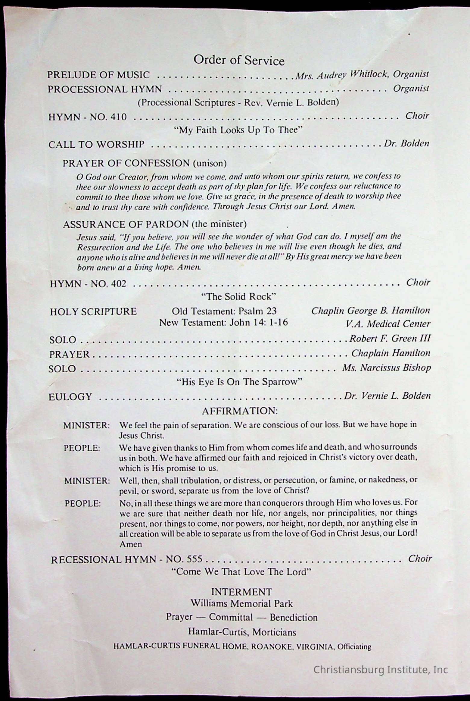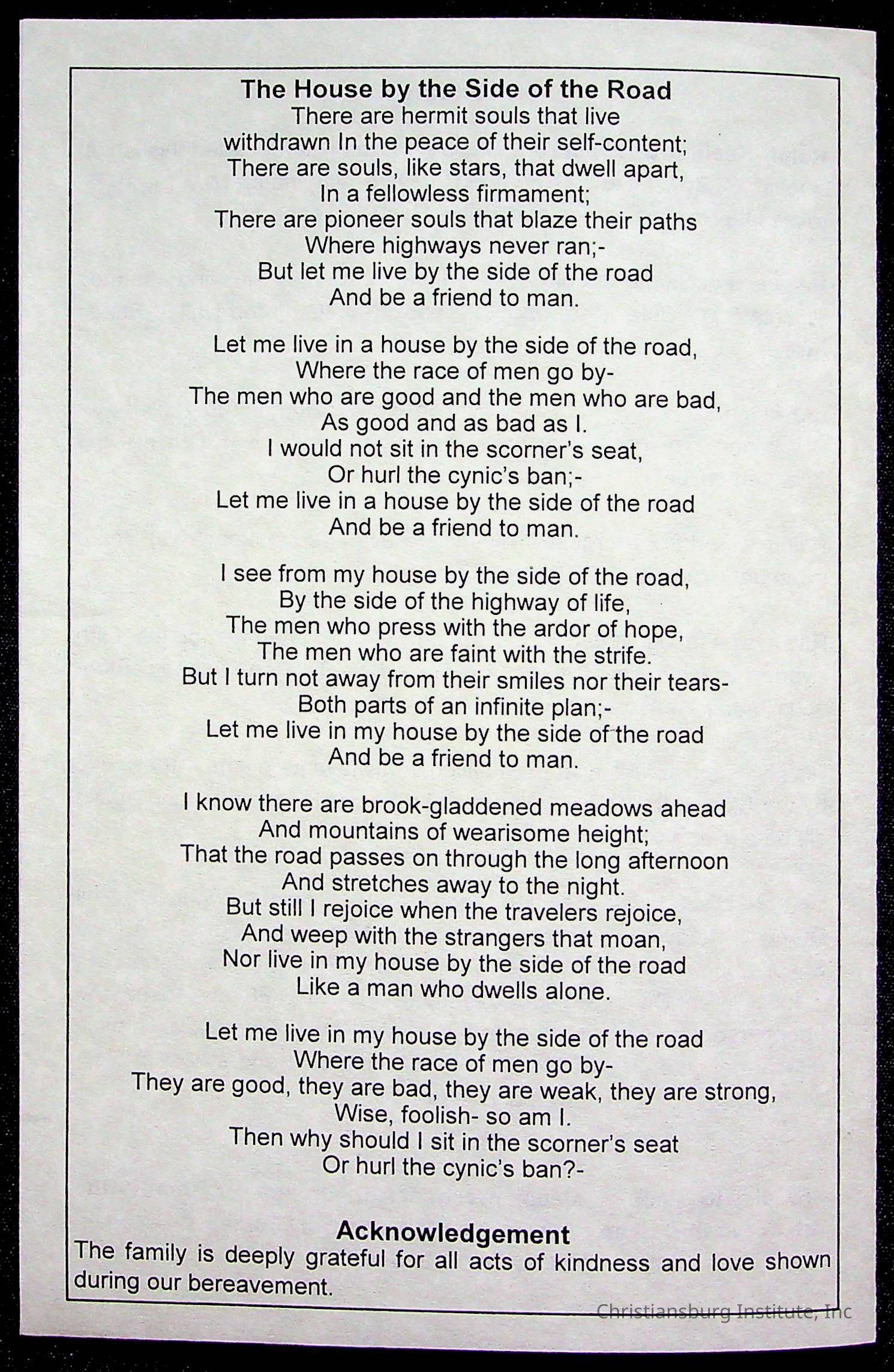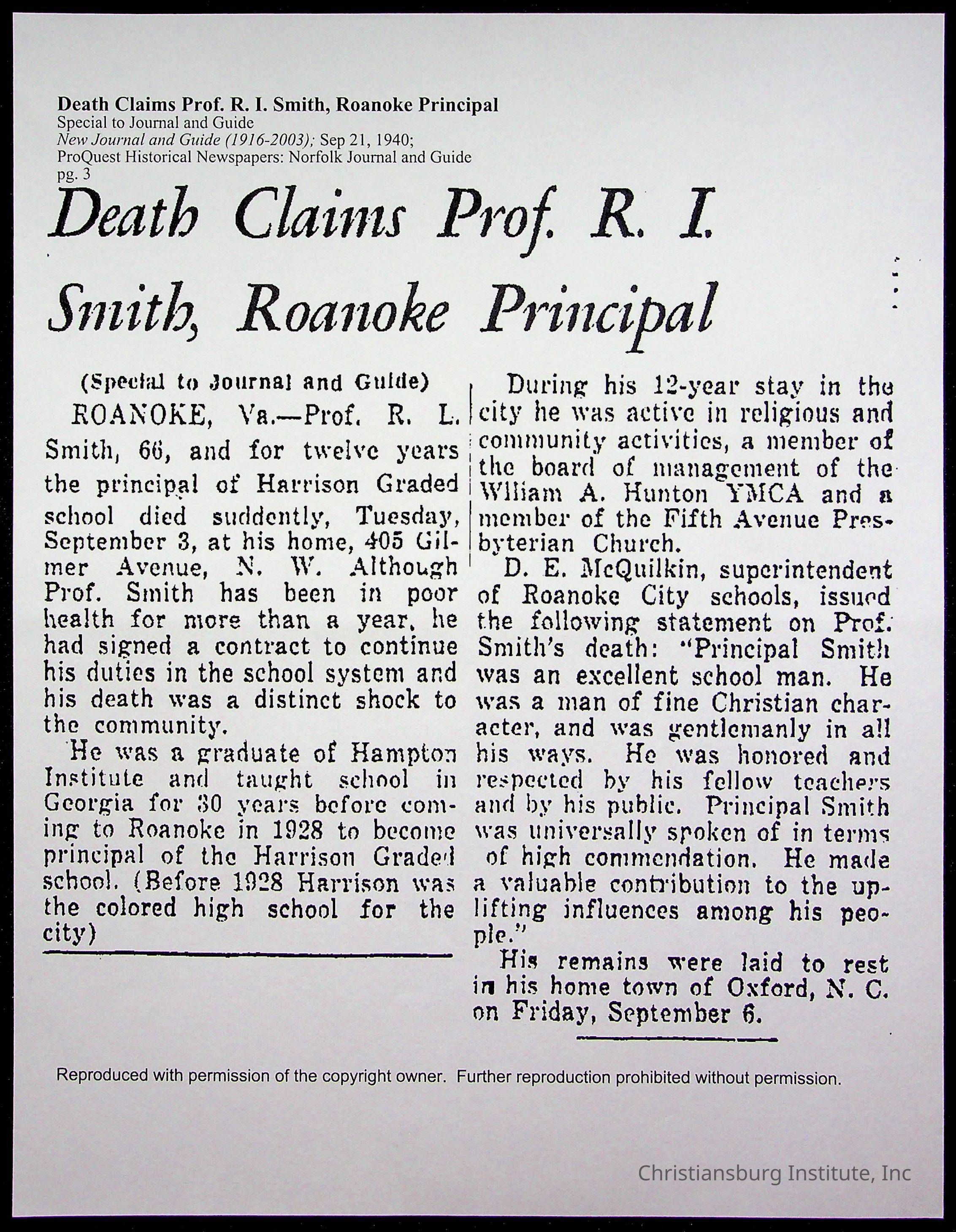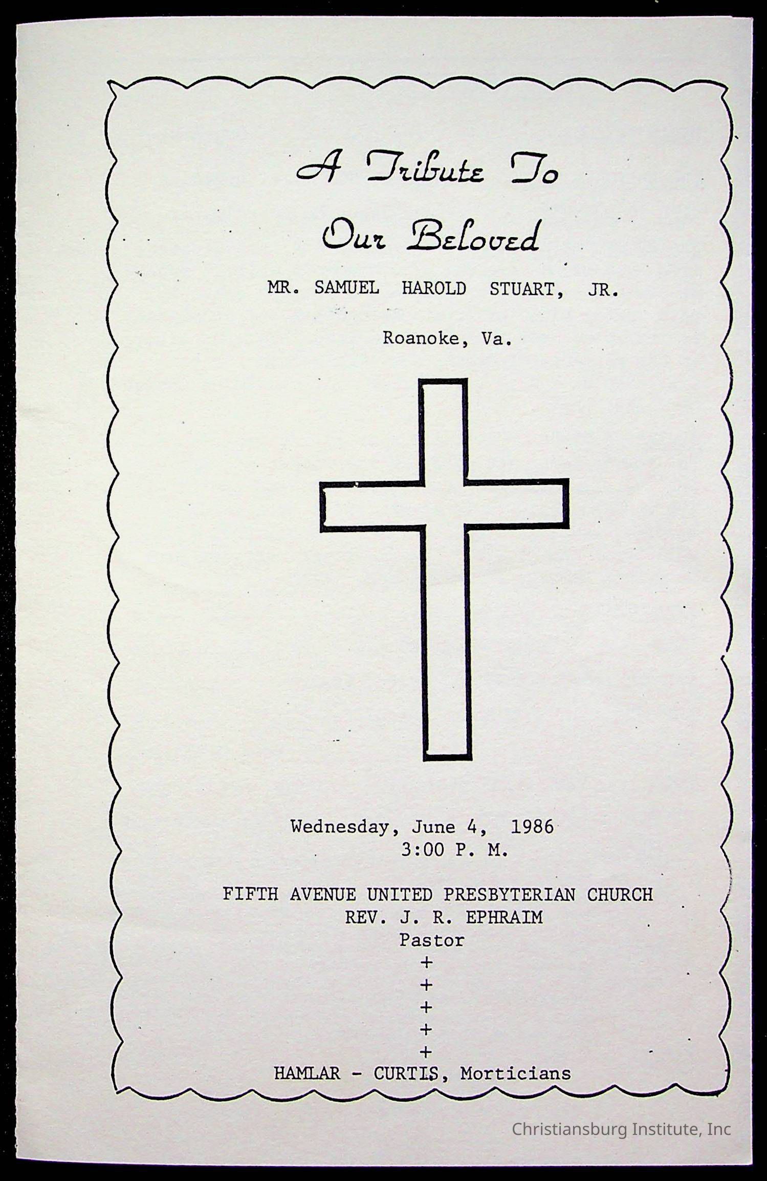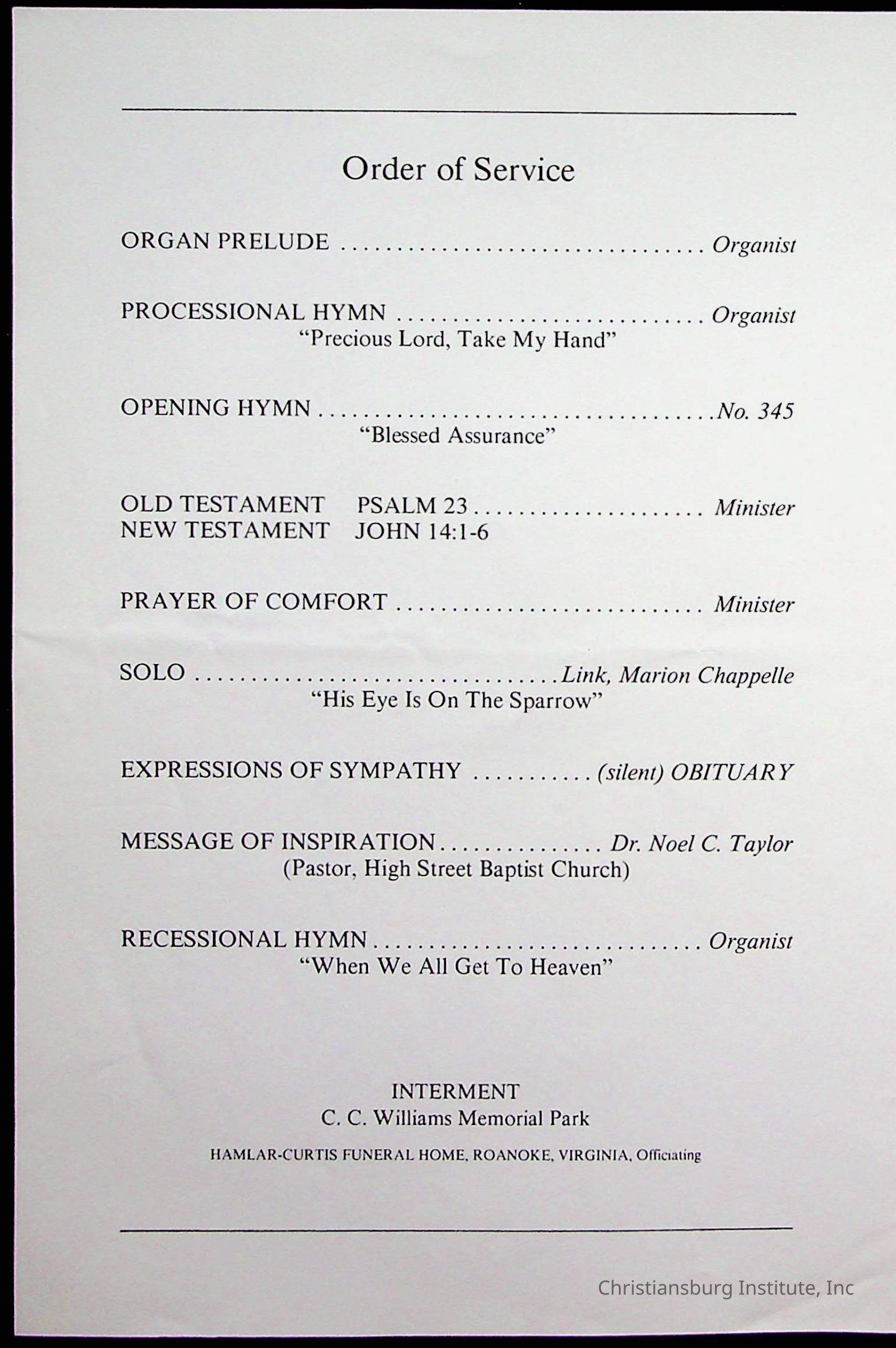 Copyright has been assigned to Christiansburg Institute Museum & Archives by Fifth Avenue Presbyterian Church. For permission to publish materials created by the donor, contact CIMA@christiansburginstitute.com. Materials not created by Fifth Avenue Presbyterian Church may still be under copyright.