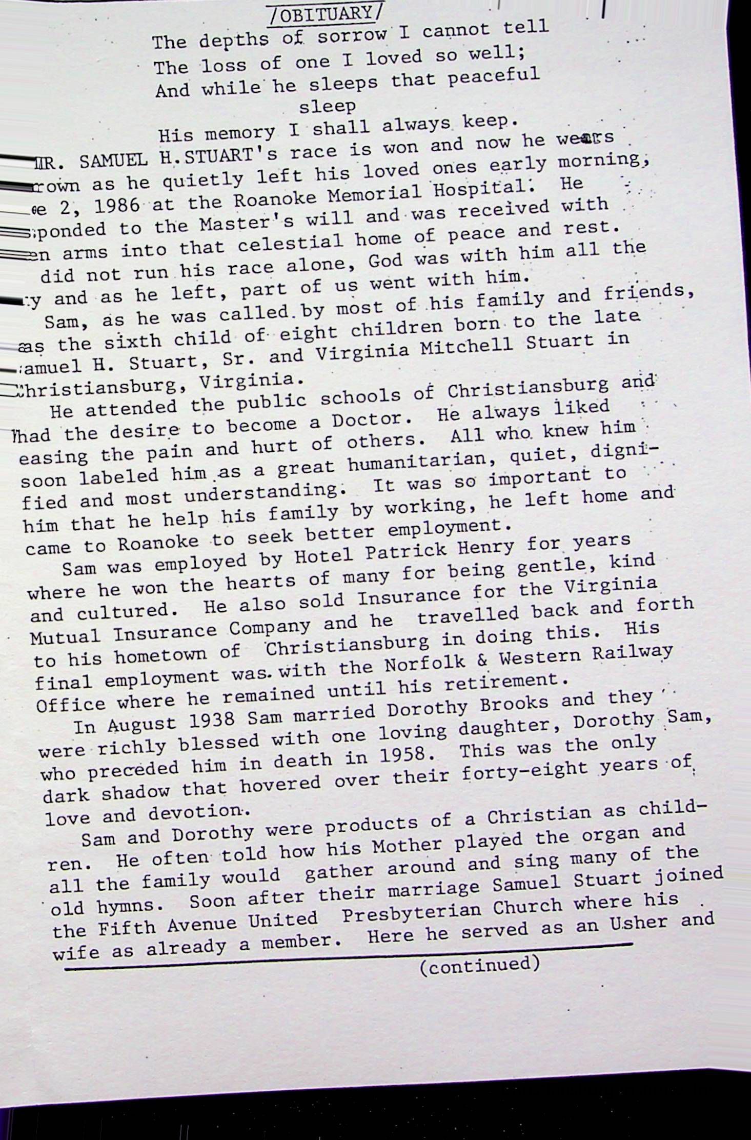 A collection of materials that pertain to the life events of the Fifth Avenue Presbyterian Church congregation (births, marriages, and deaths) for S names.Collection