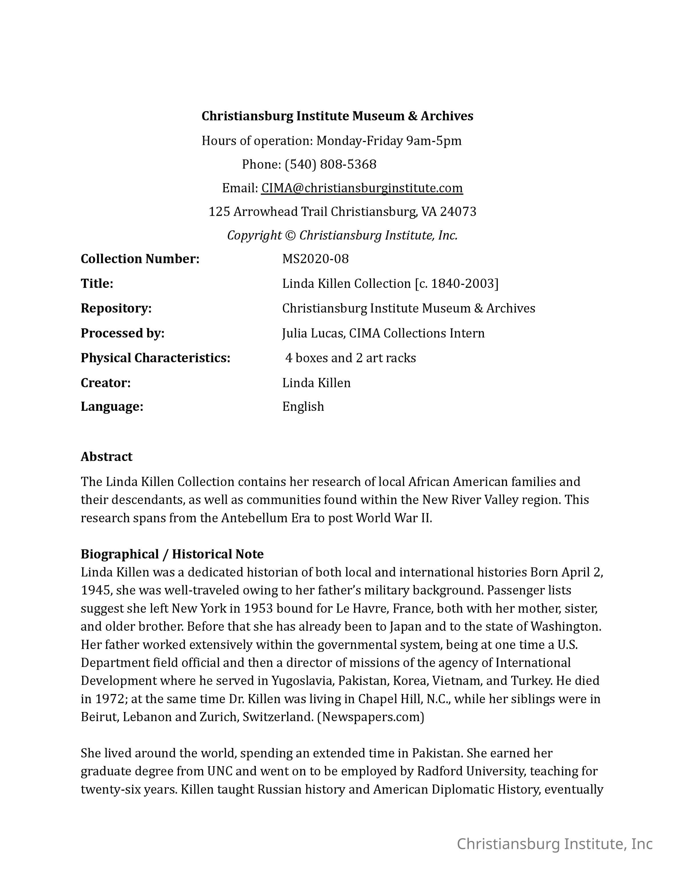 Linda Killen Collection Finding Aid