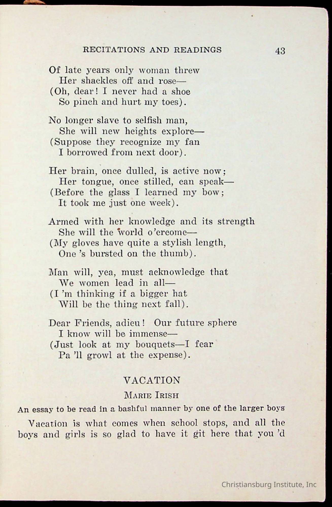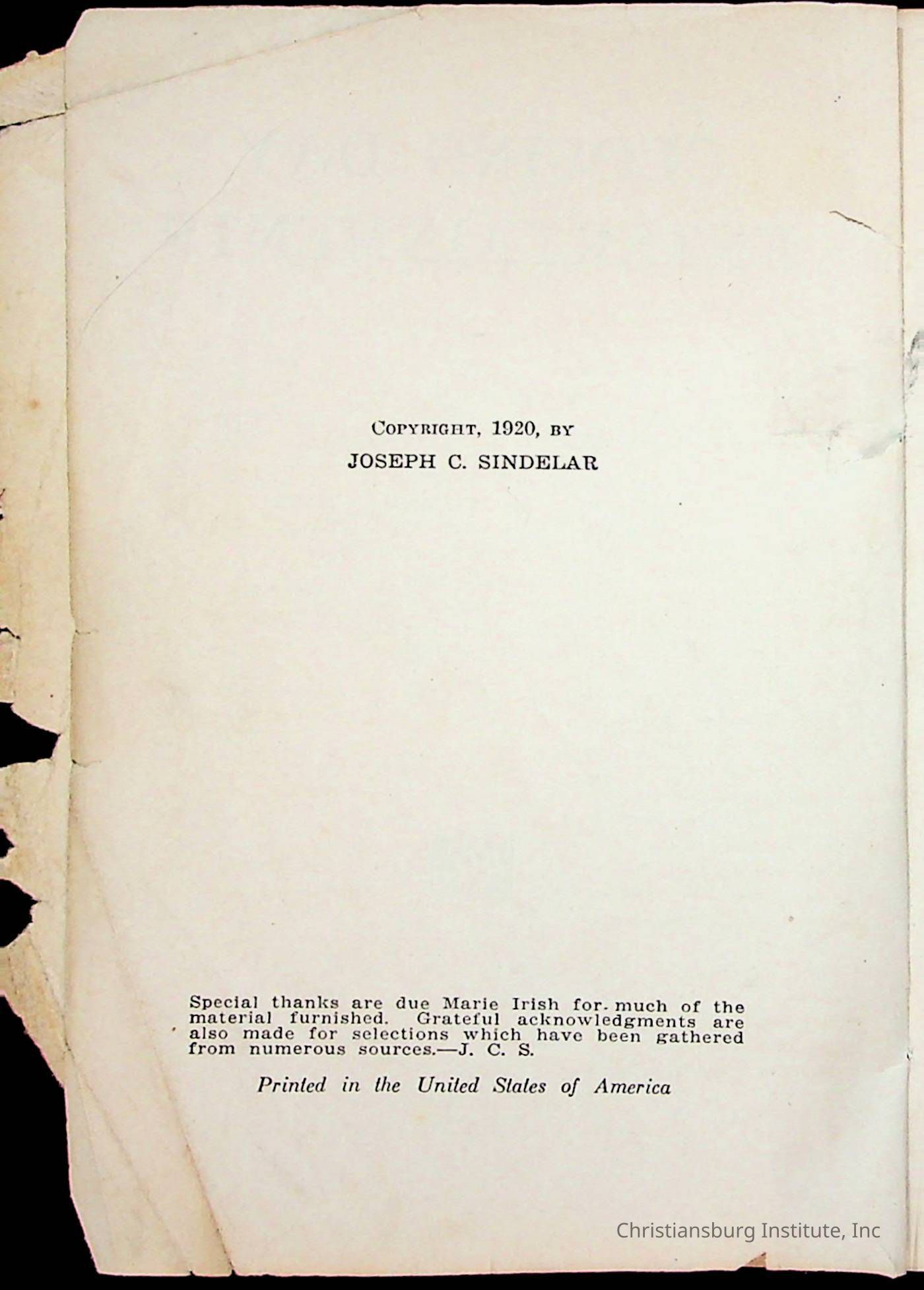Copyright has been assigned to Christiansburg Institute Museum & Archives by Amanda DeHart. For permission to publish materials created by the donor, contact CIMA@christiansburginstitute.com. Materials not created by Amanda DeHart may still be under copyright.