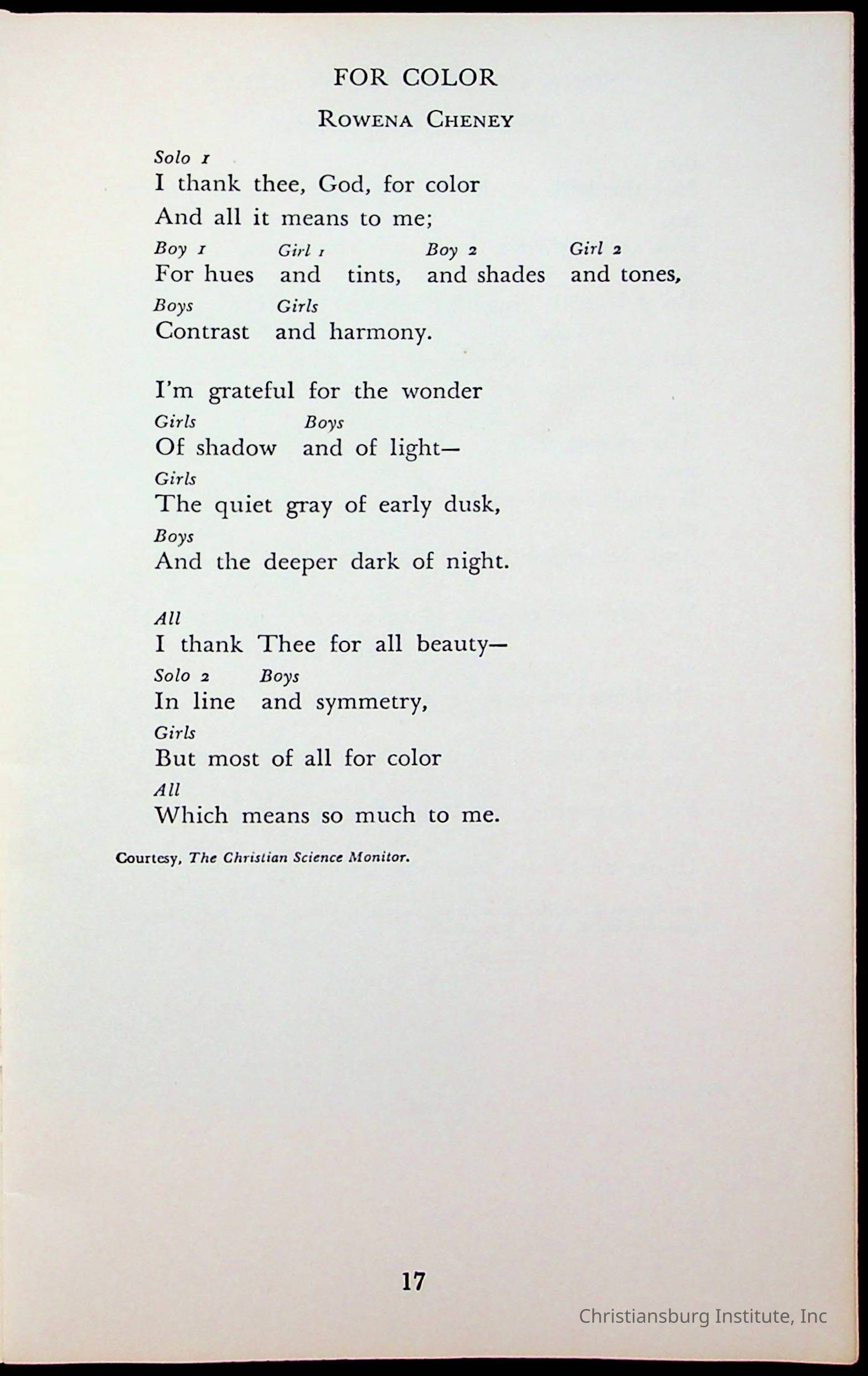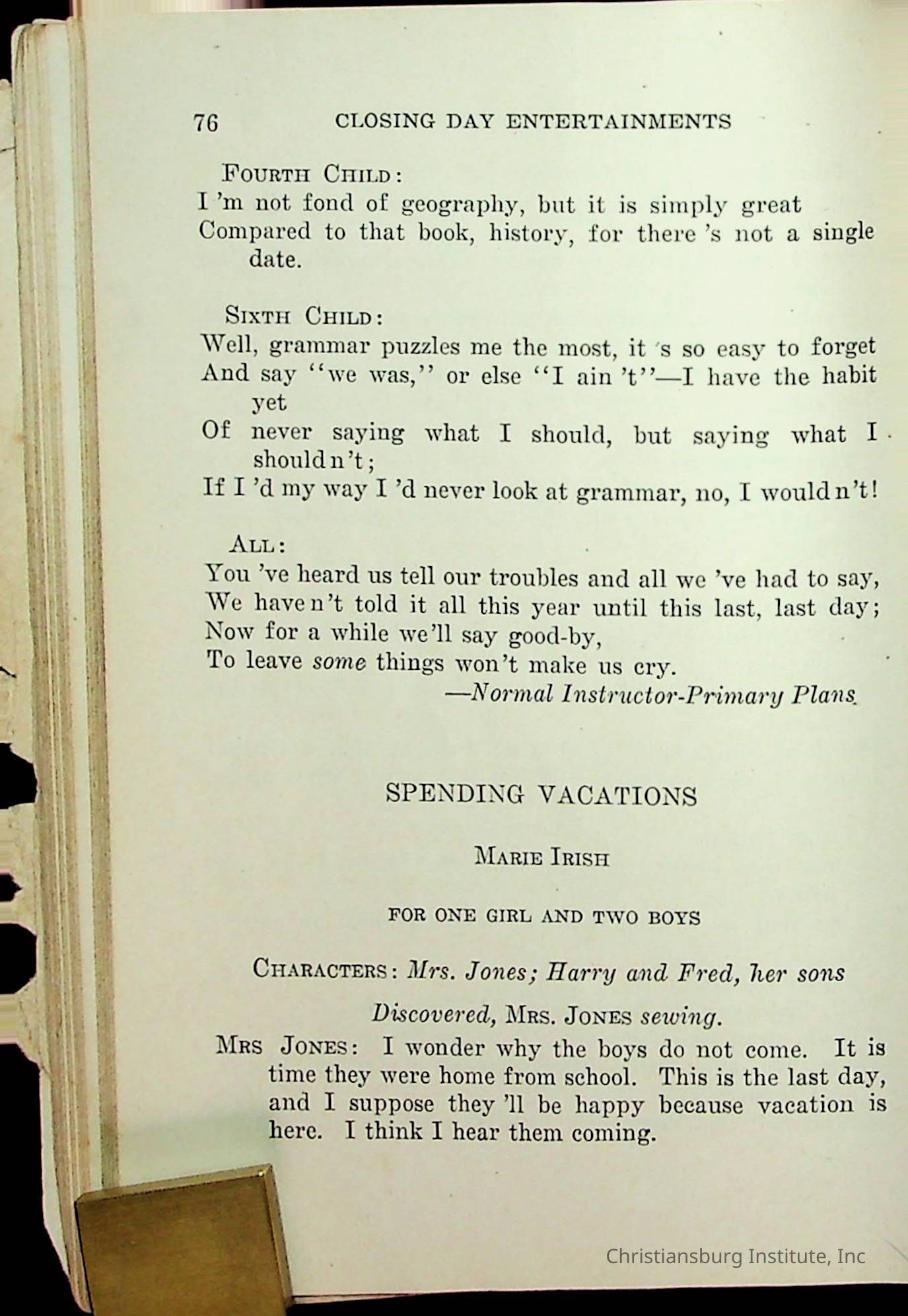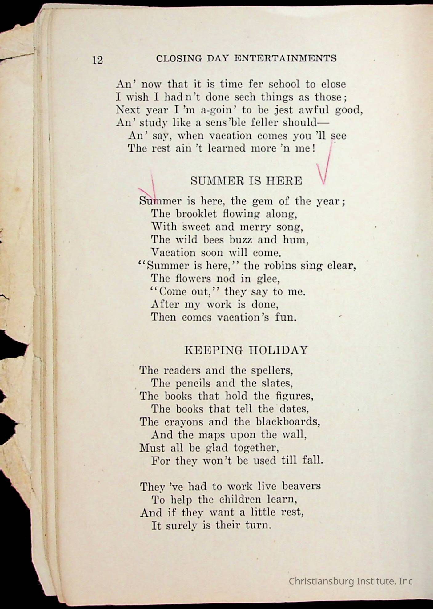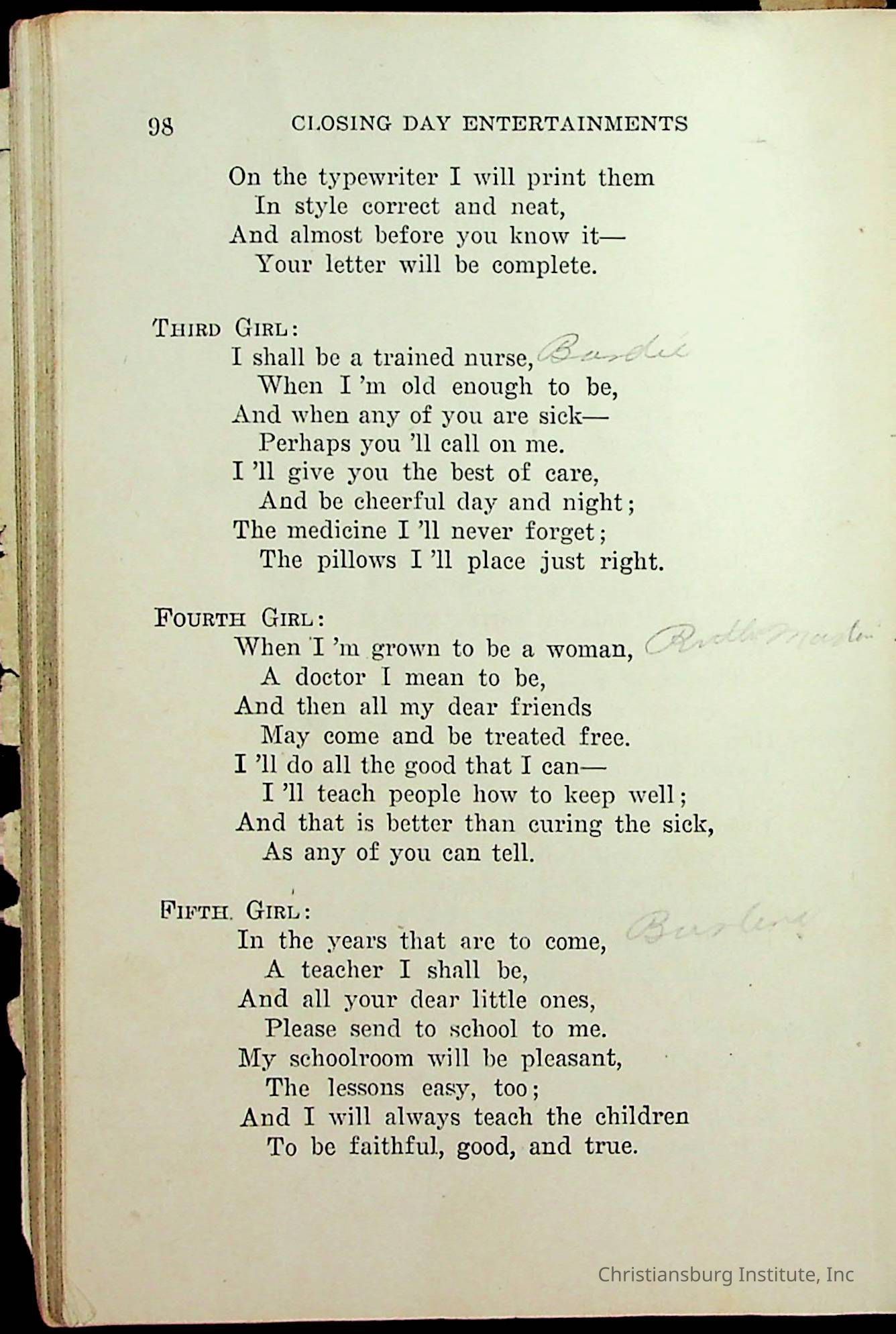 An archive of literature materials collected from Calfee Training School including a play and a book of poems, undated.