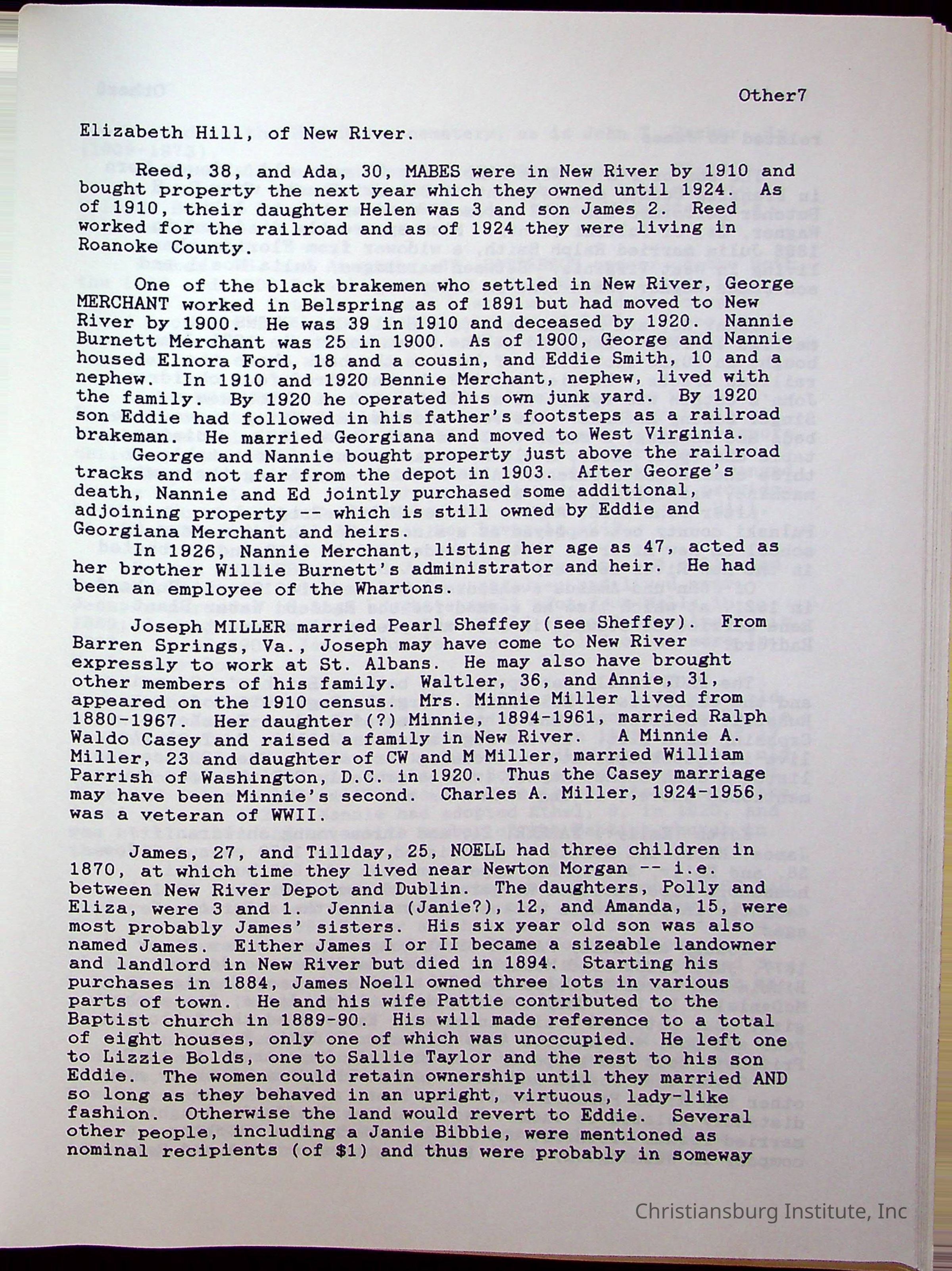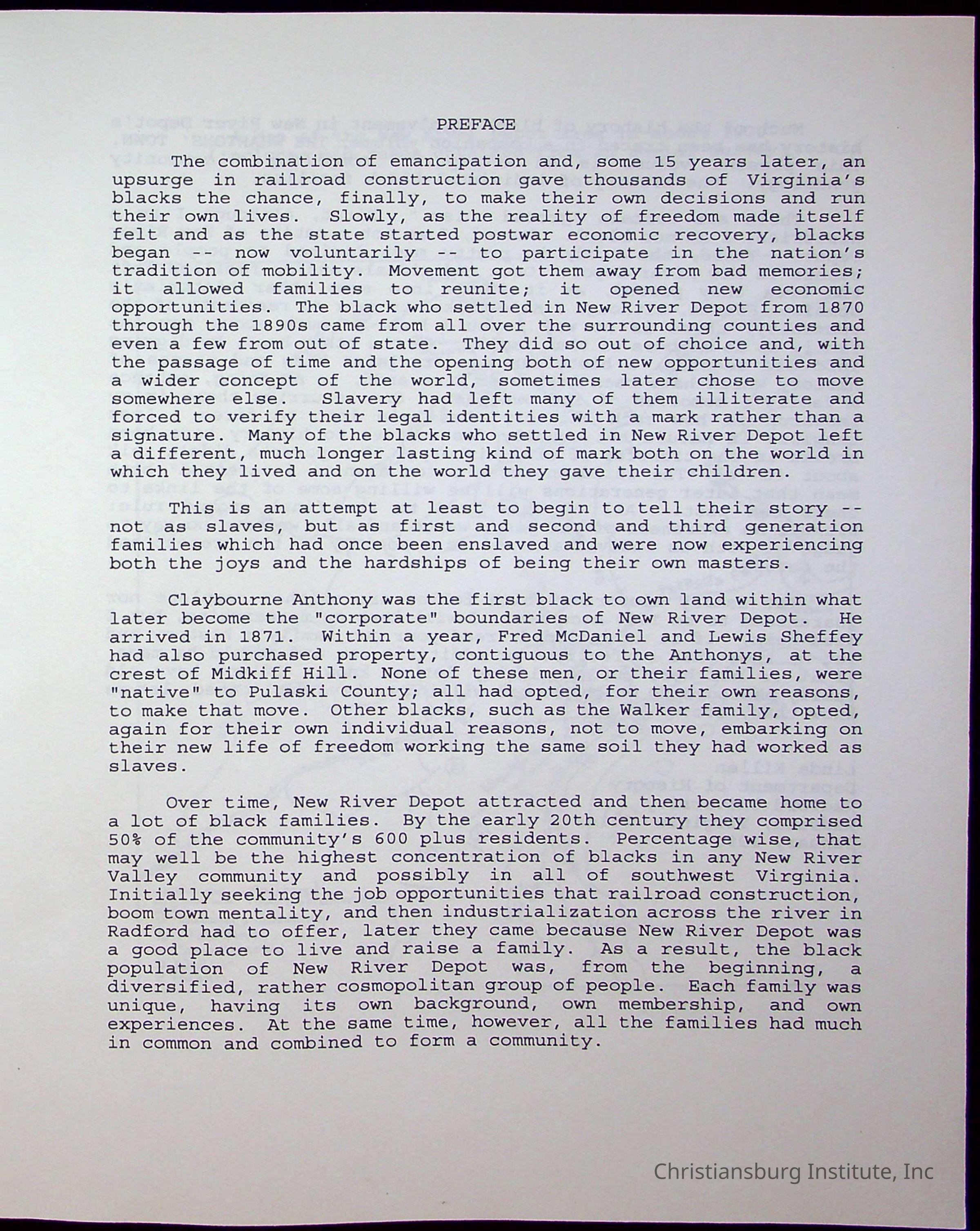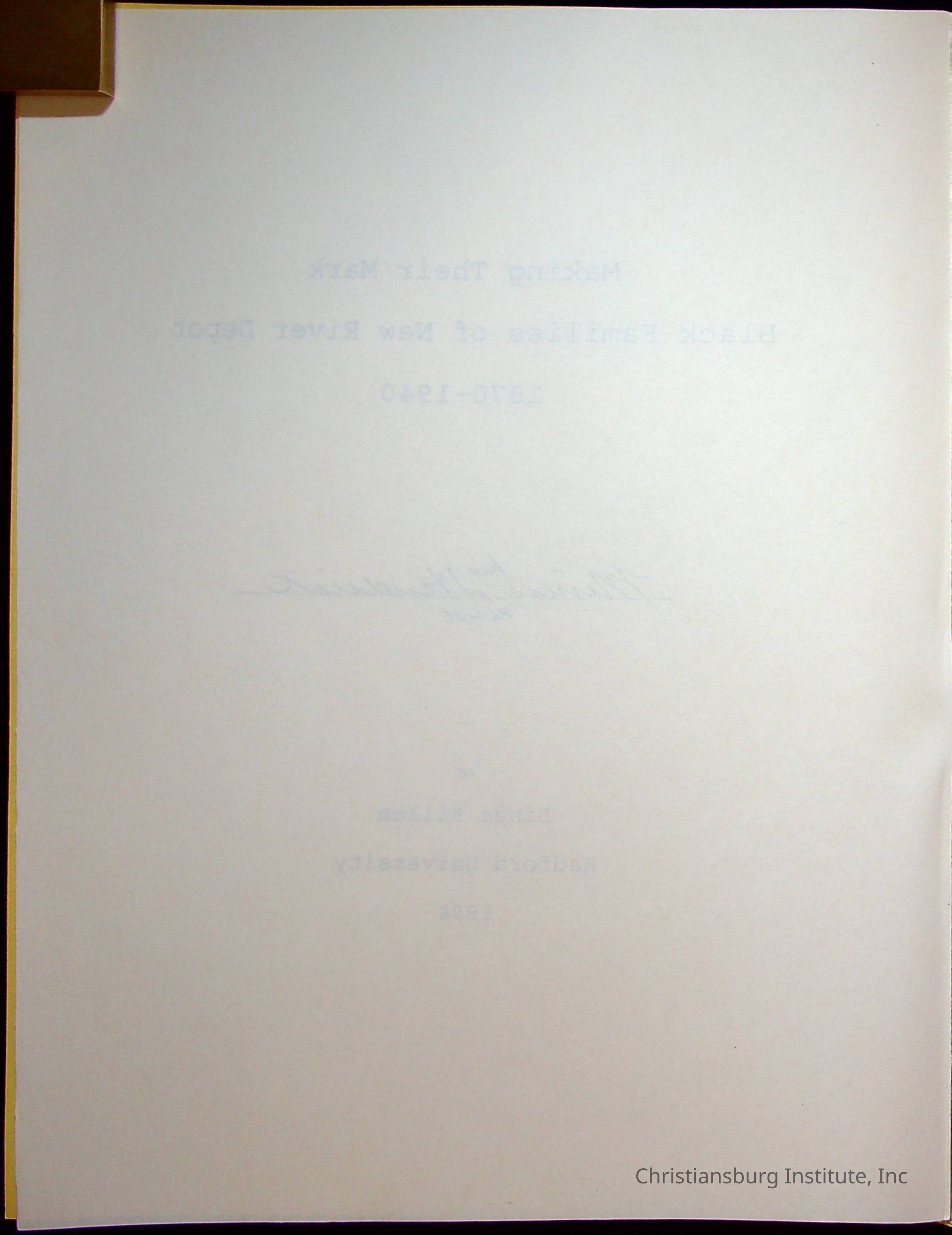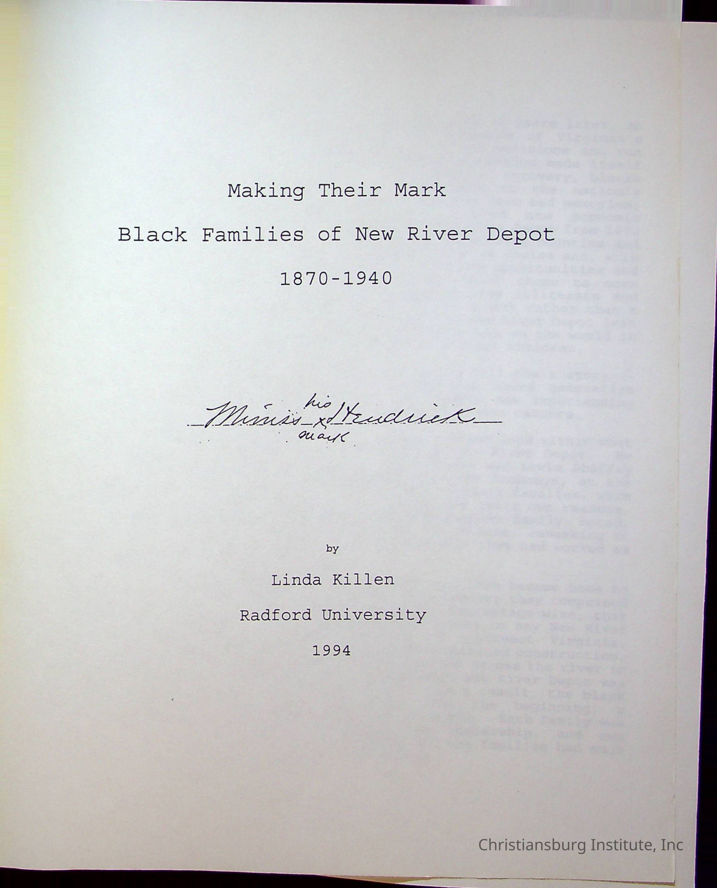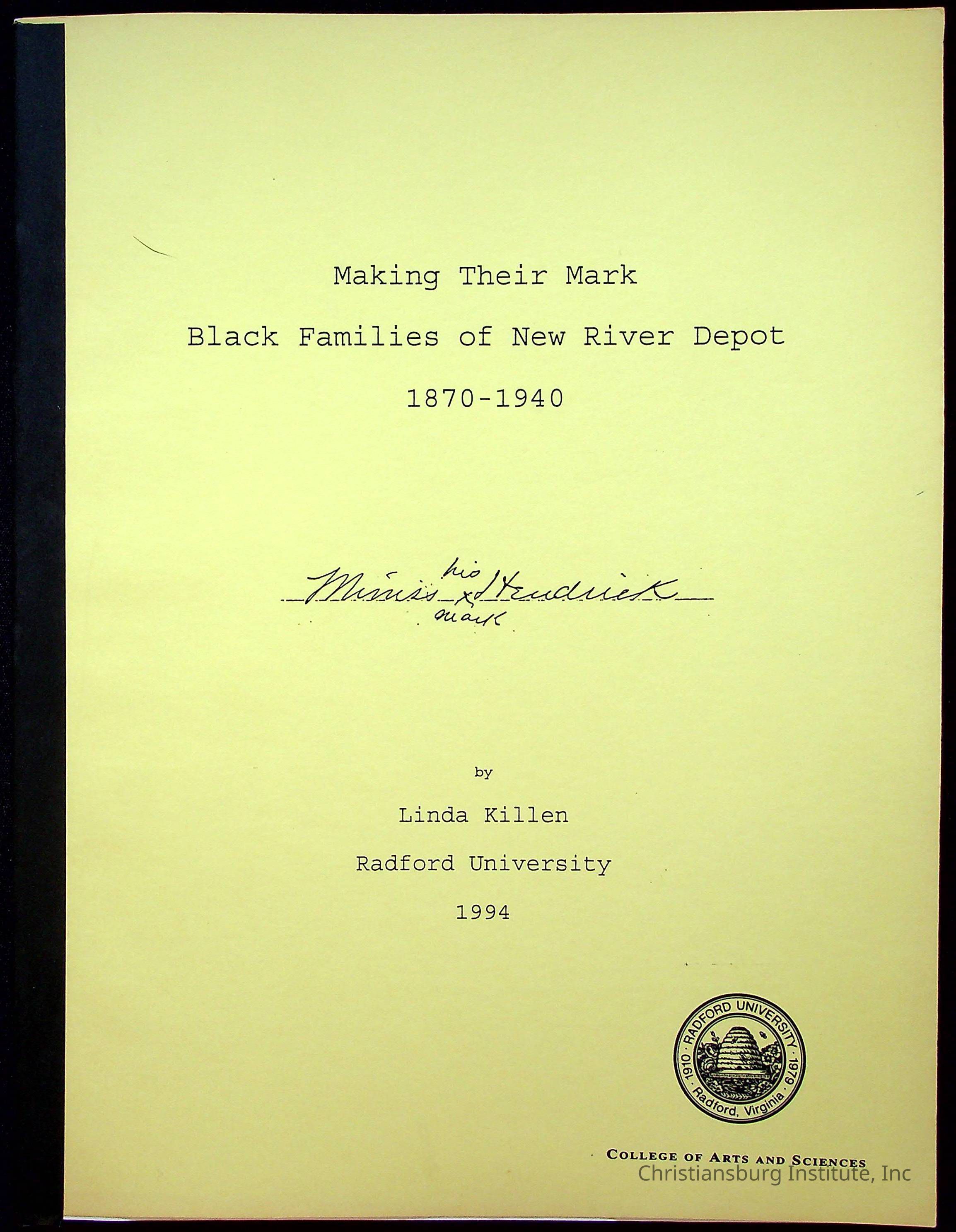"Making Their Mark: Black Families of New River Depot 1870-1940" written by Dr Linda Killen and published by Radford University in the year 1994.Collection