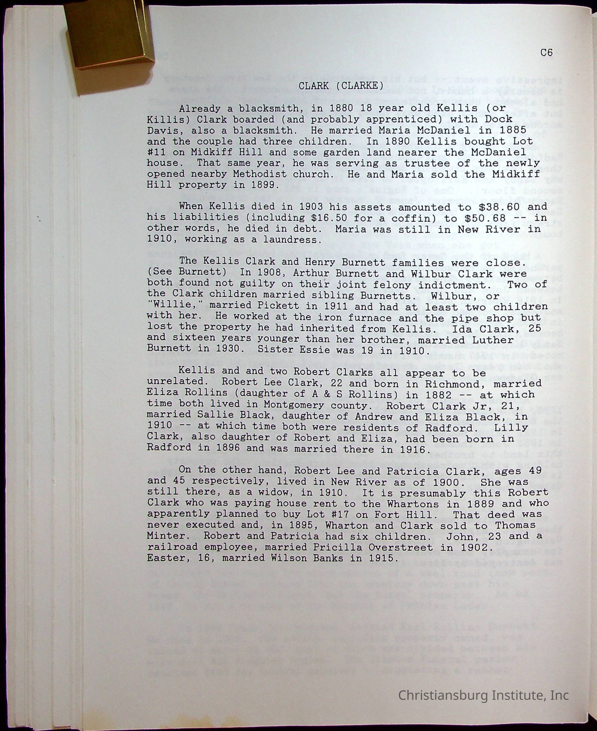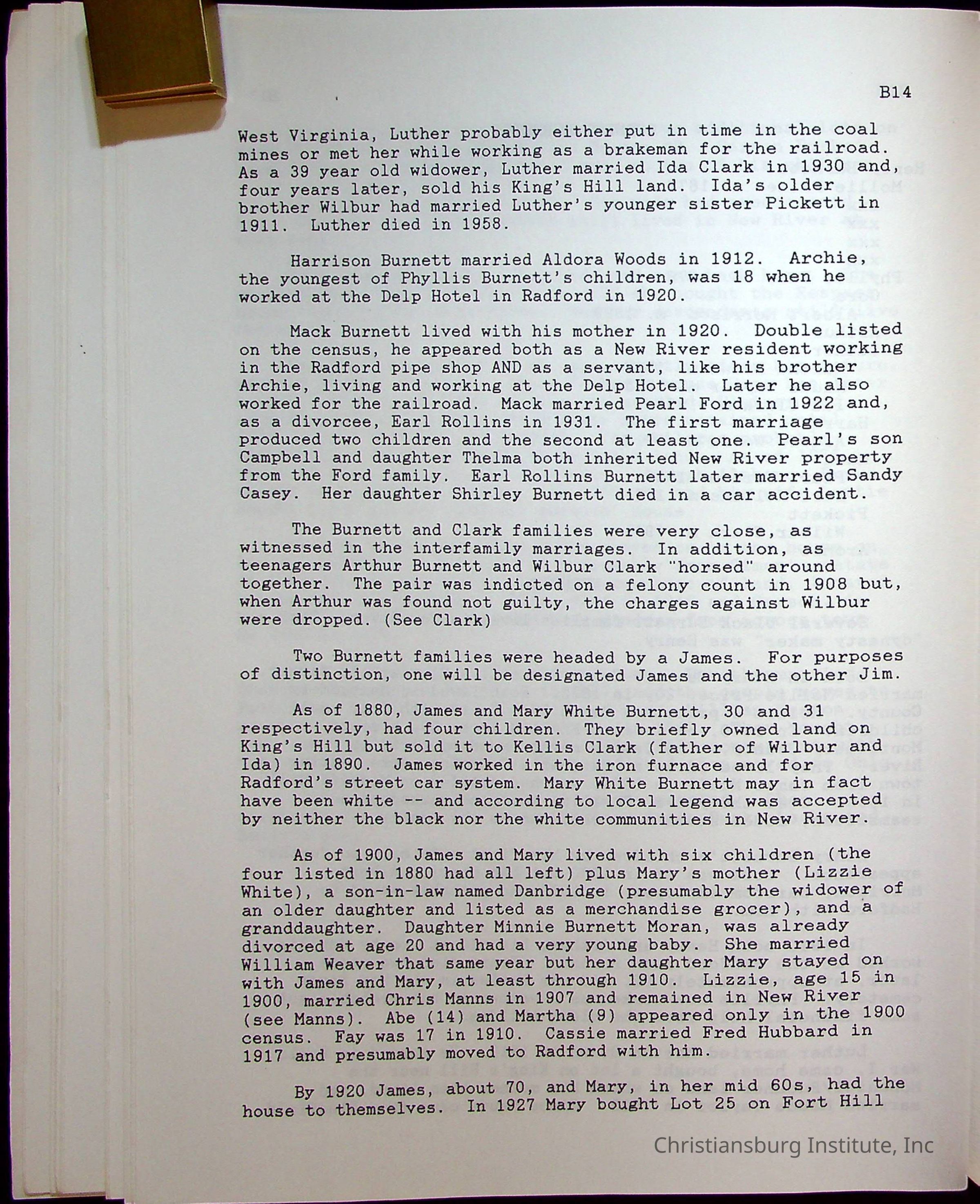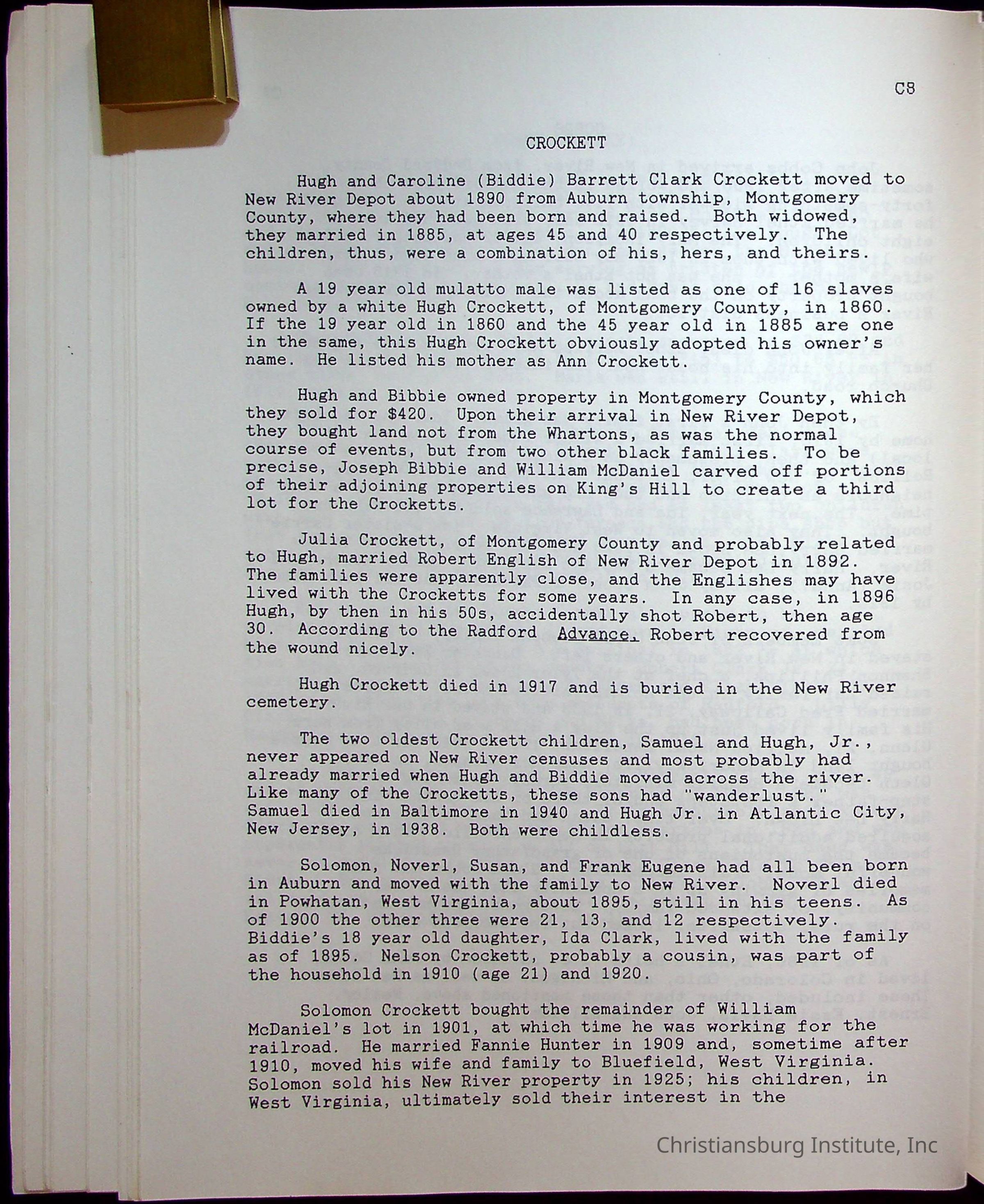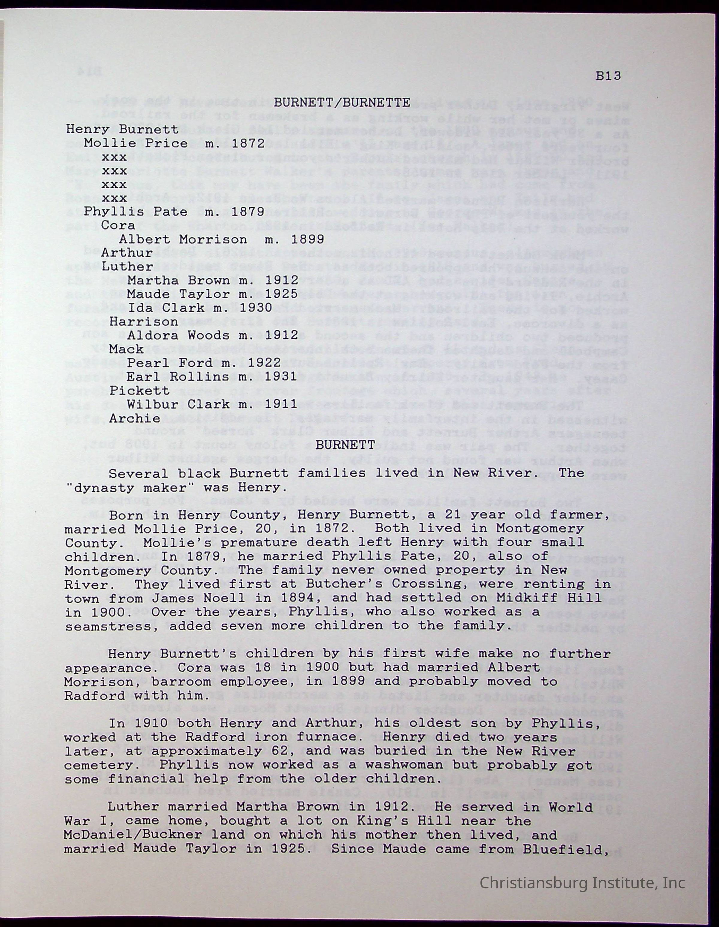 "Making Their Mark: Black Families of New River Depot 1870-1940" written by Dr Linda Killen and published by Radford University in the year 1994.Collection