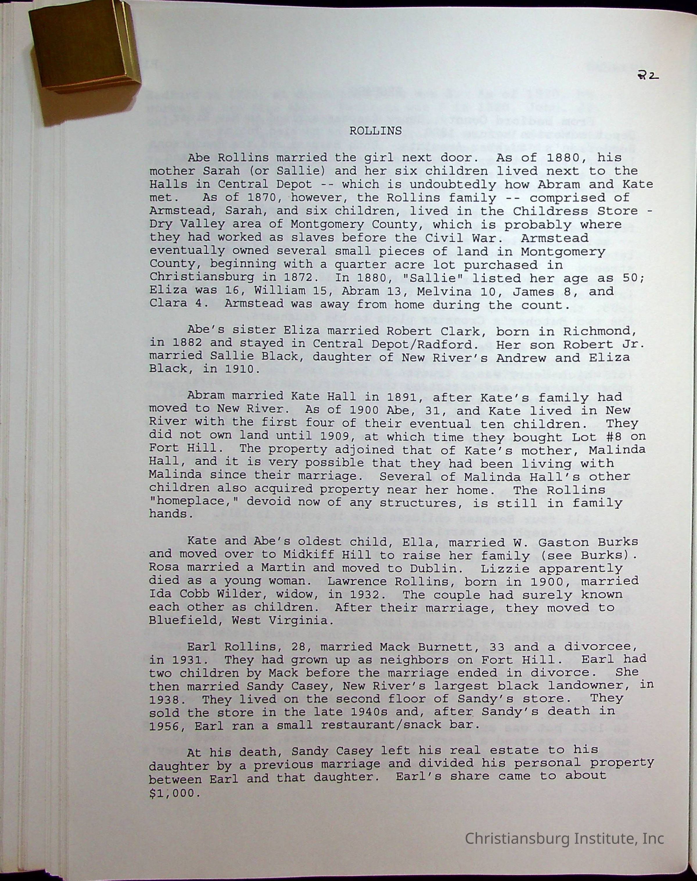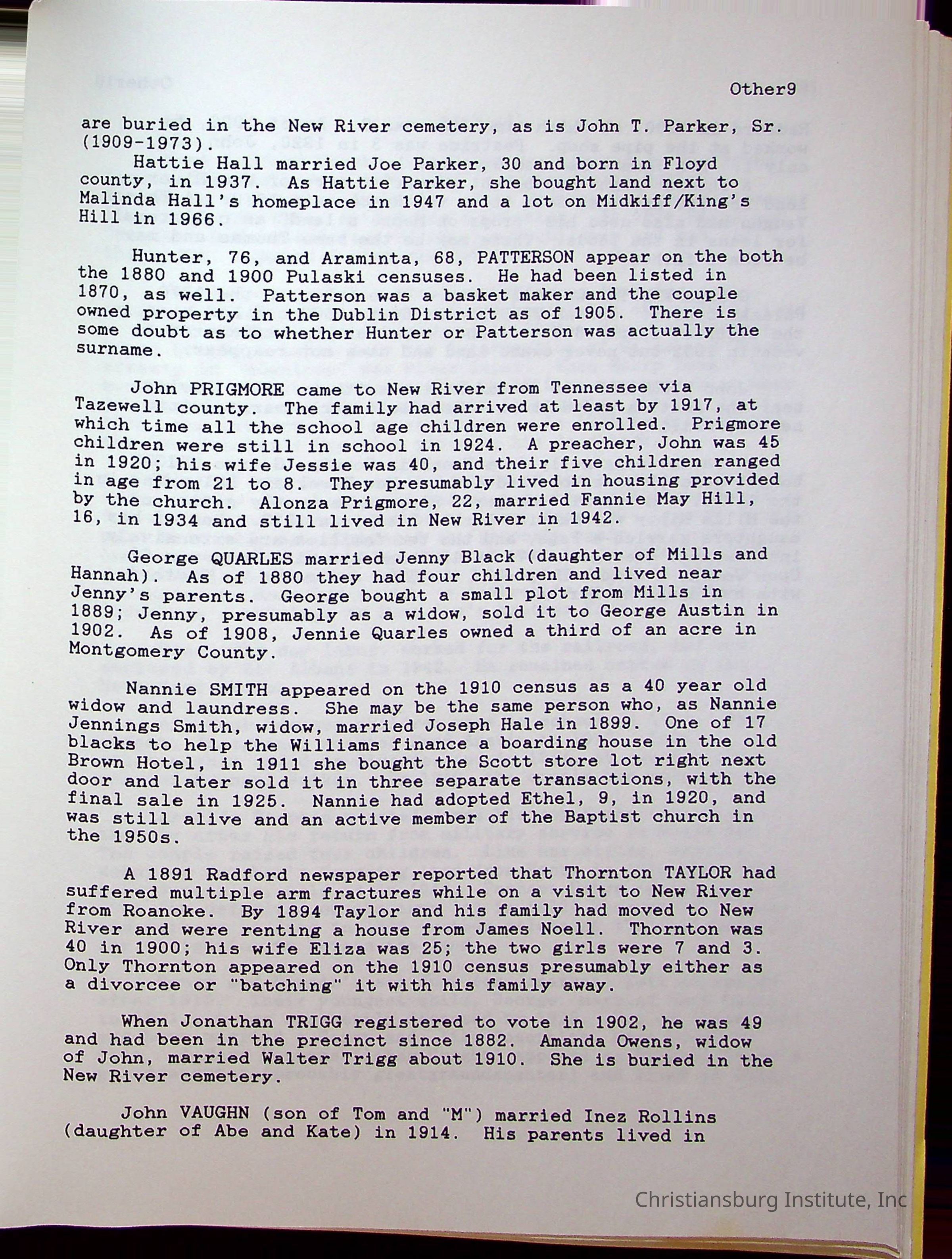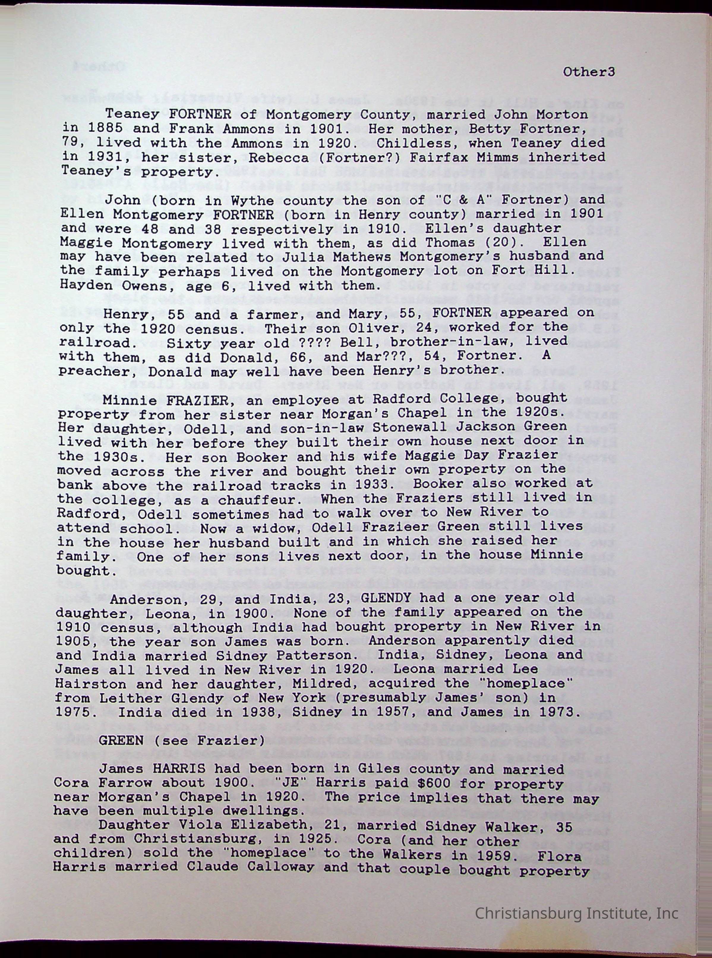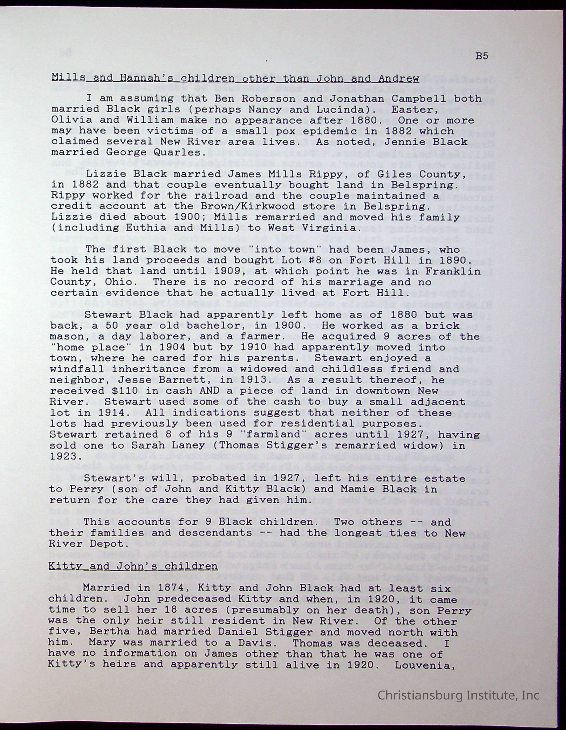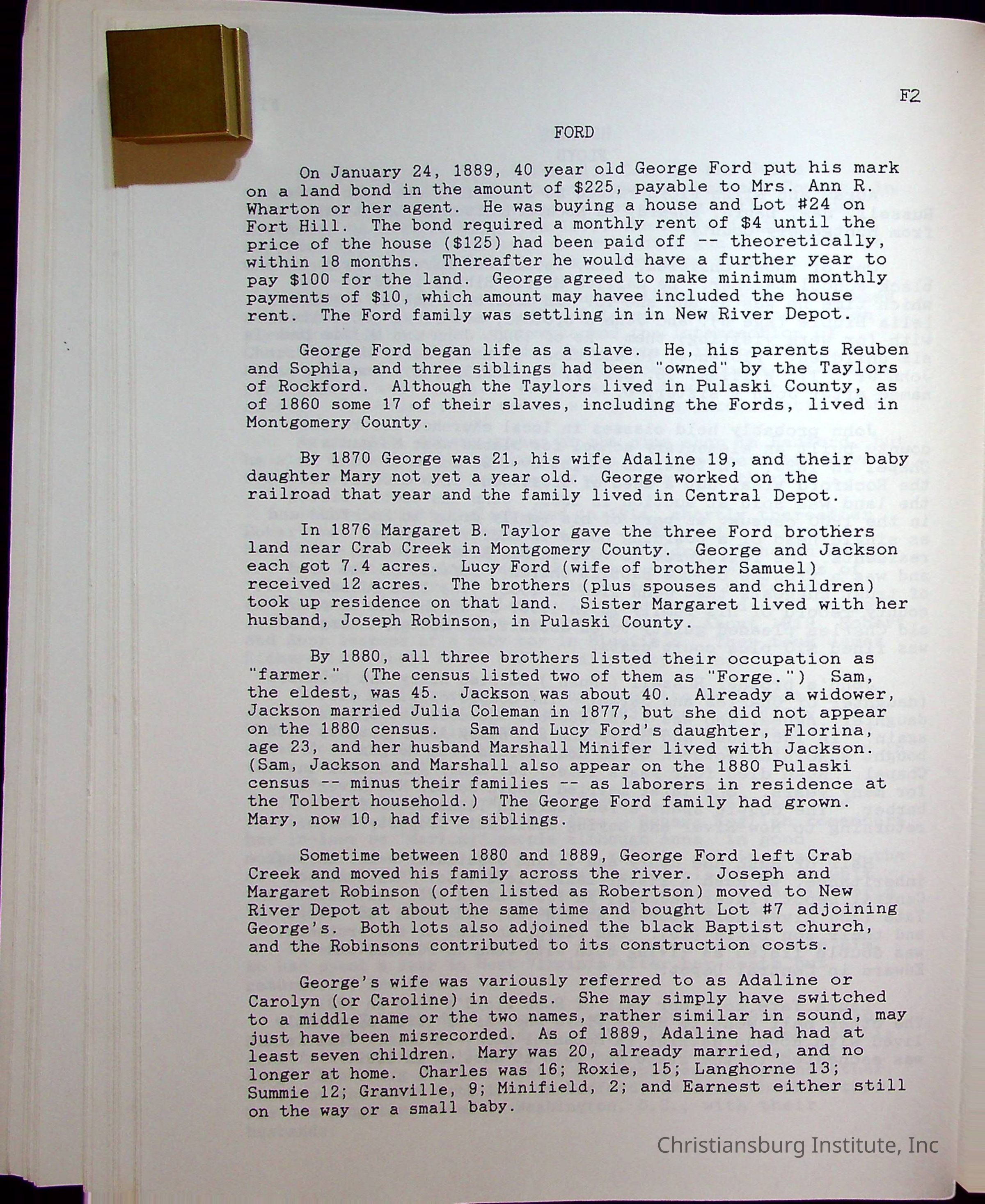 "Making Their Mark: Black Families of New River Depot 1870-1940" written by Dr Linda Killen and published by Radford University in the year 1994.Collection