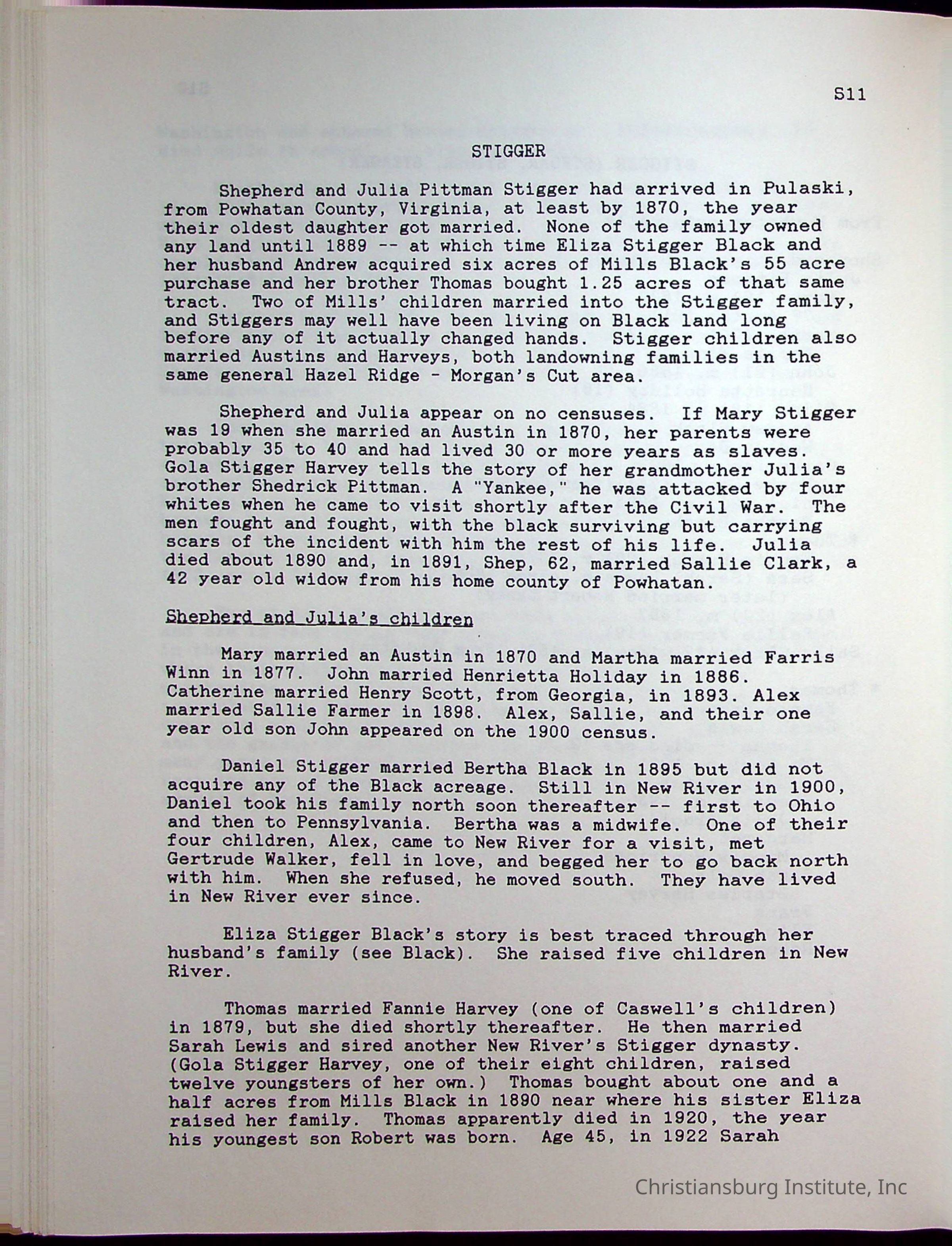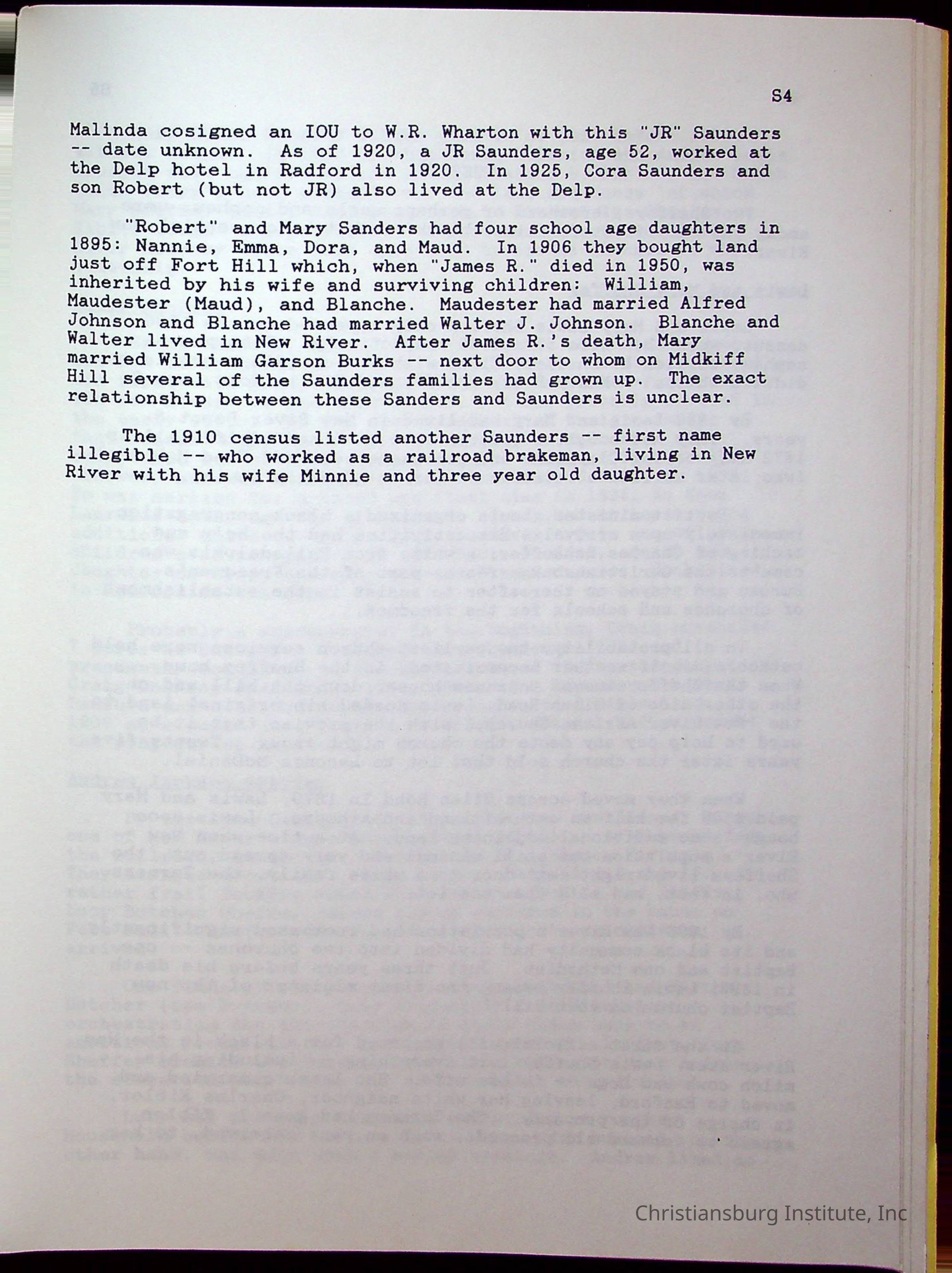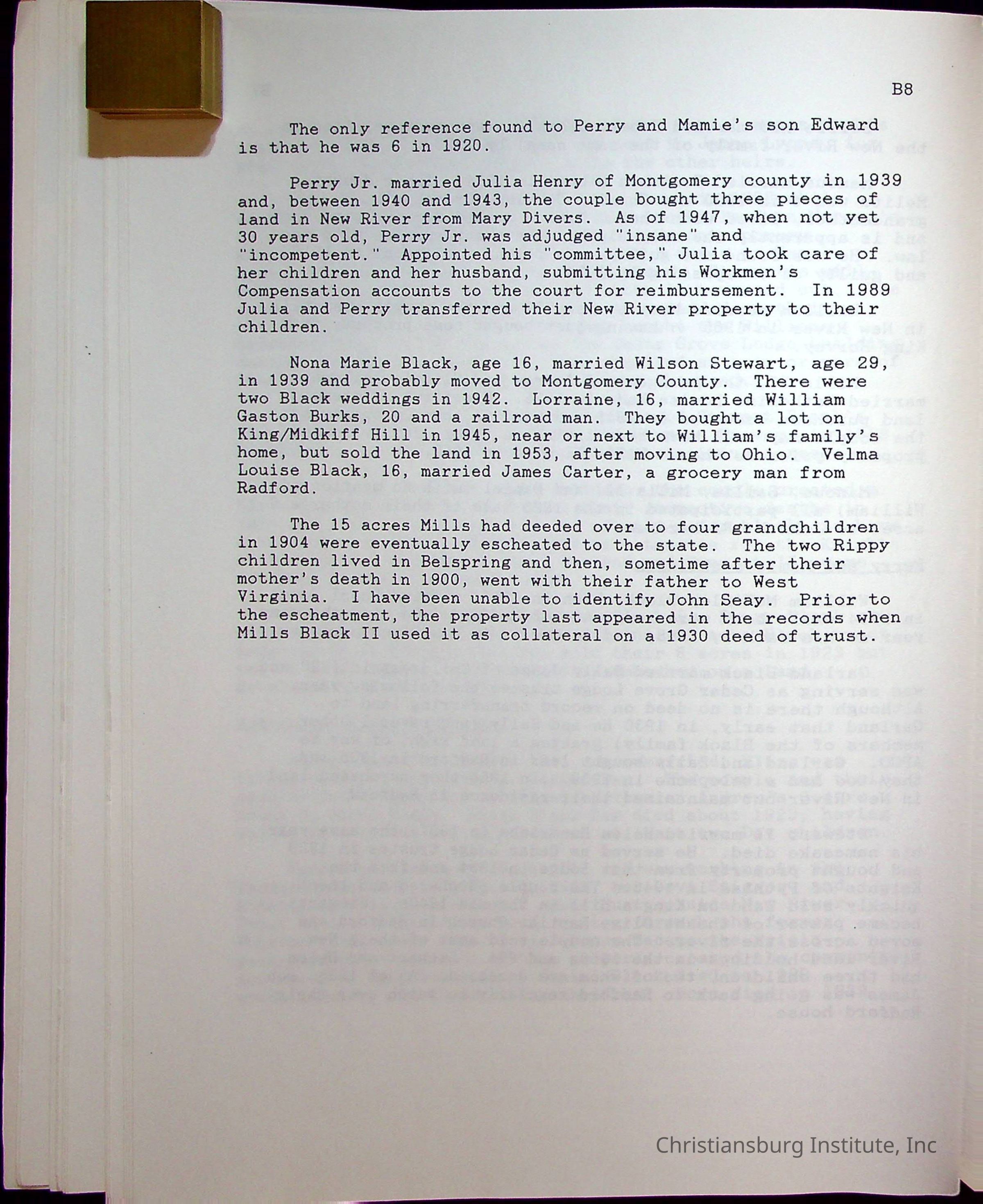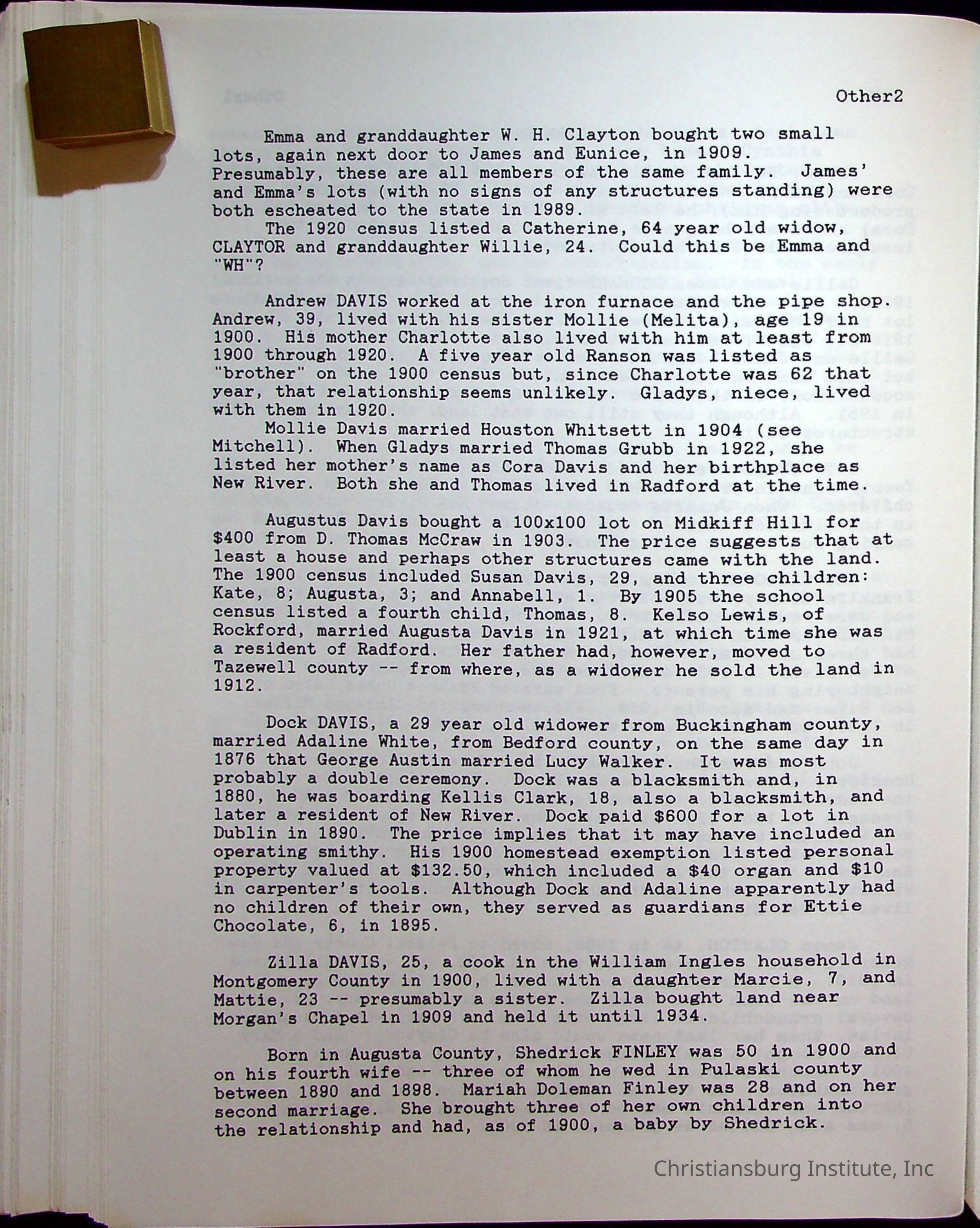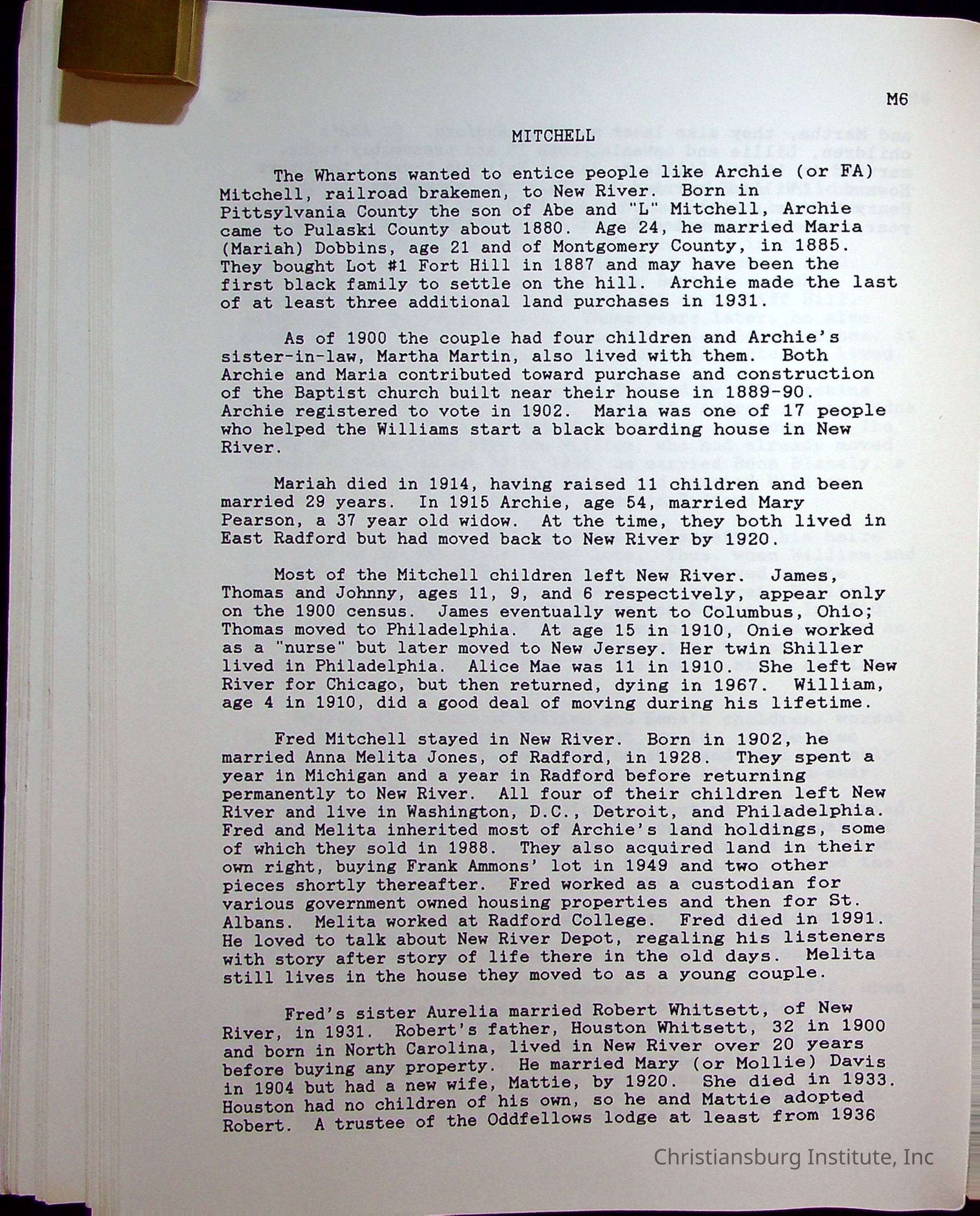 "Making Their Mark: Black Families of New River Depot 1870-1940" written by Dr Linda Killen and published by Radford University in the year 1994.Collection