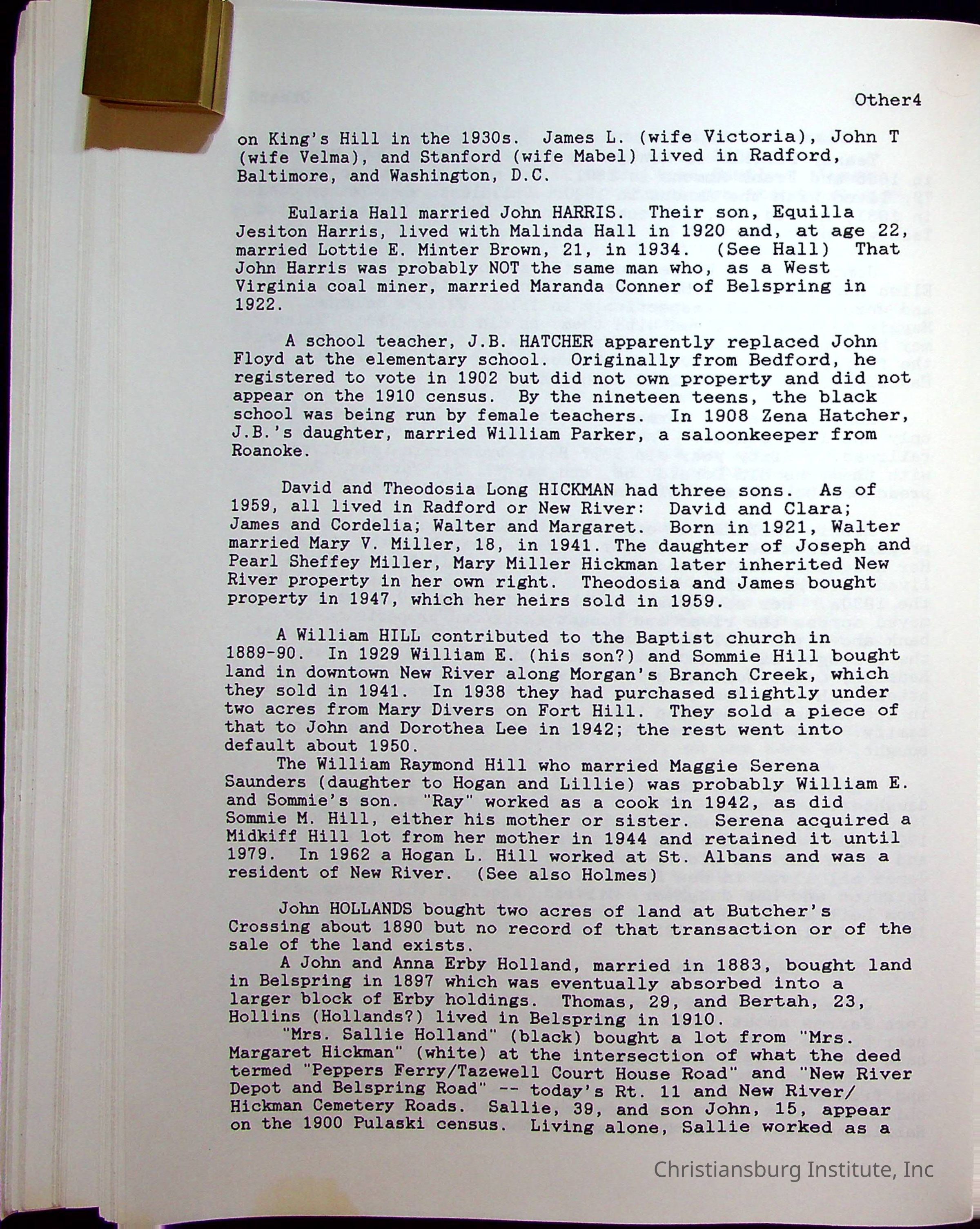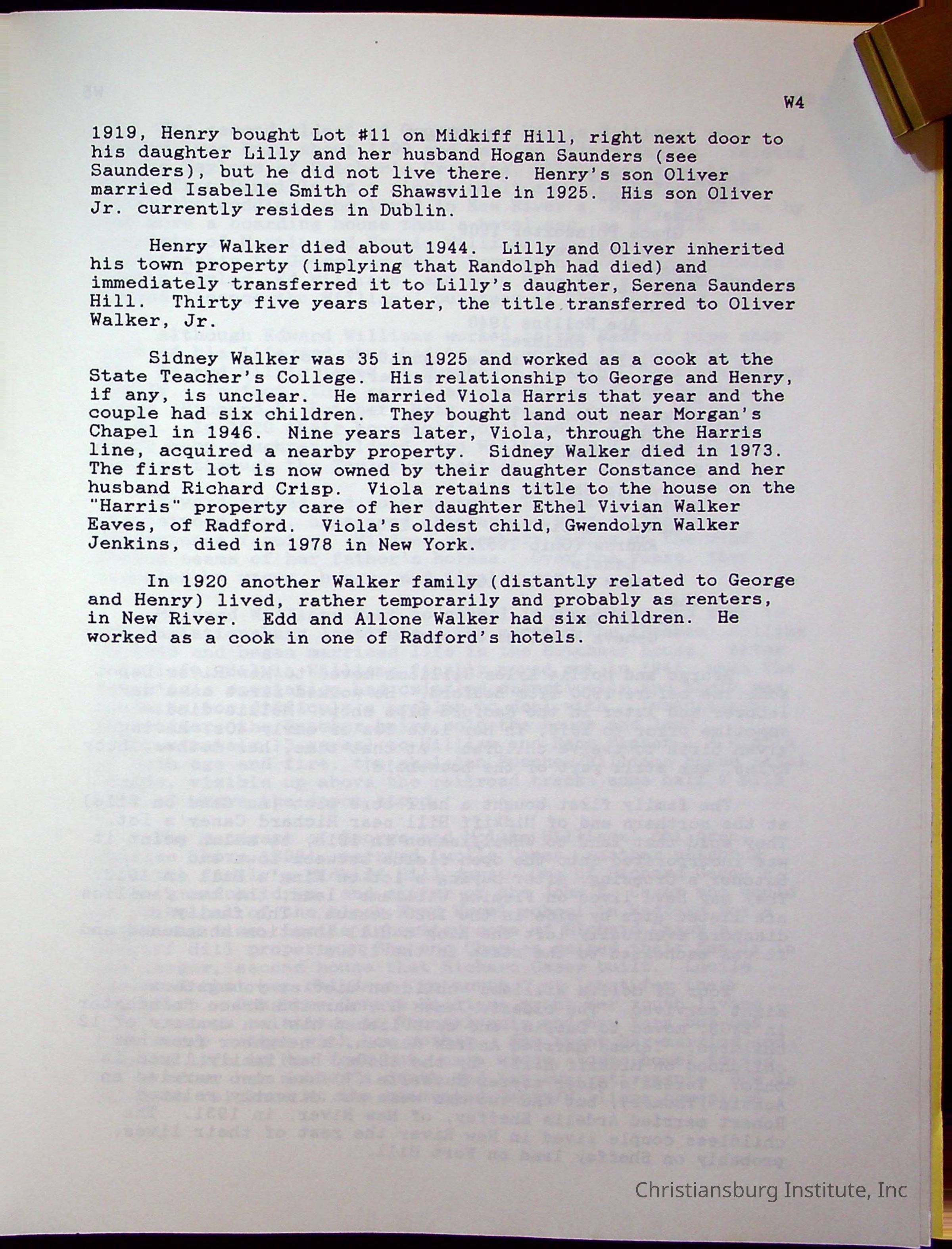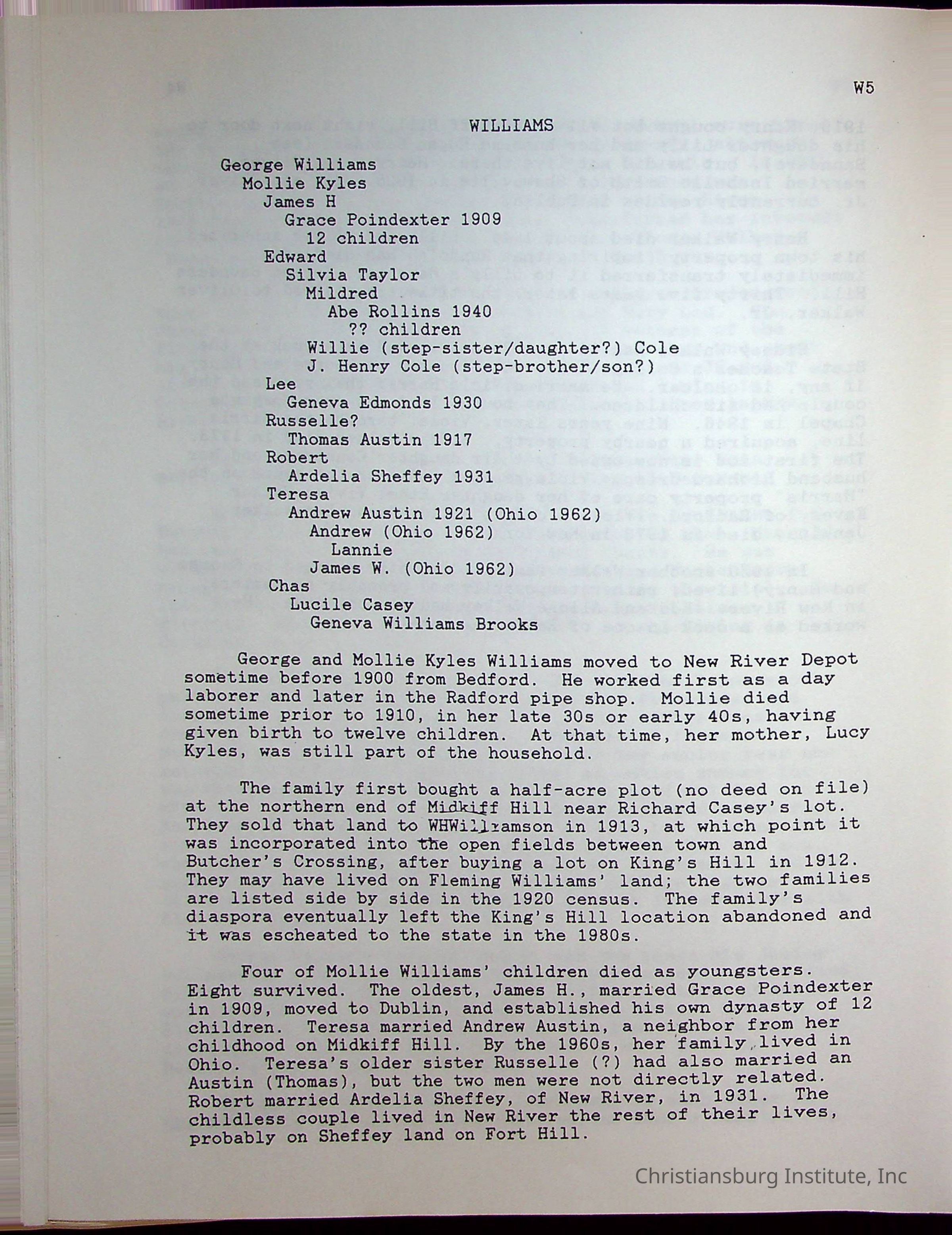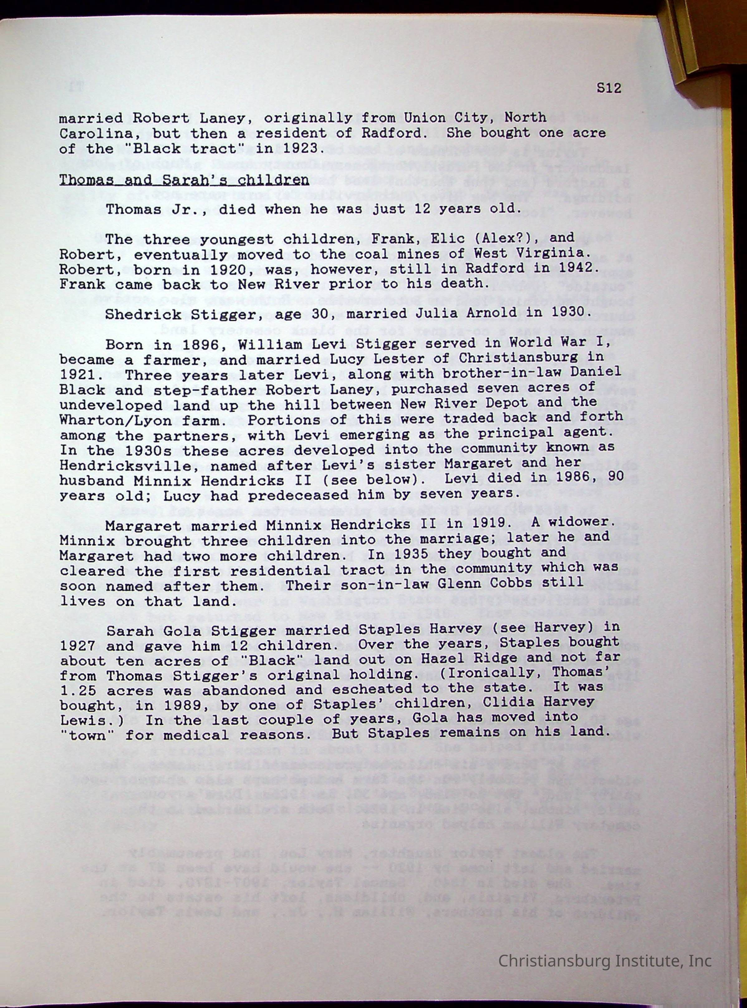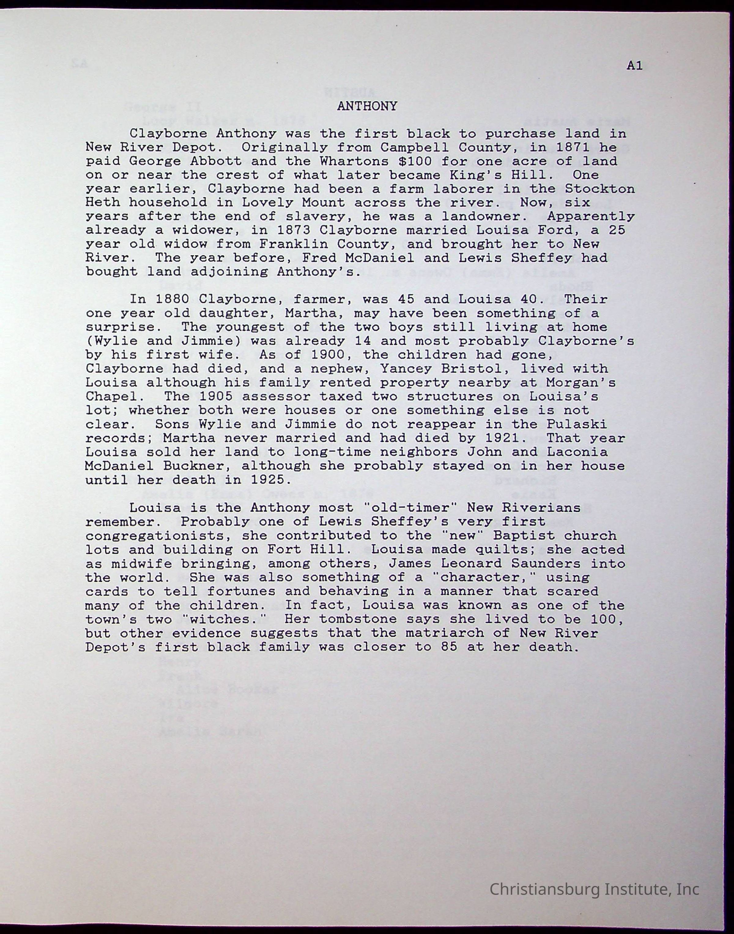 "Making Their Mark: Black Families of New River Depot 1870-1940" written by Dr Linda Killen and published by Radford University in the year 1994.Collection