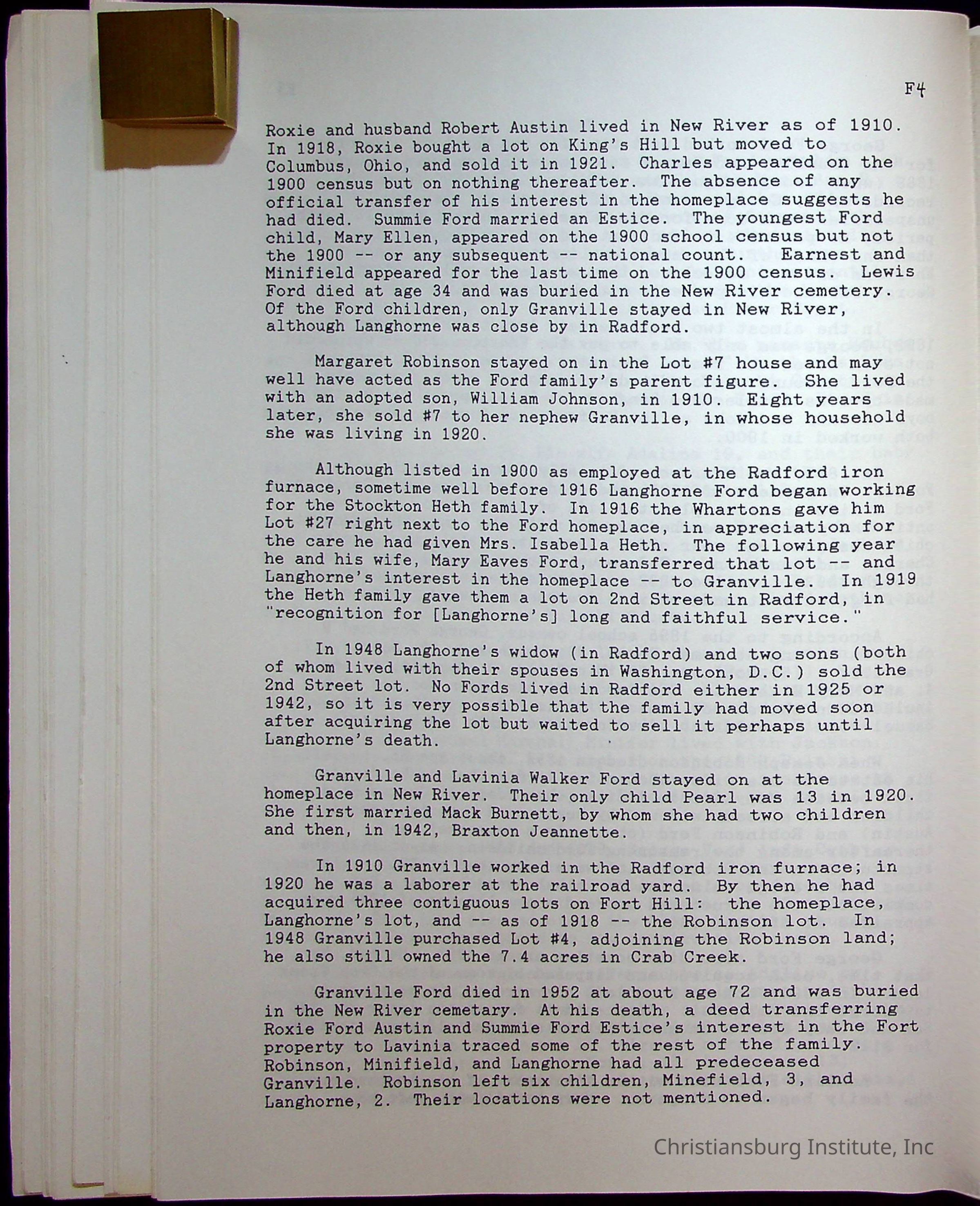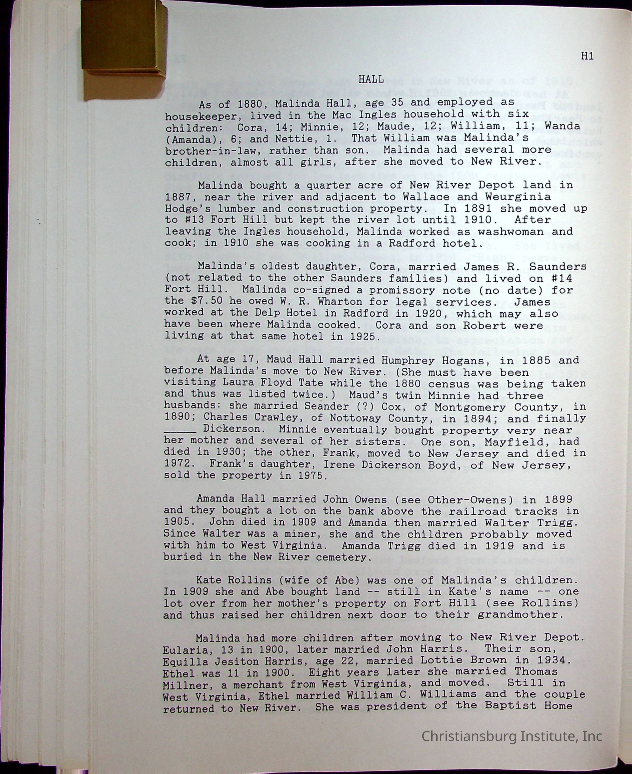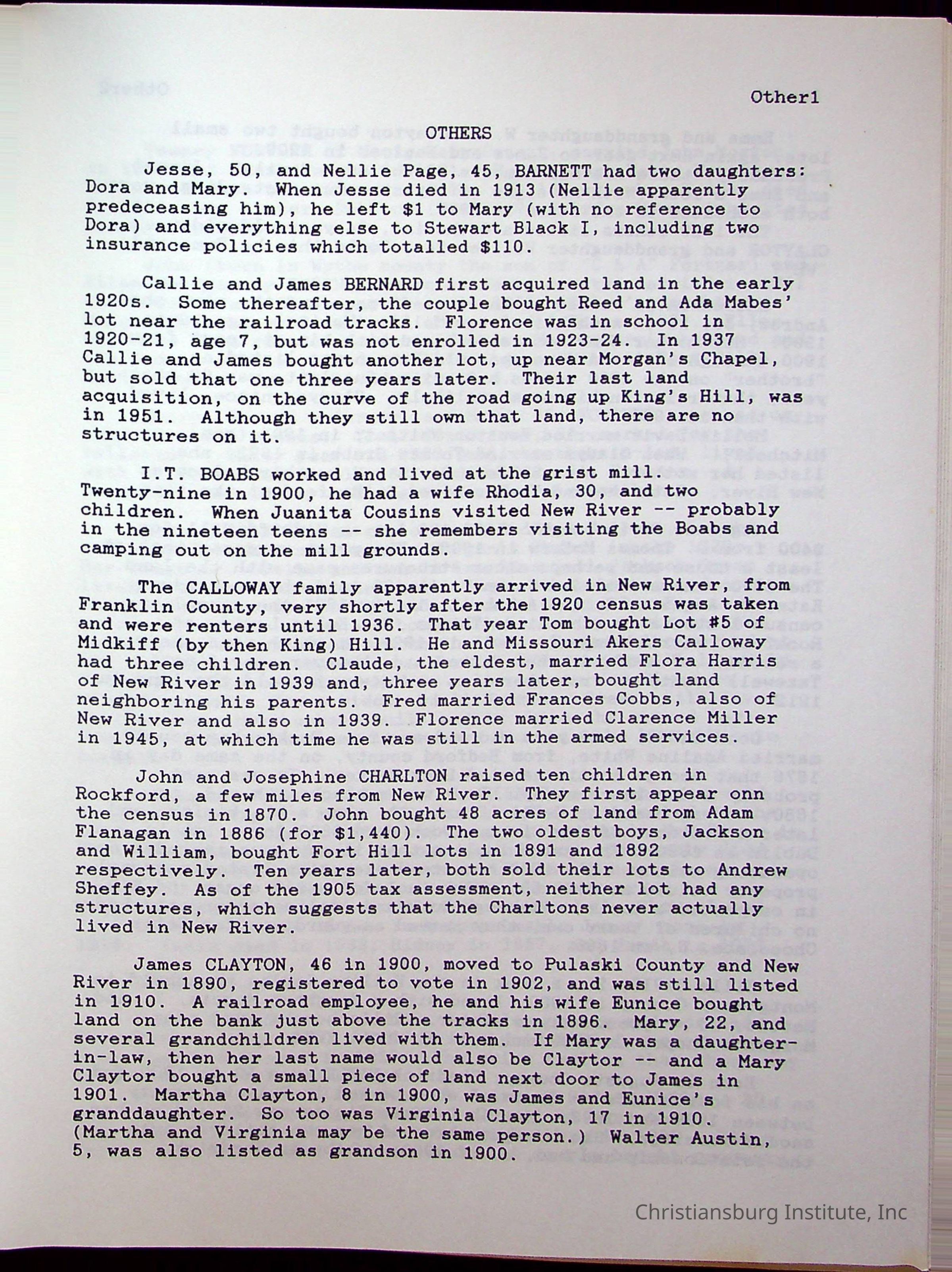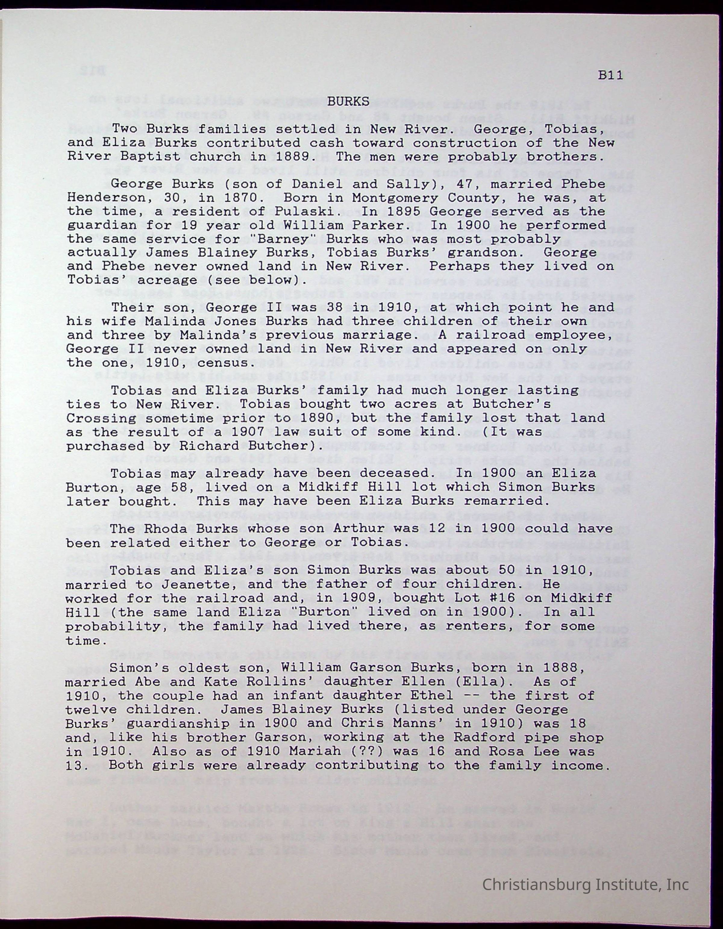 "Making Their Mark: Black Families of New River Depot 1870-1940" written by Dr Linda Killen and published by Radford University in the year 1994.Collection
