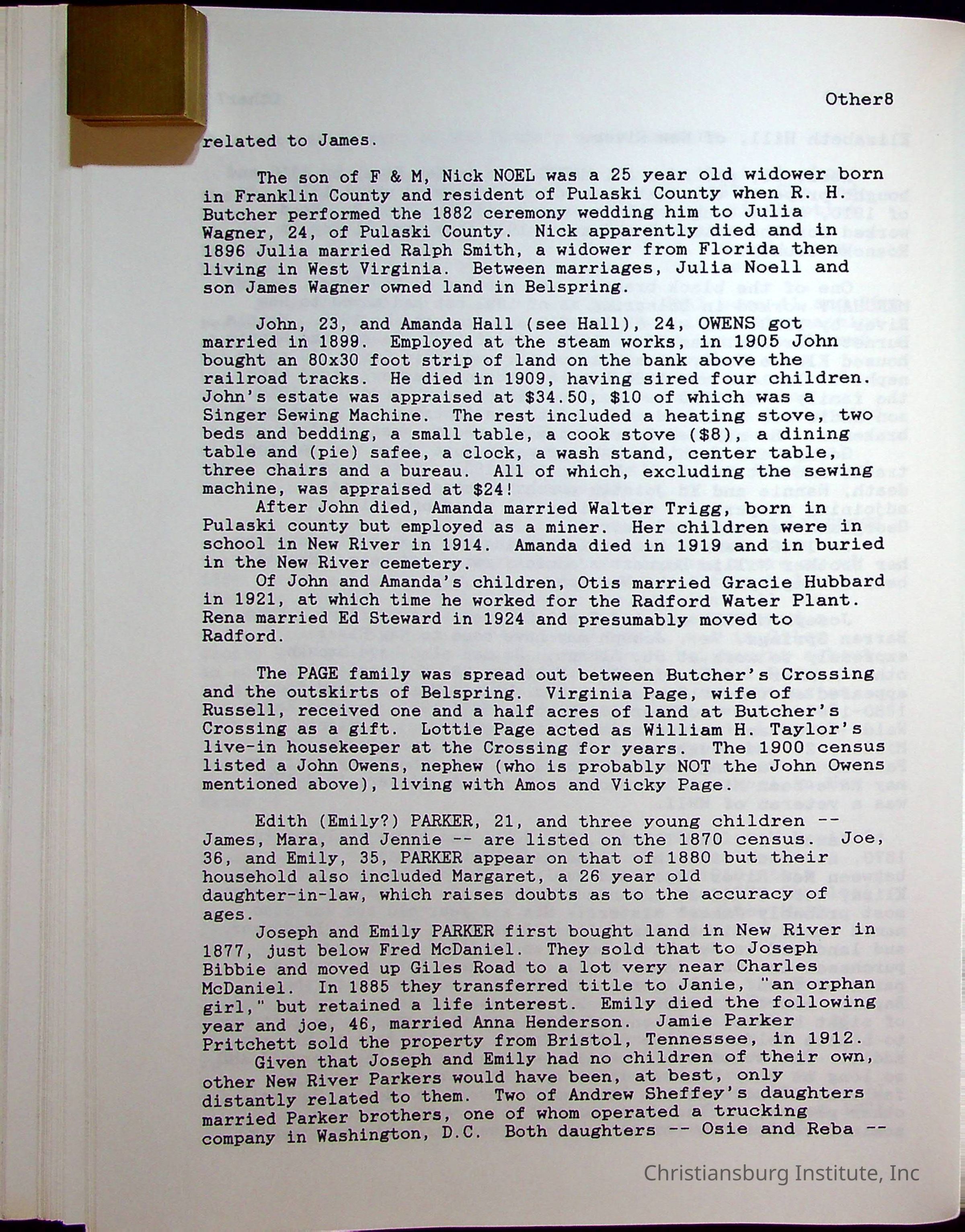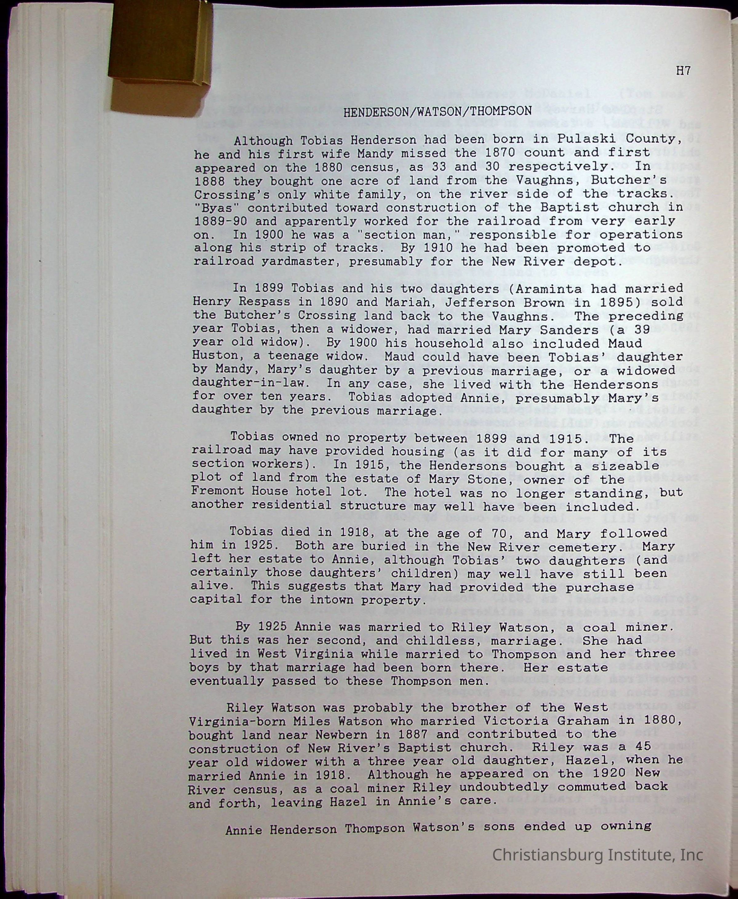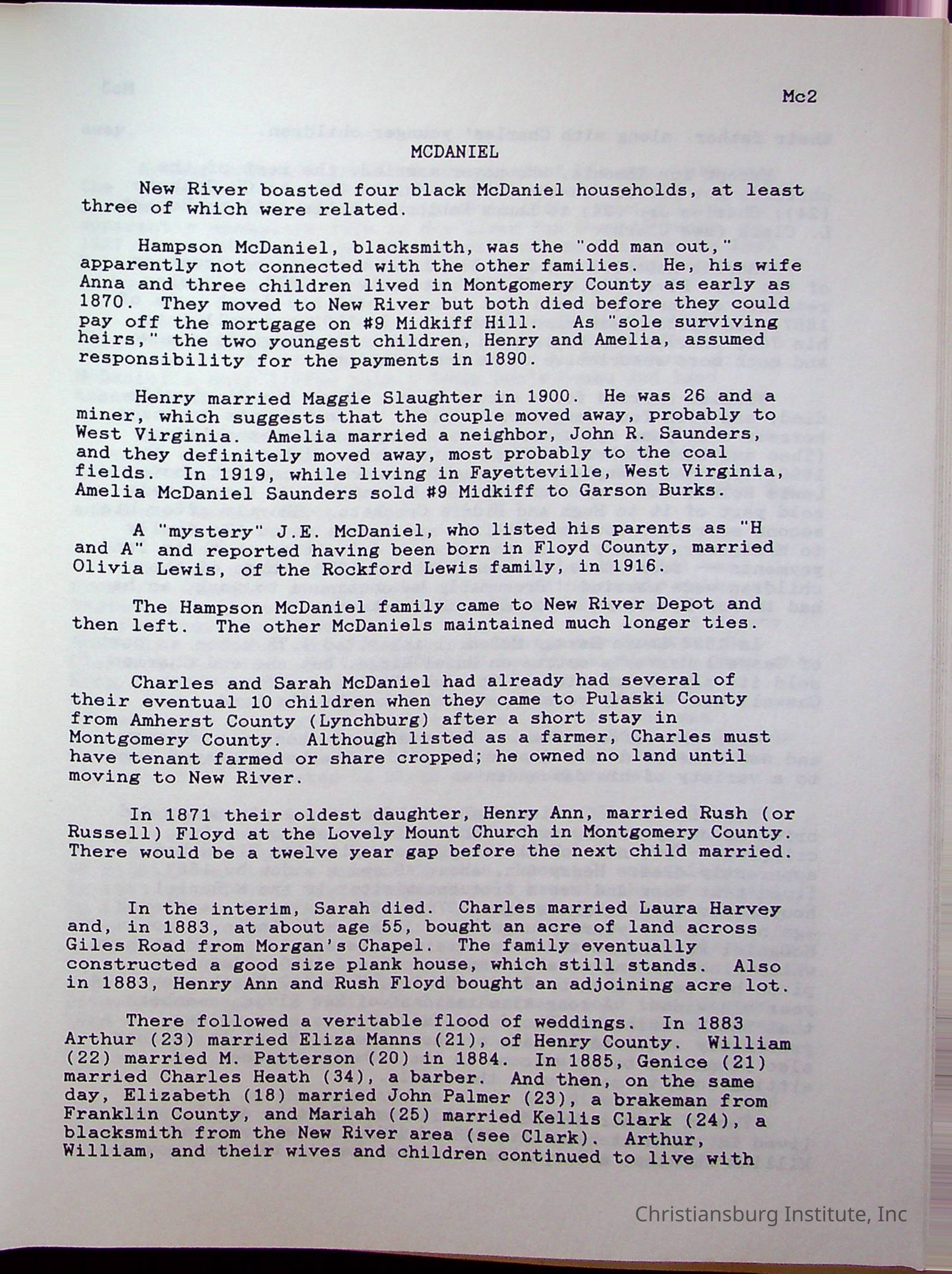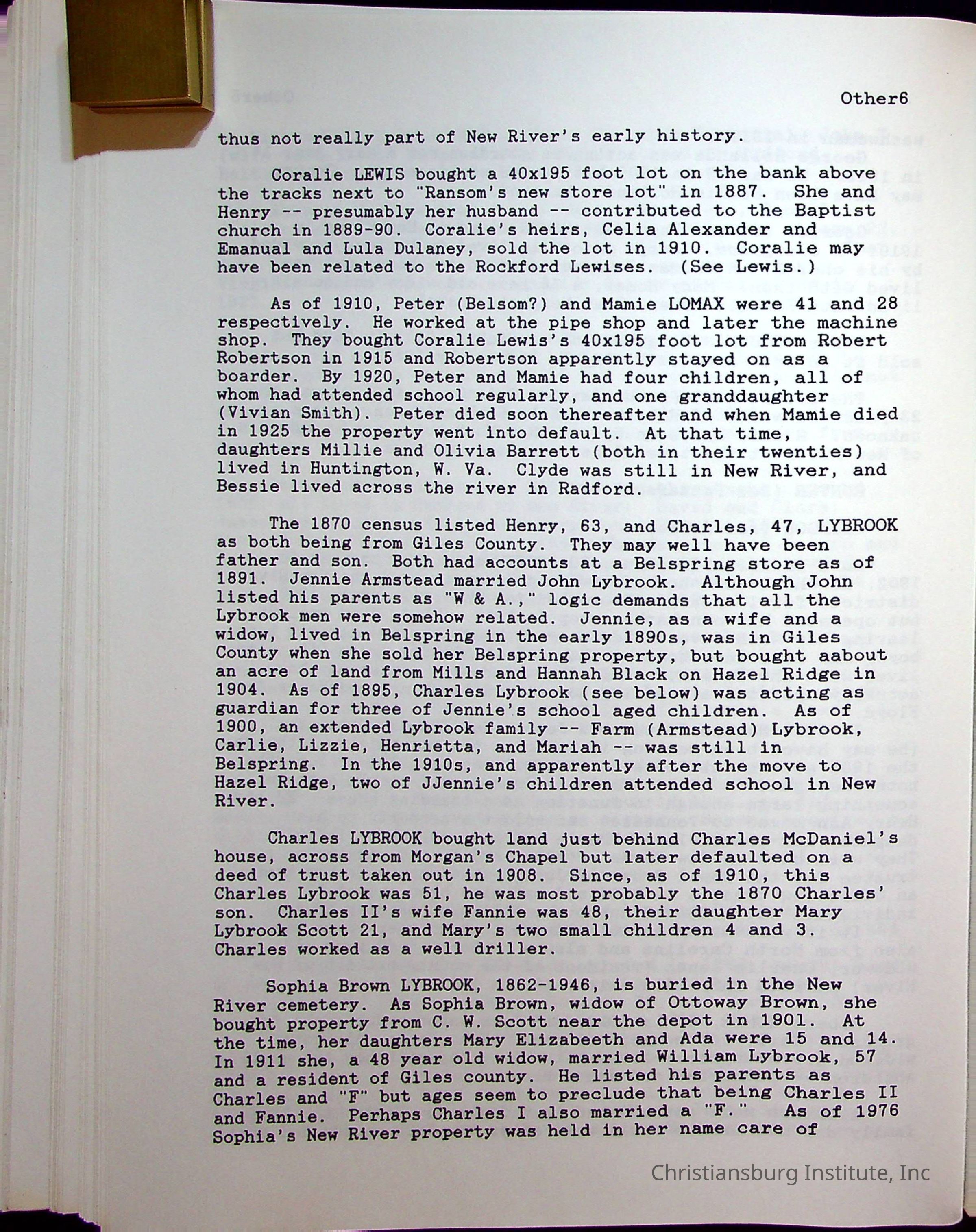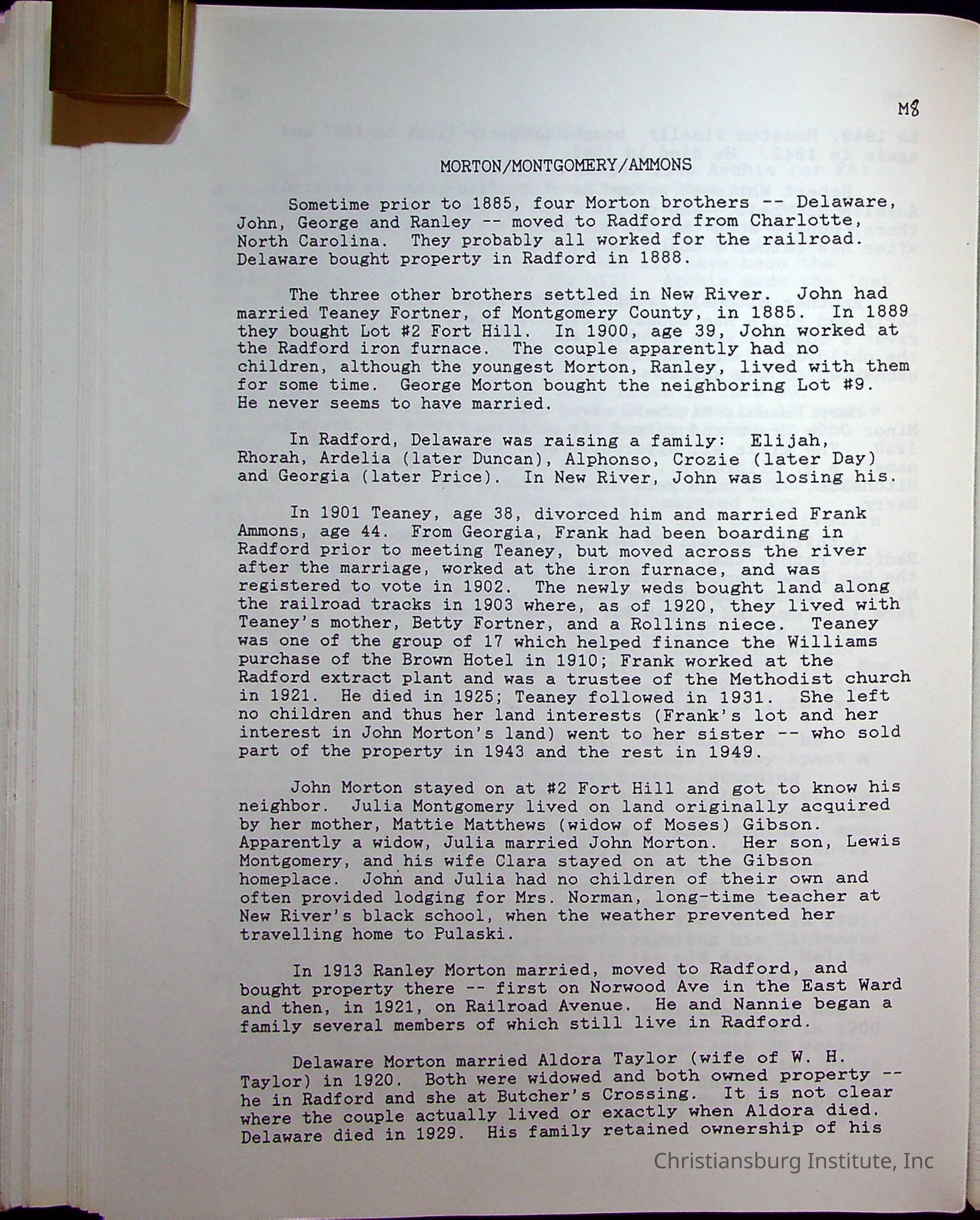 "Making Their Mark: Black Families of New River Depot 1870-1940" written by Dr Linda Killen and published by Radford University in the year 1994.Collection