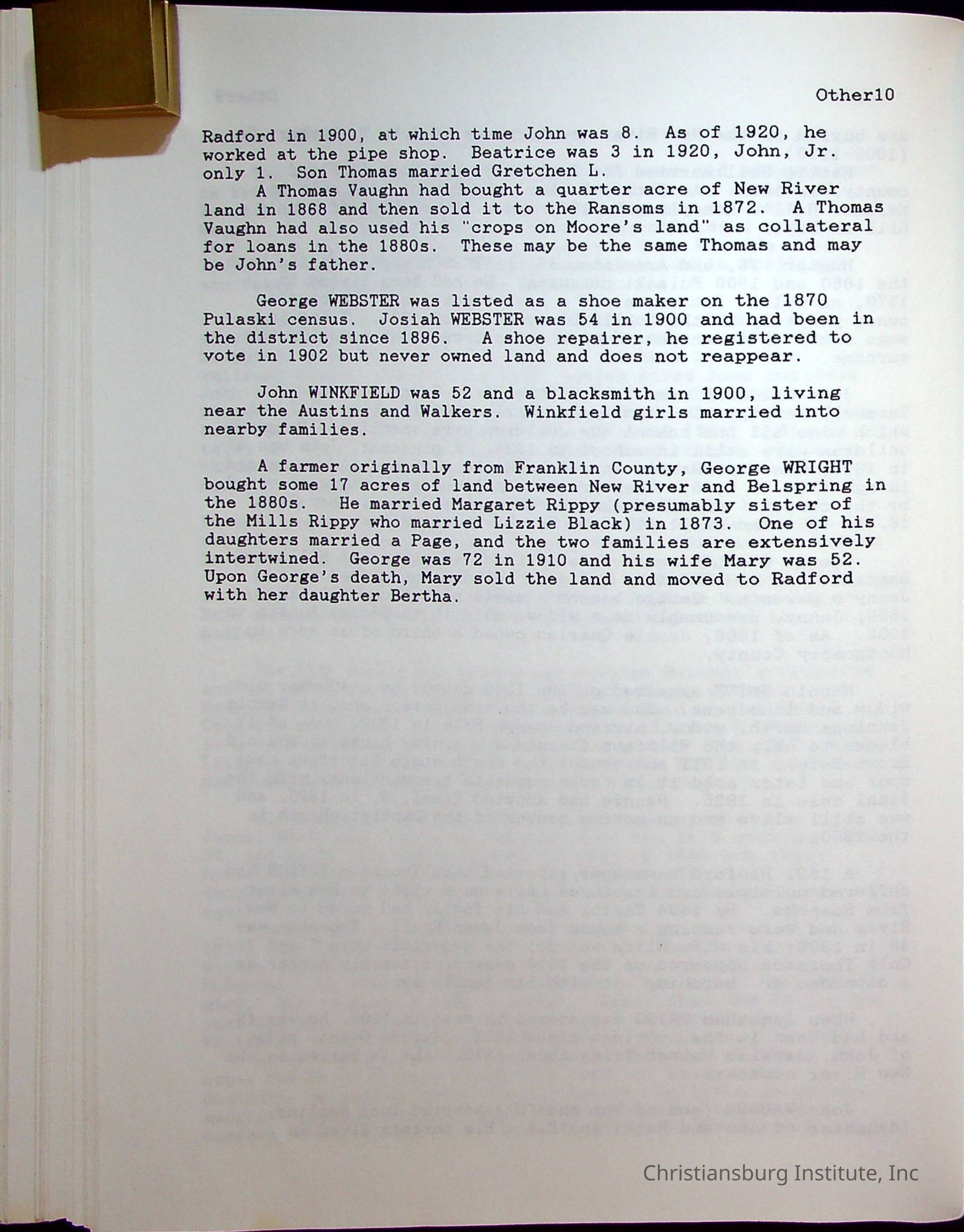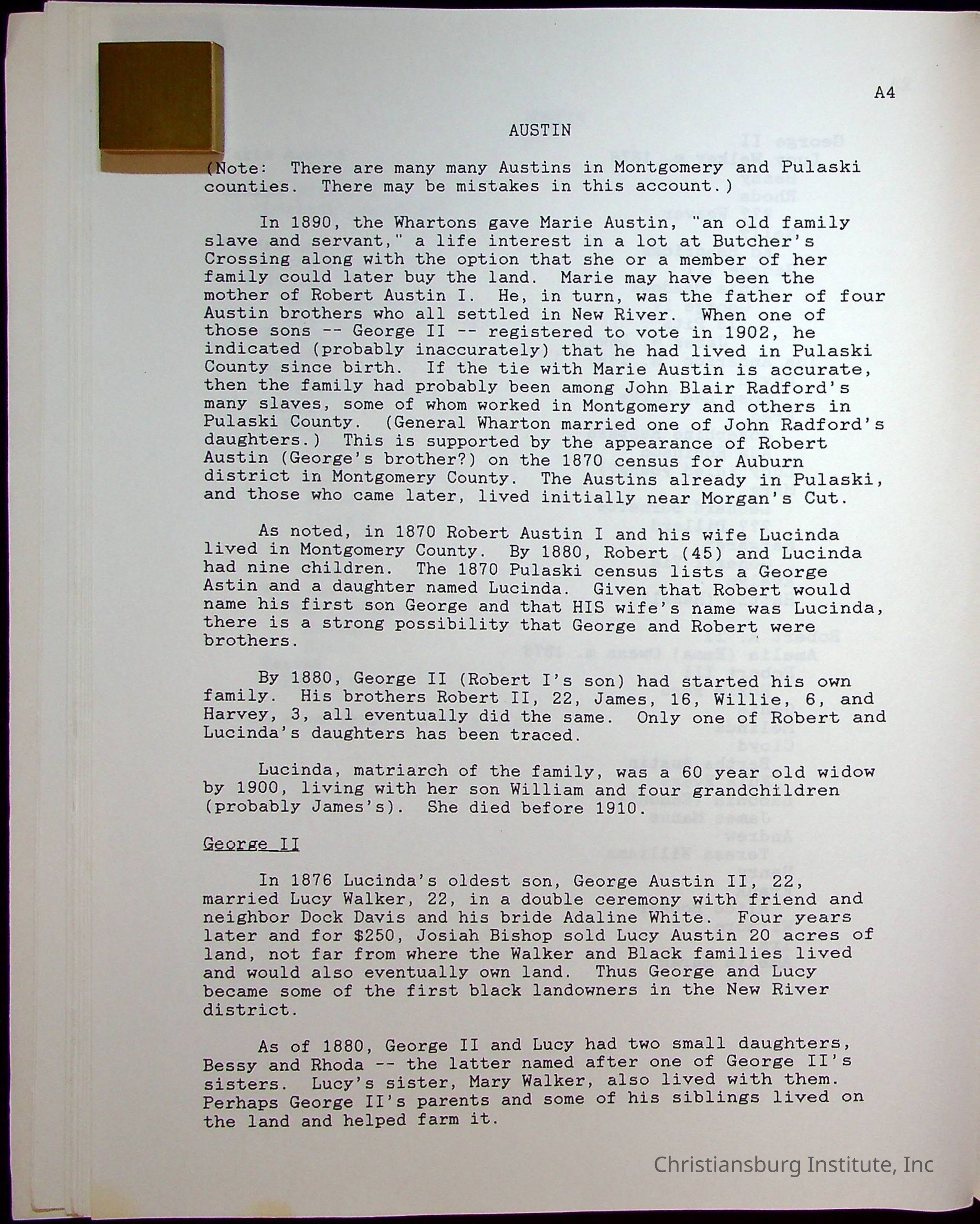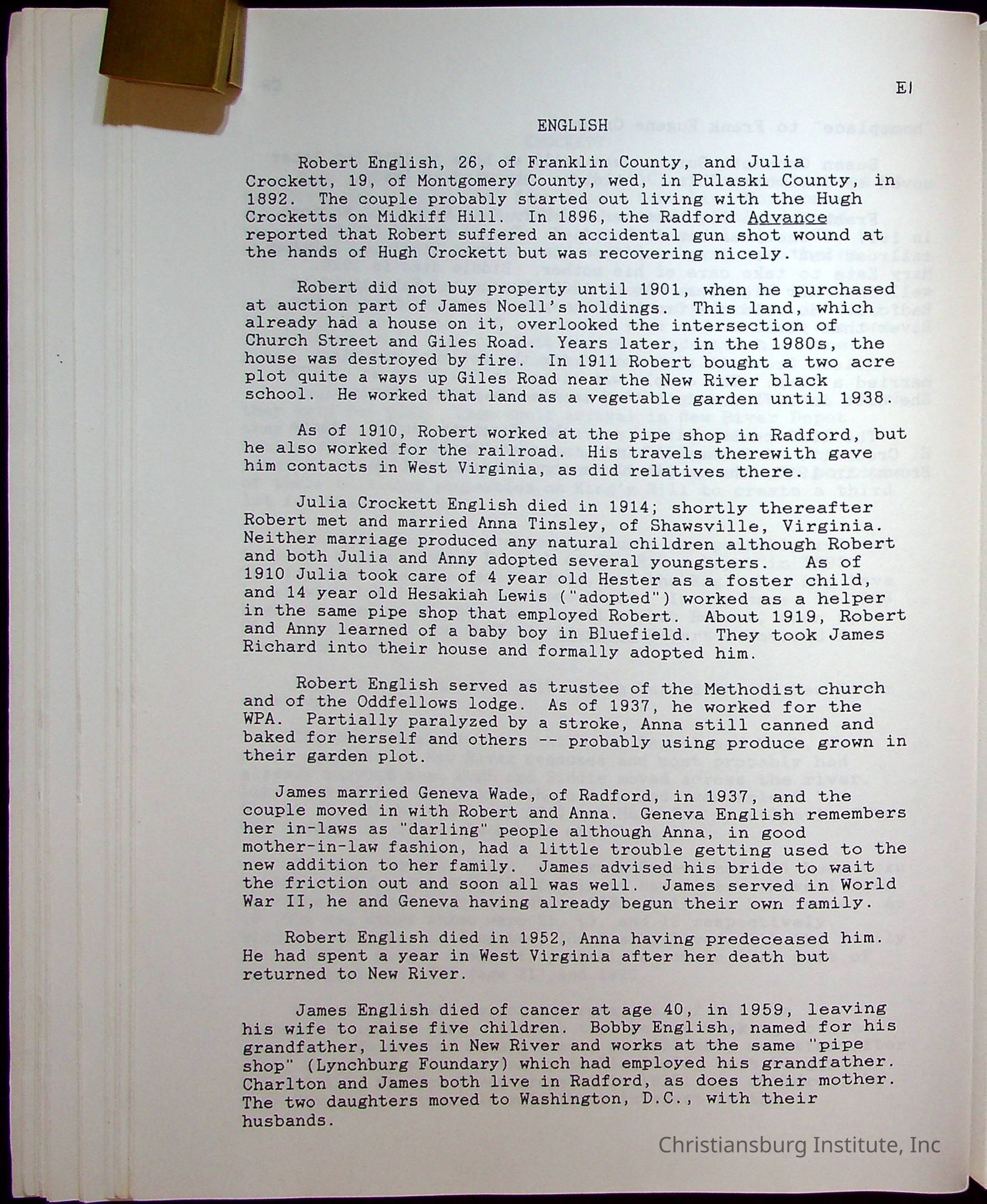 Copyright has been assigned to Christiansburg Institute Museum & Archives. For permission to publish materials created by the donor, contact CIMA@christiansburginstitute.com. Materials not created by Christiansburg Institute Museum and Archives may still be under copyright.