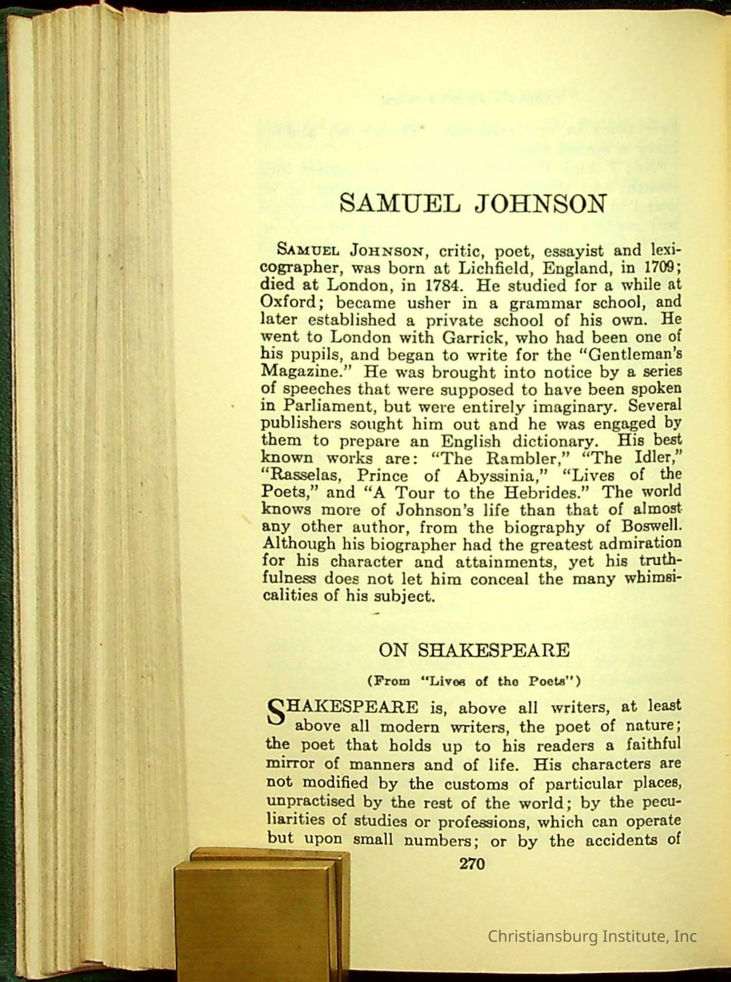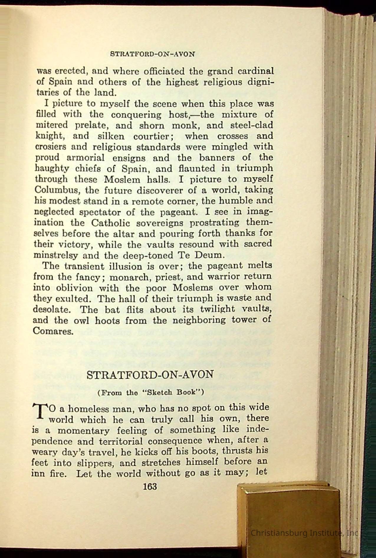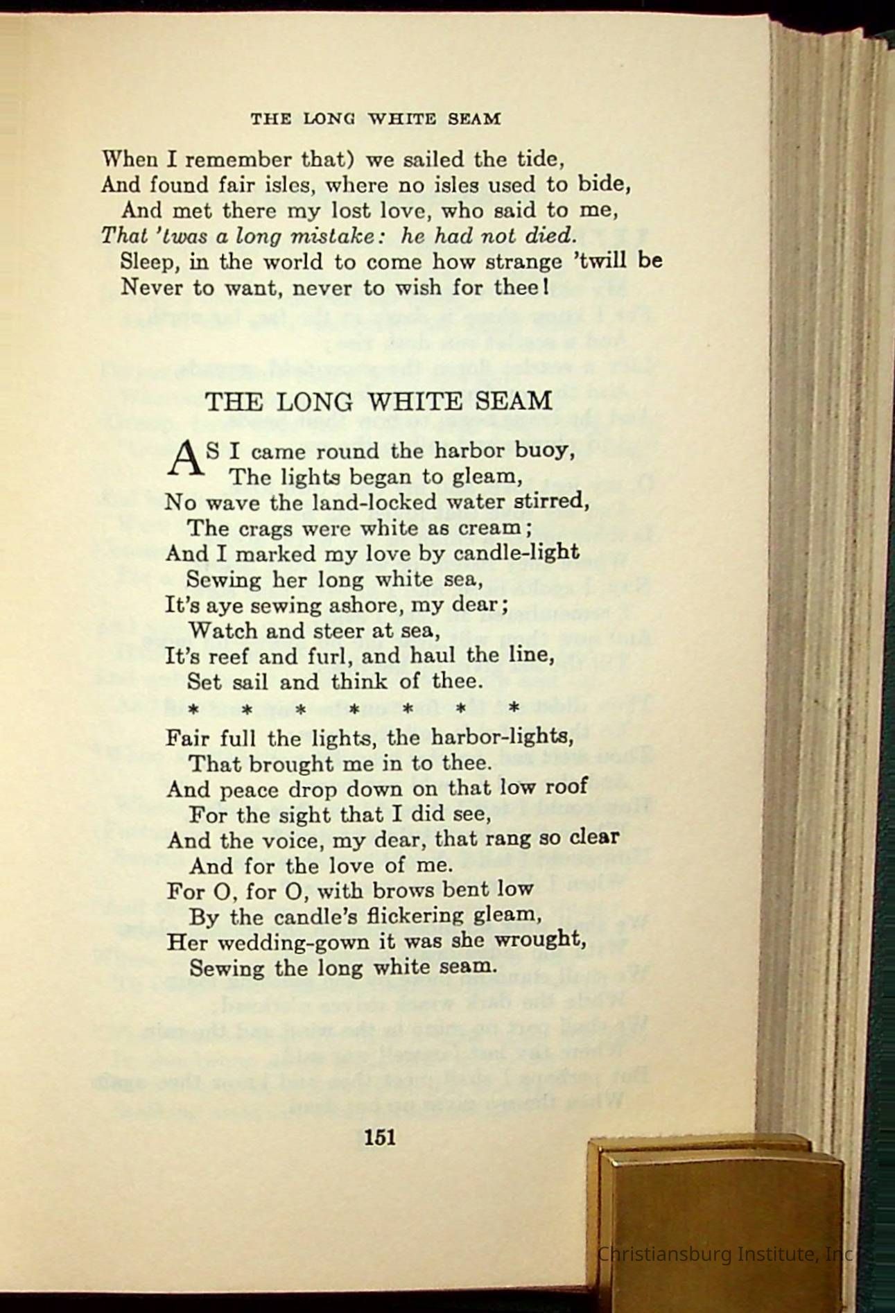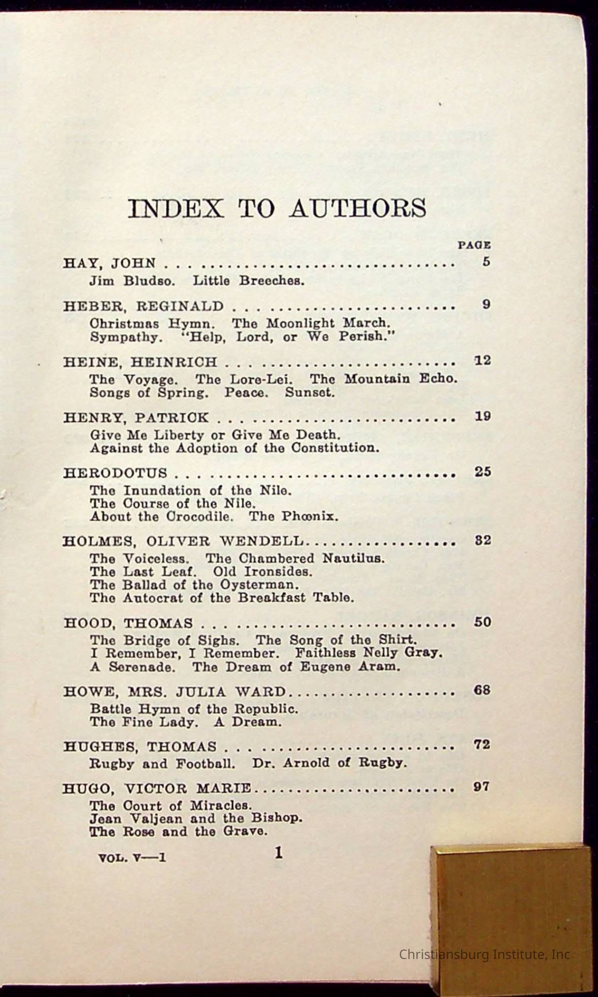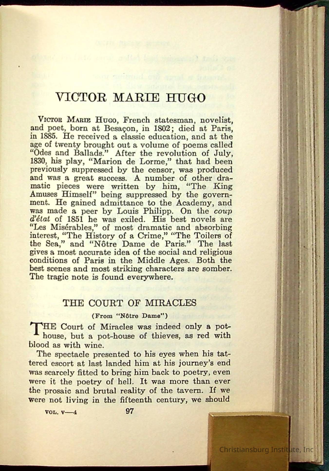 Masterpieces of the World's Best Literature: 700 Immortal Selections from the Writings of the World's Greatest Authors edited by Jeanette L. Gilder and published by the New York Standard Book Co in 1937. This book was used by Christiansburg Institute teacher, Viola Charlton in her class.Collection