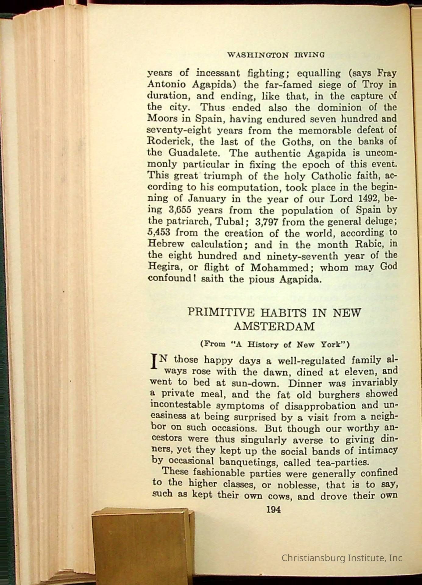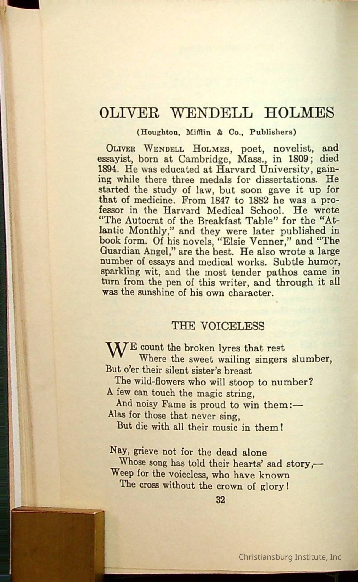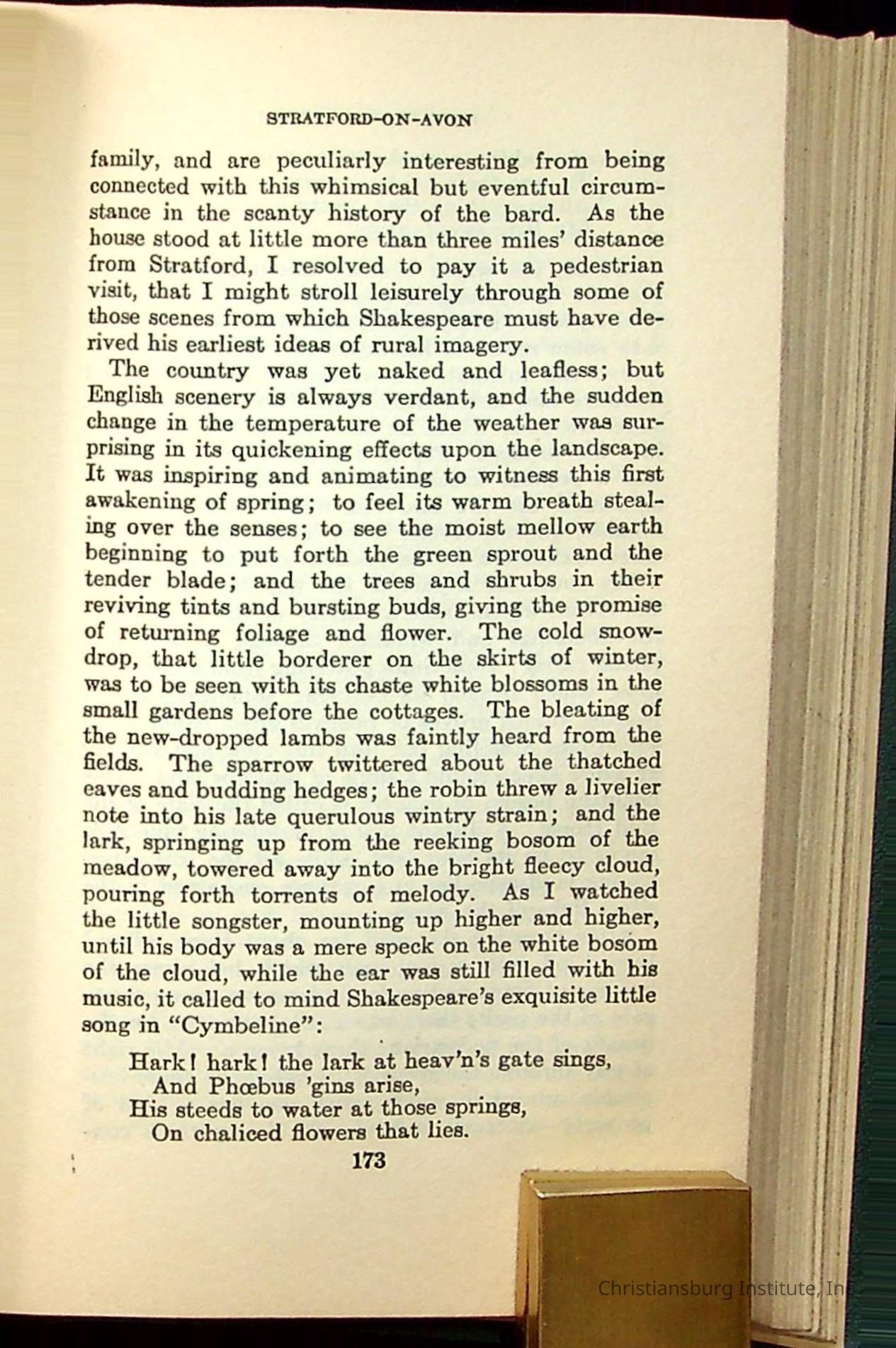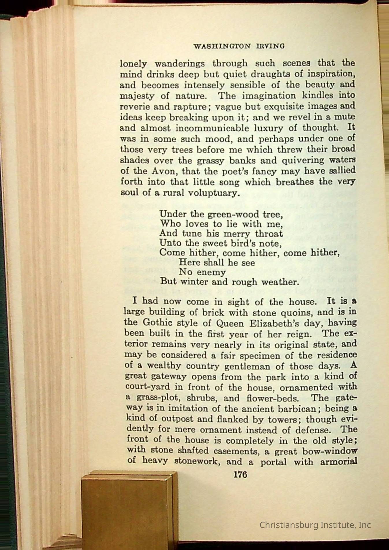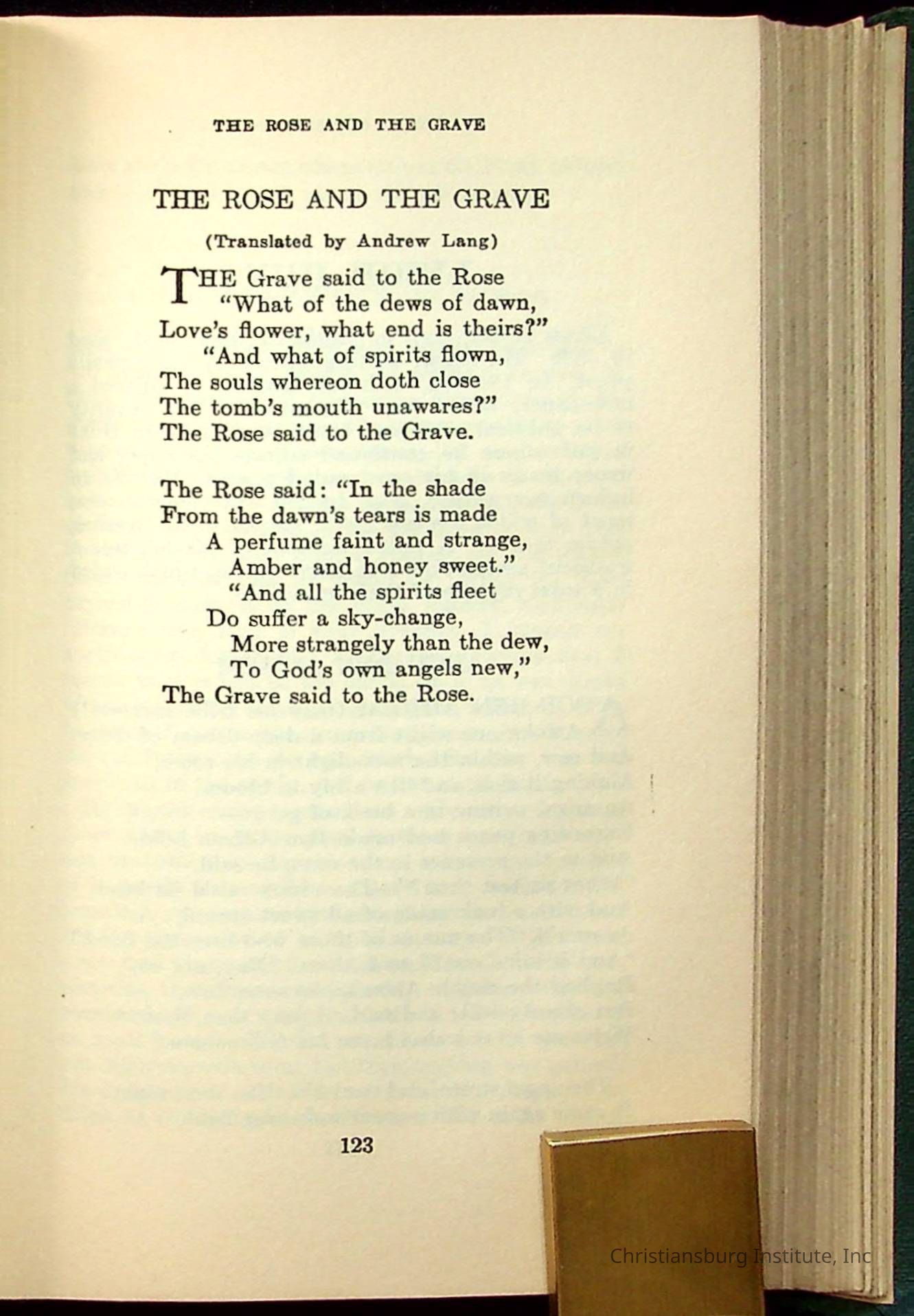 Masterpieces of the World's Best Literature: 700 Immortal Selections from the Writings of the World's Greatest Authors edited by Jeanette L. Gilder and published by the New York Standard Book Co in 1937. This book was used by Christiansburg Institute teacher, Viola Charlton in her class.Collection
