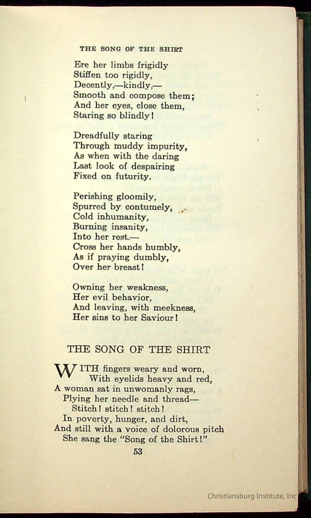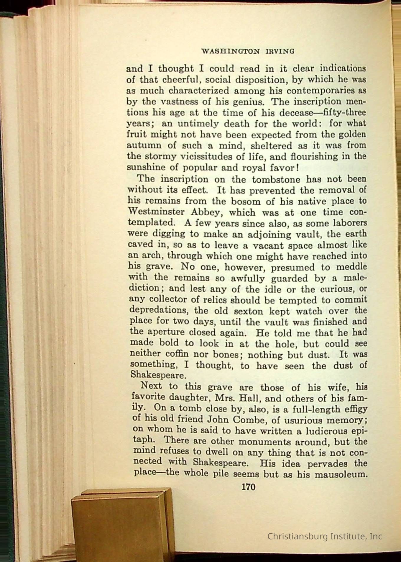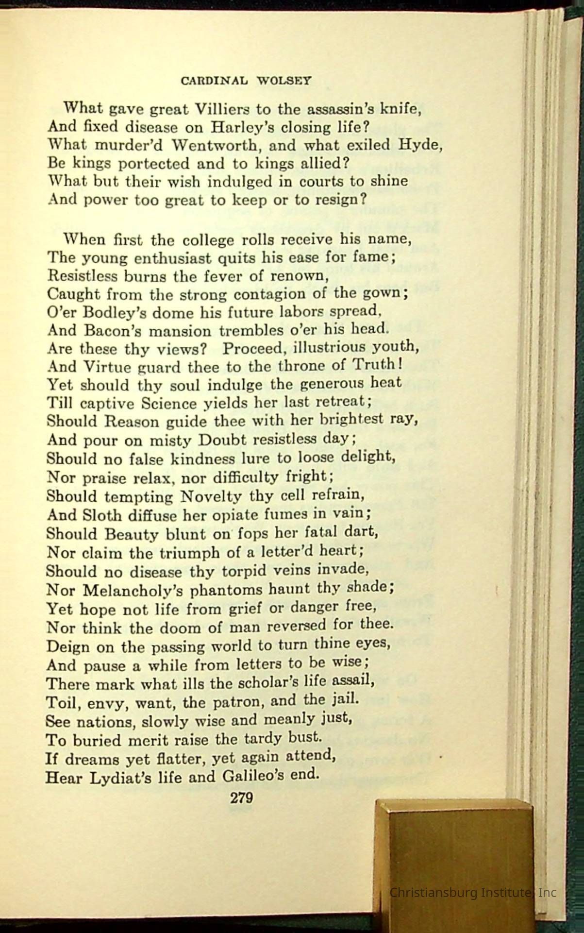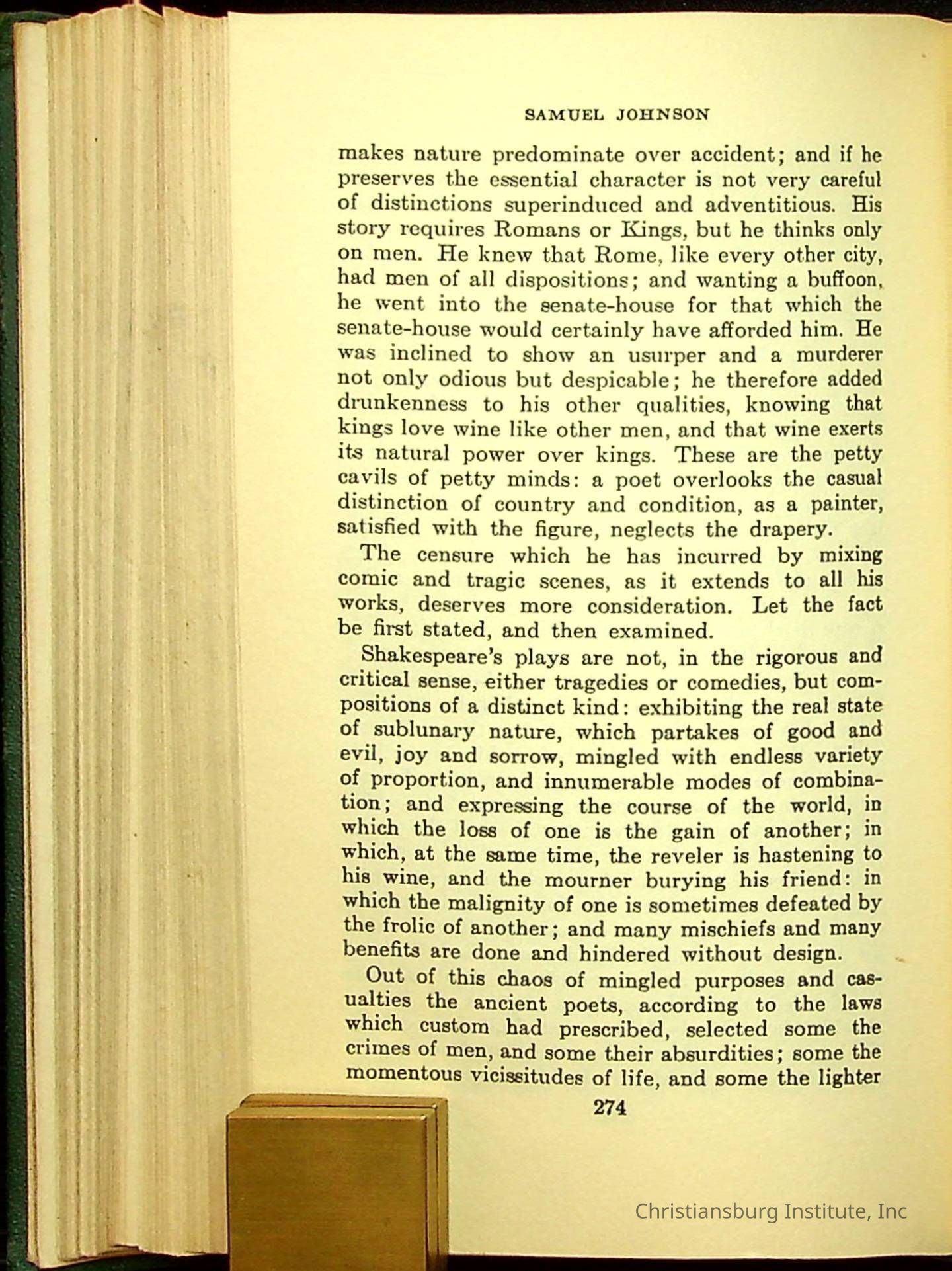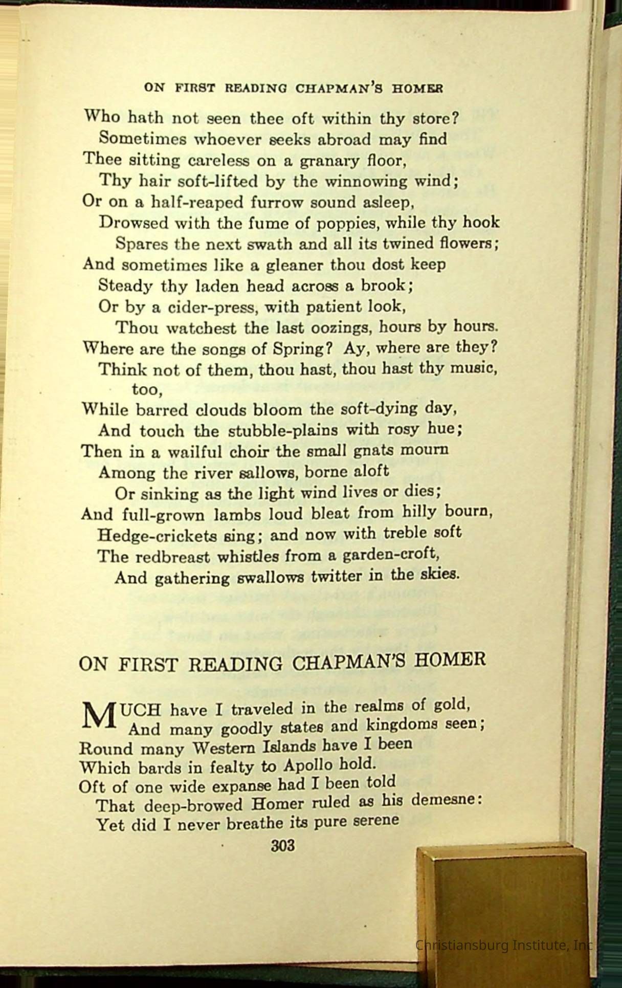 Masterpieces of the World's Best Literature: 700 Immortal Selections from the Writings of the World's Greatest Authors edited by Jeanette L. Gilder and published by the New York Standard Book Co in 1937. This book was used by Christiansburg Institute teacher, Viola Charlton in her class.Collection