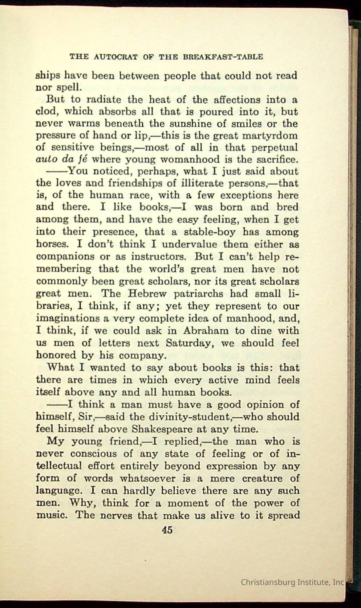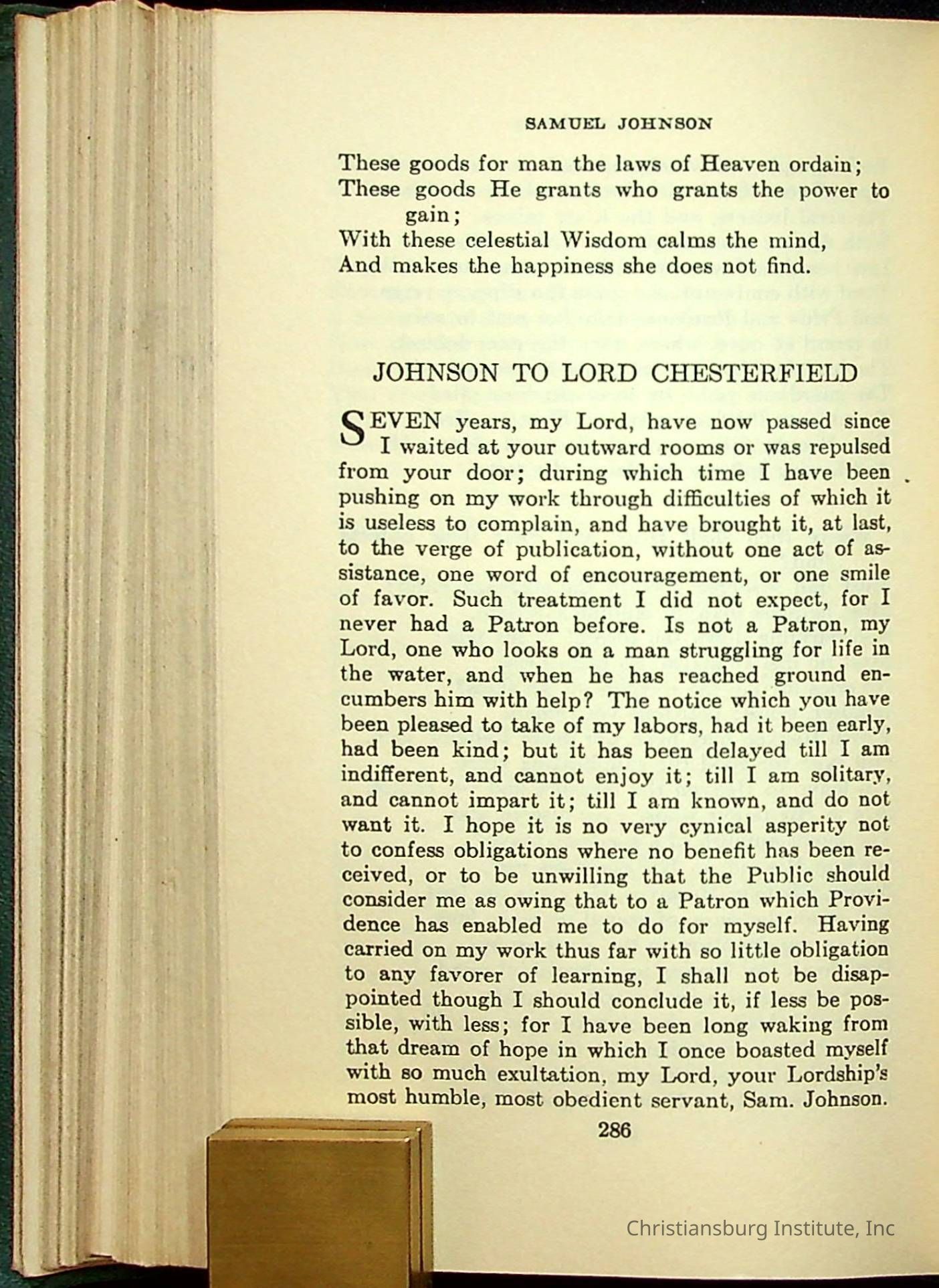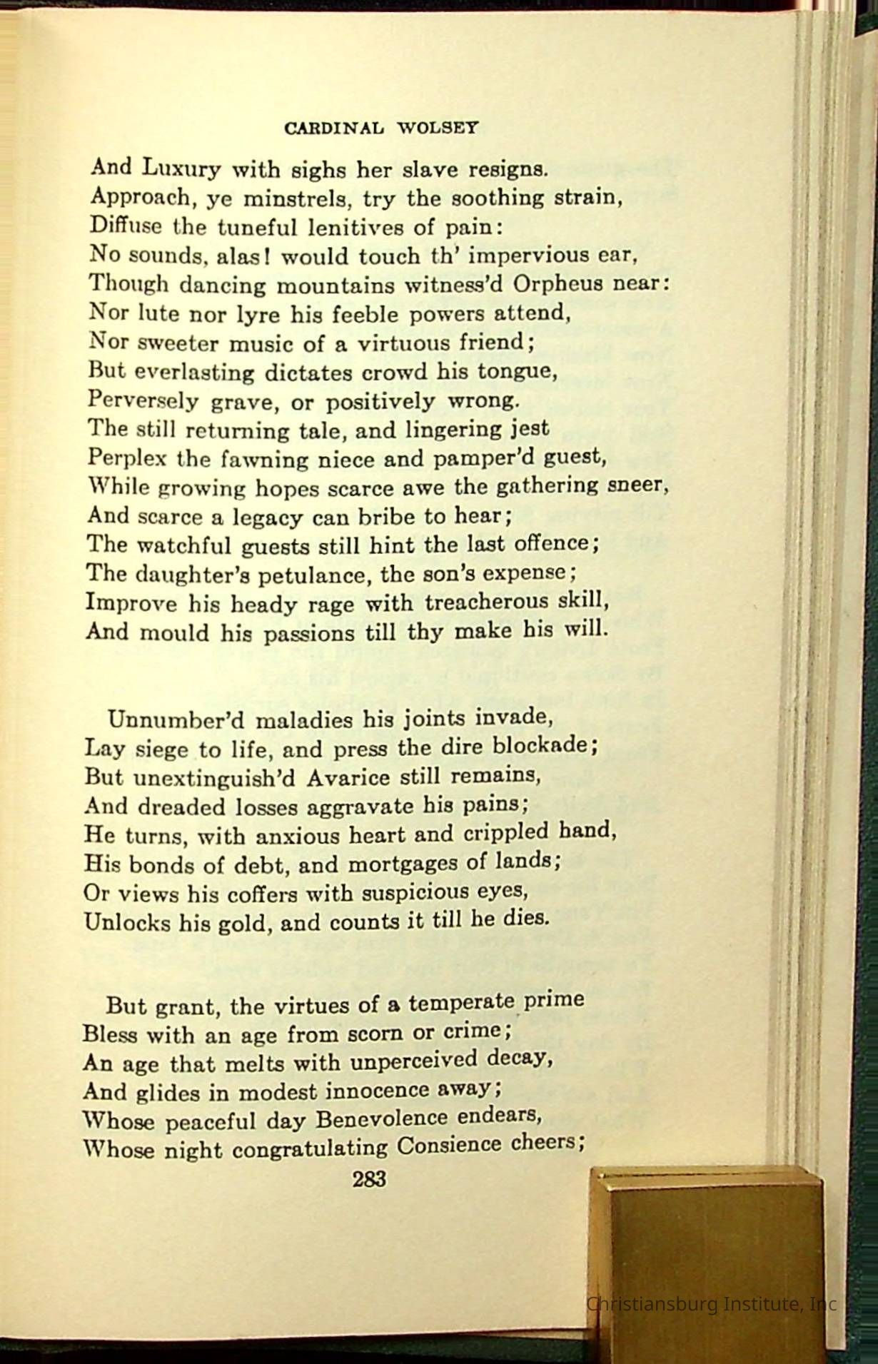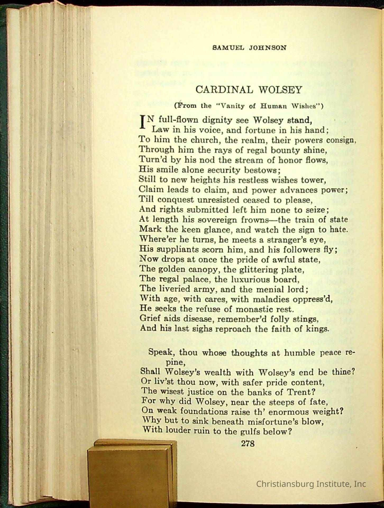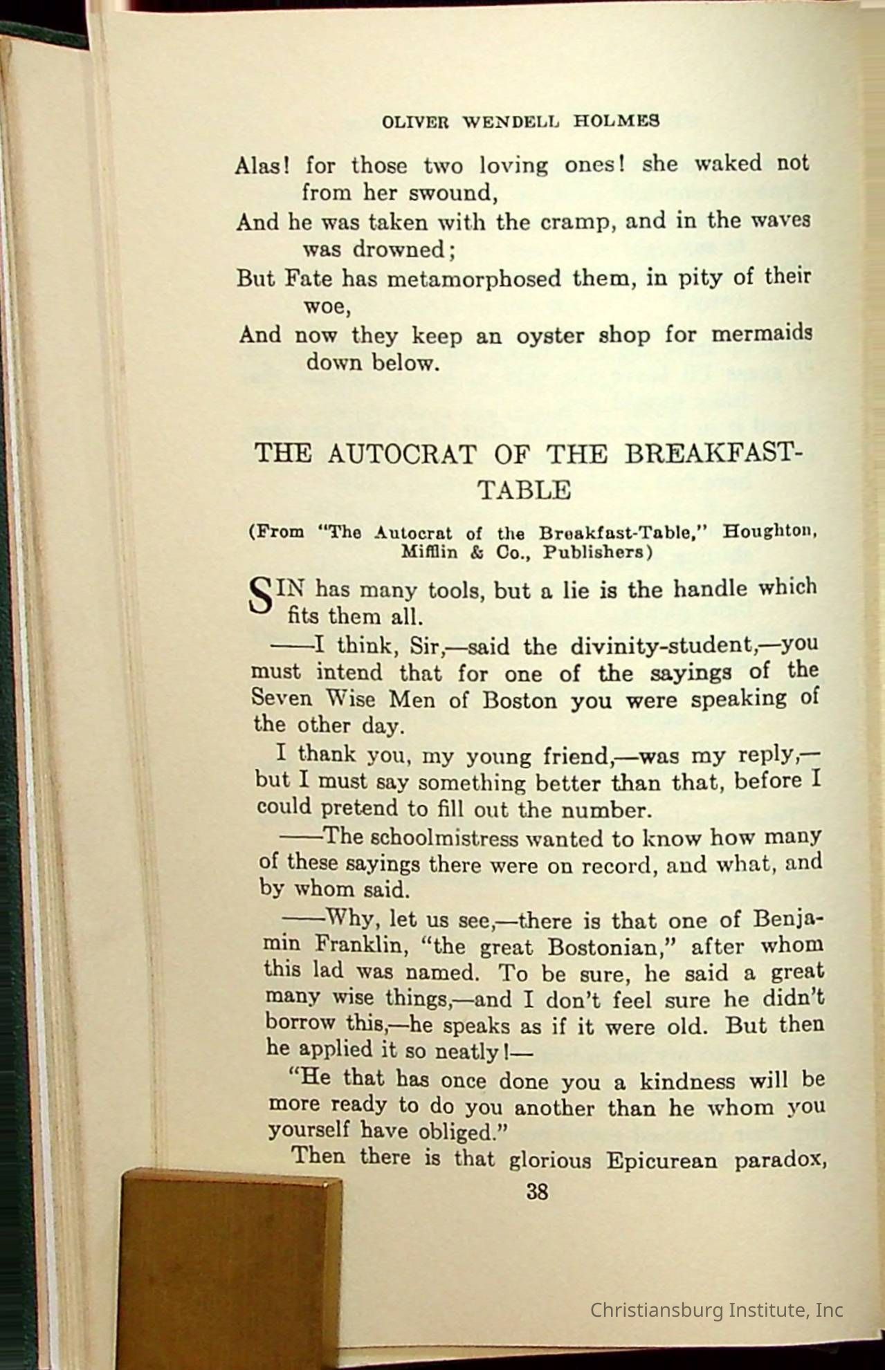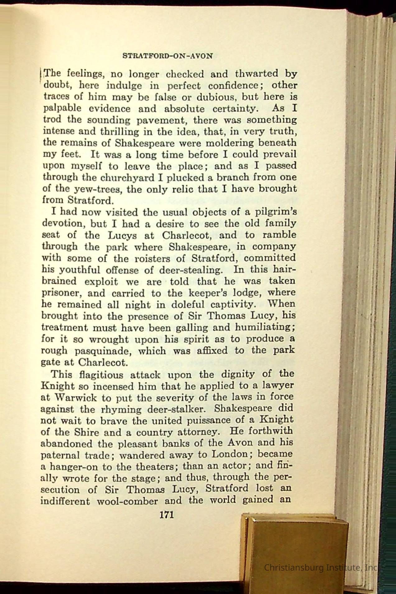 Masterpieces of the World's Best Literature: 700 Immortal Selections from the Writings of the World's Greatest Authors edited by Jeanette L. Gilder and published by the New York Standard Book Co in 1937. This book was used by Christiansburg Institute teacher, Viola Charlton in her class.Collection