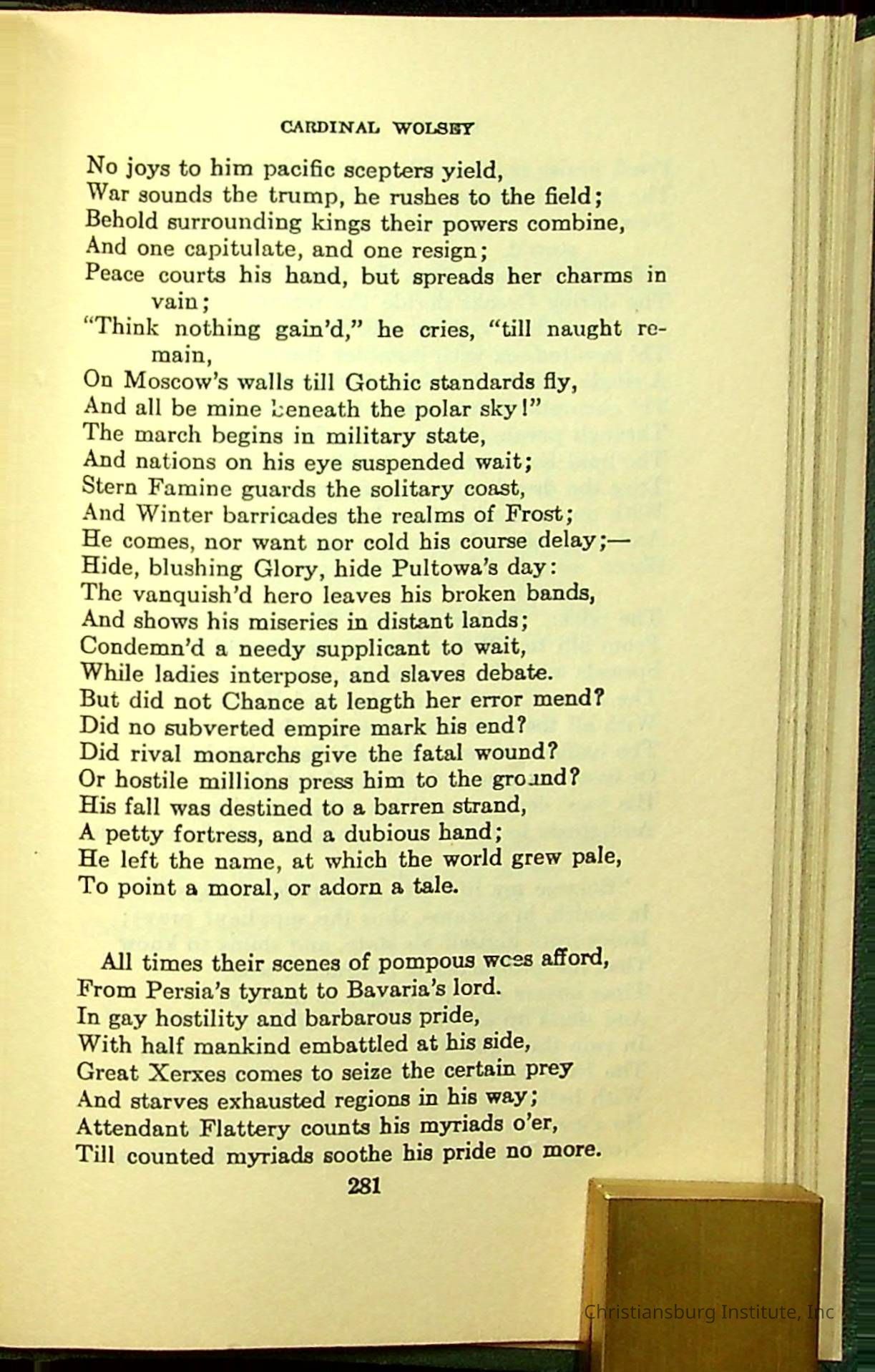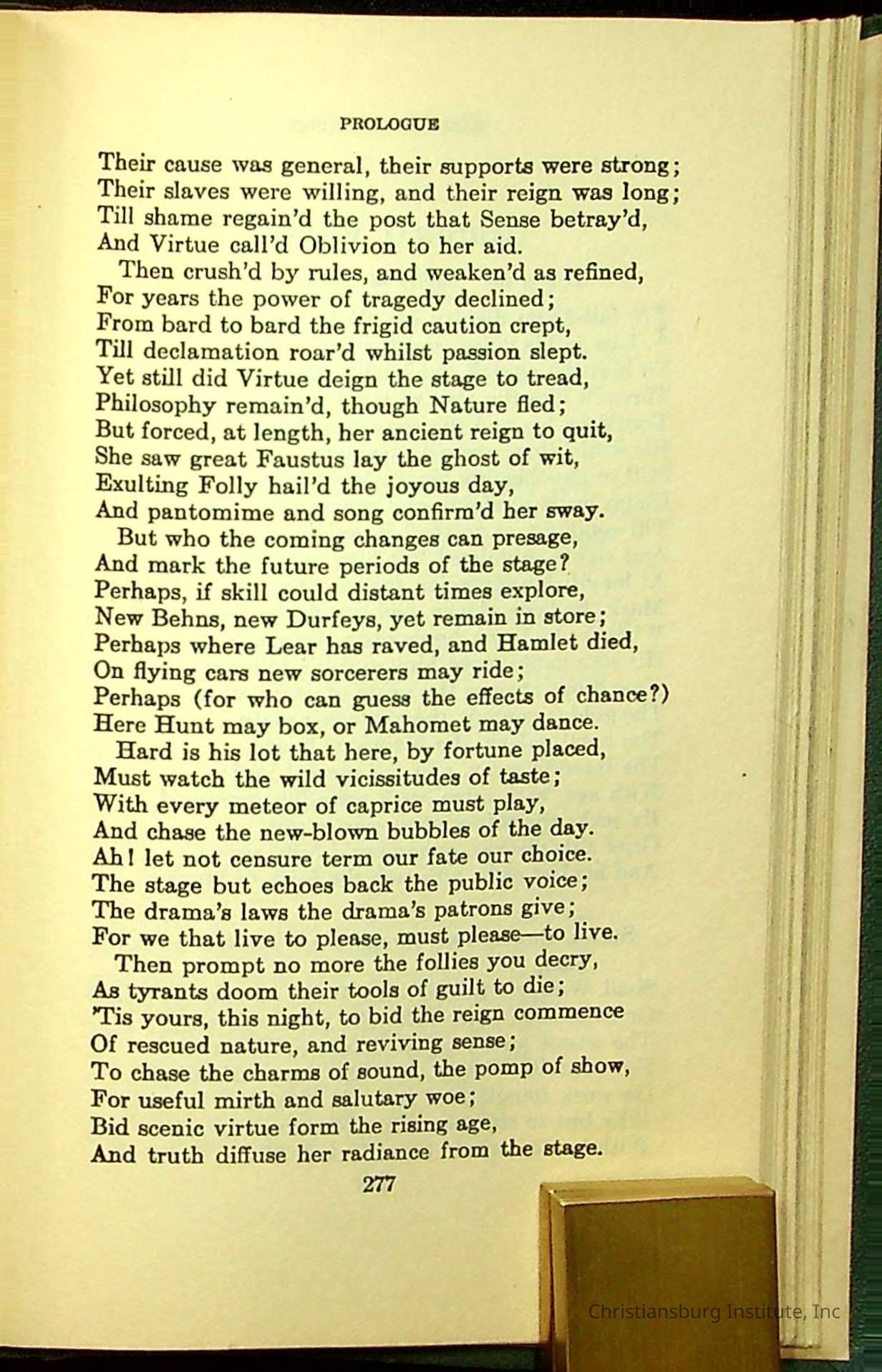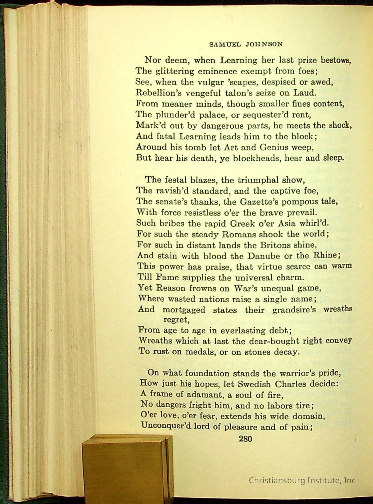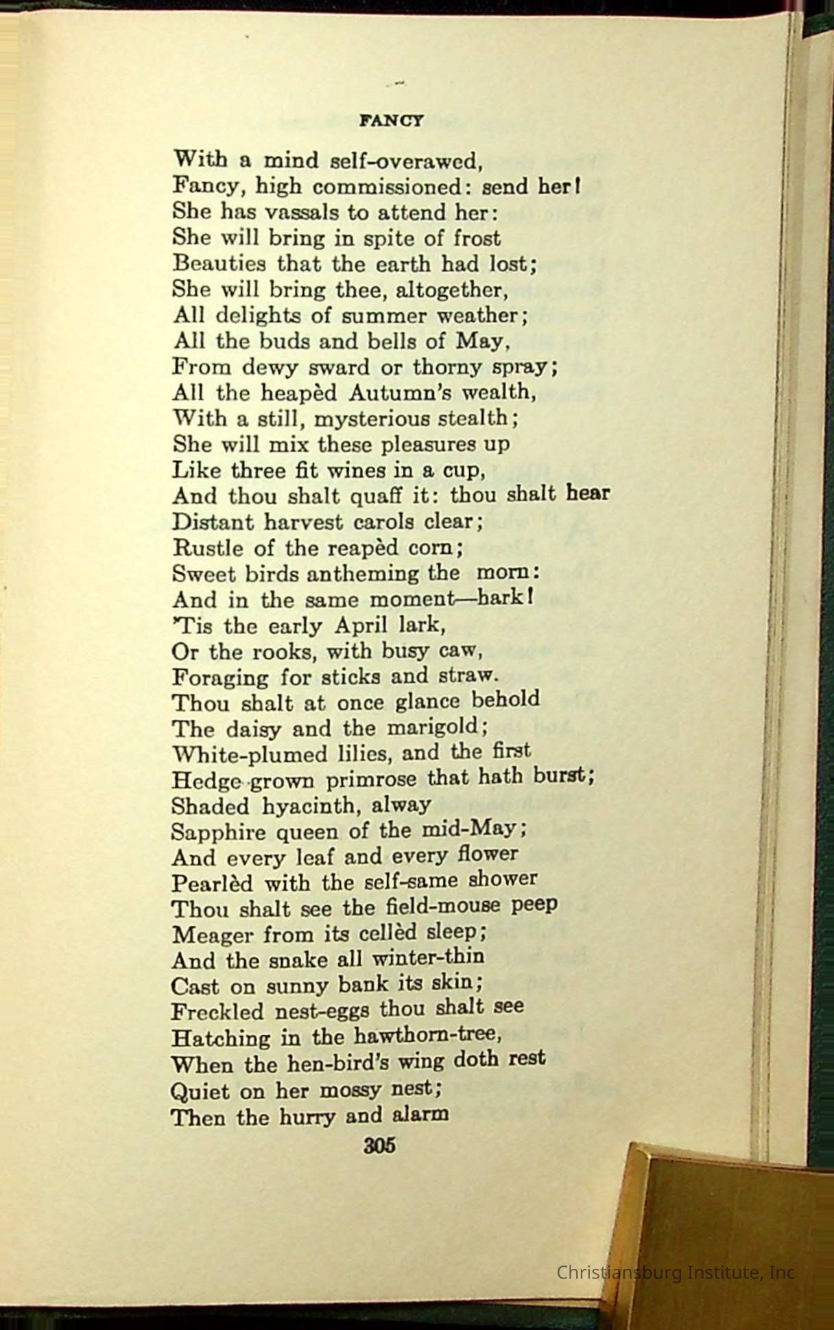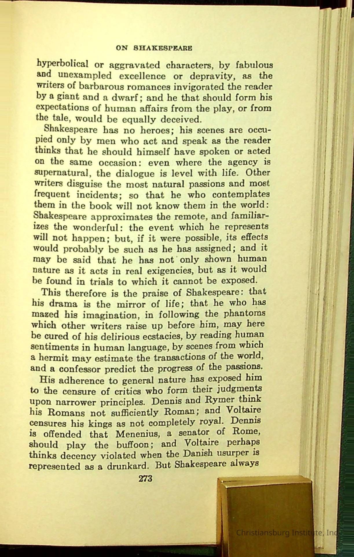 Masterpieces of the World's Best Literature: 700 Immortal Selections from the Writings of the World's Greatest Authors edited by Jeanette L. Gilder and published by the New York Standard Book Co in 1937. This book was used by Christiansburg Institute teacher, Viola Charlton in her class.Collection