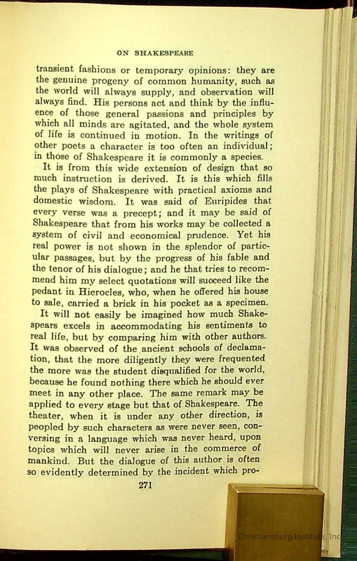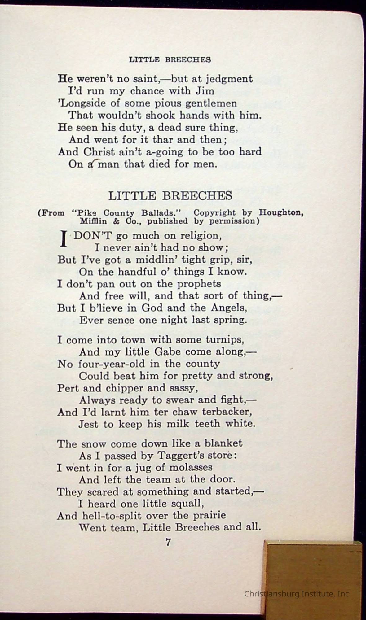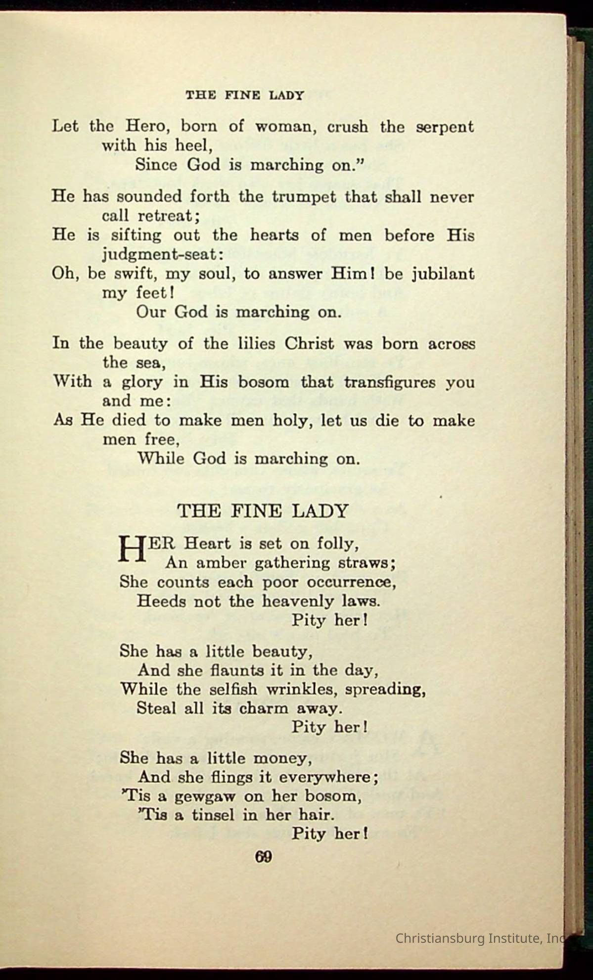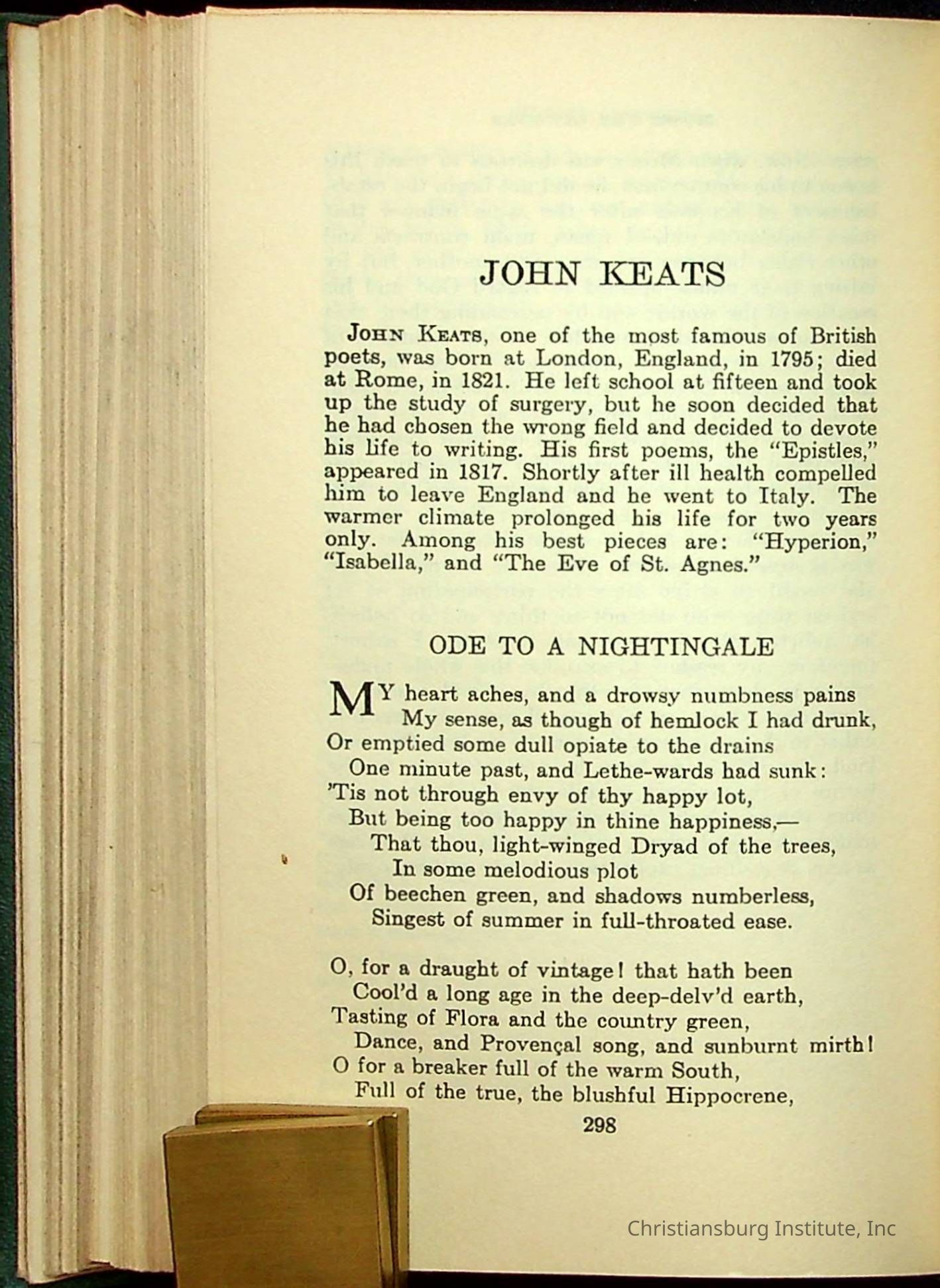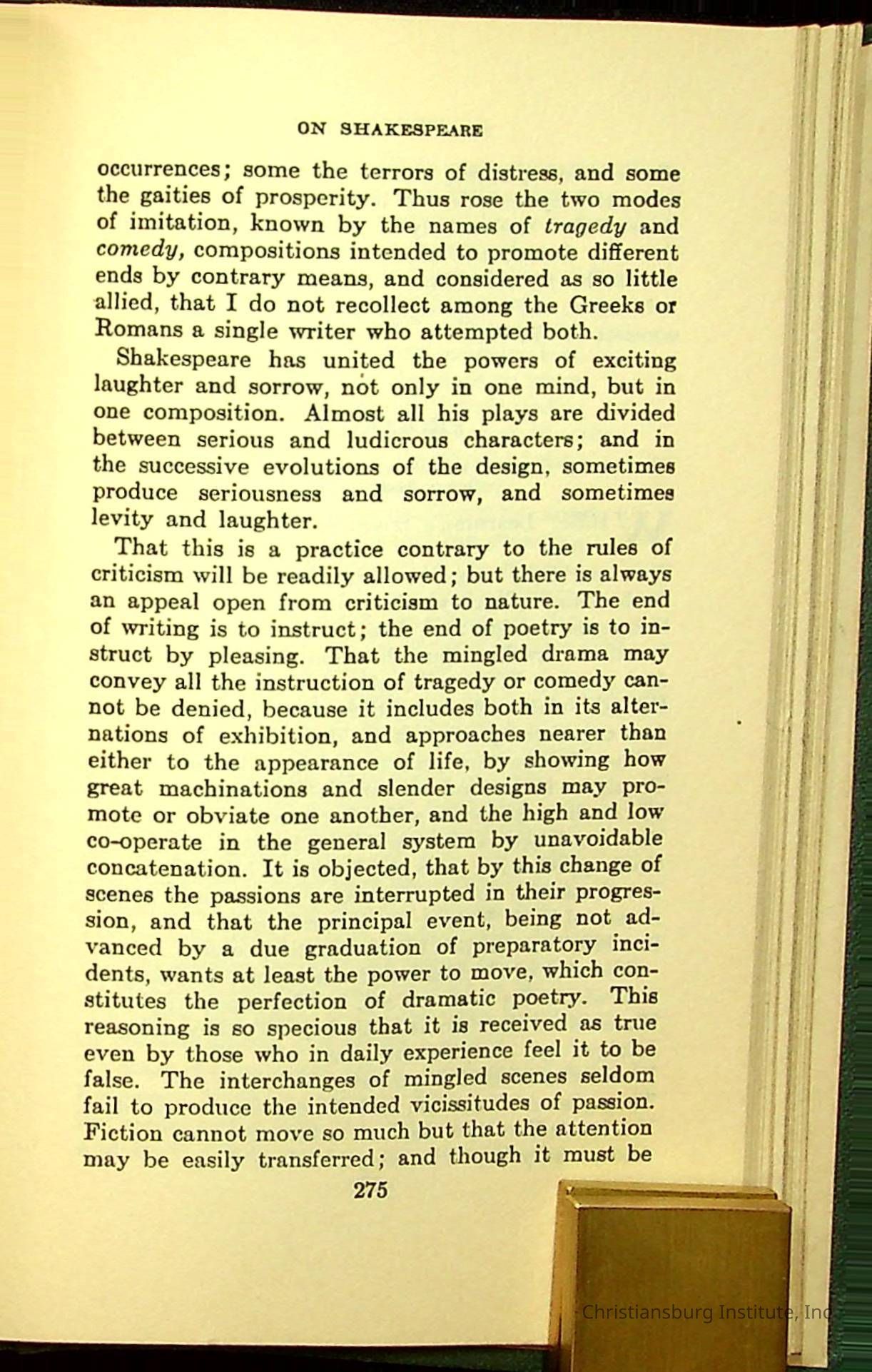 Masterpieces of the World's Best Literature: 700 Immortal Selections from the Writings of the World's Greatest Authors edited by Jeanette L. Gilder and published by the New York Standard Book Co in 1937. This book was used by Christiansburg Institute teacher, Viola Charlton in her class.Collection