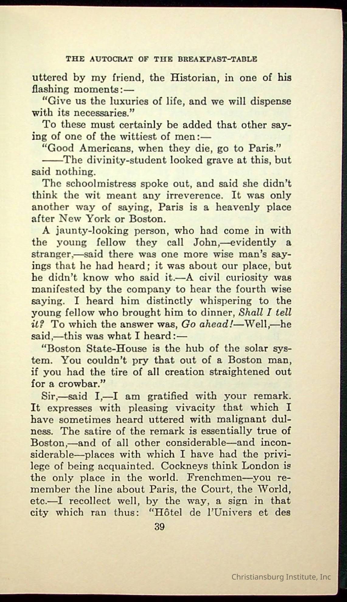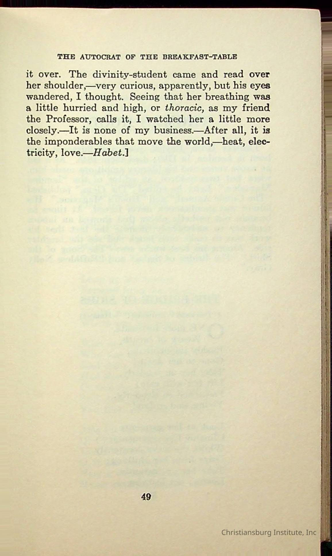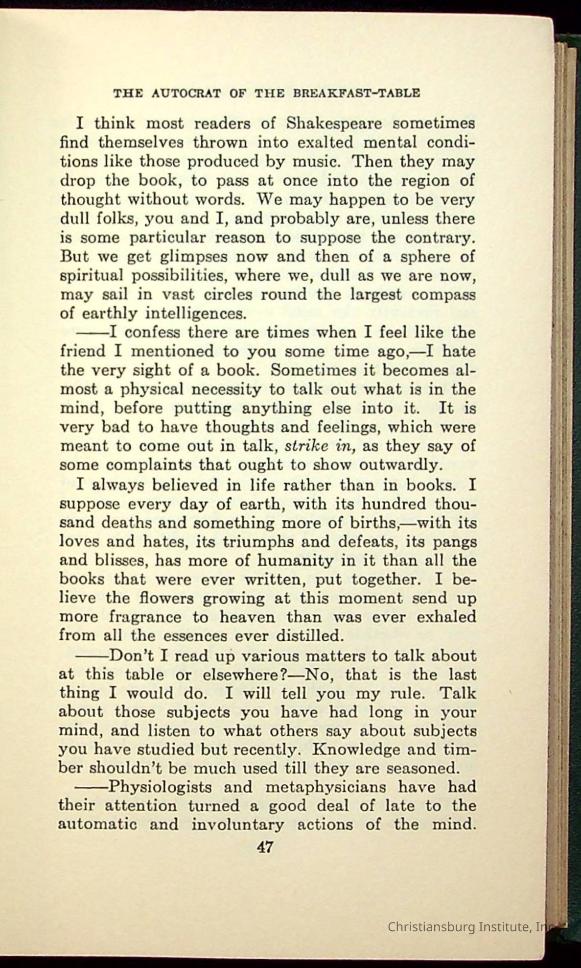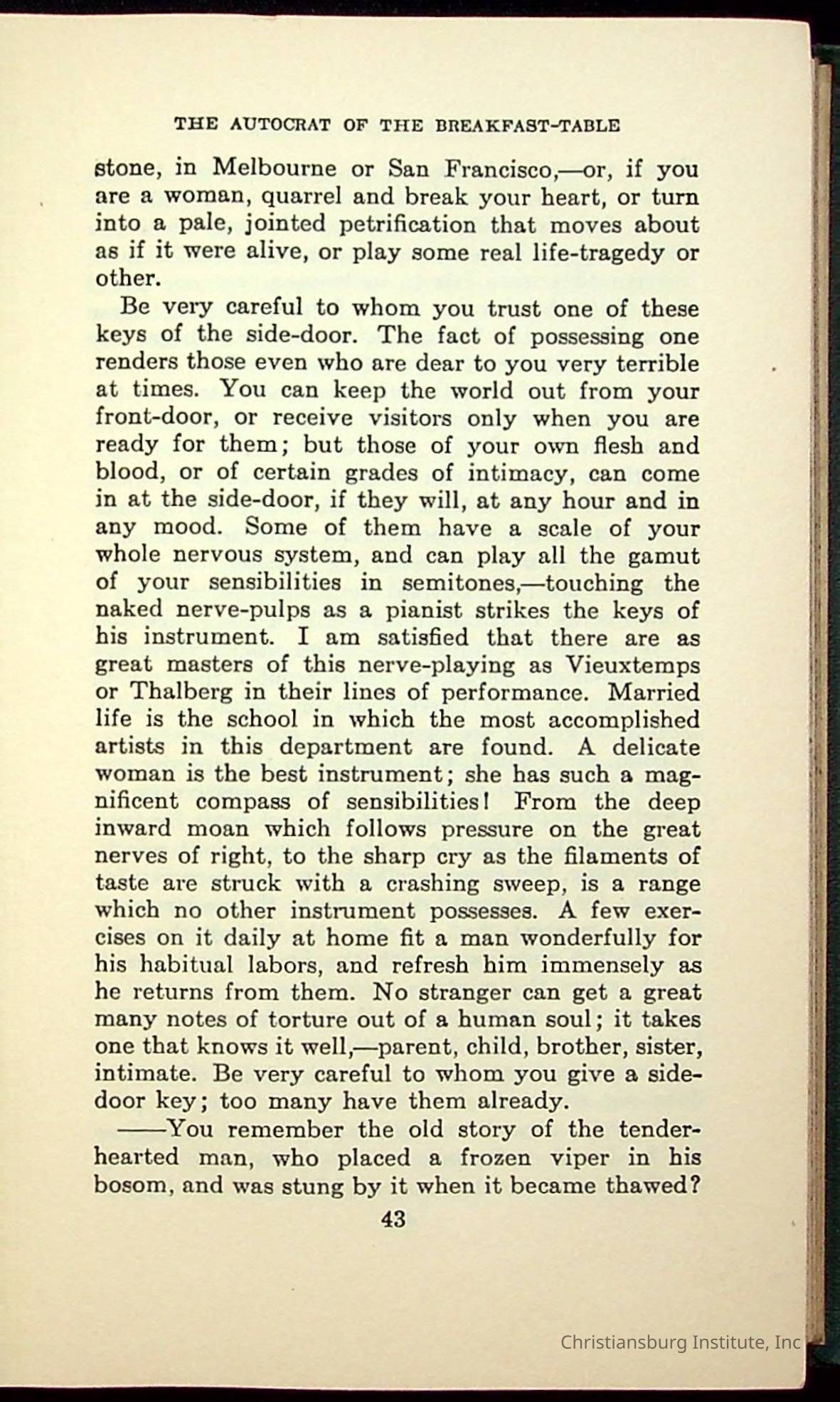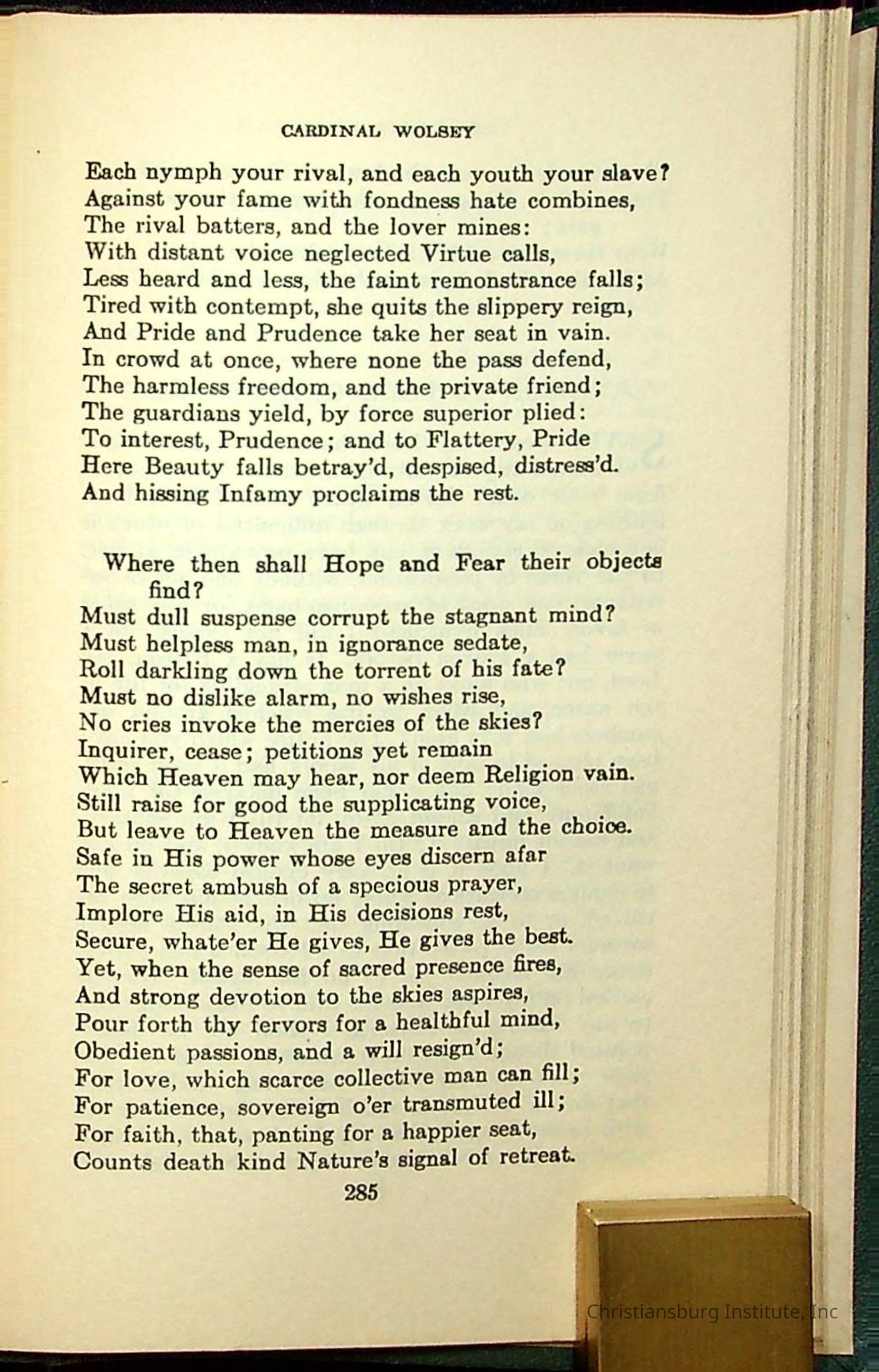 Masterpieces of the World's Best Literature: 700 Immortal Selections from the Writings of the World's Greatest Authors edited by Jeanette L. Gilder and published by the New York Standard Book Co in 1937. This book was used by Christiansburg Institute teacher, Viola Charlton in her class.Collection
