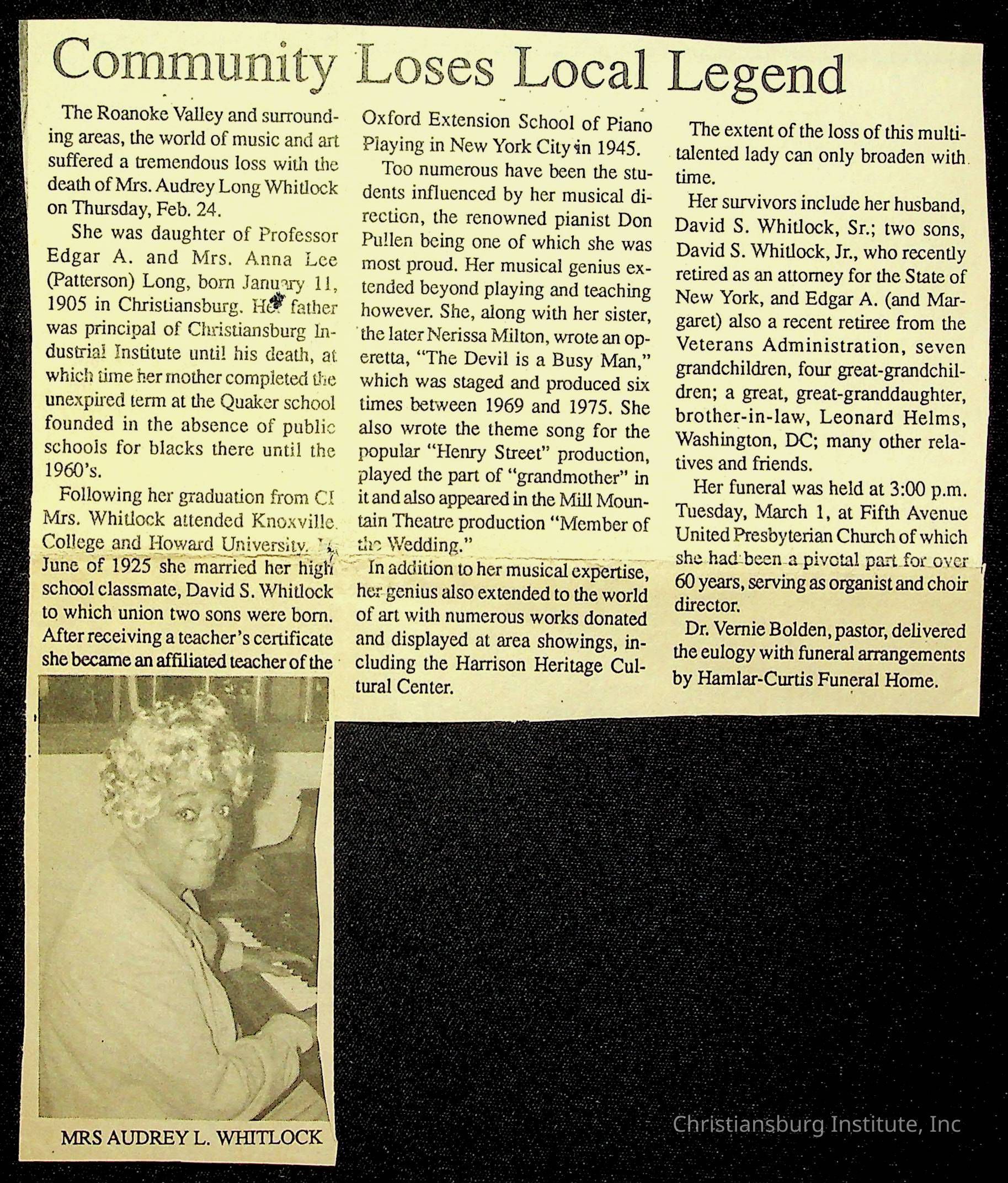 Blankenship, Michael, Fifth Avenue Presbyterian Church, Whitlock, Audrey Long, Lucy Addison High SchoolRelated Places