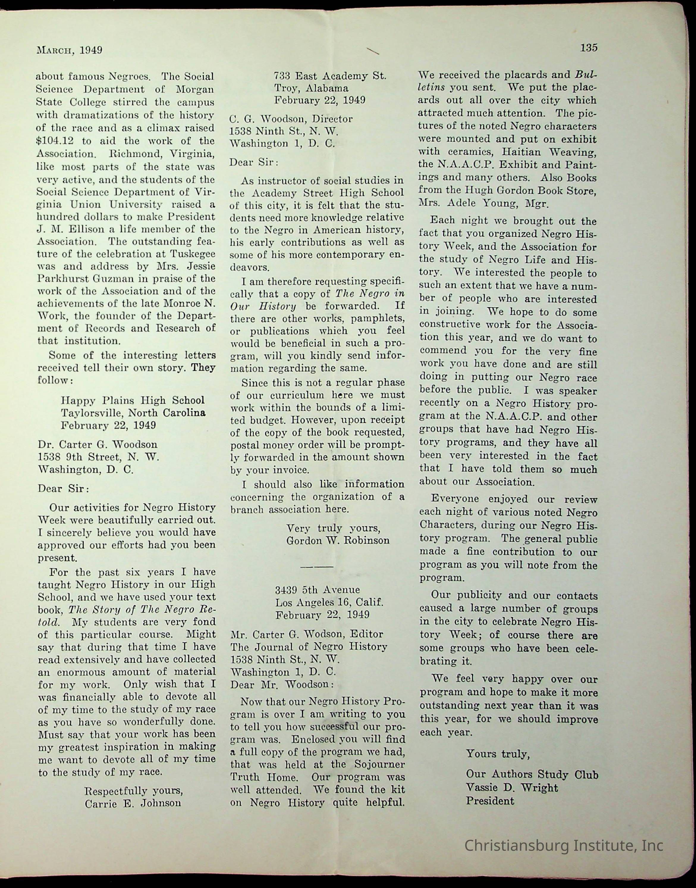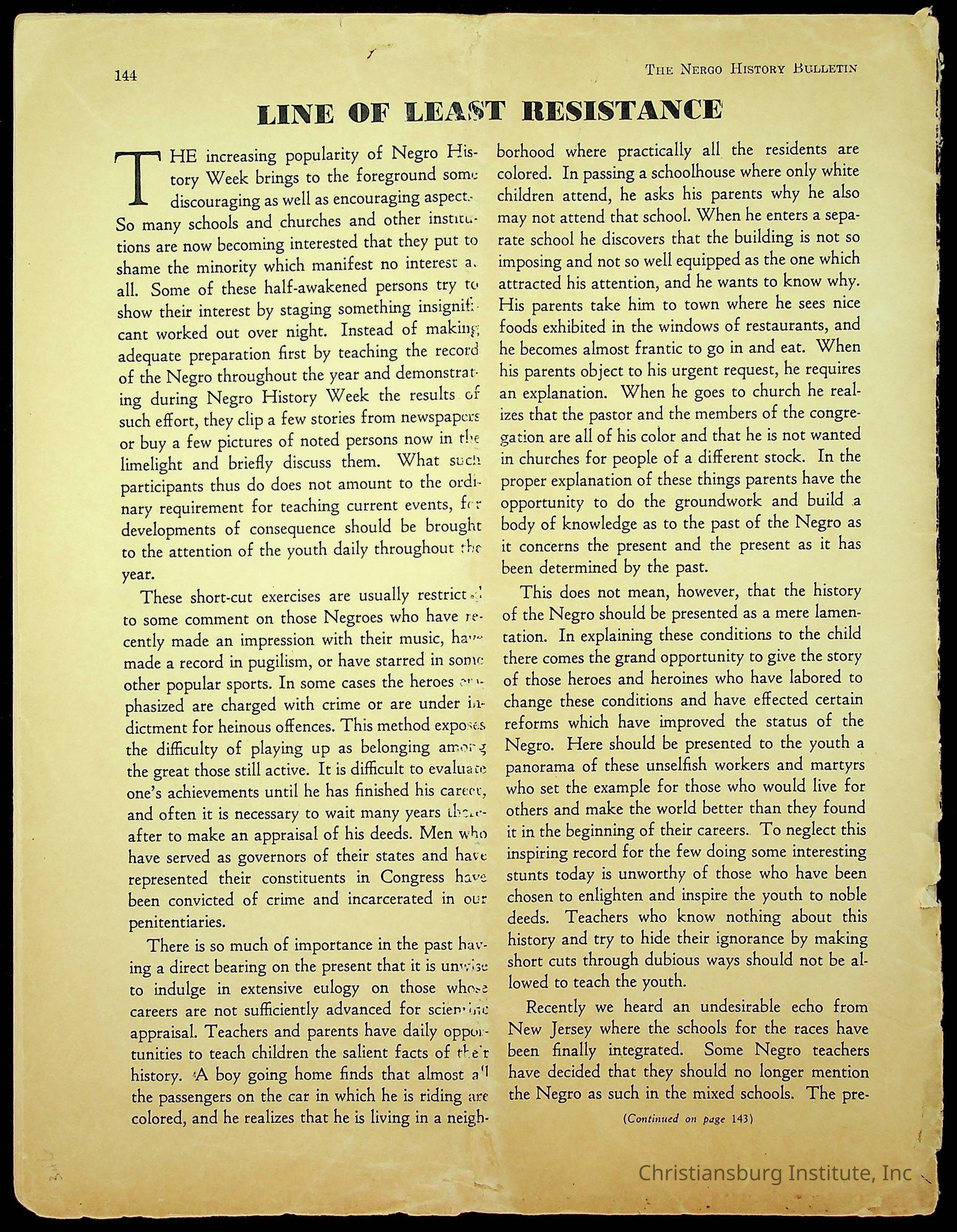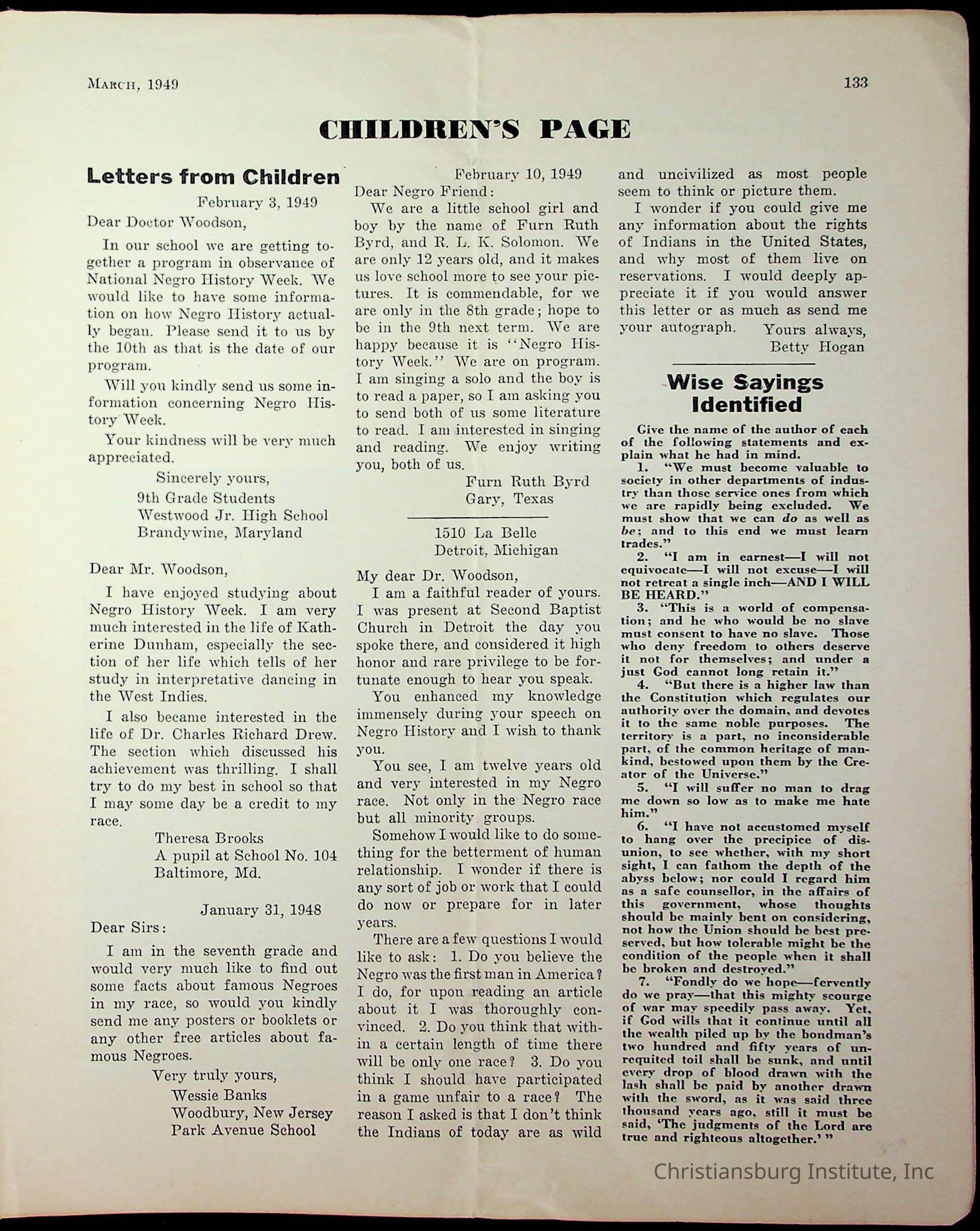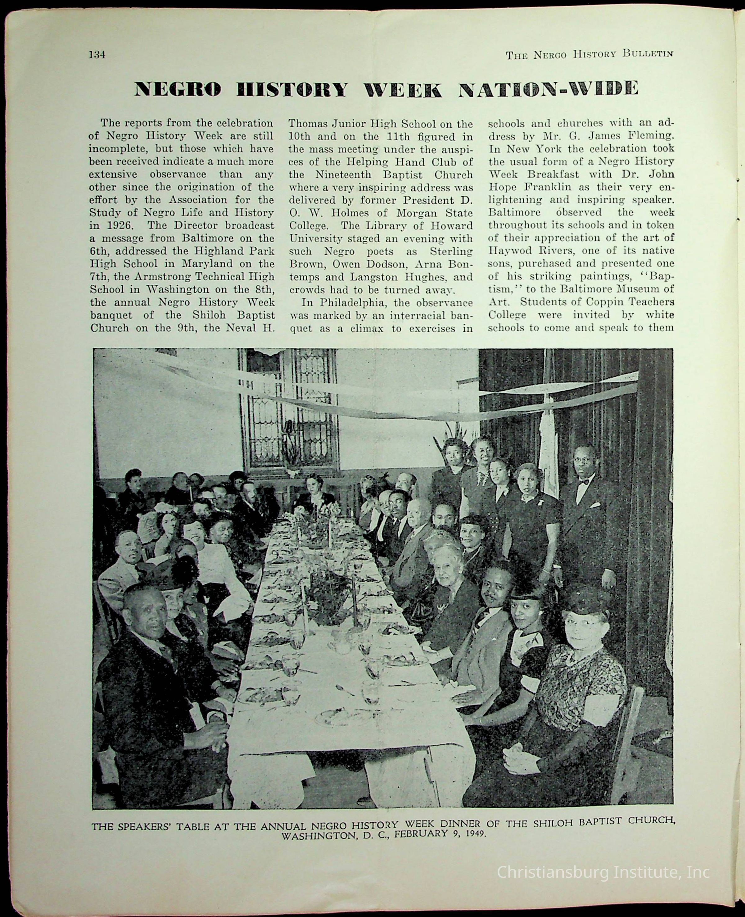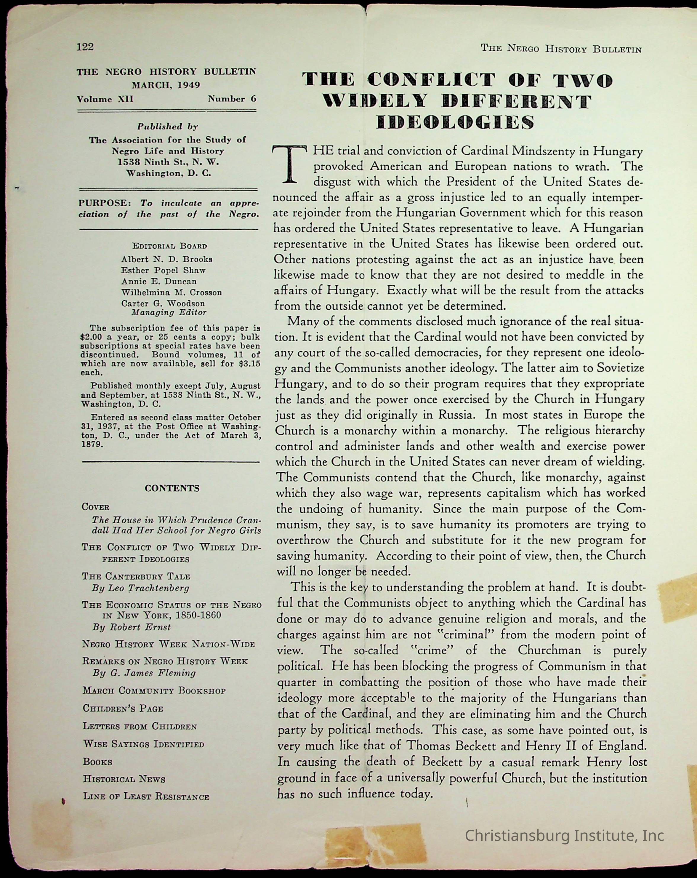 An archive of miscellaneous materials related to Christiansburg Institute, including a copy of the Negro History Bulletin from 1949.