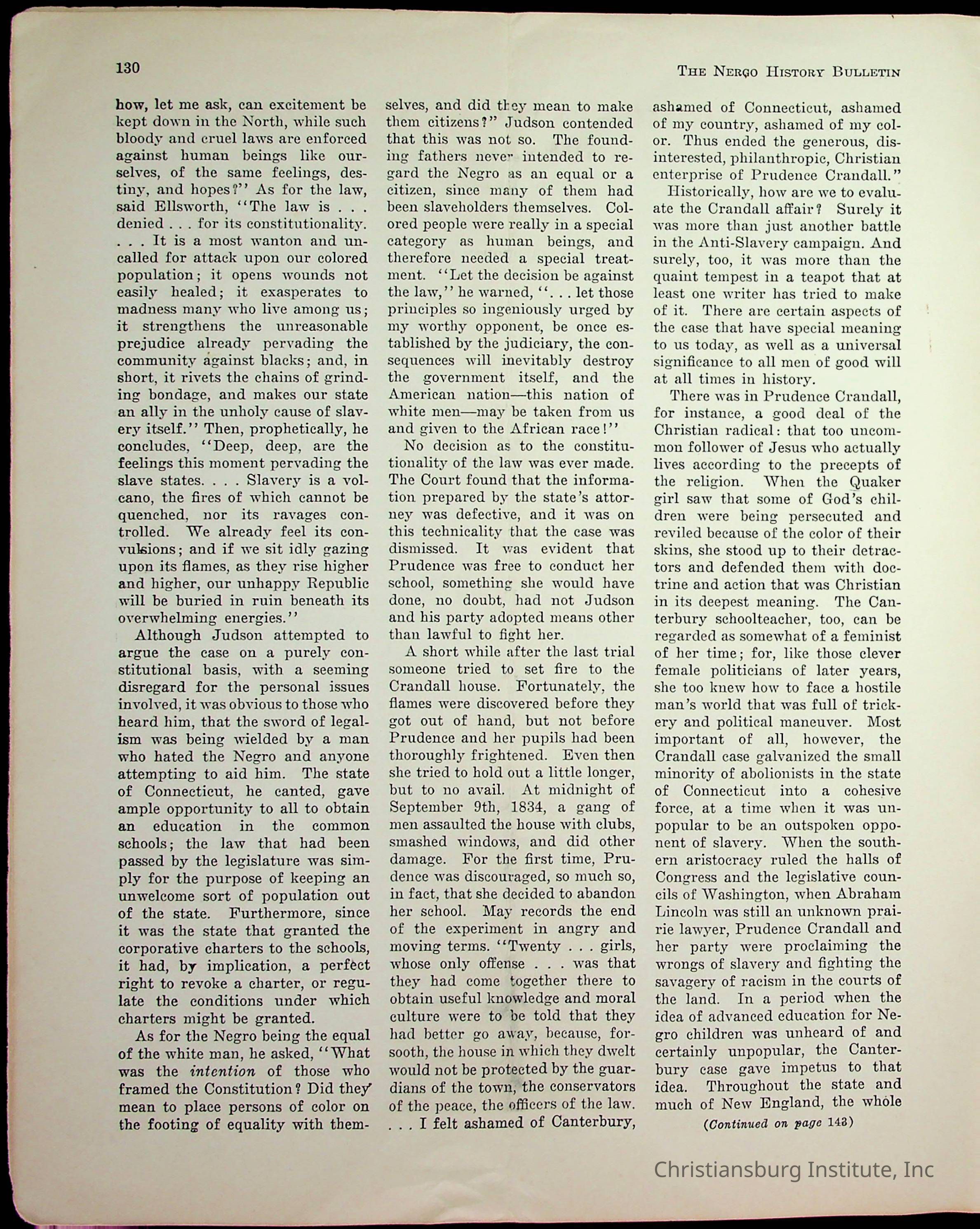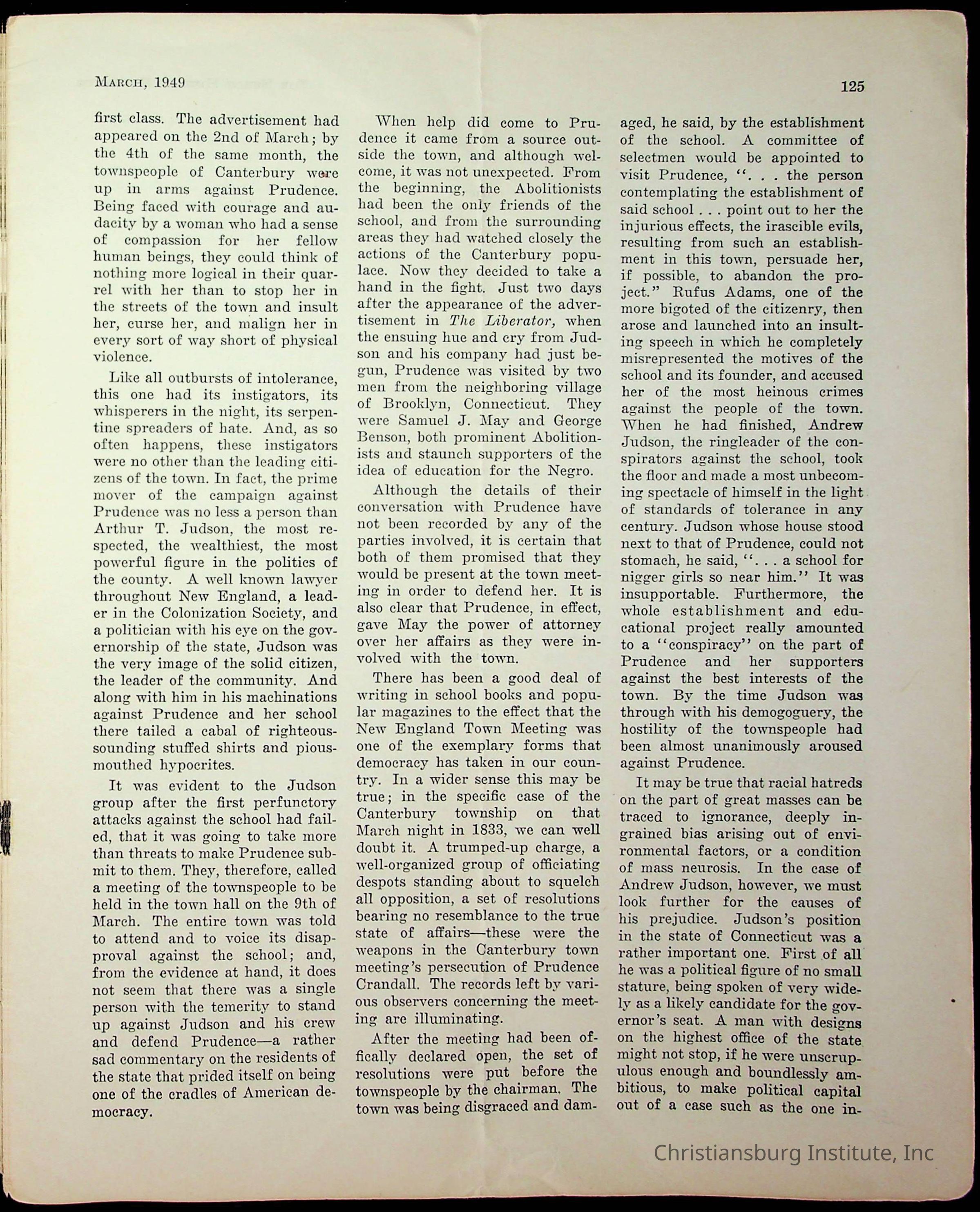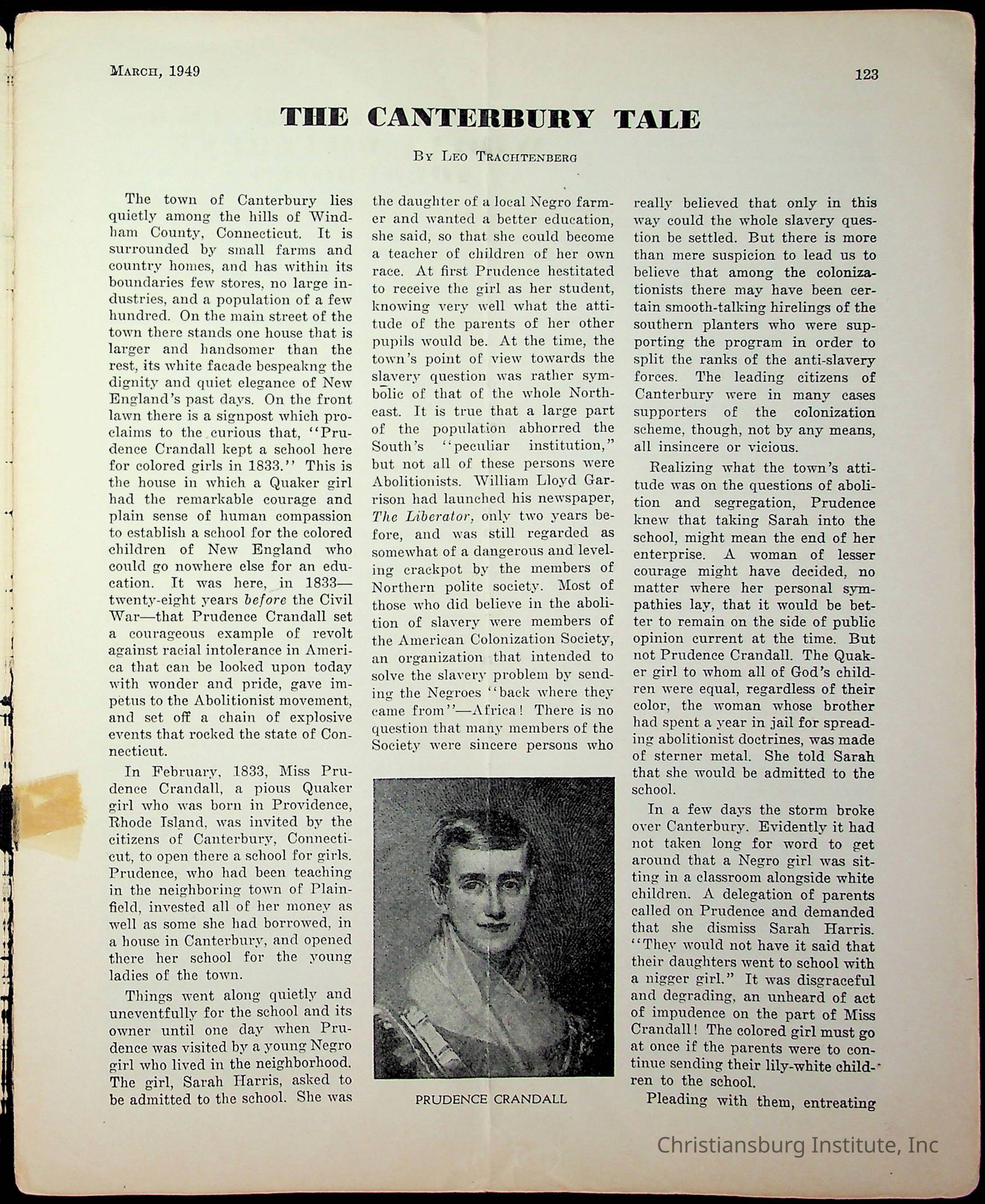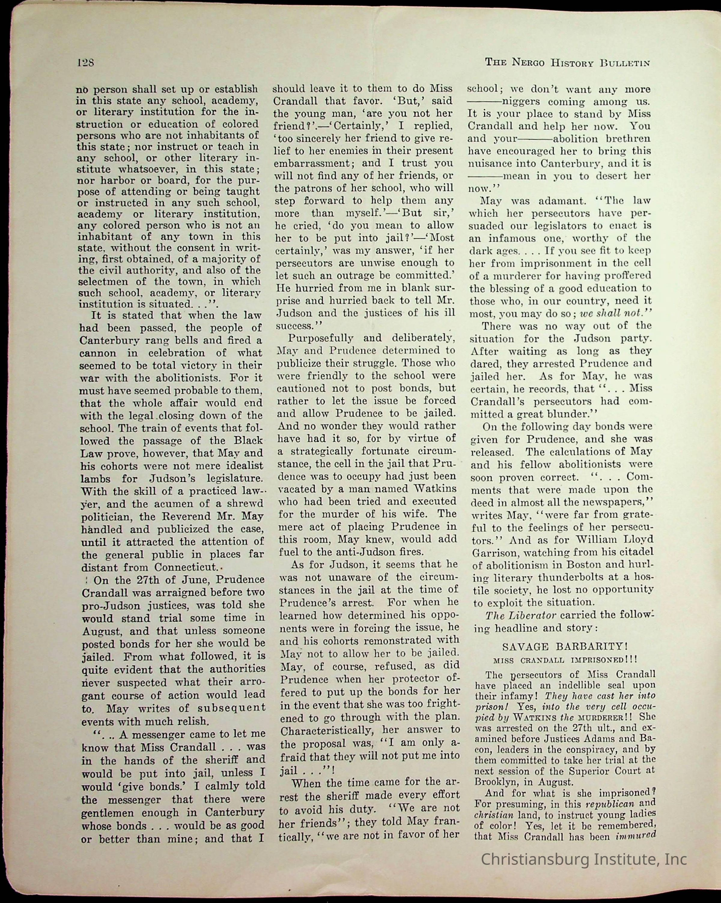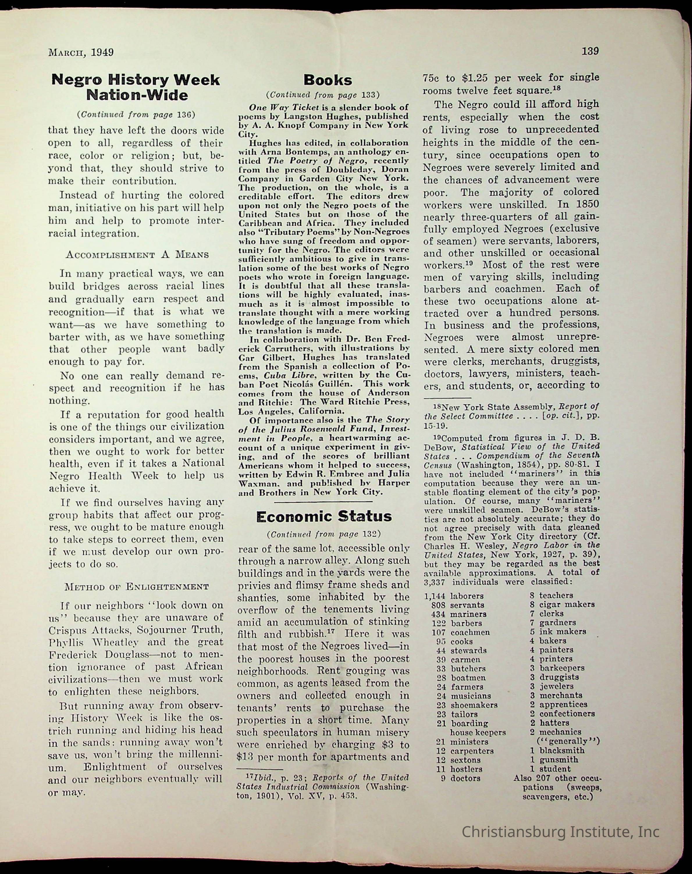 An archive of miscellaneous materials related to Christiansburg Institute, including a copy of the Negro History Bulletin from 1949.