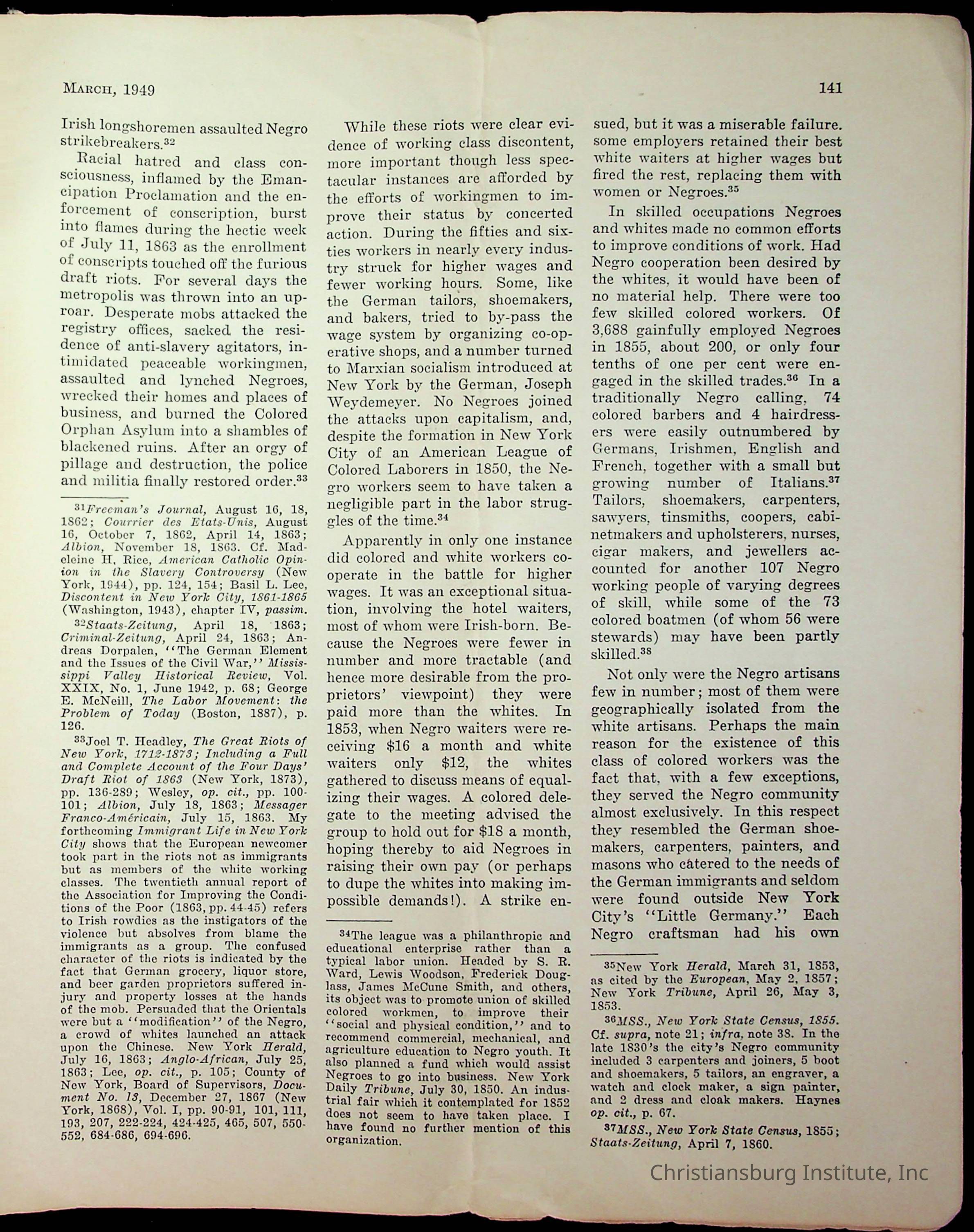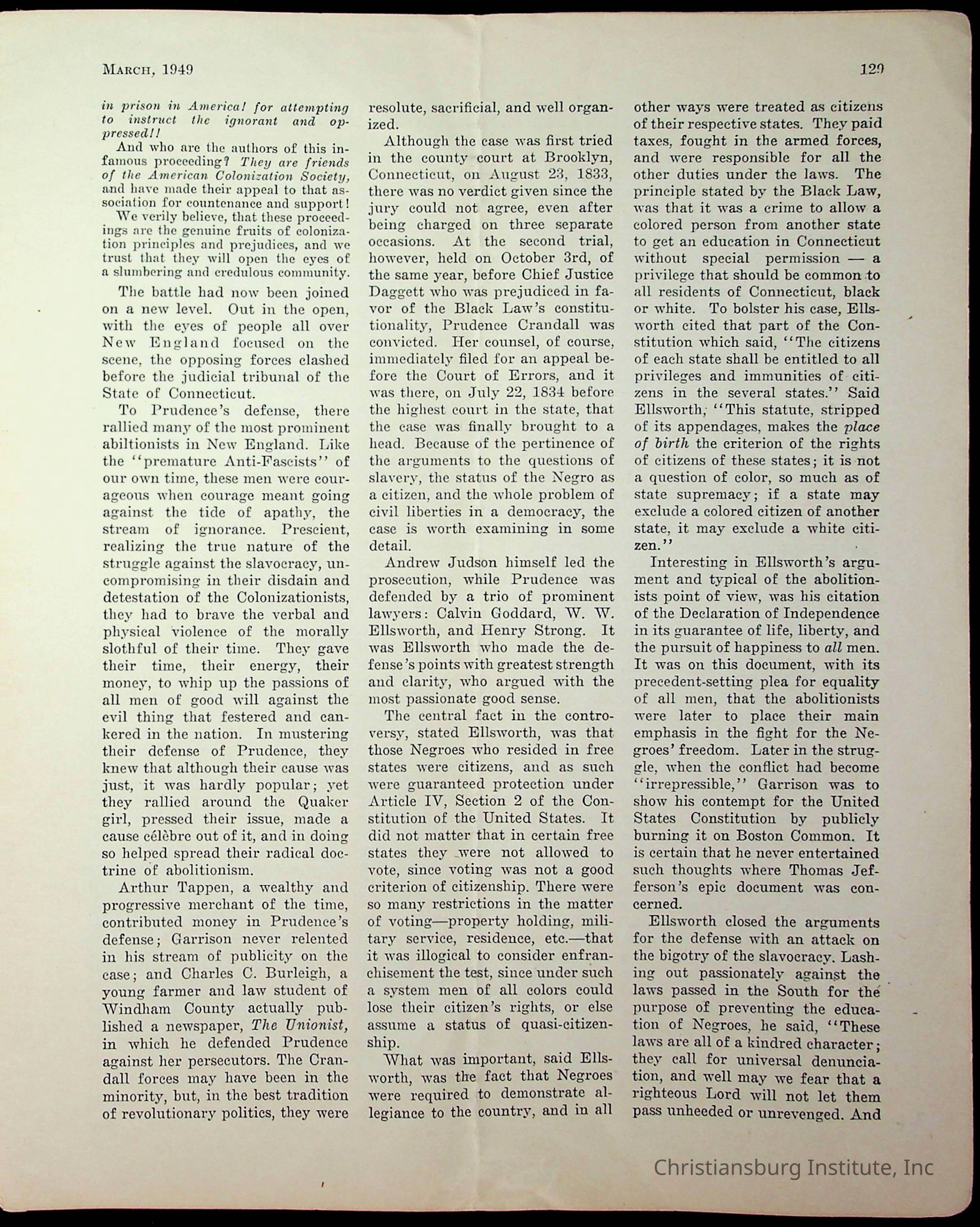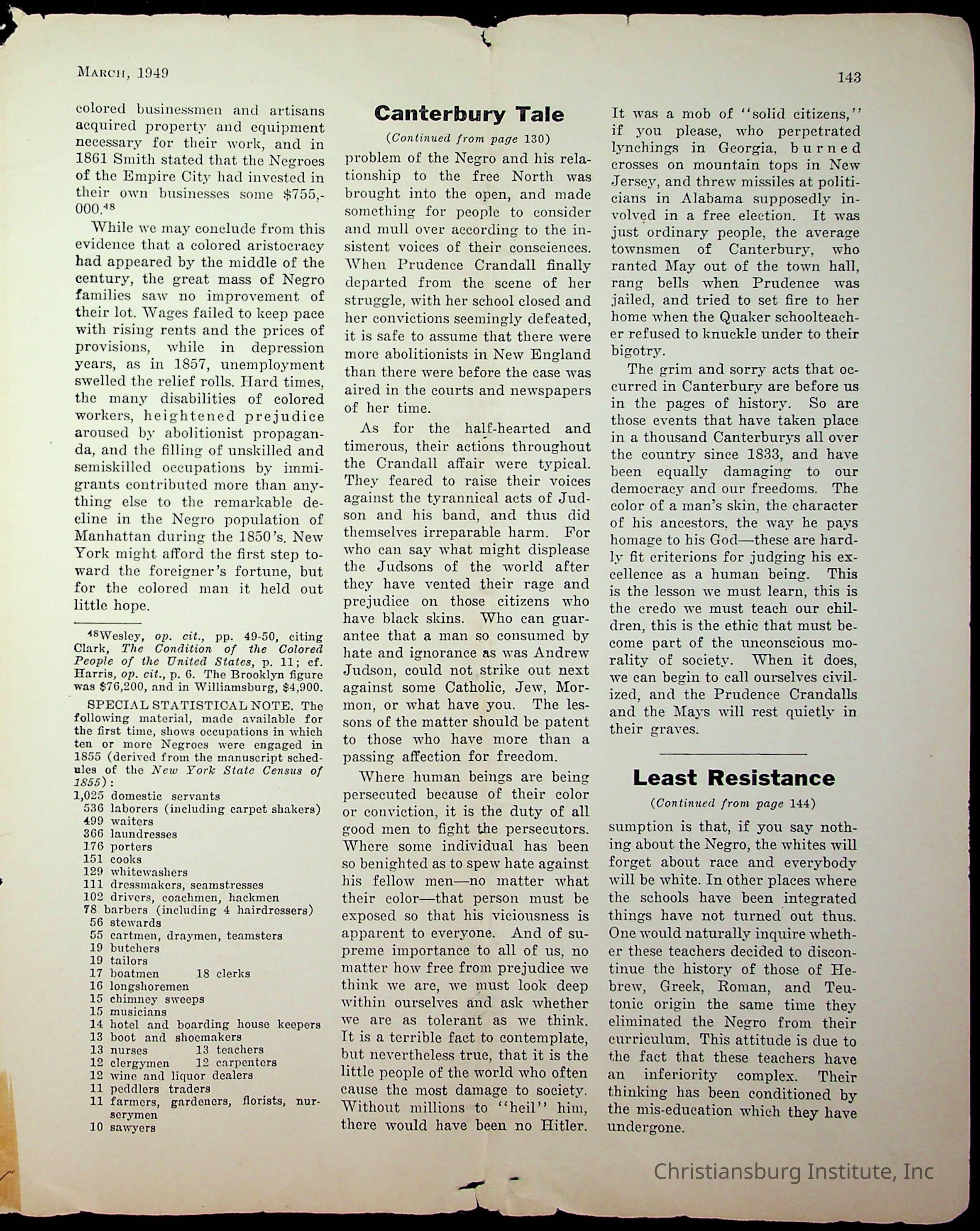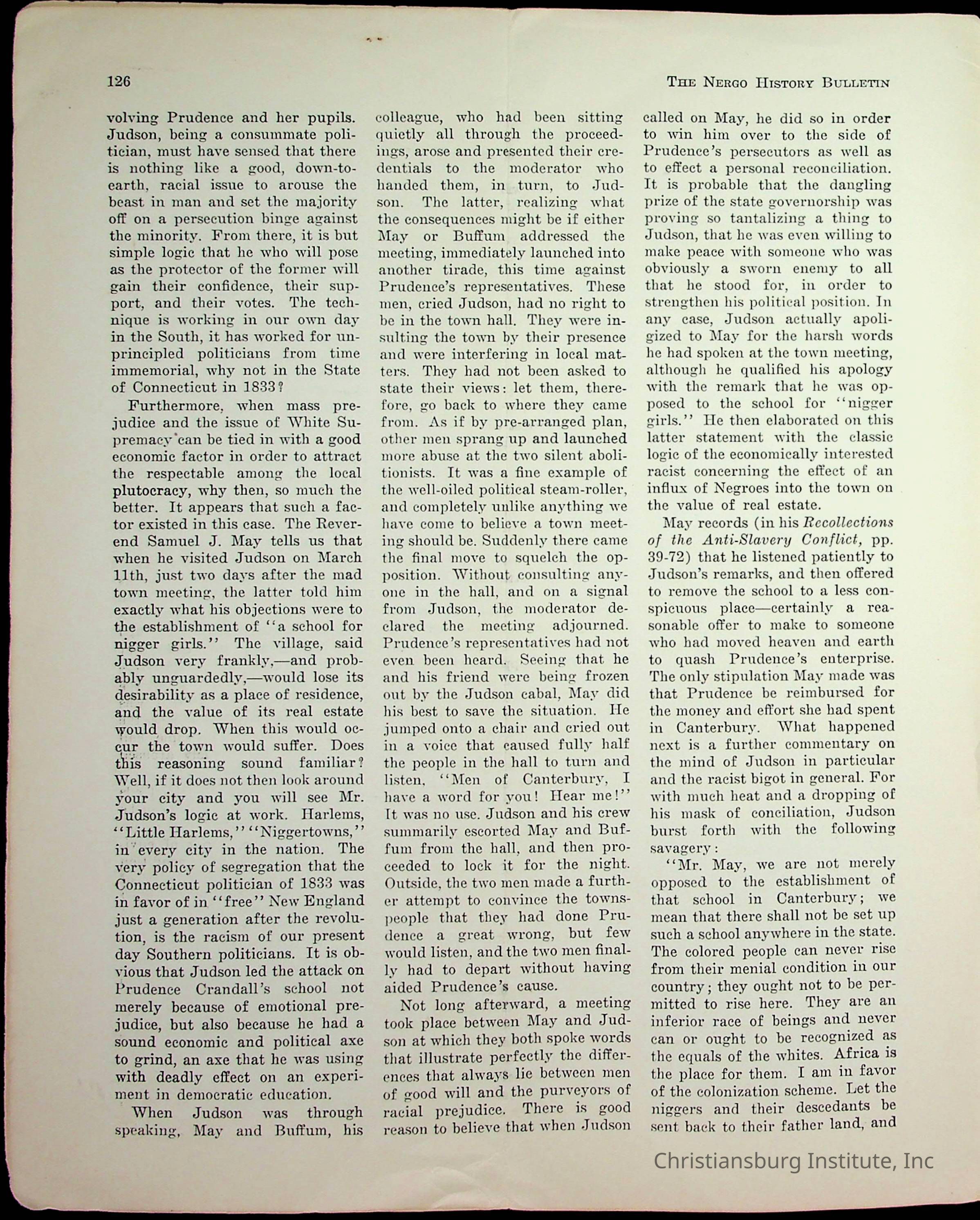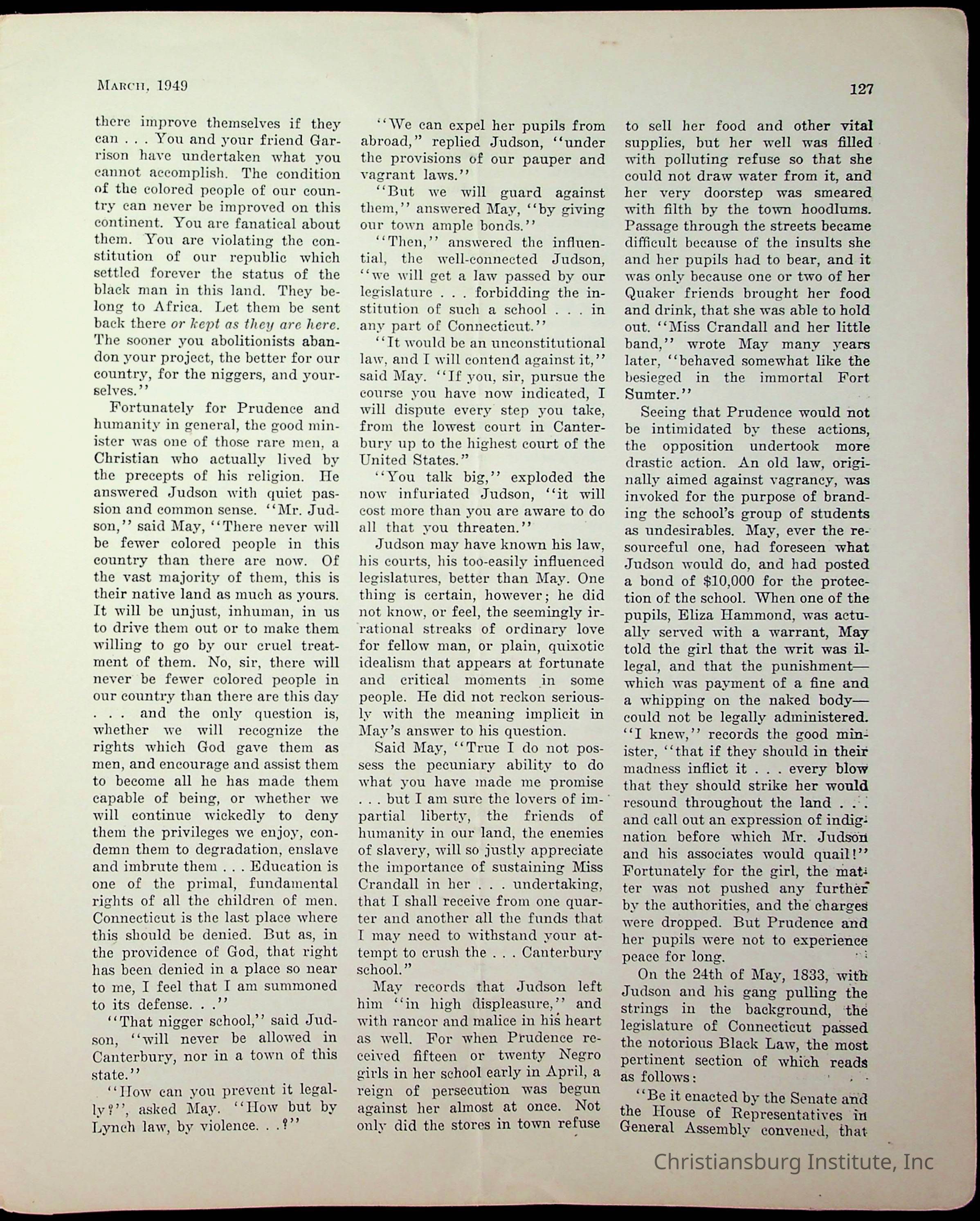 An archive of miscellaneous materials related to Christiansburg Institute, including a copy of the Negro History Bulletin from 1949.