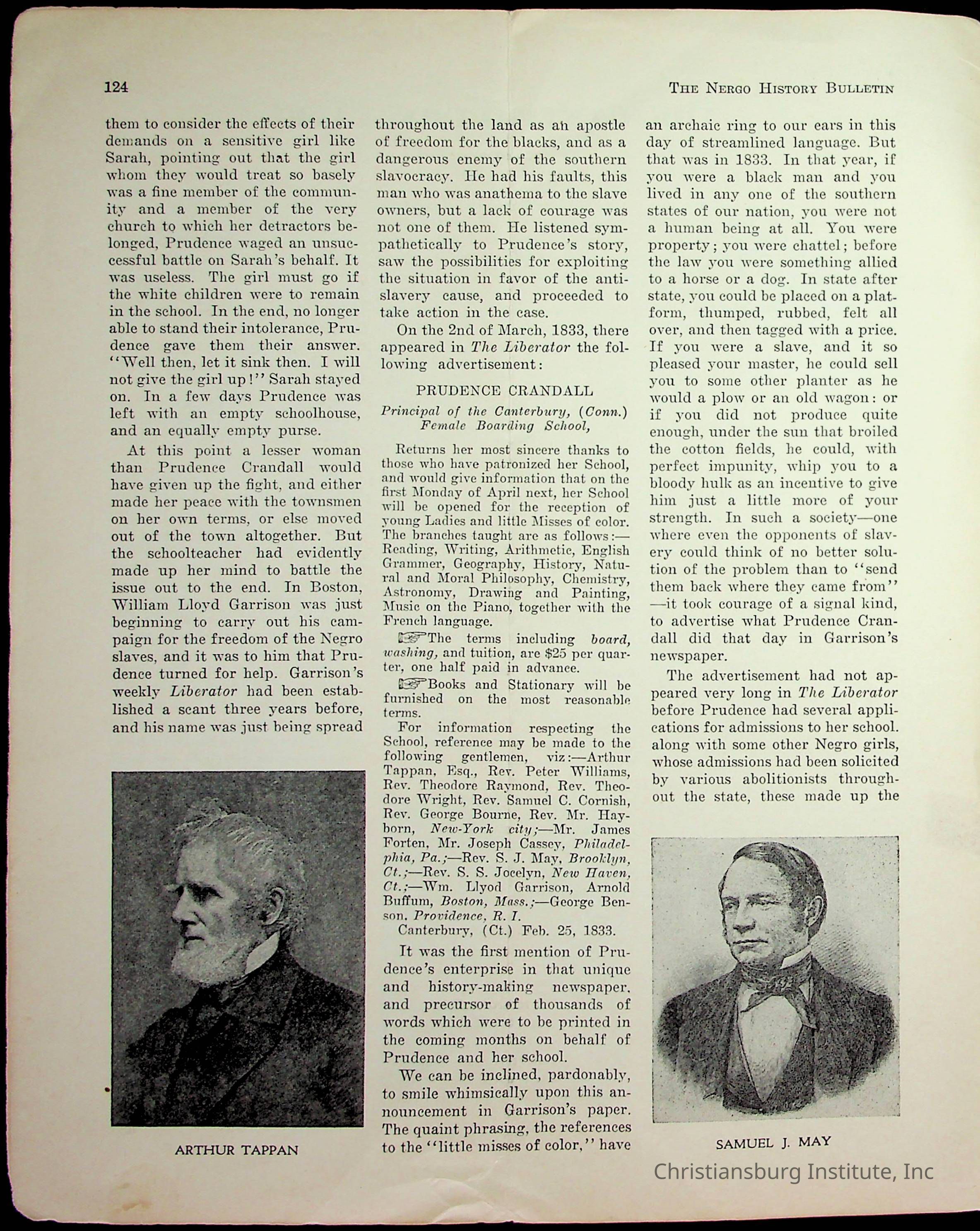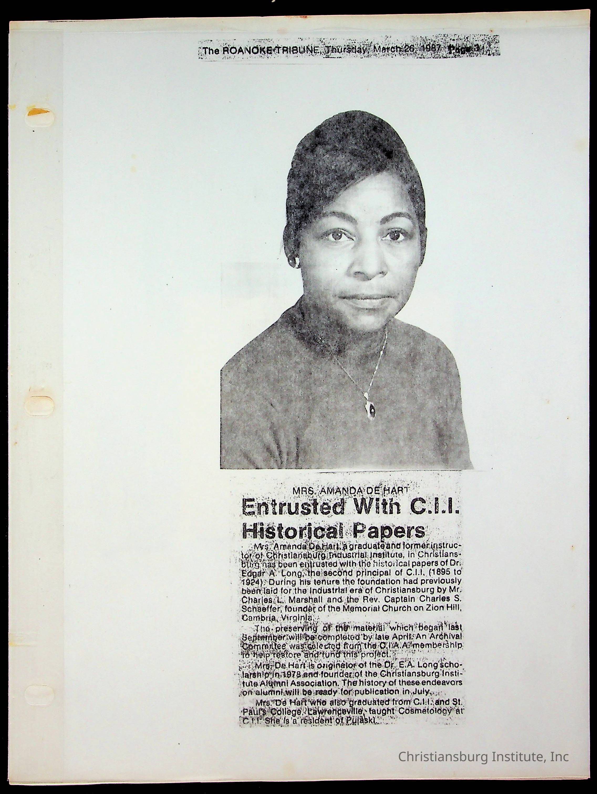 DeHart, Amanda, Christiansburg Institute, The Negro History Bulletin