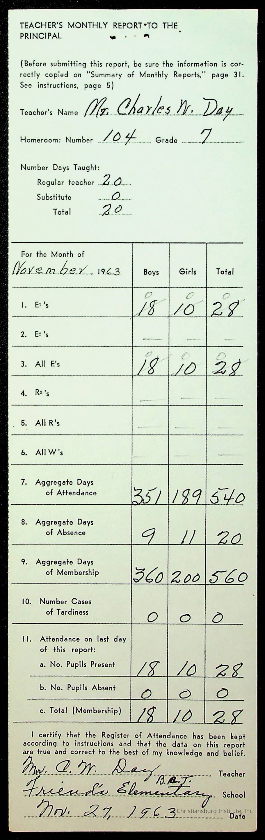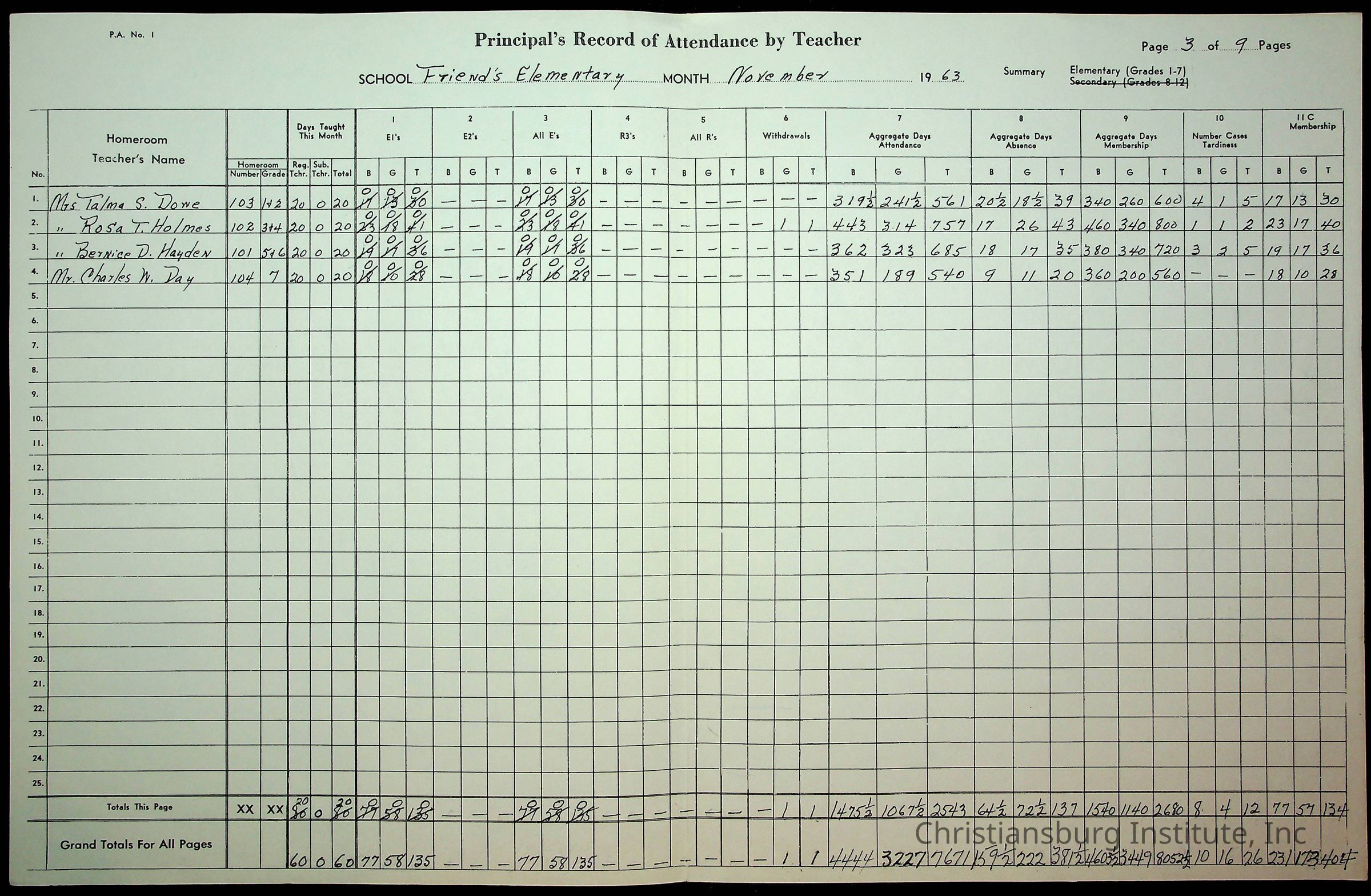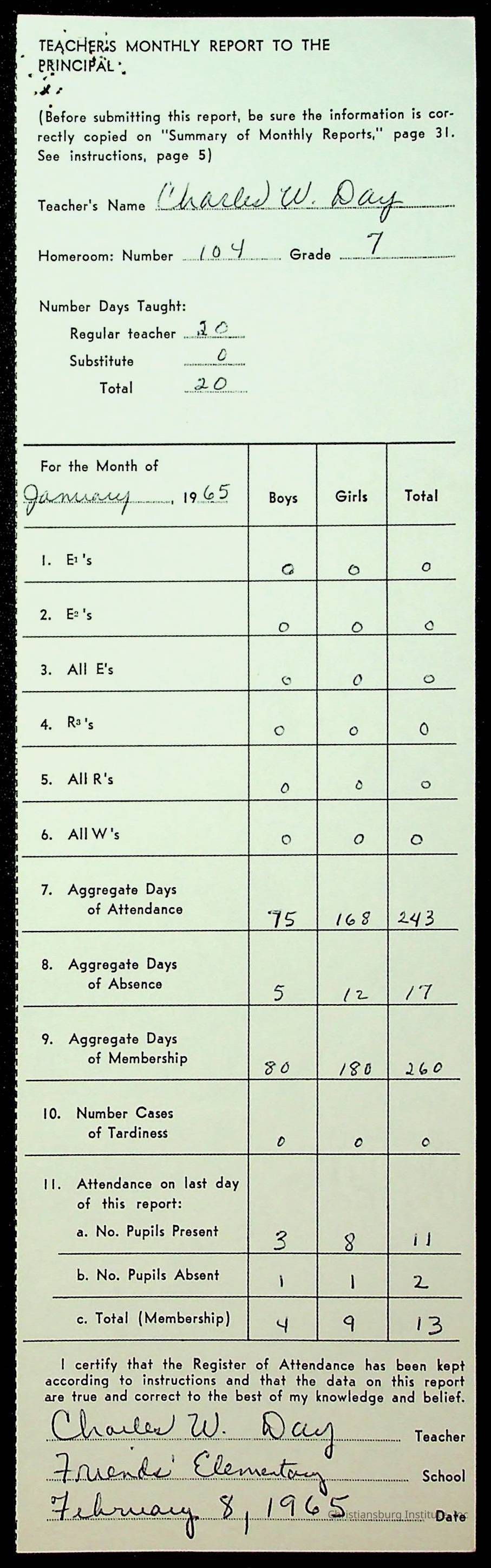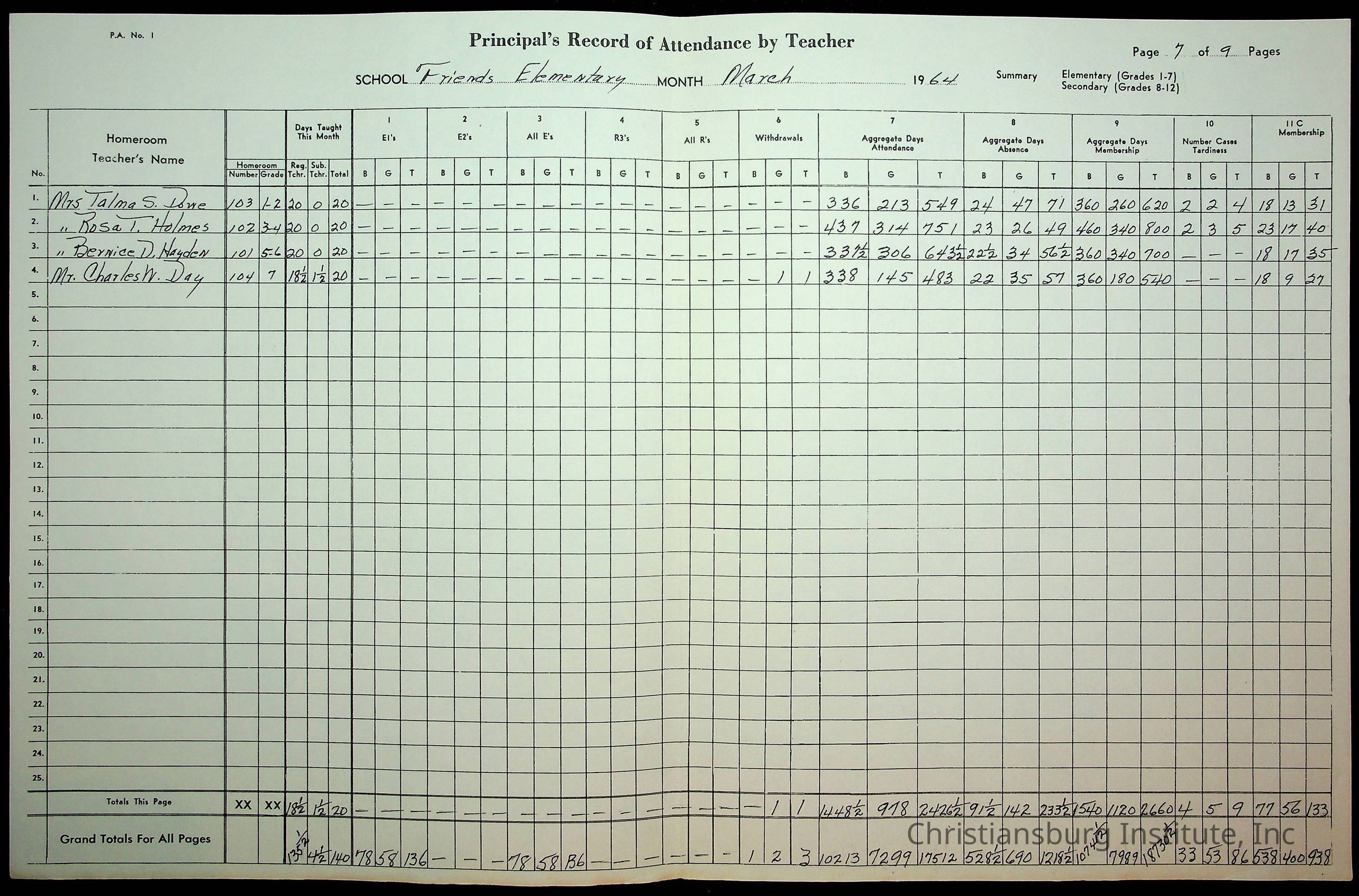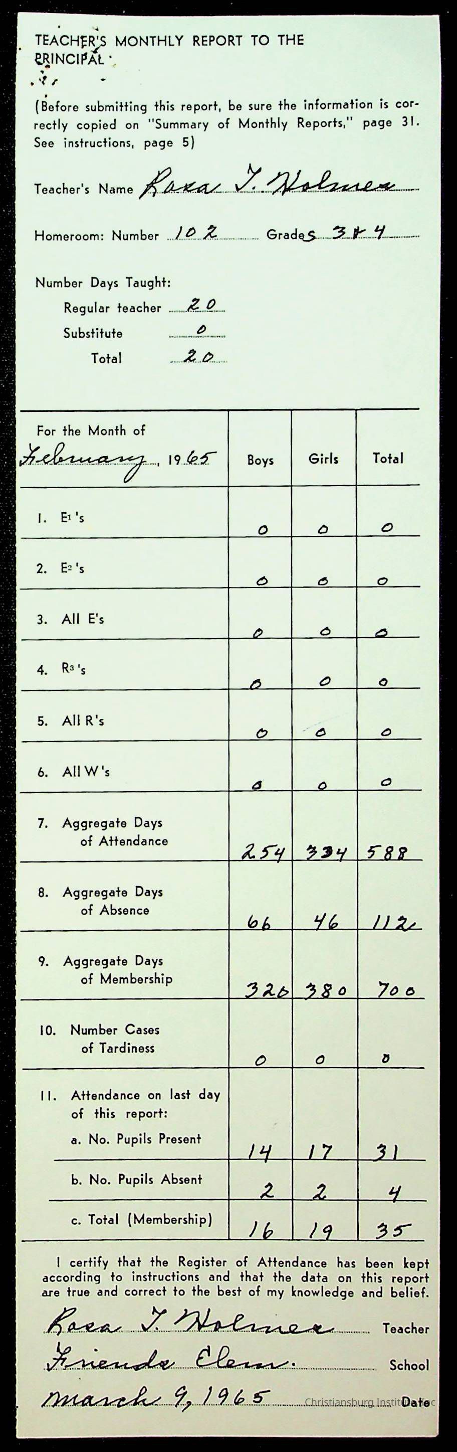 An archive of monthly principal reports for Christiansburg Institute and Friends Elementary School from 1963 through 1964.