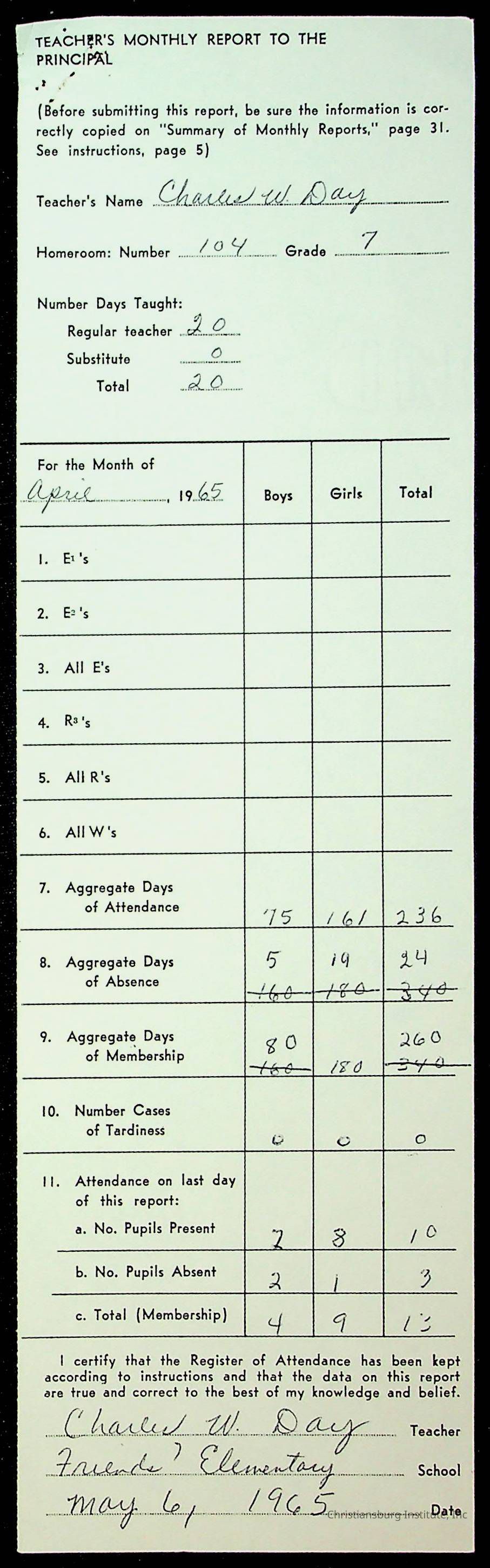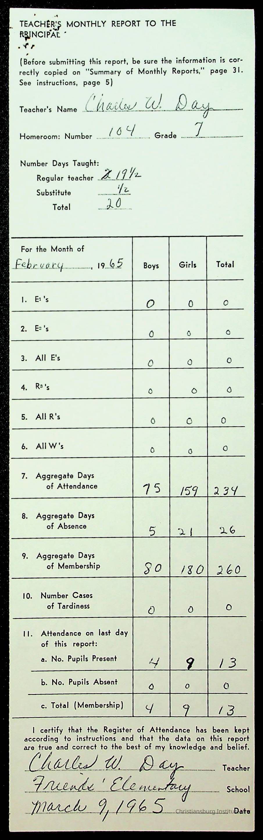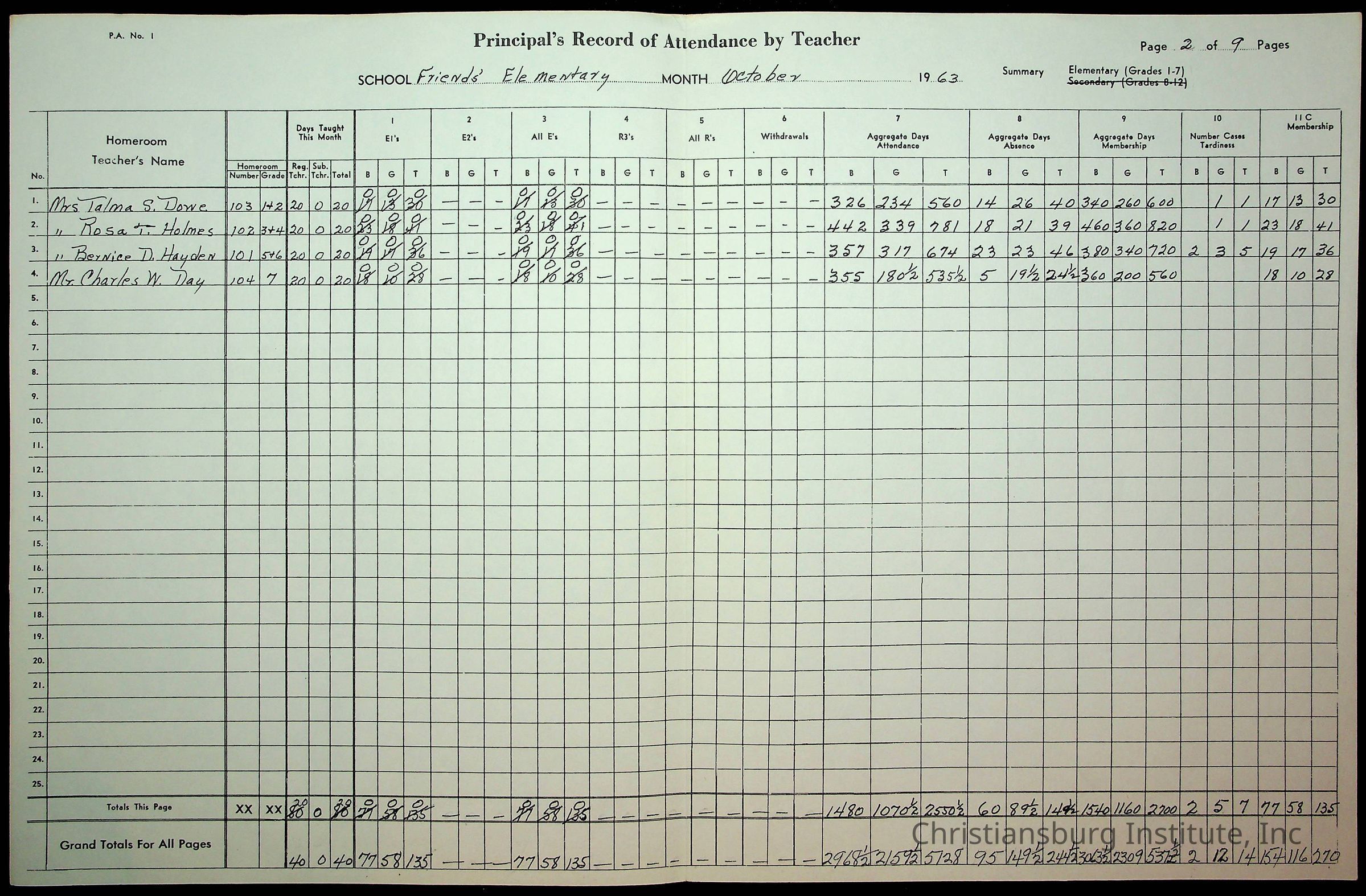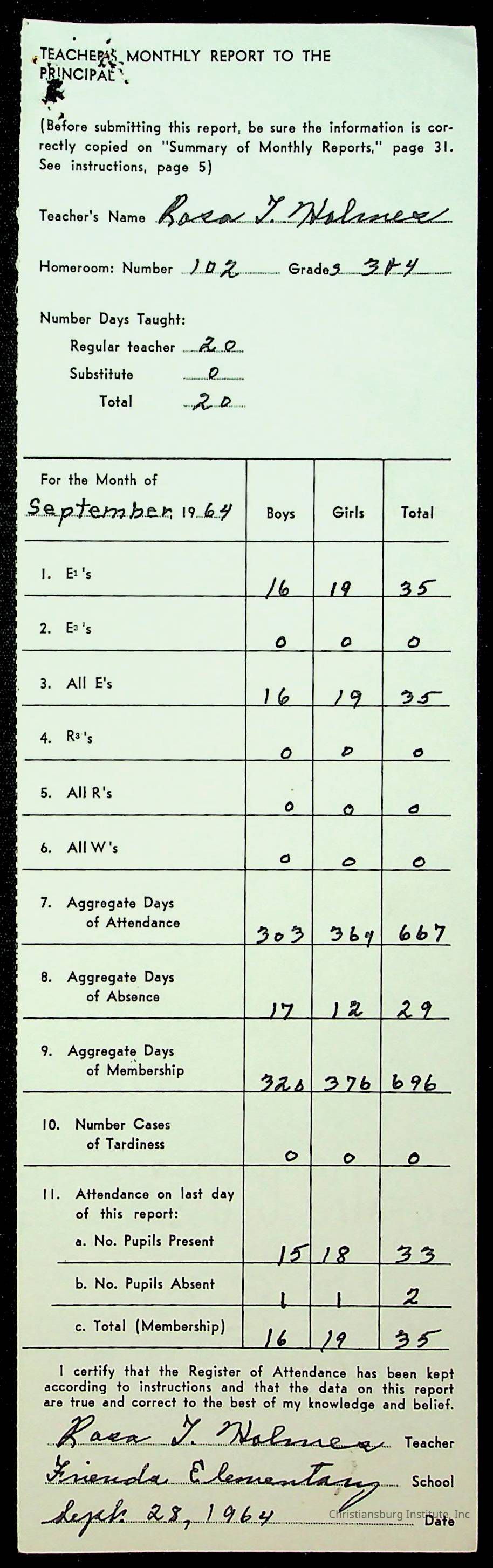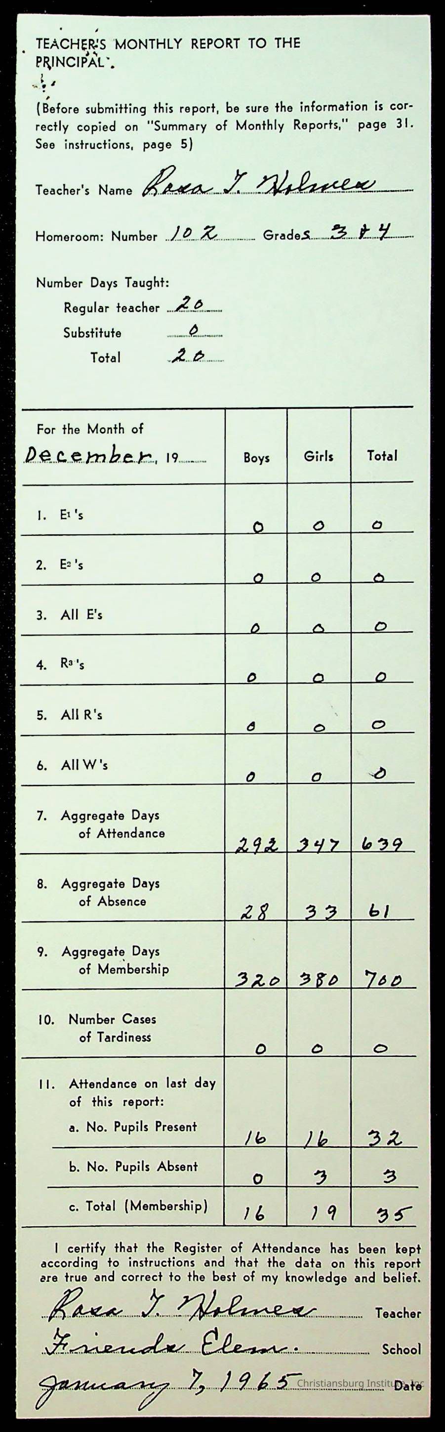 An archive of monthly principal reports for Christiansburg Institute and Friends Elementary School from 1963 through 1964.